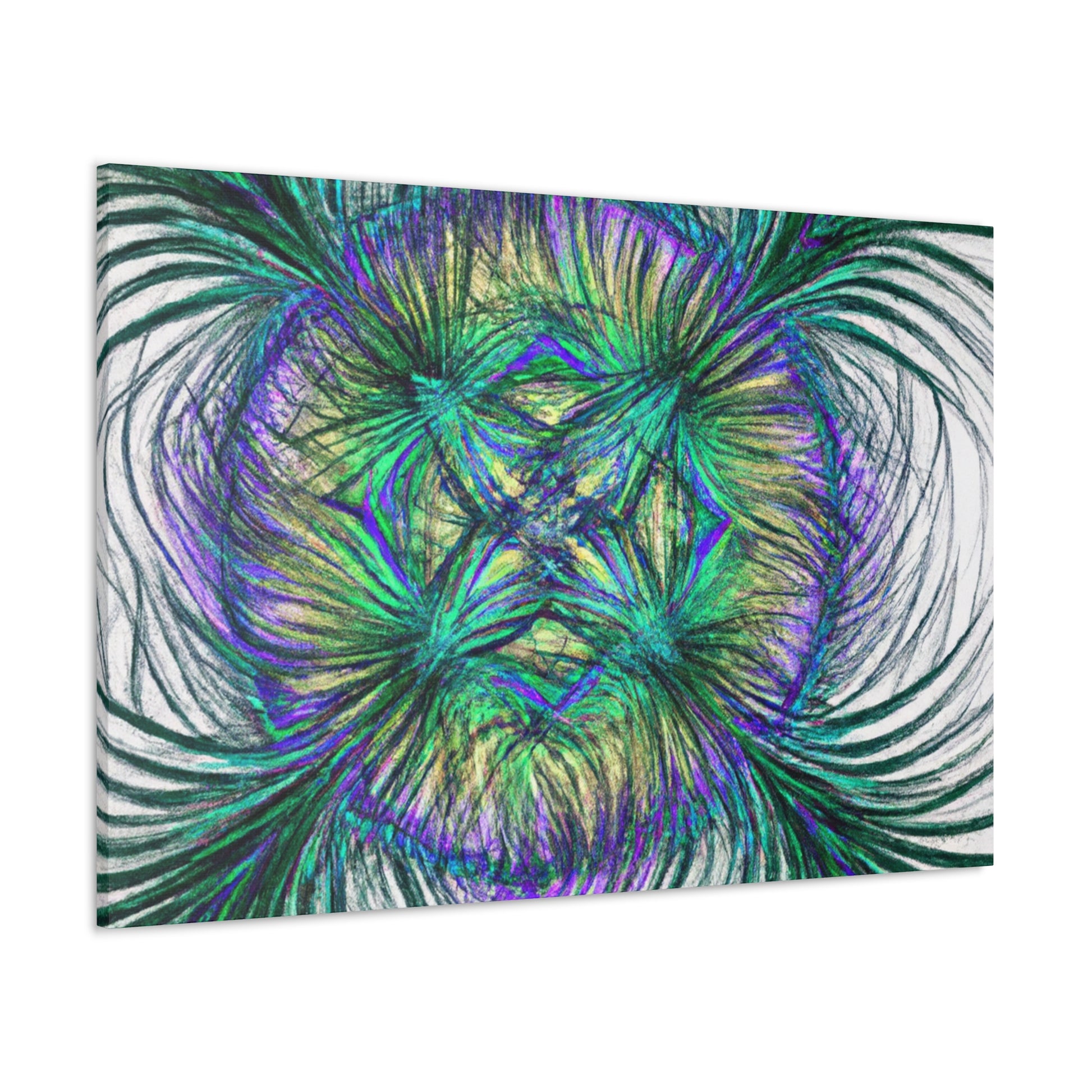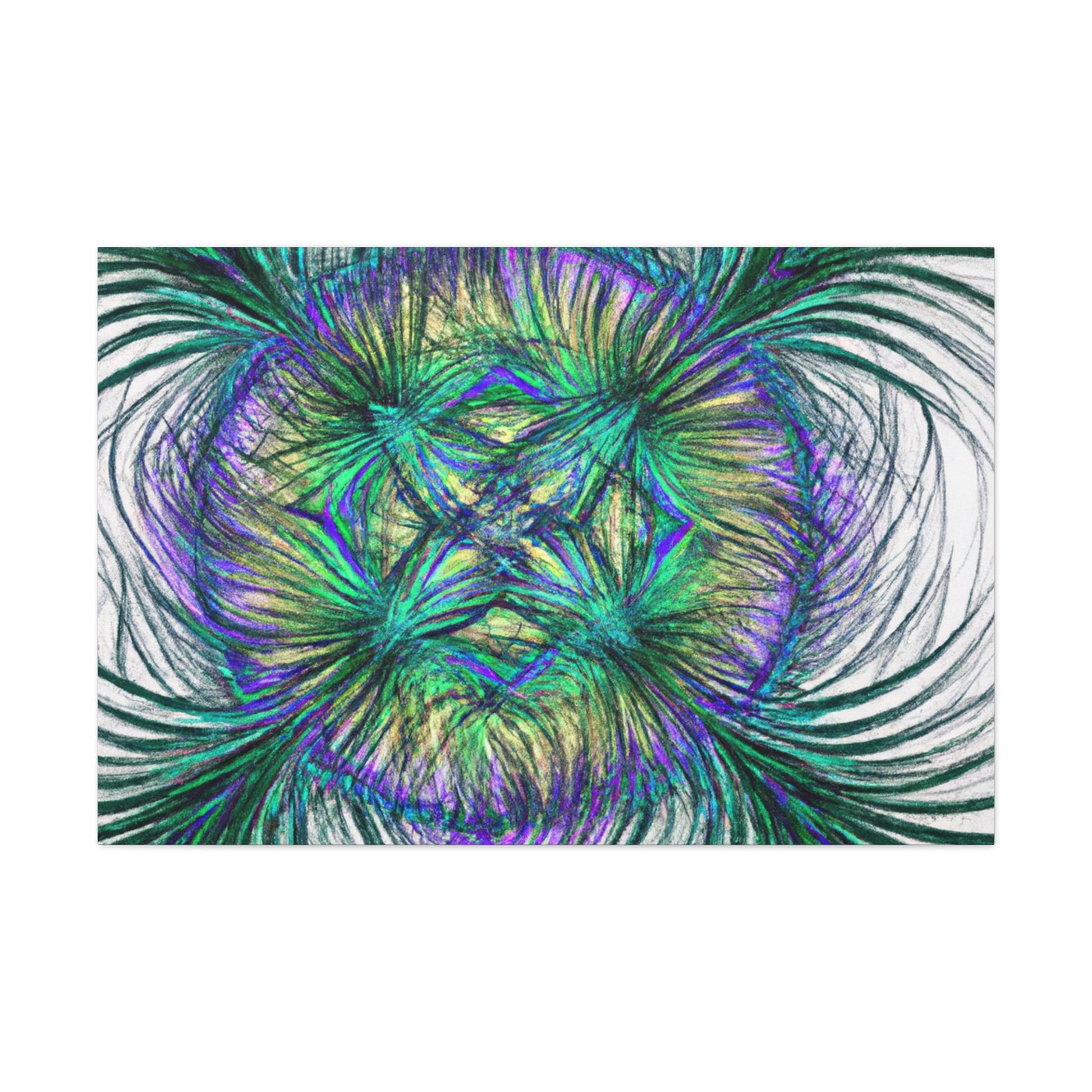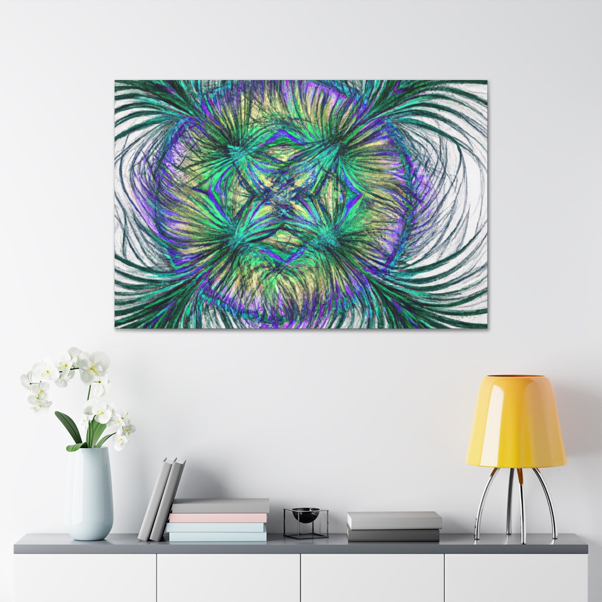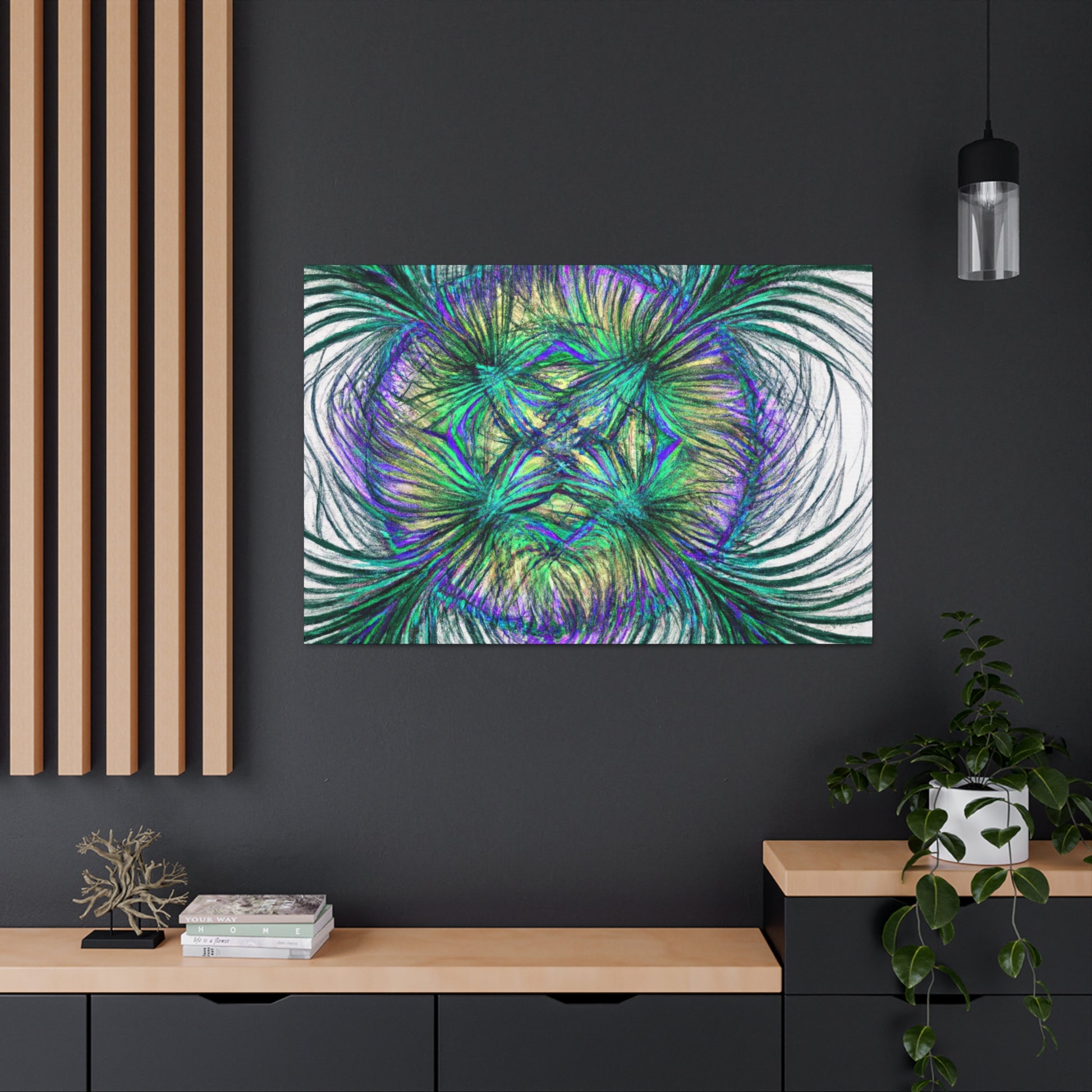 This geometric digital artwork will transport you a world of vivid colors, psychedelic fractals and abstract designs. The canvas features trippy palm leaves in a kaleidoscope pattern, complemented by 3D lines and bursts of vibrant colors. This artwork is the perfect way to express yourself and liven up any room. #abstractart #3D #digitalart #kaleidoscope #fractals #vibrantcolors #palmleaves #trippy #geometric #artwork #expression