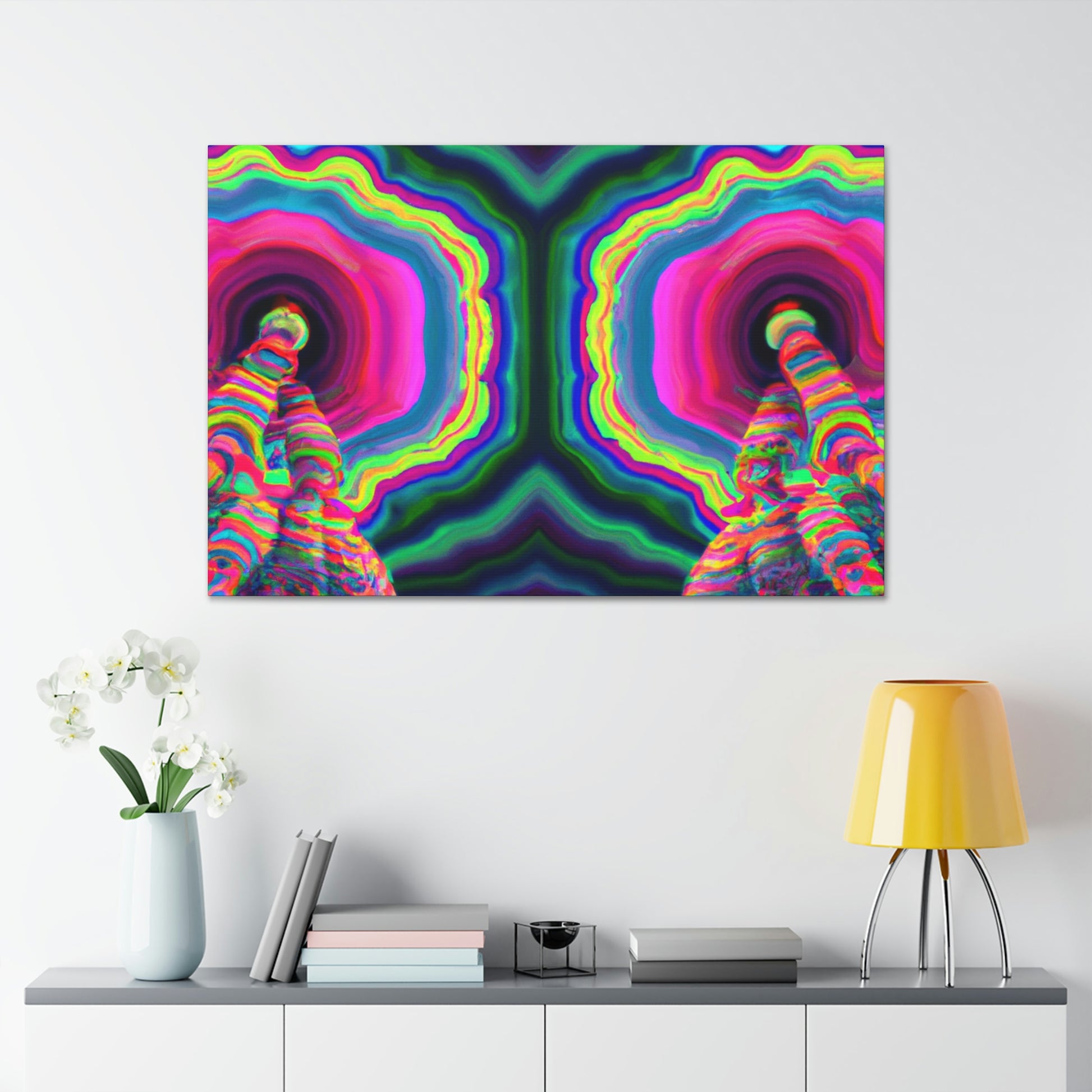 Liven up any interior space with this unique, vibrant canvas featuring trippy mushrooms, abstract shapes, and a kaleidoscope of 3D lines and digital art in bold, popping colors. Combining abstract and traditional art, this piece will be sure to add a style that is pleasing to the eye and perfect for any decor. #trippy #mushrooms #kaleidoscope #abstract #digitalart #vibrantcolors #3Dlines #art #wallart #interiorspace #homedecor