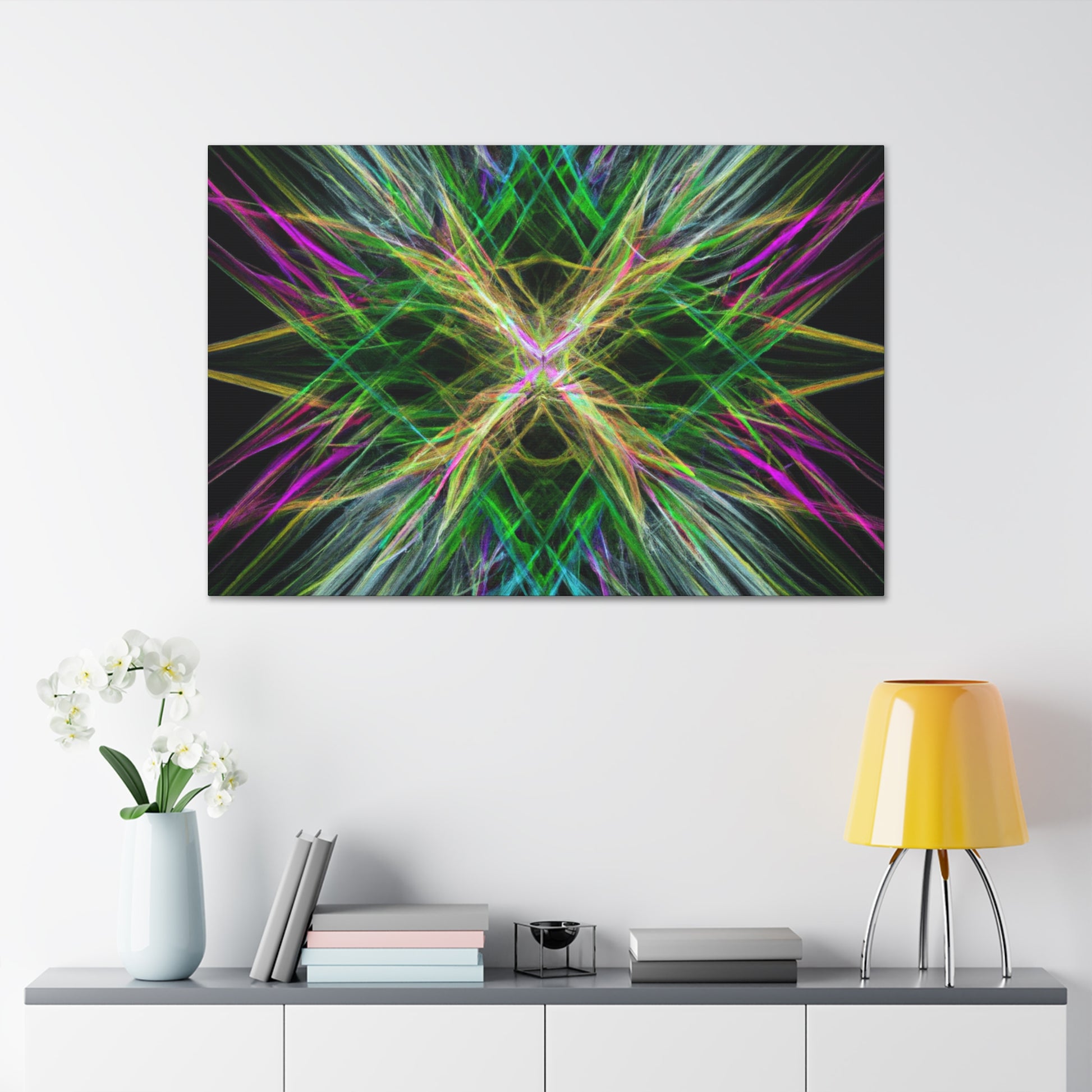 This dynamic artwork is a canvas print of vibrant, kaleidoscopic colors and abstract shapes, interwoven with geometric forms. The Trippy palm leaves, geometric shape, fractal art, and 3D lines provide an eye-catching, psychedelic effect for any interior. An ideal addition for any home, office, studio, or gallery looking to add an element of digital art and modern dimensions. #Art #CanvasPrint #TrippyArt #PsychedelicArt #PalmLeaves #GeometricArt #FractalArt #AbstractArt #Kaleidoscope #VibrantColors #3DLines