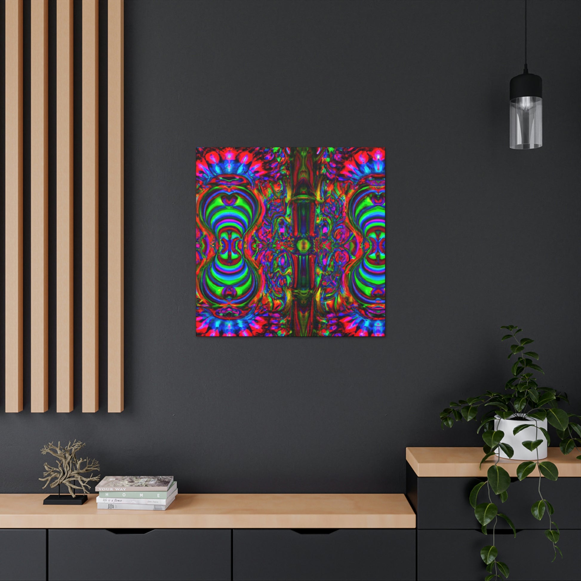 This beautiful canvas features a unique combination of Trippy Mushrooms, kaleidoscope and abstract designs to create an eye-catching 3D pop-art effect. The vibrant colors and 3D lines will come alive on almost any wall, adding a modern twist to any space. Enjoy the wavy colors and contrast of textures in this digitally crafted artwork and be sure to share it with your friends. #AbstractArt #DigitalArt #Vibrant #TrippyMushrooms #Kaleidoscope #3DLines #Unique #PopArt #Contrast #Colors #Textures