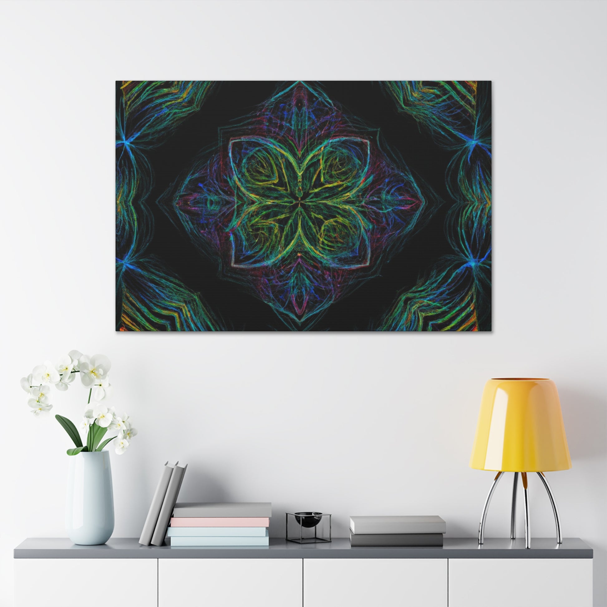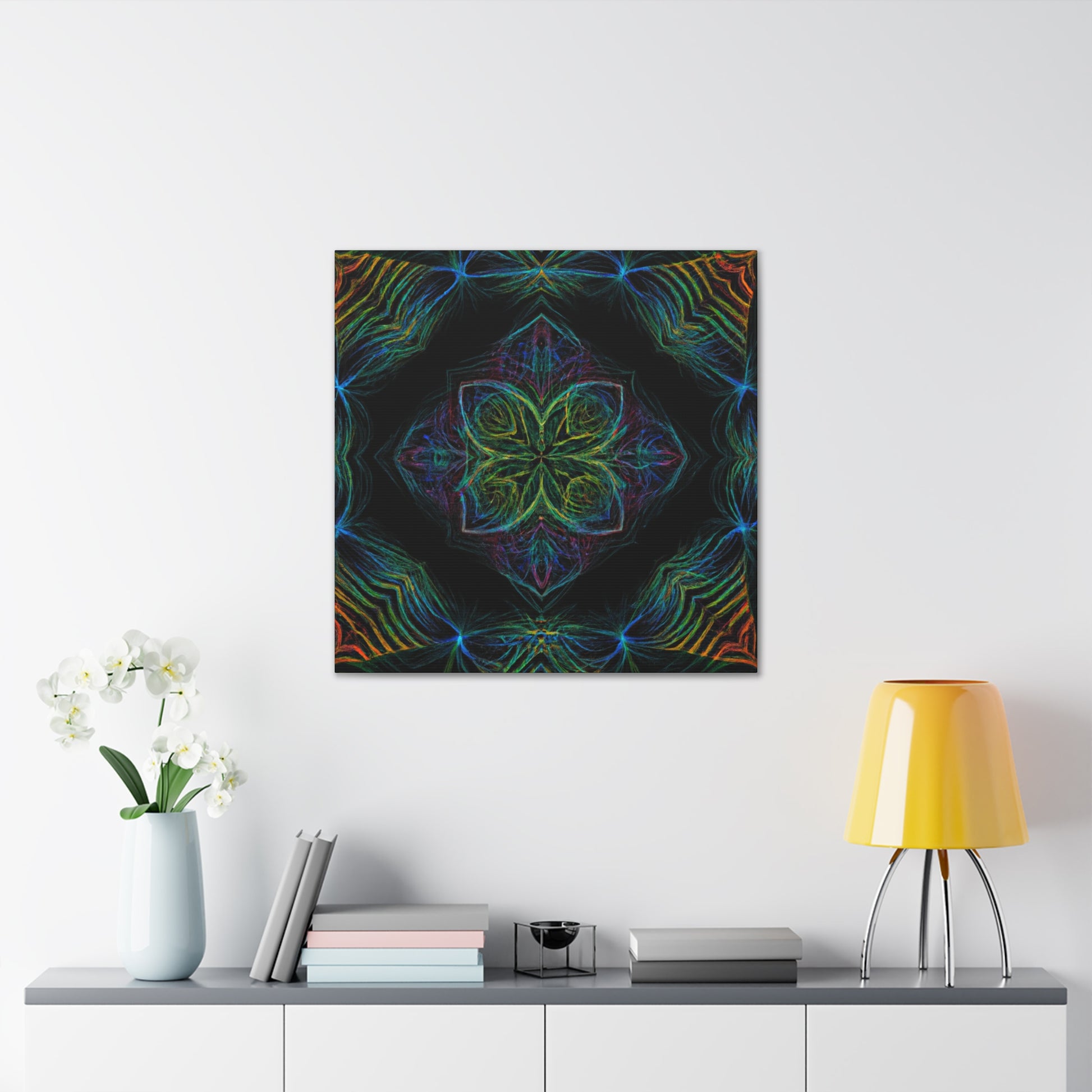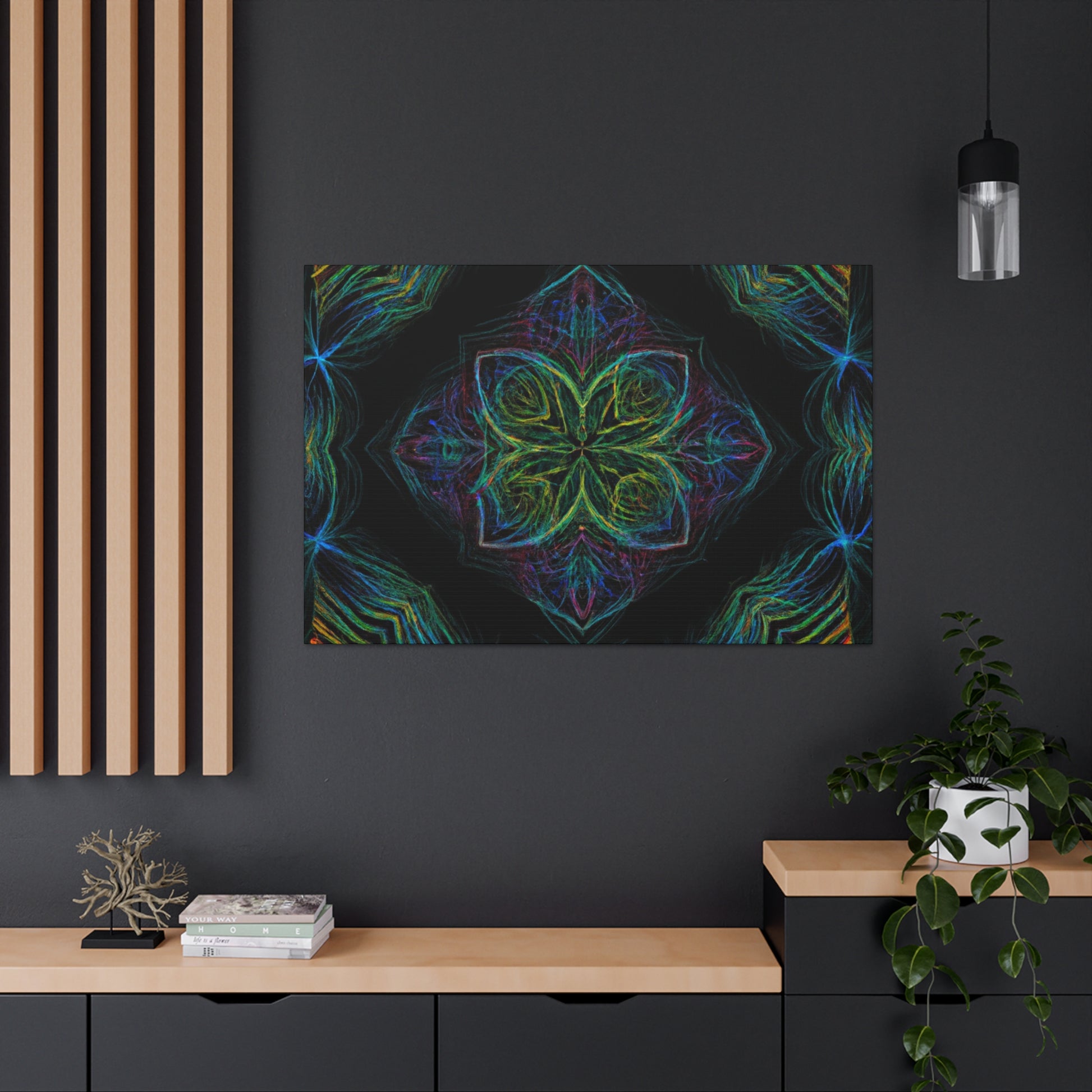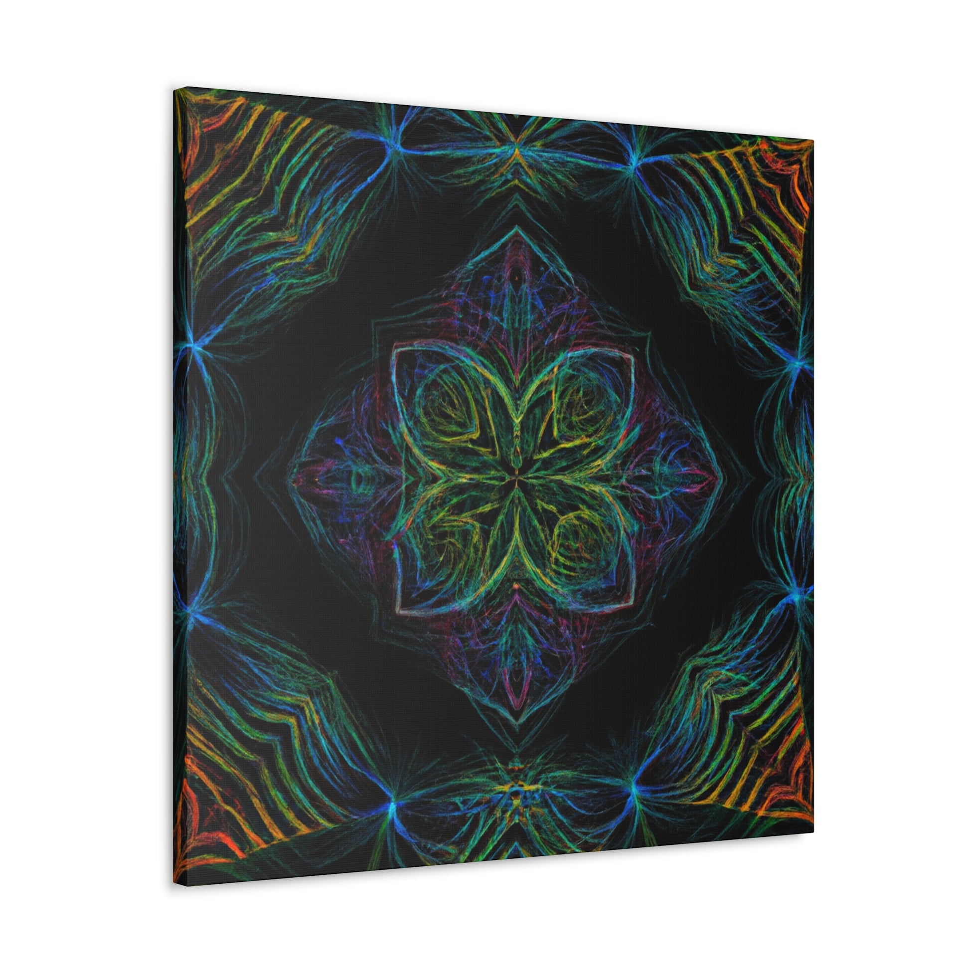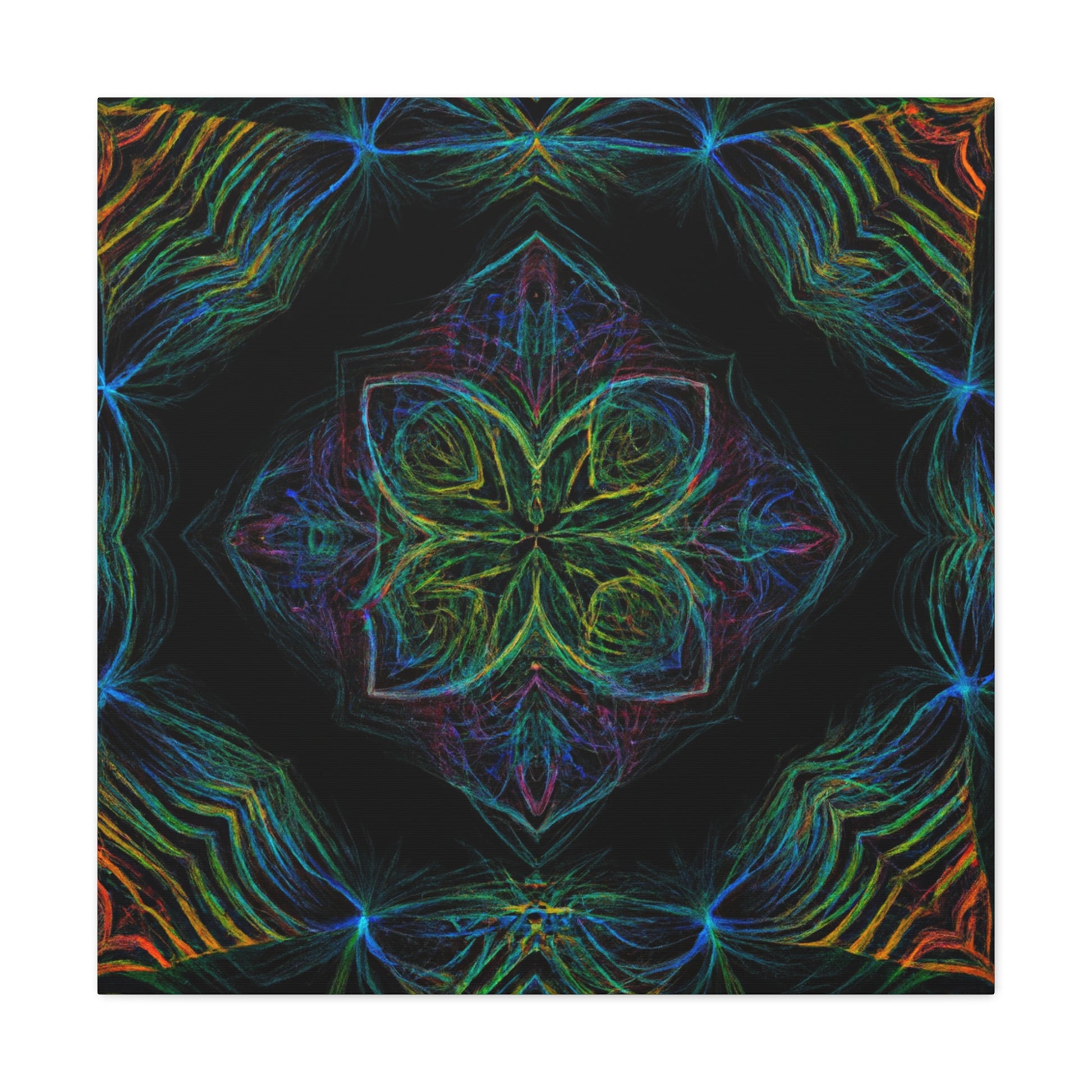 This vibrant, abstract digital art features a kaleidoscope of trippy geometric palm leaves perfect for brightening up any wall. Drawing the eye, 3D lines create dynamic movements along vivid colors in a fractal design. Let this piece transport you and liven up your home. #Abstract #DigitalArt #VibrantColors #3DLines #Fractal #Geometric #PalmLeaves #Kaleidoscope #Trippy #HomeDecor #Art