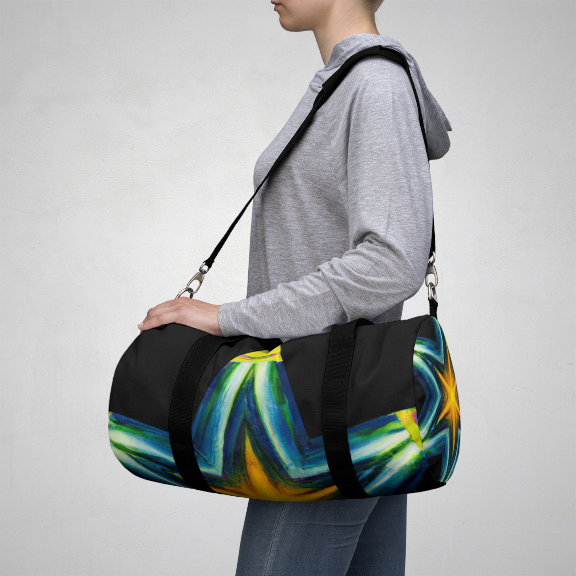 This uniquely designed dufflebag is sure to turn heads! Combining vibrant colors, trippy stars, kaleidoscope, abstract, digital art, and 3D lines, no two bags are alike. Whether you're off to the gym, work, or travelling,this bag is ready to accompany you on all your adventures! #dufflebag #bags #travelbag #duffelbag #kaleidoscope #trippystars #abstract #digitalart #3Dlines #vibrantcolors #style #fashion #onfleek #stunning #trendy #durable #lifestyle #luxury #quality #traveler #adventurer #sports #athletic #gym #workbag #lastsforever #unforgettable #uniquelydesigned #worthit