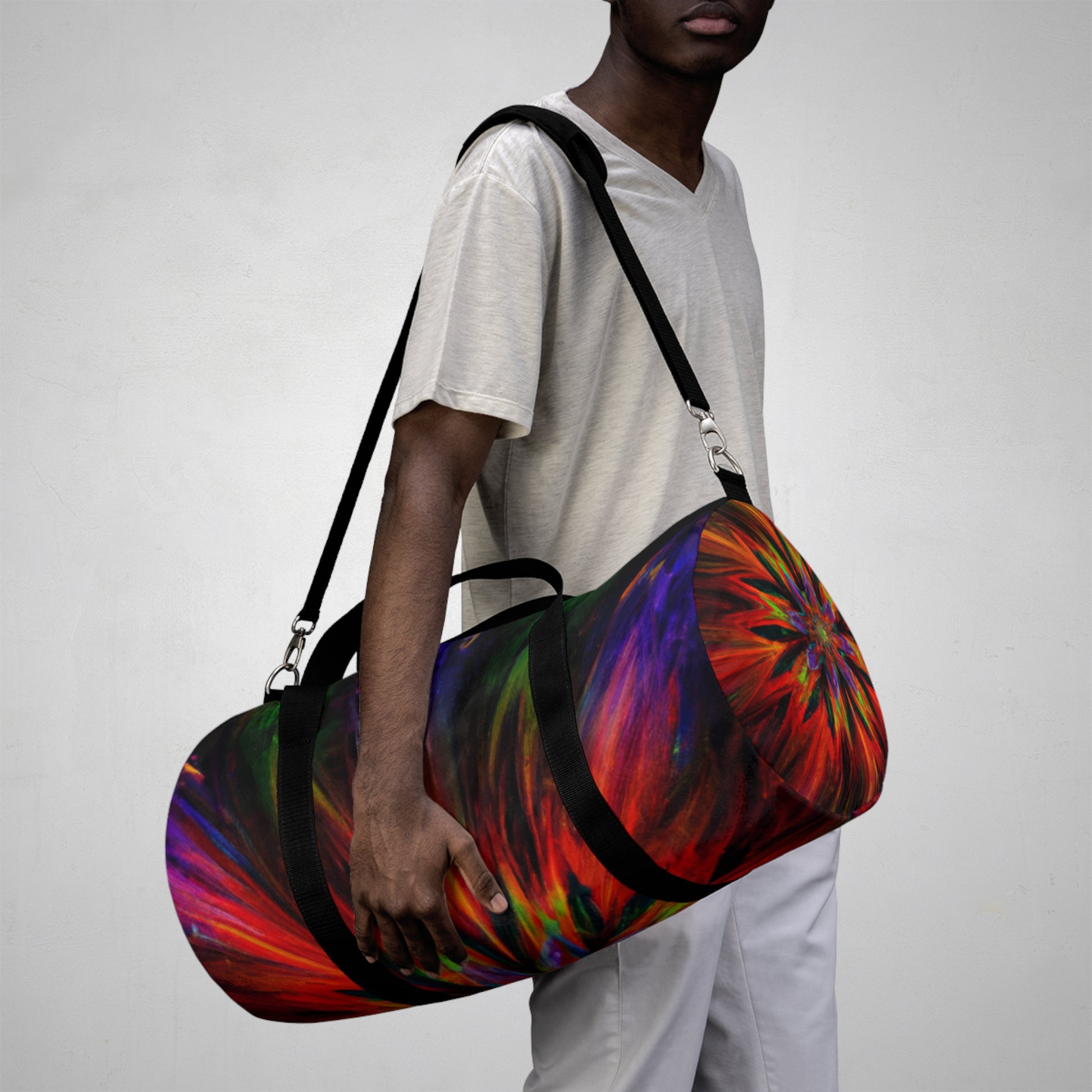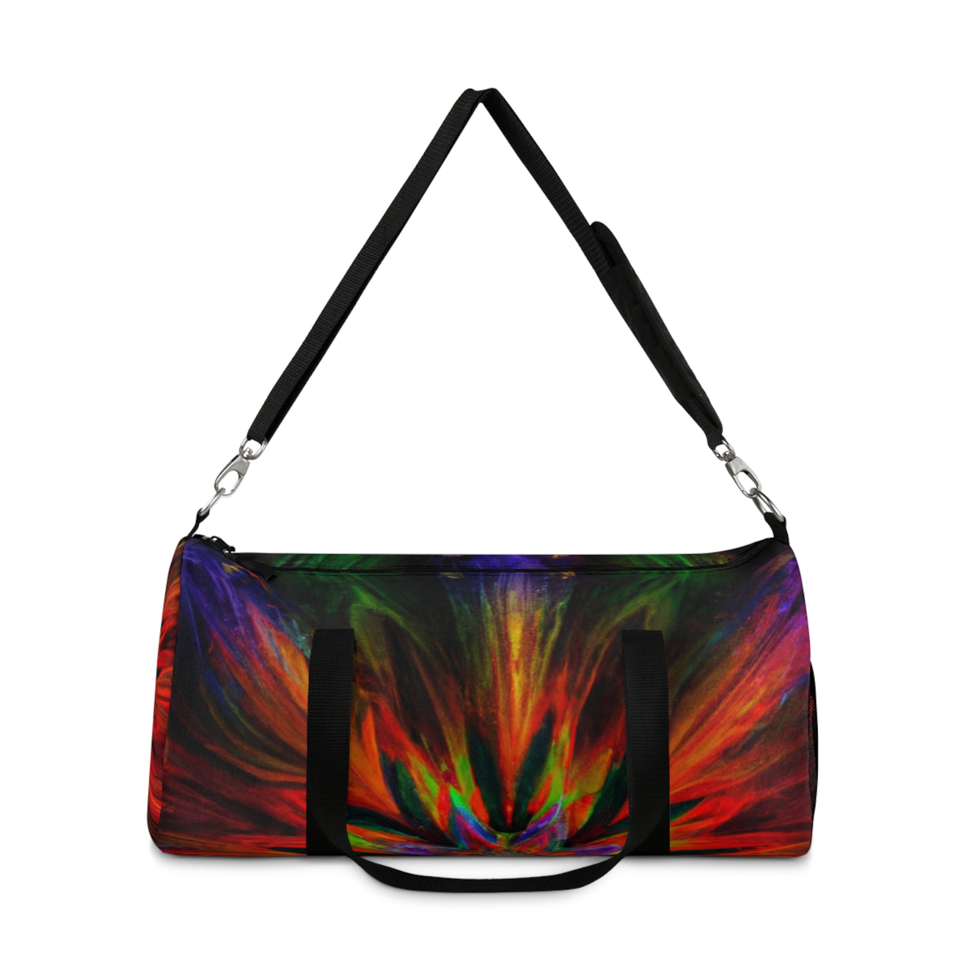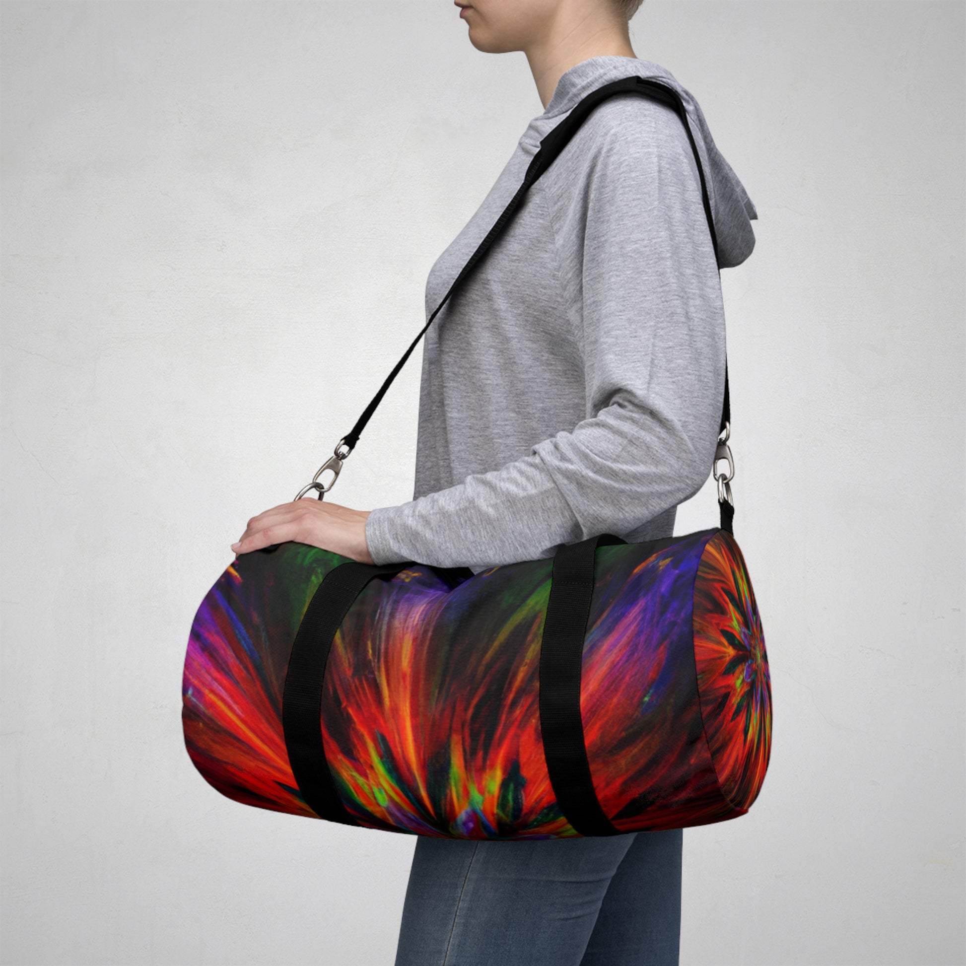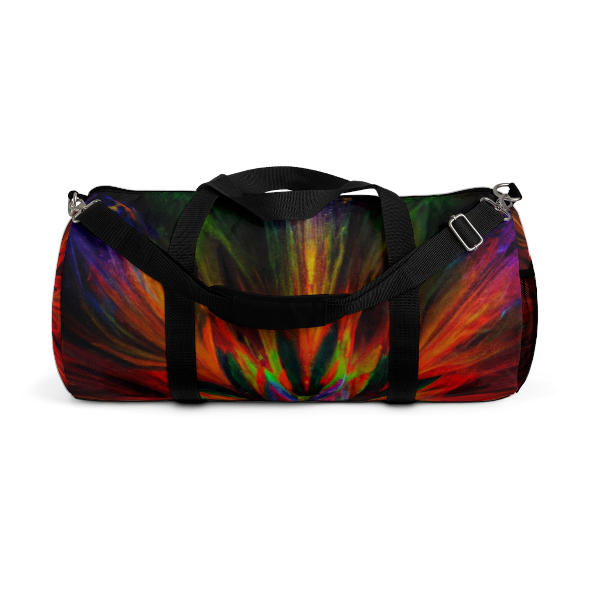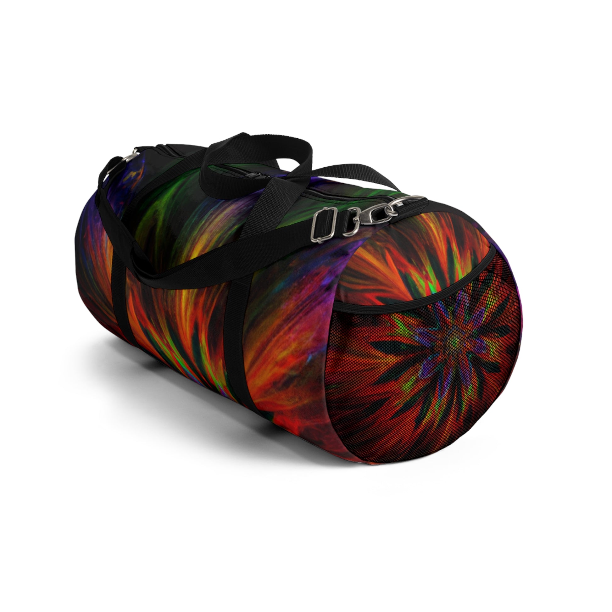 This vibrant duffel bag features unique digital art with trippy stars, kaleidoscope patterns, abstract designs and 3D lines in bright, vibrant colors. It makes a great statement piece to any outfit and is perfect for bringing all your essentials in style. #duffelbag #bag #uniquedesigns #3Dlines #trippystars #kaleidoscope #abstractart #digitalart #vibrantcolors #accessories #style #statementpiece #essentials #fashion #fashionable #stylish #trendy #unique #modern #colorful #bold #readytograb #durable #durablematerials #quality #highquality #luxury #luxurybag