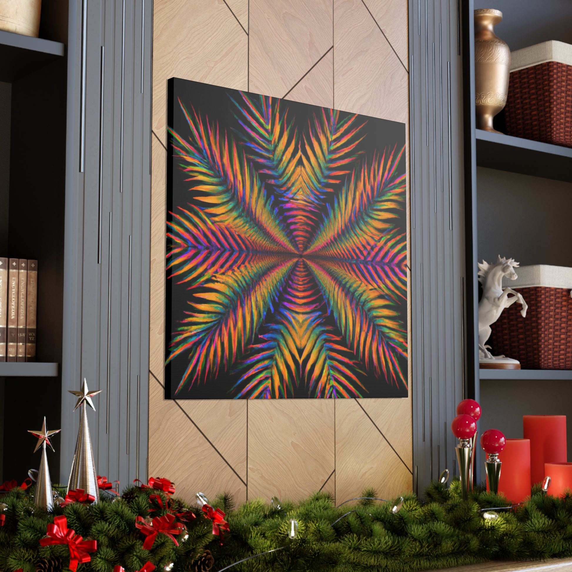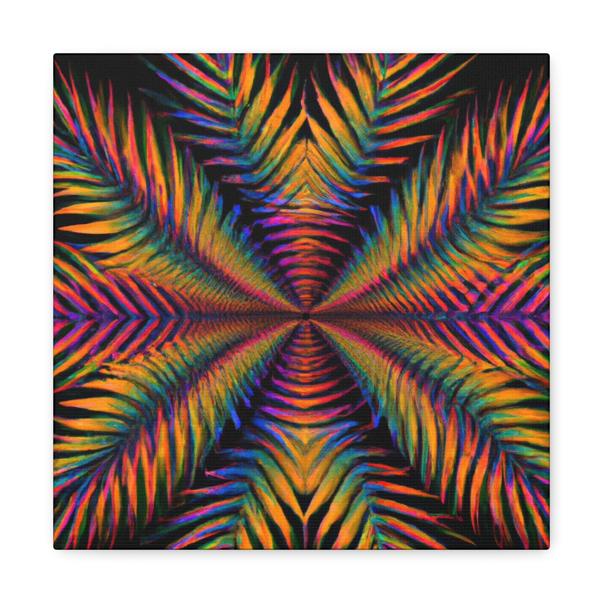 This canvas of Trippy Geometric Palm Leaves is sure to wow with its kaleidoscope of abstract, digital art, and vibrant colors. This modern and unique art piece is made up of 3D lines, fractal elements, and a psychedelic vibrancy that's bound to make a bold statement. Perfect for any room looking to become an instant conversation starter! #trippy #geometric #palmleaves #kaleidoscope #abstract #digitalart #vibrantcolors #3Dlines #fractal #psychedelic #boldstatement #modernart #unique #statementpiece #conversationstarter #roomdecor #wallart #homedecor #boldcolors #interiordesign #visualart #artlovers #visualstyle #styleitright #eclectic #roomgoals #colorpop #visualstepup