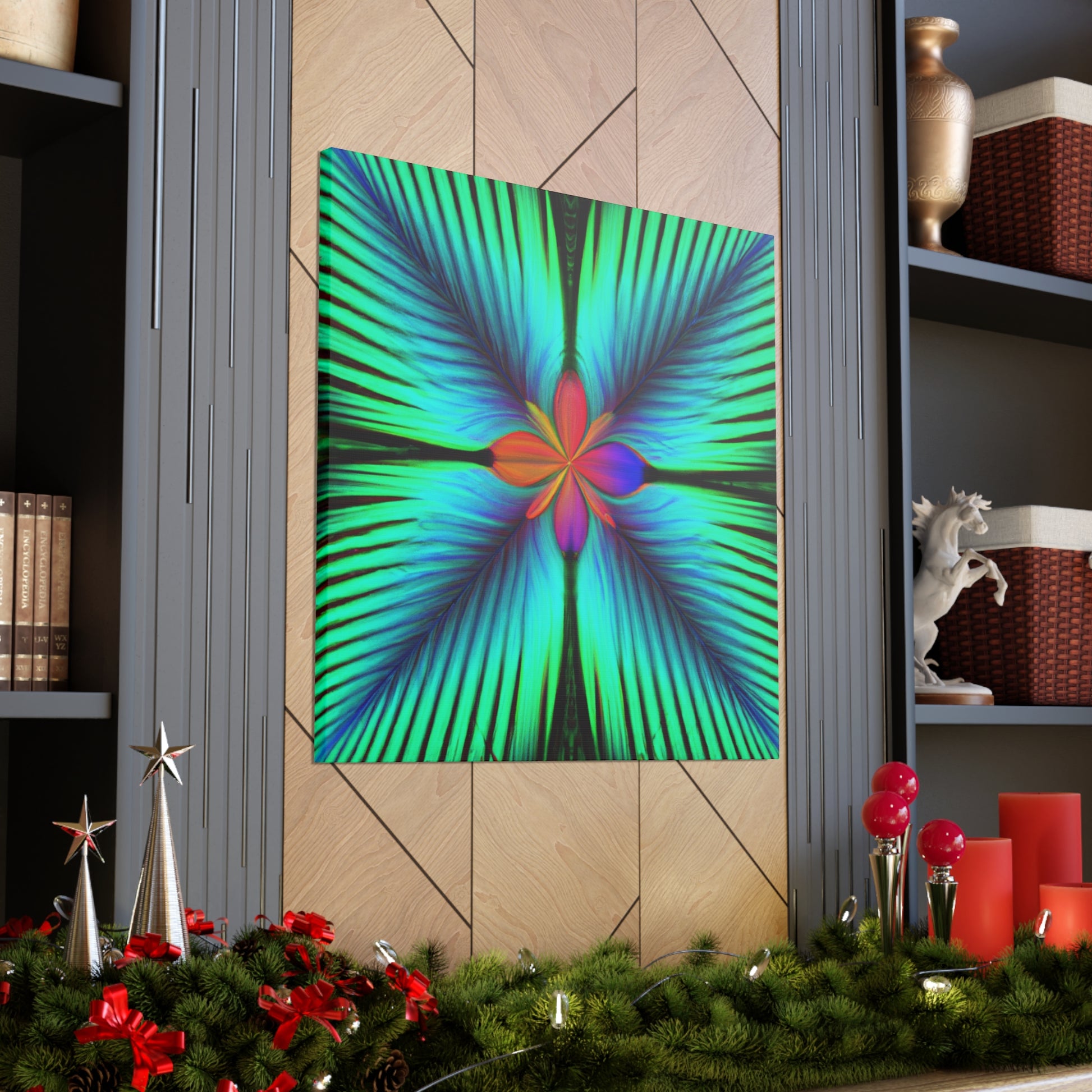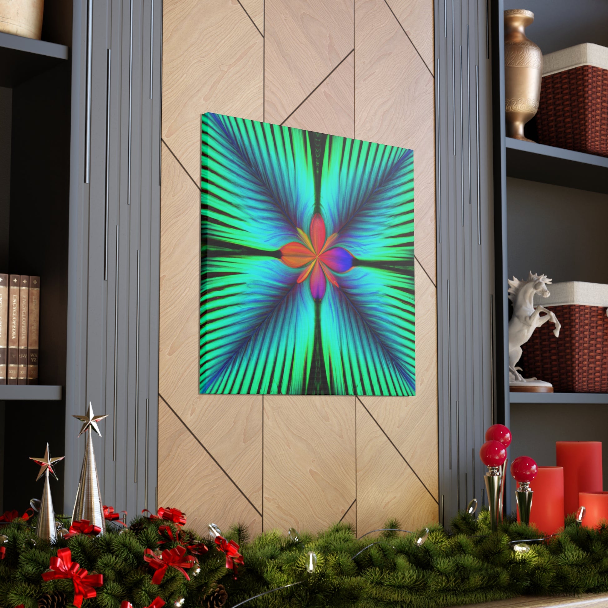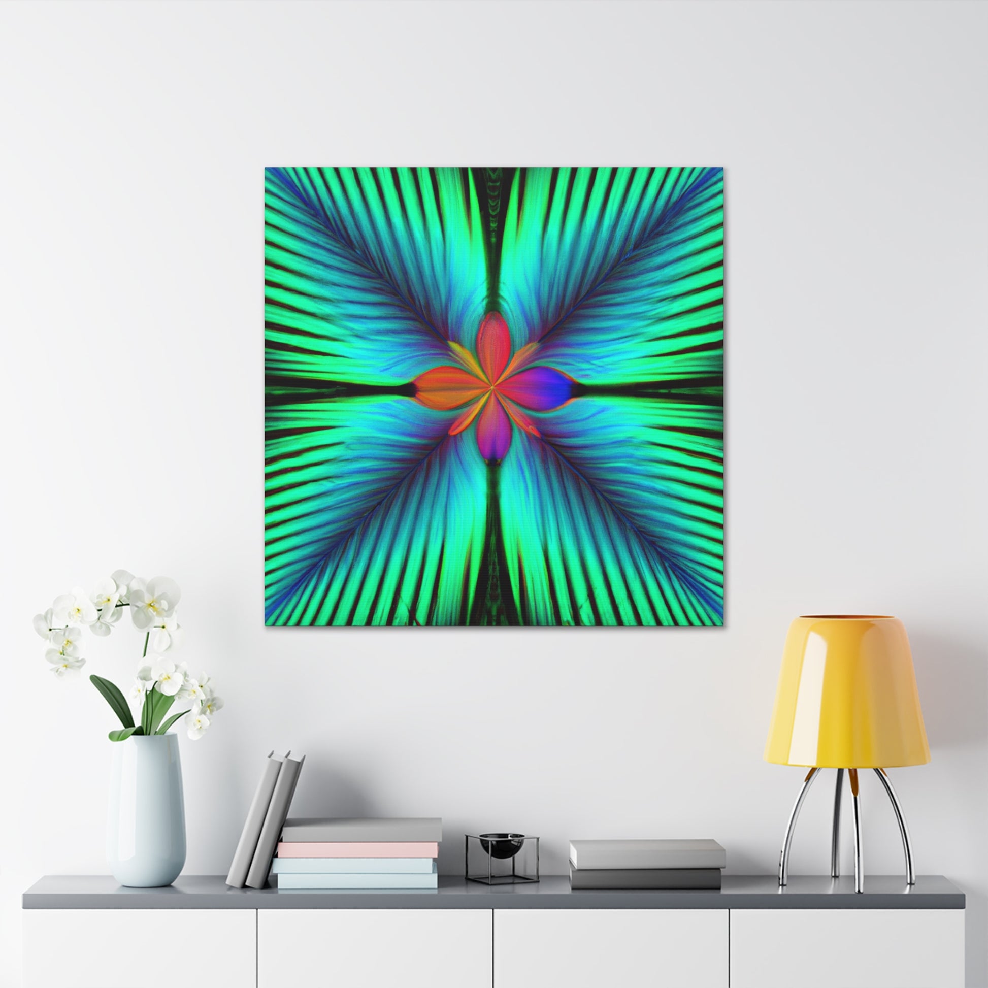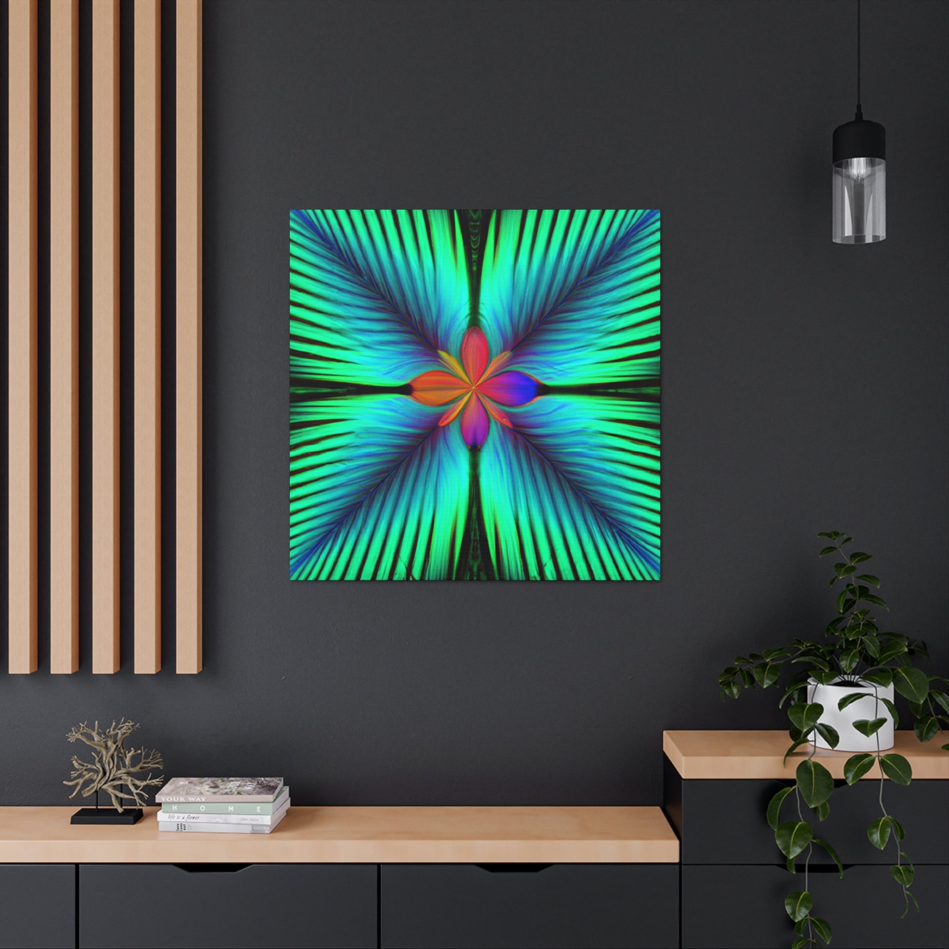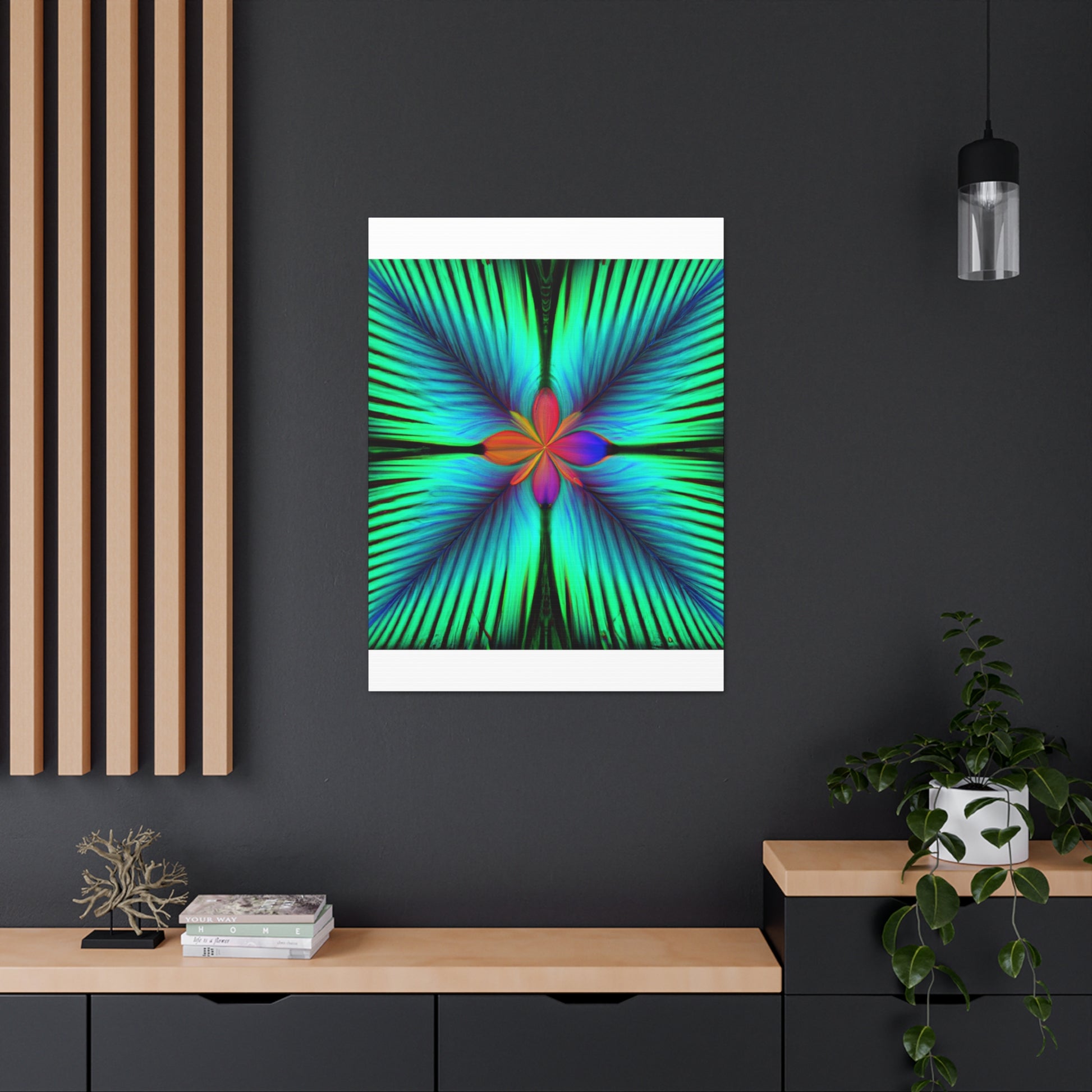 This stunning canvas of trippy geometric palm leaves, kaleidoscope, abstract, digital art, and vibrant colors creates an unbelievable 3D perspective! With its hypnotic visuals, intricate fractal detail, and eye-popping colors, it will be a perfect conversation piece for any living space. #trippy #geometric #palm #leaves #kaleidoscope #abstract #digitalart #vibrantcolors #3dlines #fractal #vibrant #canvas #abstractart #art #contemporaryart #homeinspiration #rustikstyle #bold #statementart #style #homedecor #walldecor #homedecoration #interiordesign #homedesign #interior #design #rusticdecor #decoration
