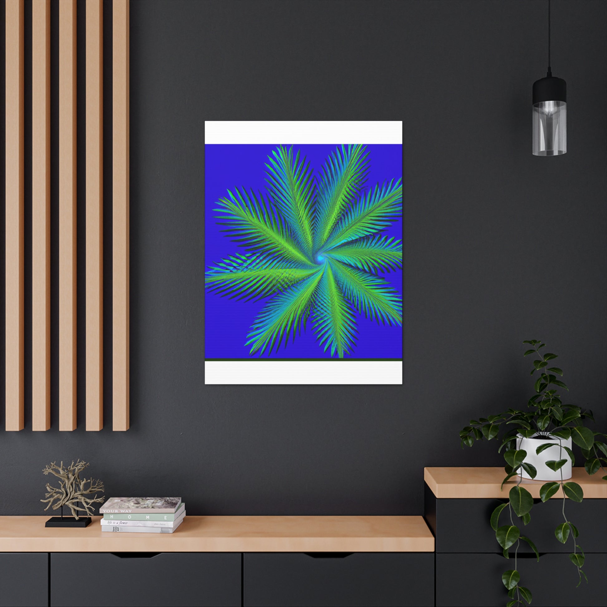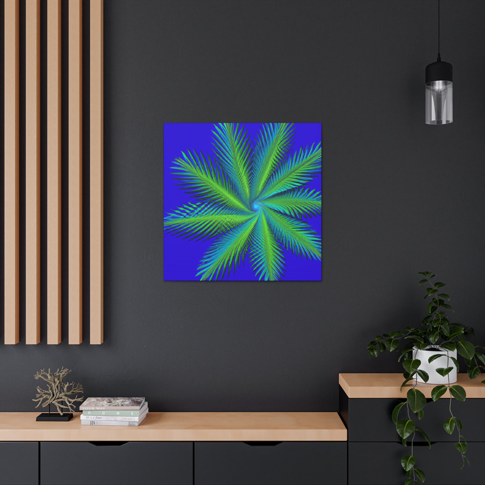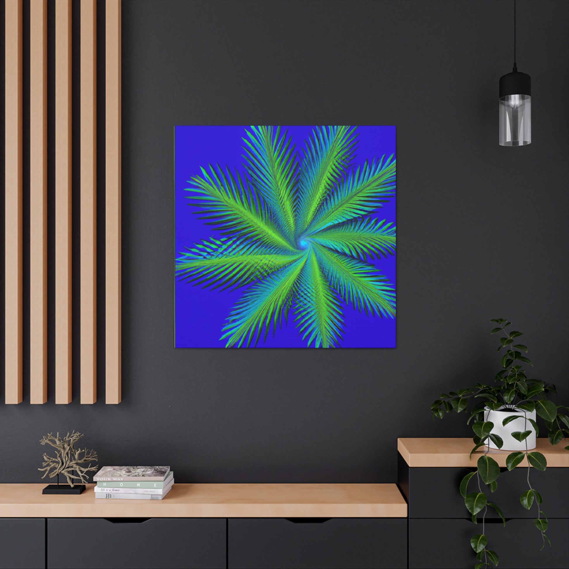 This canvas art is the perfect addition to any space! Featuring vibrant colors, abstract shapes and 3D lines, this mesmerizing abstract art will make any wall look amazing! Its serene yet eye-catching design features cascading geometric palm leaves, kaleidoscopic patterns and subtle fractal elements. Ideal for those who appreciate digital, modern and trippy art, this canvas adds a unique touch to any living space! #trippy #geometric #palmleaves #kaleidoscope #abstract #digitalart #vibrantcolors #3D #fractal #canvas #modernart #digitalpainting #beautifulart #roomdecor #homedecor #walldecor #interiordesign #interiors #artwork #ootd #style #trendy #unique #giftideas #present #creative #artist #diy