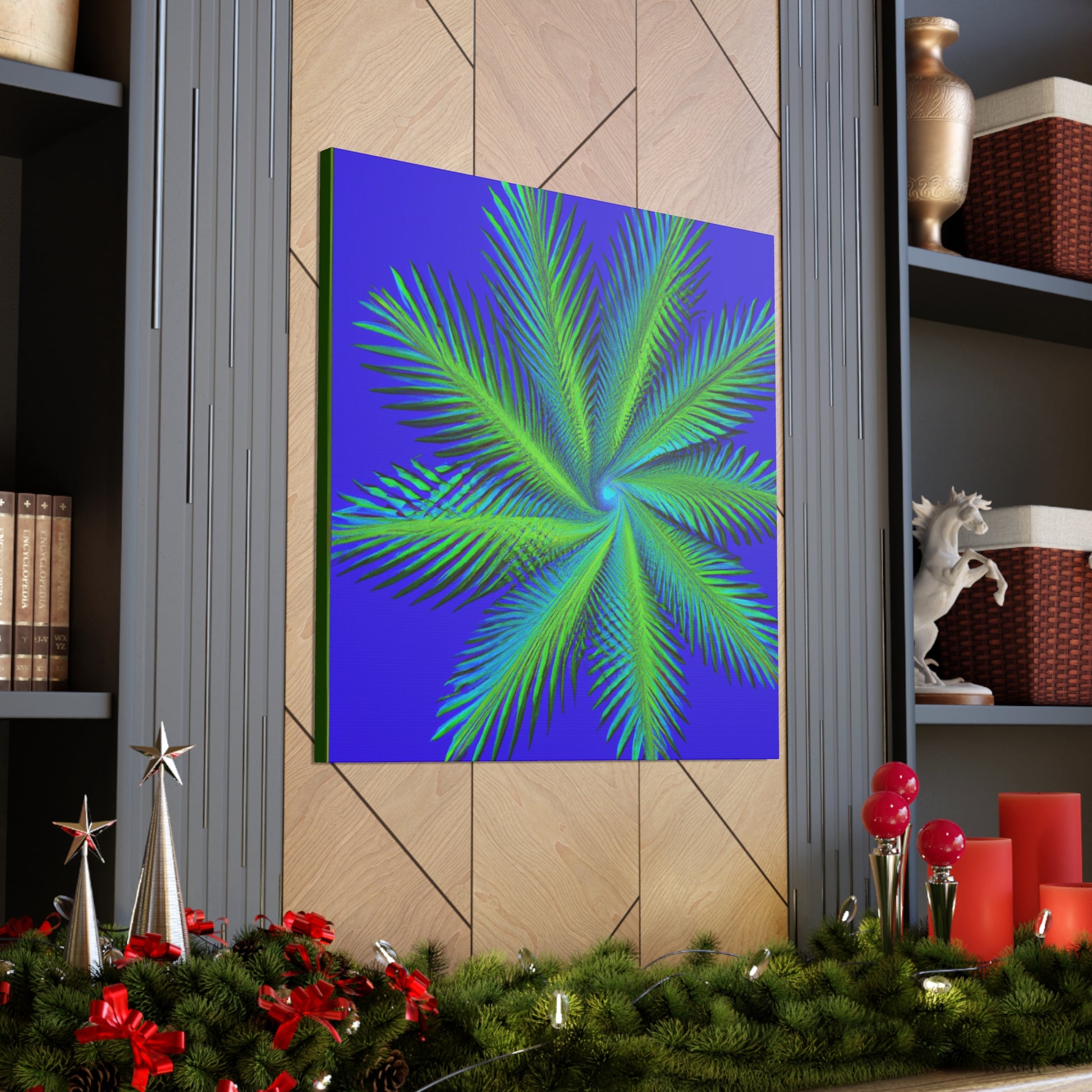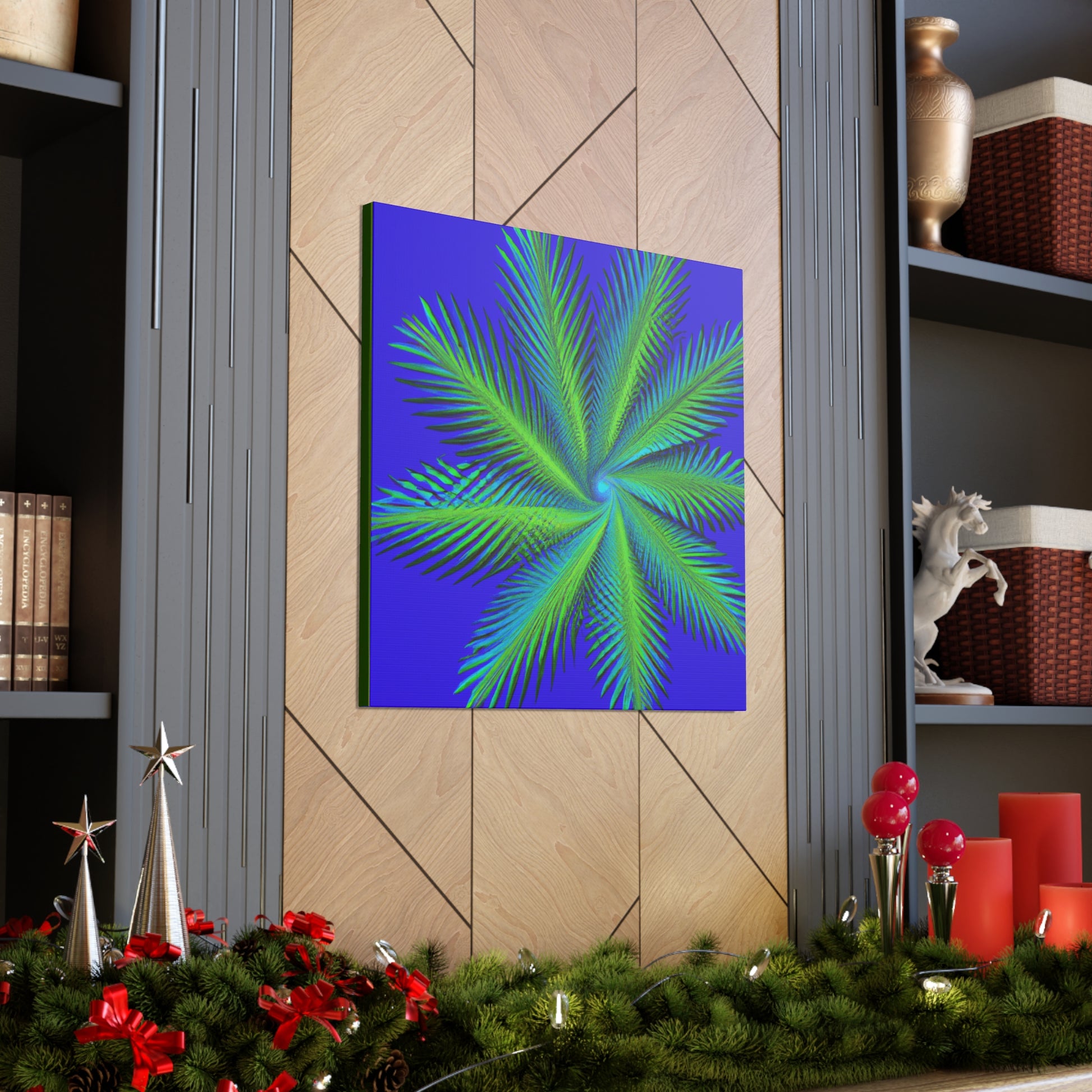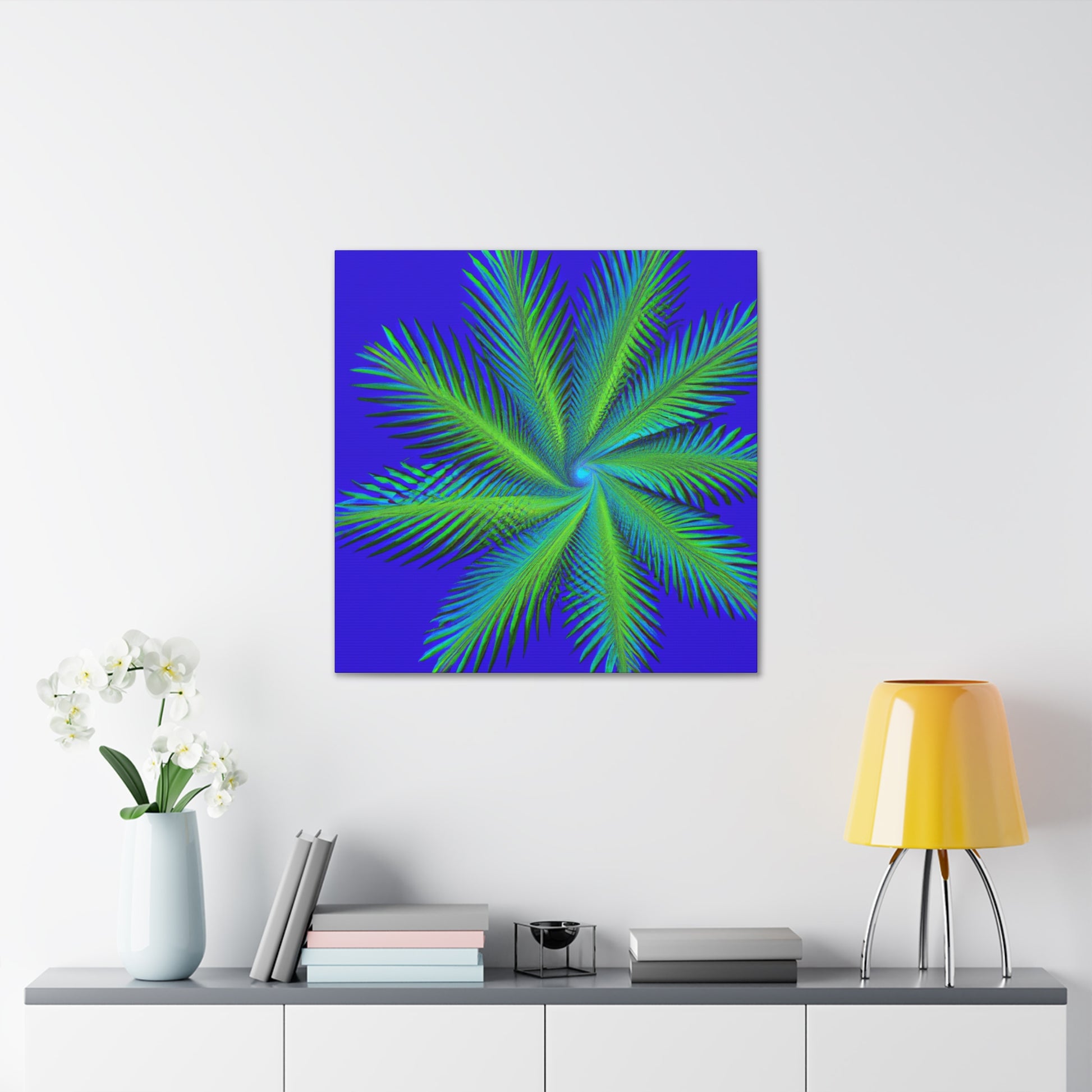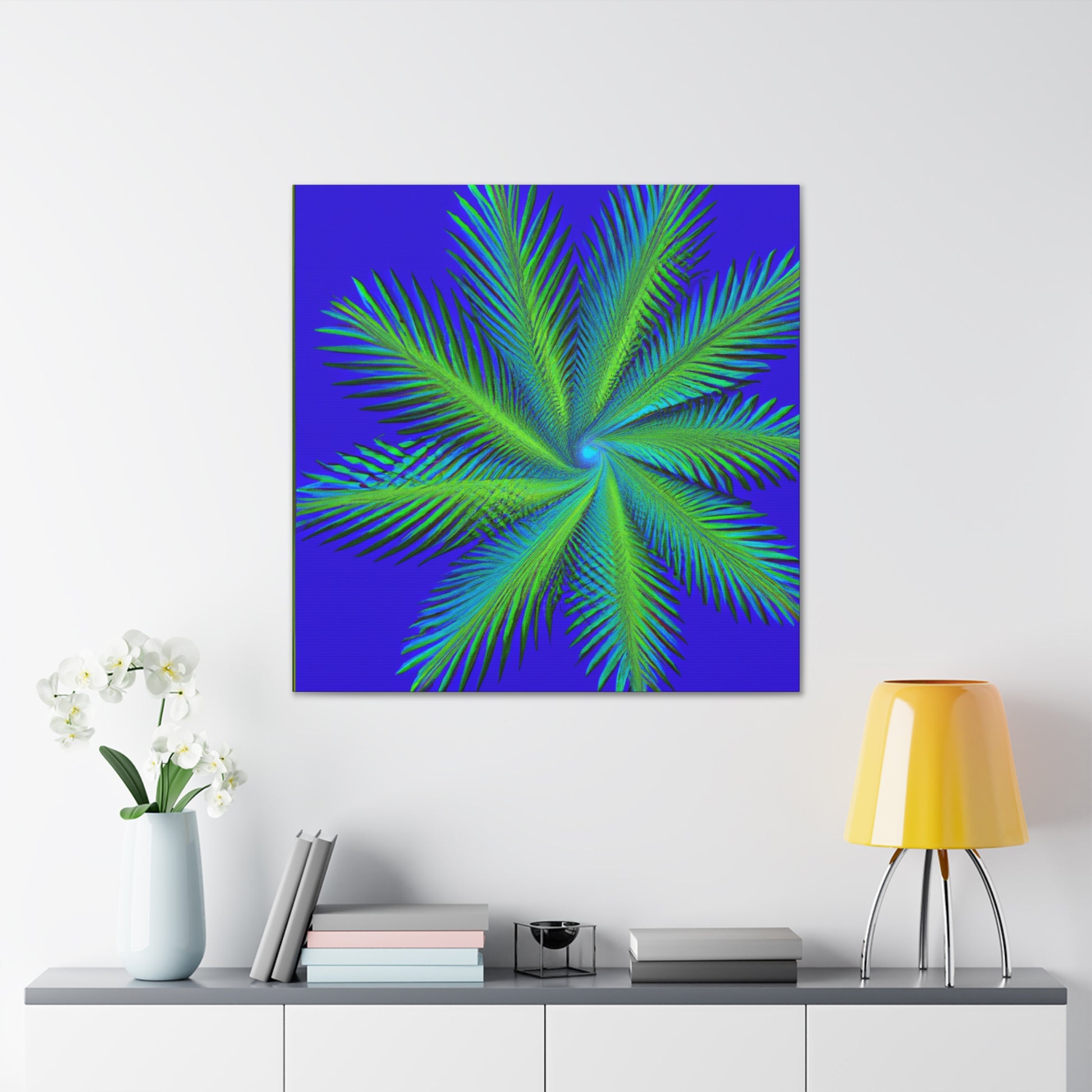 This canvas art is the perfect addition to any space! Featuring vibrant colors, abstract shapes and 3D lines, this mesmerizing abstract art will make any wall look amazing! Its serene yet eye-catching design features cascading geometric palm leaves, kaleidoscopic patterns and subtle fractal elements. Ideal for those who appreciate digital, modern and trippy art, this canvas adds a unique touch to any living space! #trippy #geometric #palmleaves #kaleidoscope #abstract #digitalart #vibrantcolors #3D #fractal #canvas #modernart #digitalpainting #beautifulart #roomdecor #homedecor #walldecor #interiordesign #interiors #artwork #ootd #style #trendy #unique #giftideas #present #creative #artist #diy