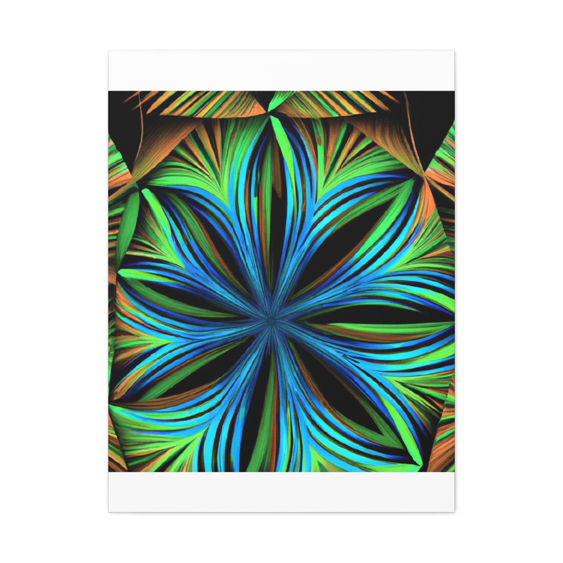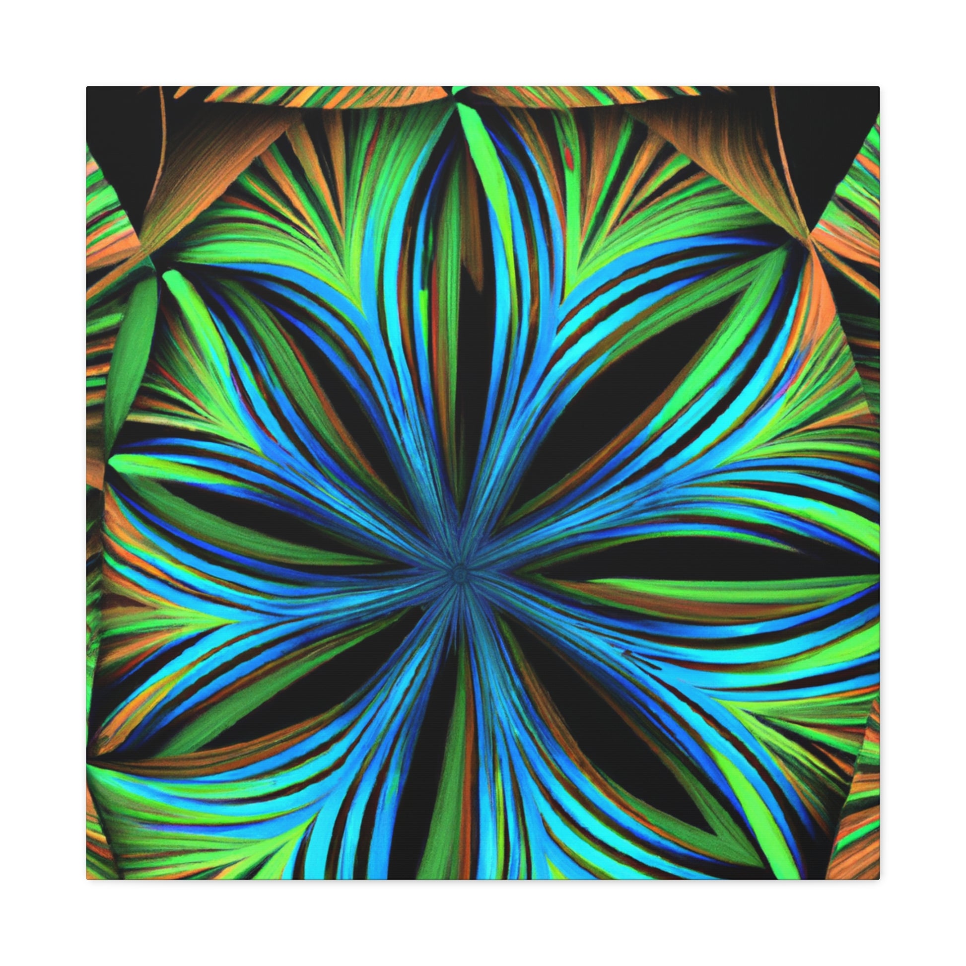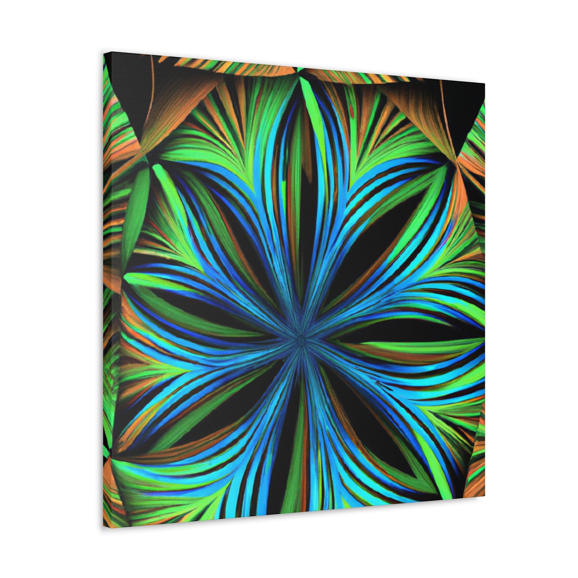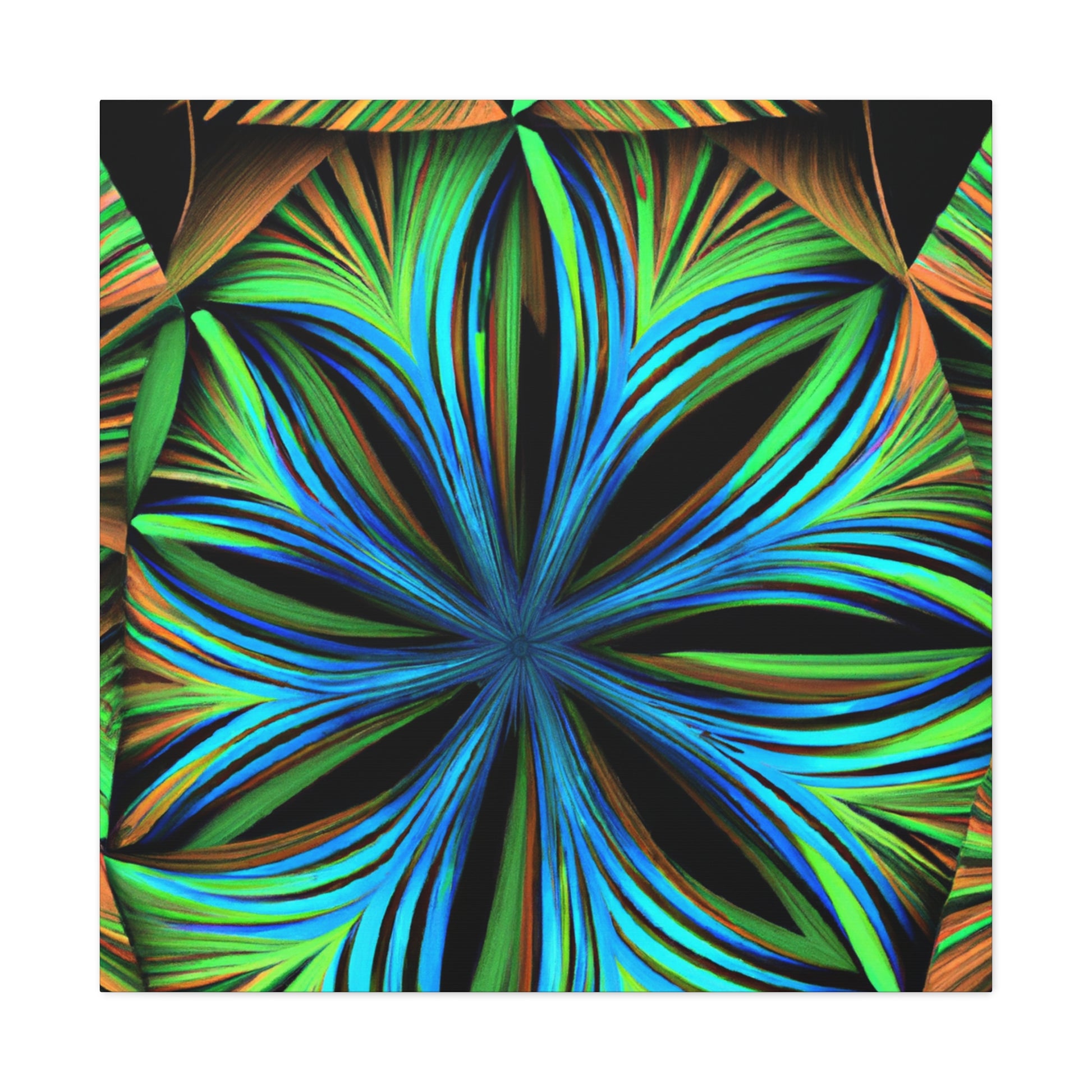 This canvas print, inspired by Kaleidoscope artwork, will never fail to enlighten your walls with its psychedelic vibes. It features abstract structures, 3D lines, fractal geometries, and a vibrant color combo. This trippy abstract art will bring an edgy, modern art aesthetic to any room, and will be a great conversation starter! #CanvasPrint #AbstractArt #Vibrant #Trippy #Geometric #PalmLeaves #Kaleidoscope #Fractal #DigitalArt #3D #Psychedelic #ModernArt #HomeDecor #WallArt #Artwork #InteriorDesign #StatementPiece #InteriorDesigner #Designer #DesignInspiration #WallMural #LivingRoom #Colorful #HomeDecor #AbstractPainting #Vivid #Design #Unique #Decoration #Style #Trendy
