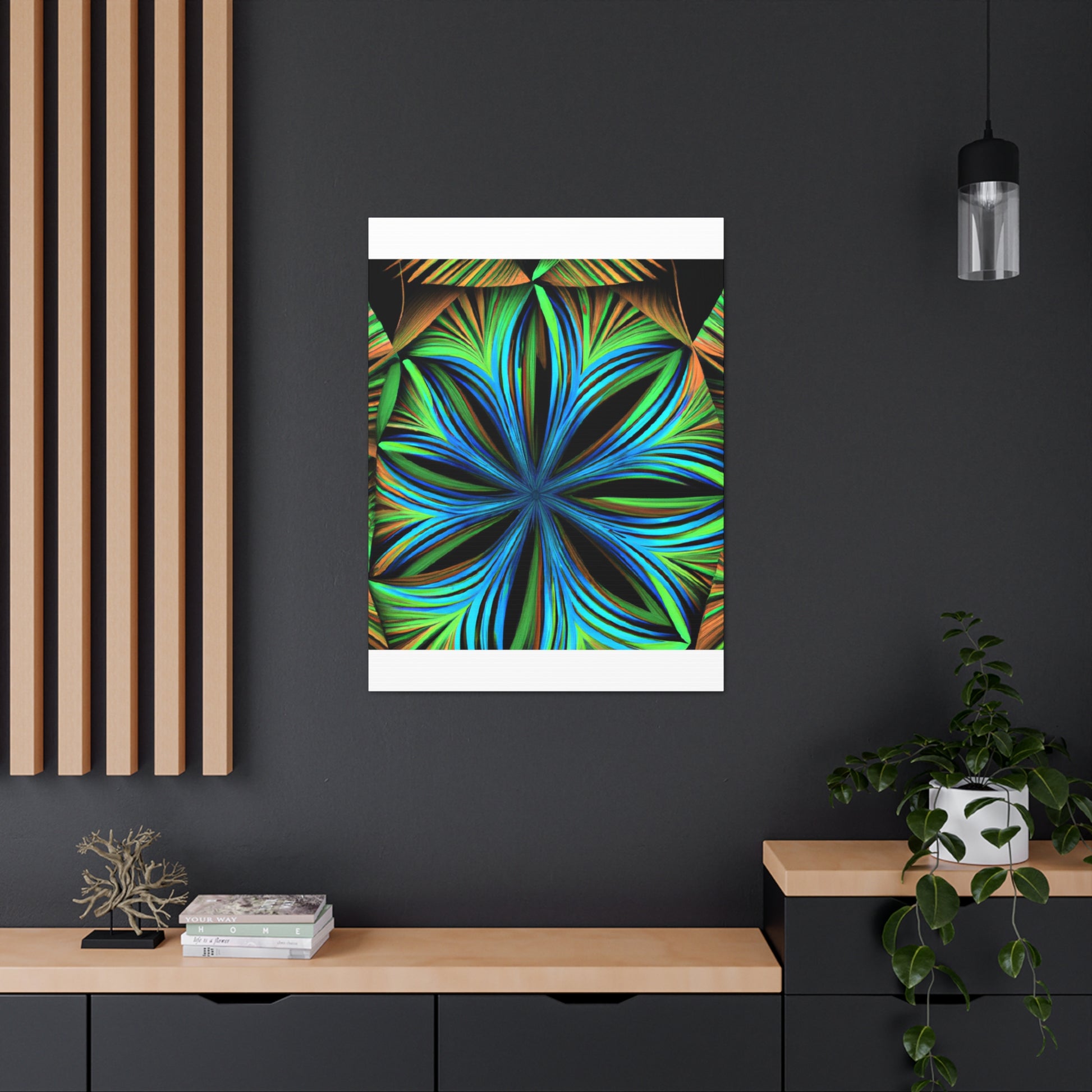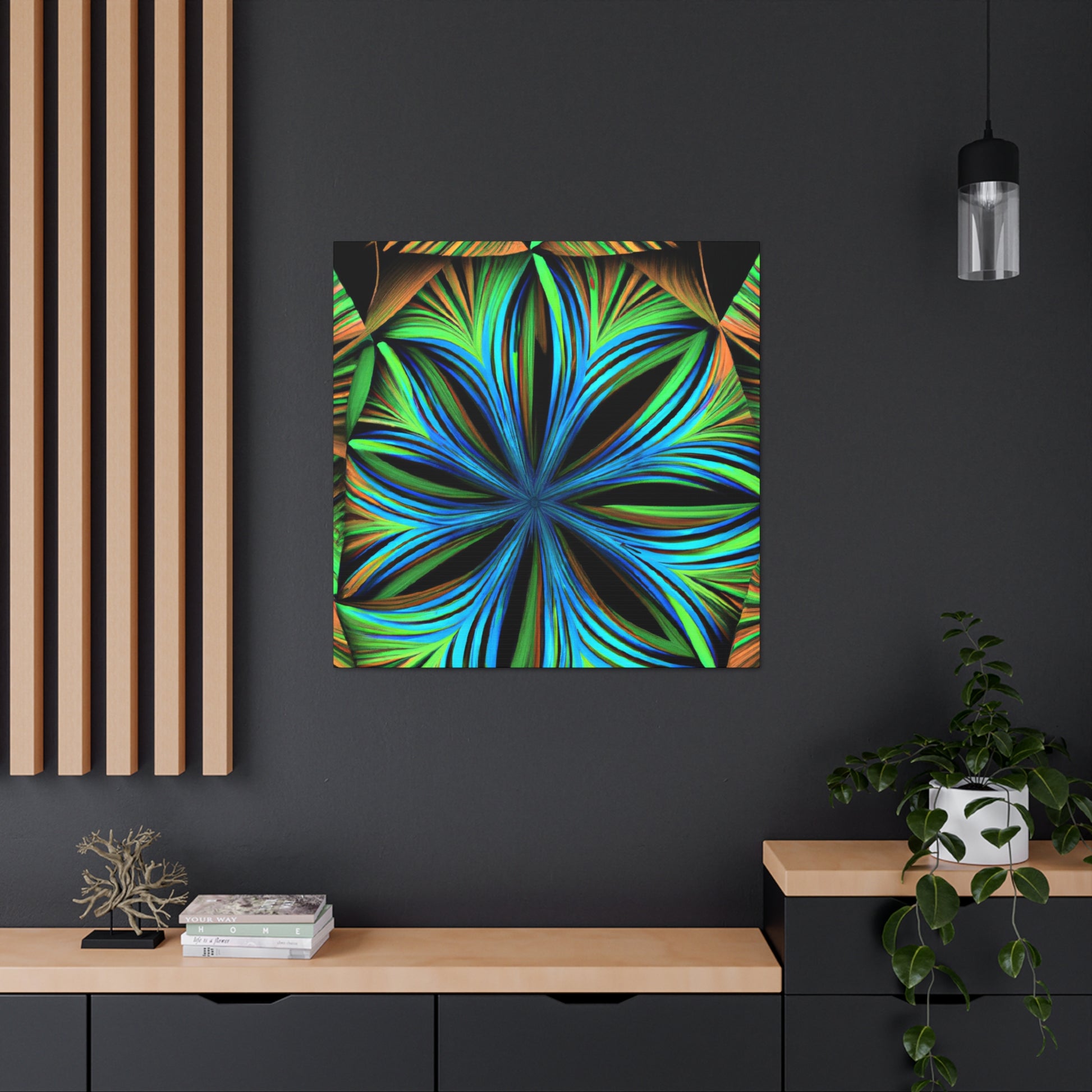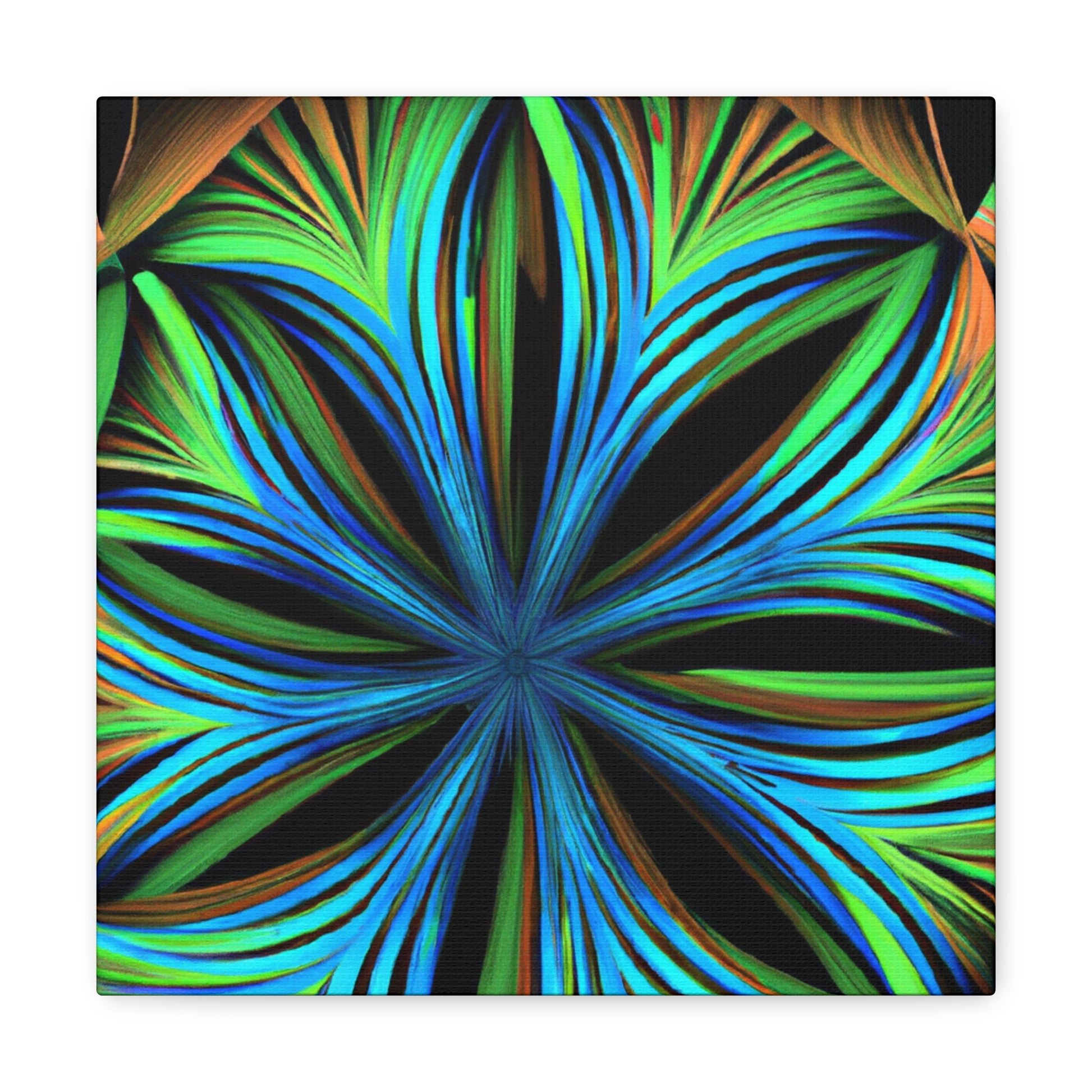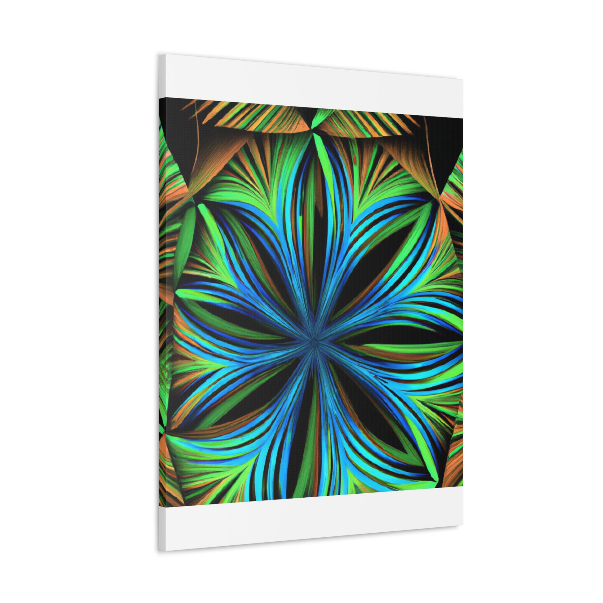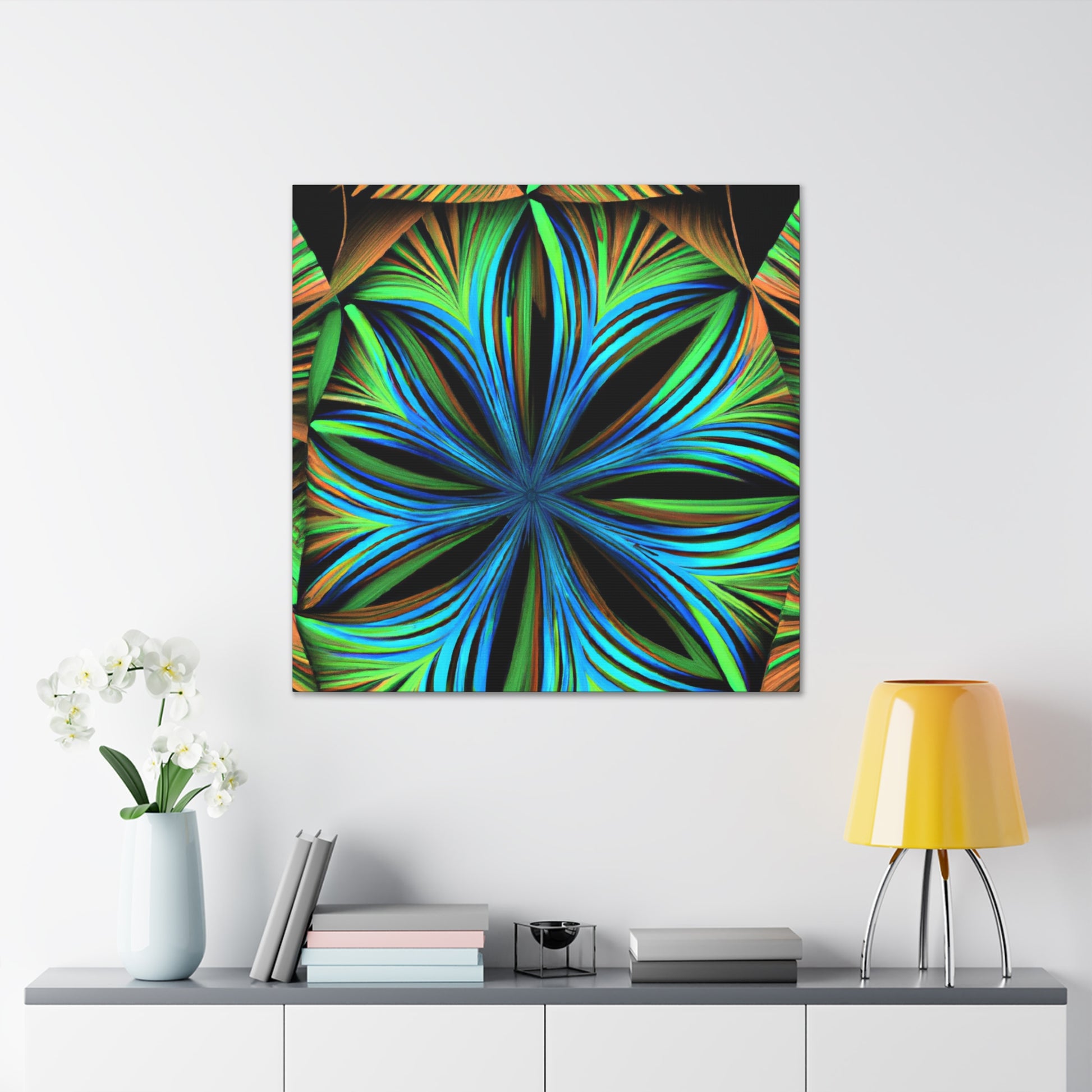 This canvas print, inspired by Kaleidoscope artwork, will never fail to enlighten your walls with its psychedelic vibes. It features abstract structures, 3D lines, fractal geometries, and a vibrant color combo. This trippy abstract art will bring an edgy, modern art aesthetic to any room, and will be a great conversation starter! #CanvasPrint #AbstractArt #Vibrant #Trippy #Geometric #PalmLeaves #Kaleidoscope #Fractal #DigitalArt #3D #Psychedelic #ModernArt #HomeDecor #WallArt #Artwork #InteriorDesign #StatementPiece #InteriorDesigner #Designer #DesignInspiration #WallMural #LivingRoom #Colorful #HomeDecor #AbstractPainting #Vivid #Design #Unique #Decoration #Style #Trendy