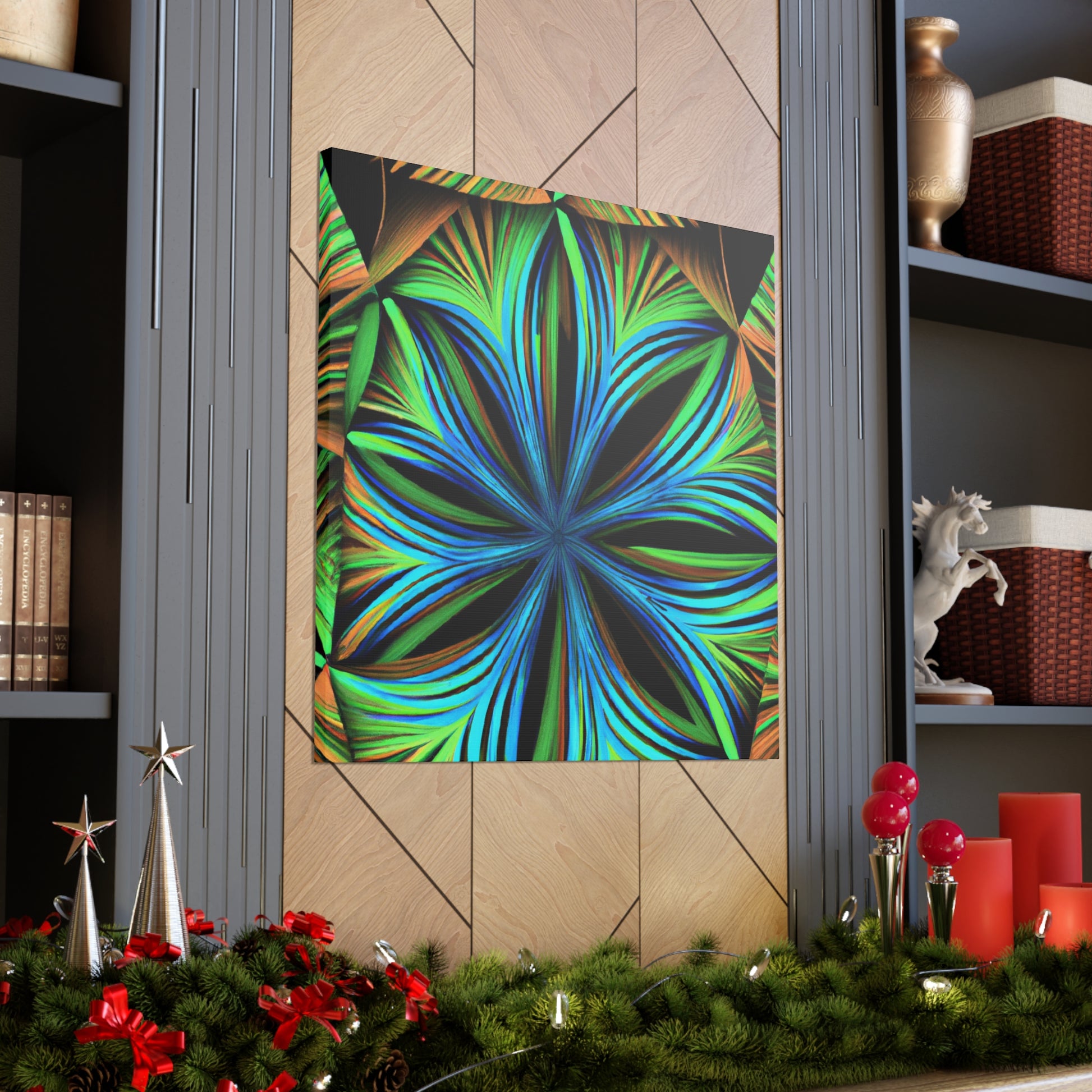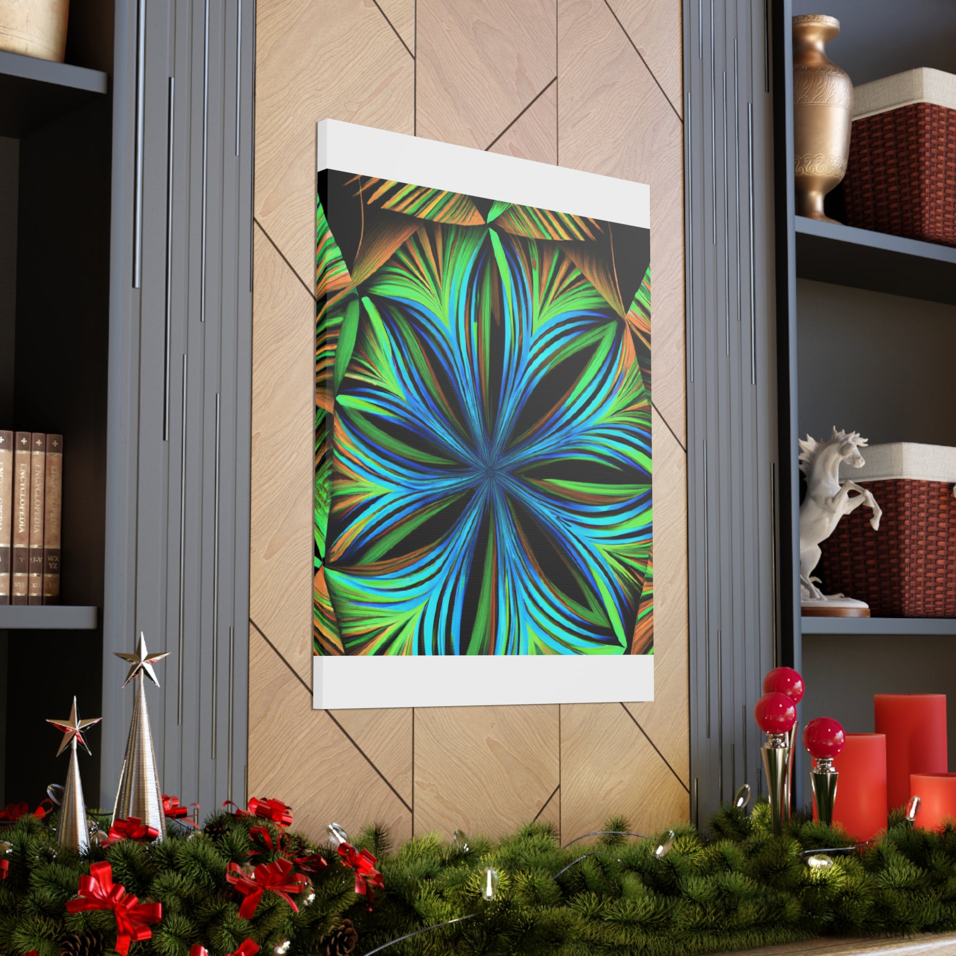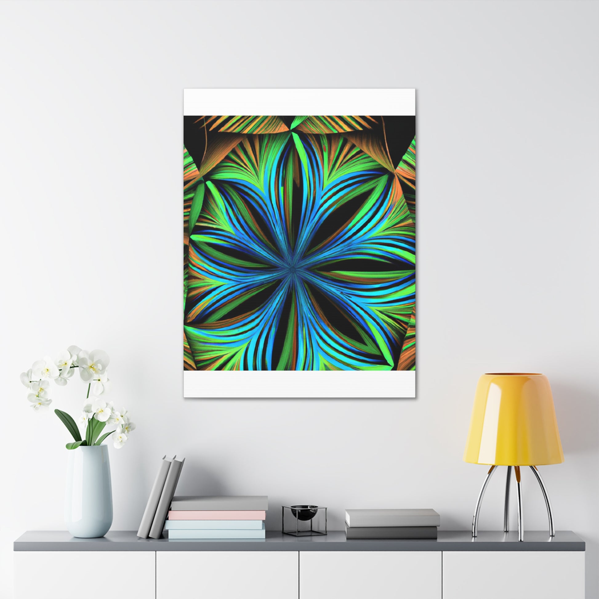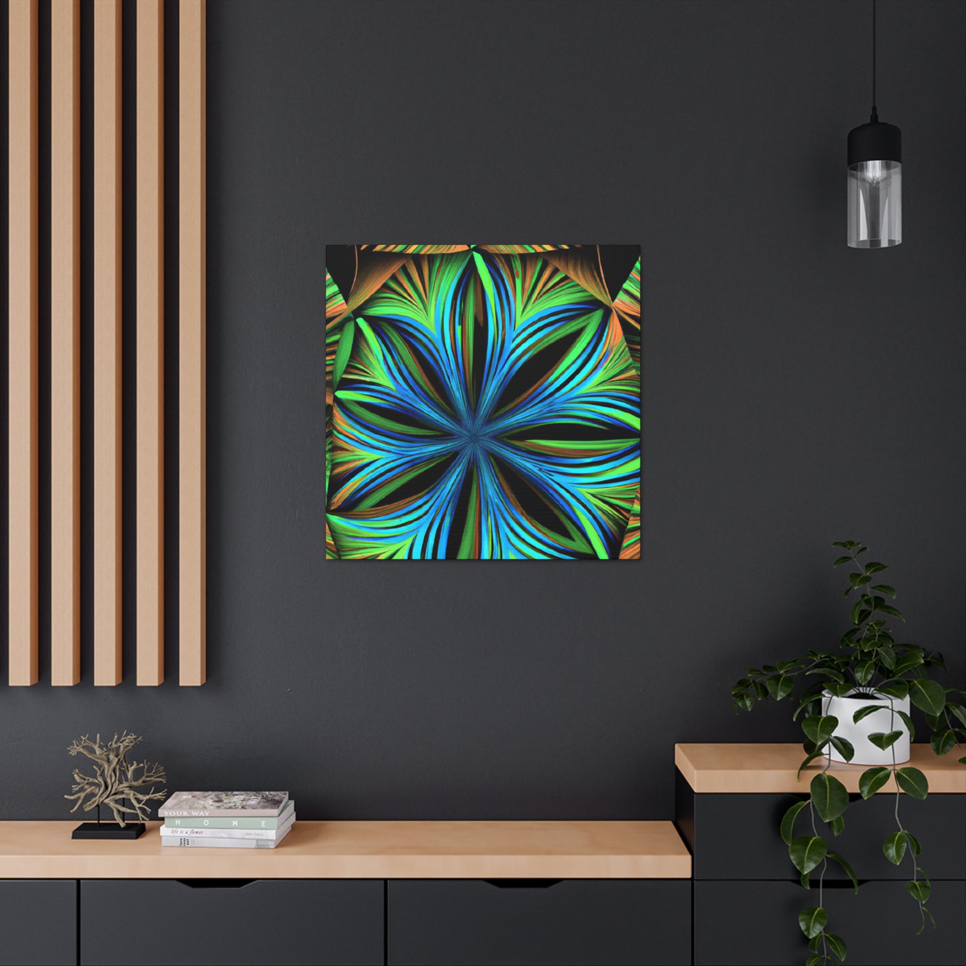 This canvas print, inspired by Kaleidoscope artwork, will never fail to enlighten your walls with its psychedelic vibes. It features abstract structures, 3D lines, fractal geometries, and a vibrant color combo. This trippy abstract art will bring an edgy, modern art aesthetic to any room, and will be a great conversation starter! #CanvasPrint #AbstractArt #Vibrant #Trippy #Geometric #PalmLeaves #Kaleidoscope #Fractal #DigitalArt #3D #Psychedelic #ModernArt #HomeDecor #WallArt #Artwork #InteriorDesign #StatementPiece #InteriorDesigner #Designer #DesignInspiration #WallMural #LivingRoom #Colorful #HomeDecor #AbstractPainting #Vivid #Design #Unique #Decoration #Style #Trendy