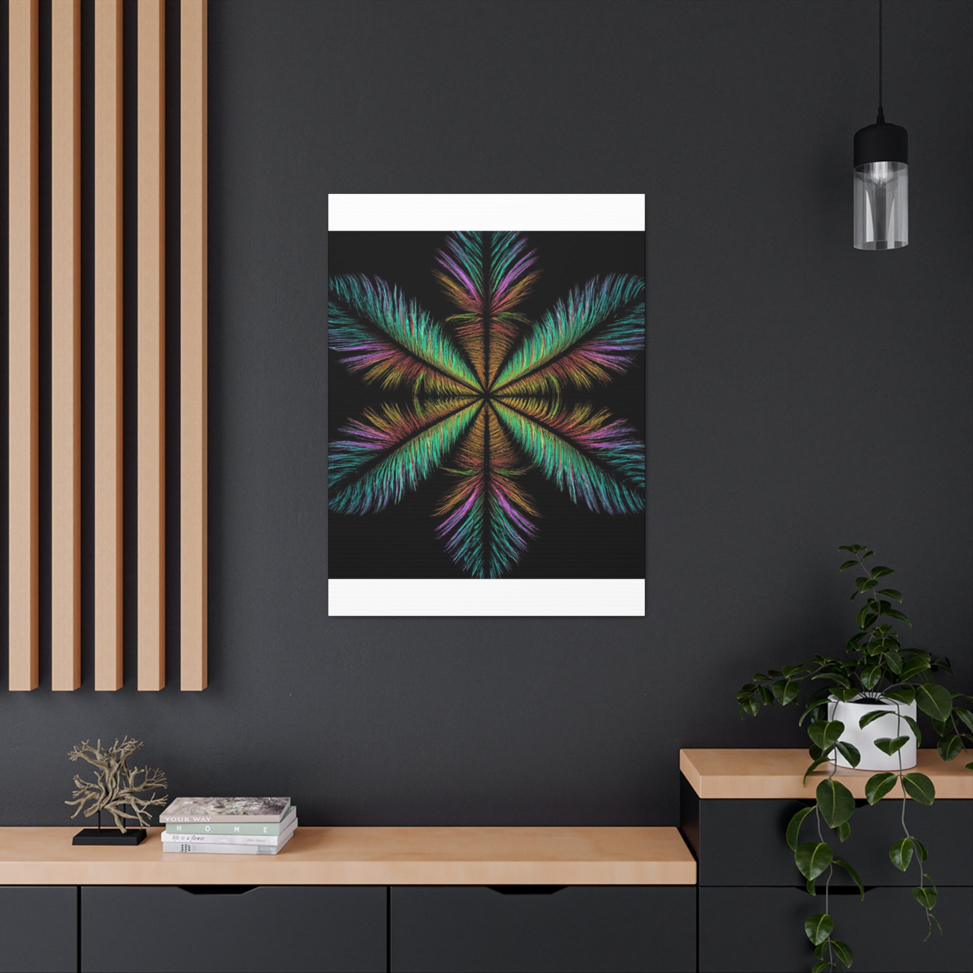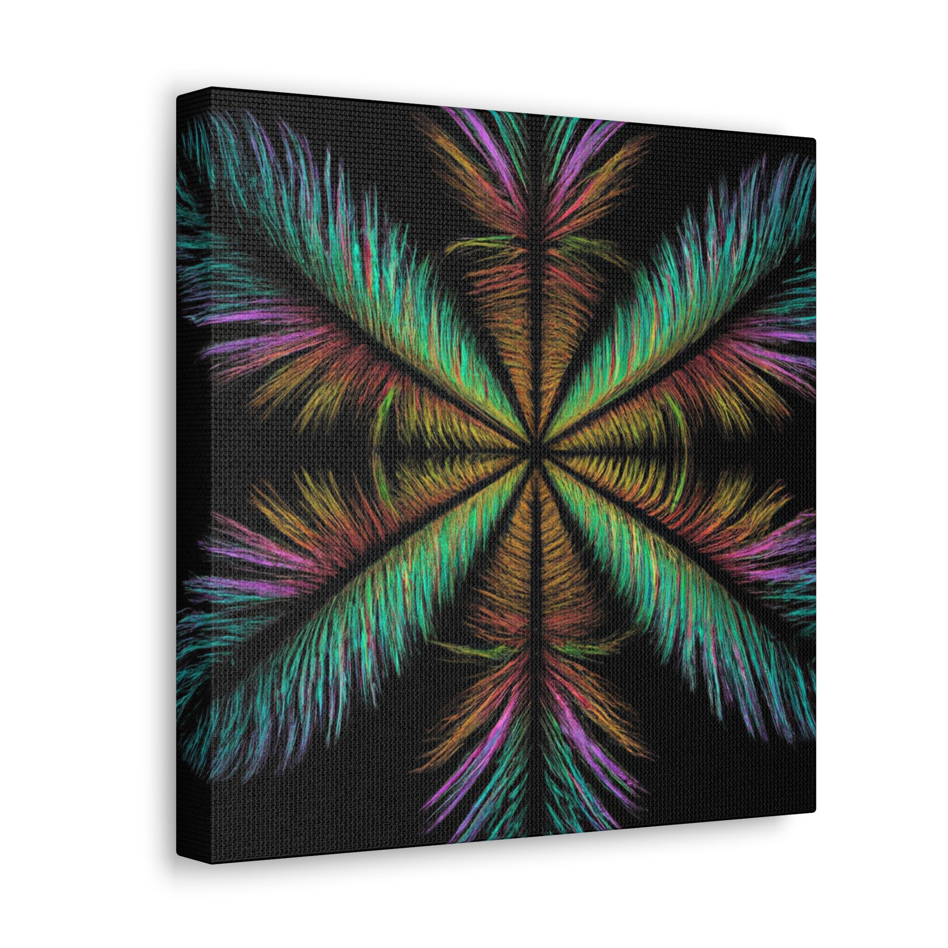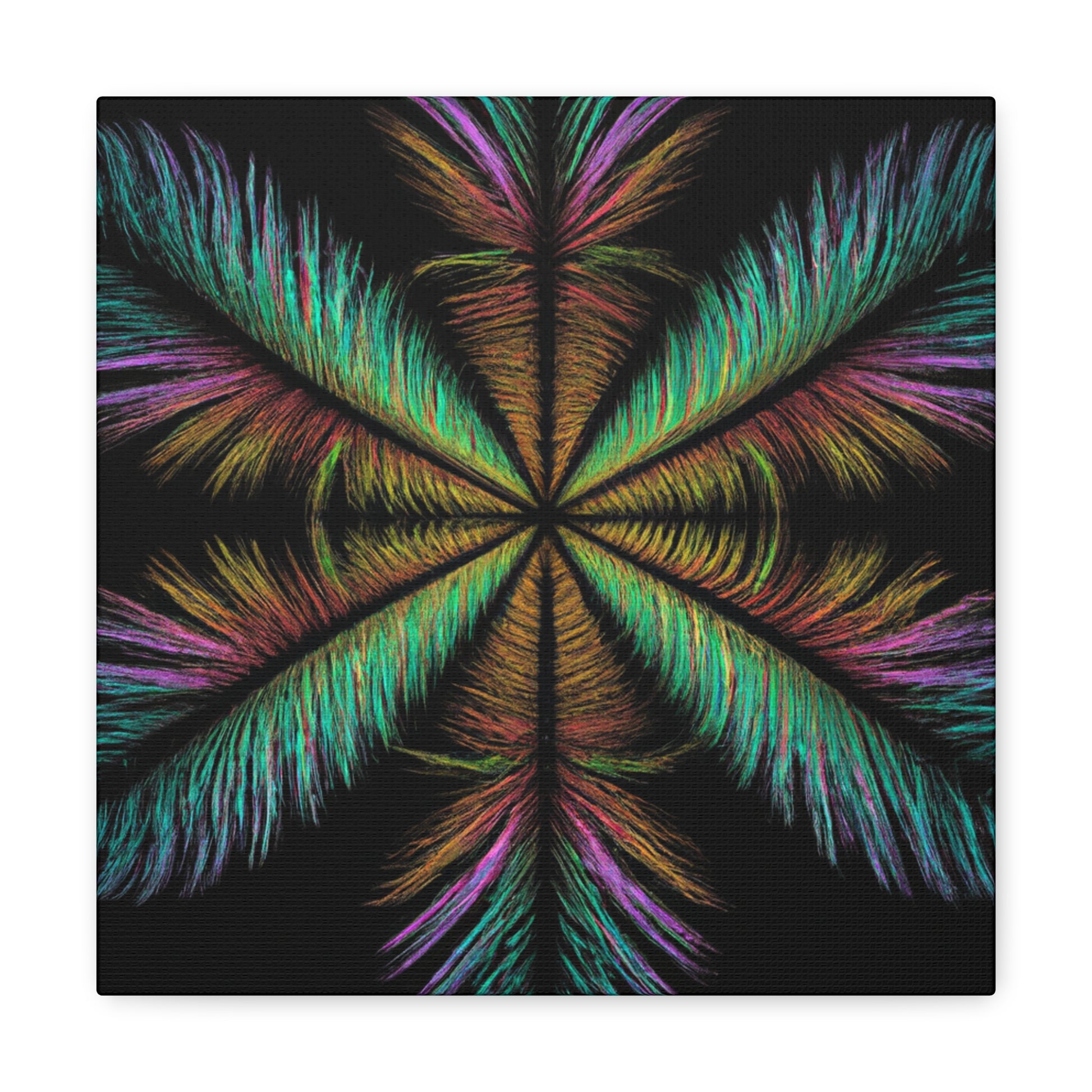 This abstract canvas is a beautiful work of art with its vibrant trippy colors and 3D geometric lines. A kaleidoscope of digitally-induced fractal palm leaves make this wallart the perfect piece to enhance any room. Add a modern touch to your home decor with this unique canvas featuring abstract shapes and colors. #abstractart #3dlines #geometric #trippyart #kaleidoscope #fractalart #digitalpainting #vibrantcolors #wallart #canvasart #palmleaves #decor #modernart #homedecor #beautifulart #3dshapes #abstractshapes #digitalart #shapesandlines #fractal #uniquepiece #vibes #style #roomdecor #centerpiece #ambience #elegance #atmosphere #decoration #techart #luxurylifeandstyle