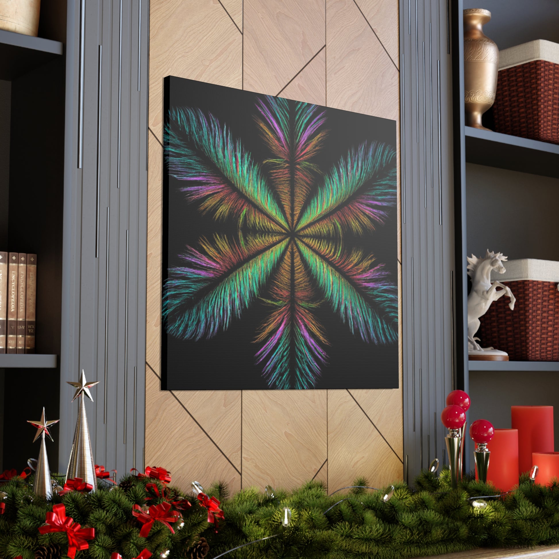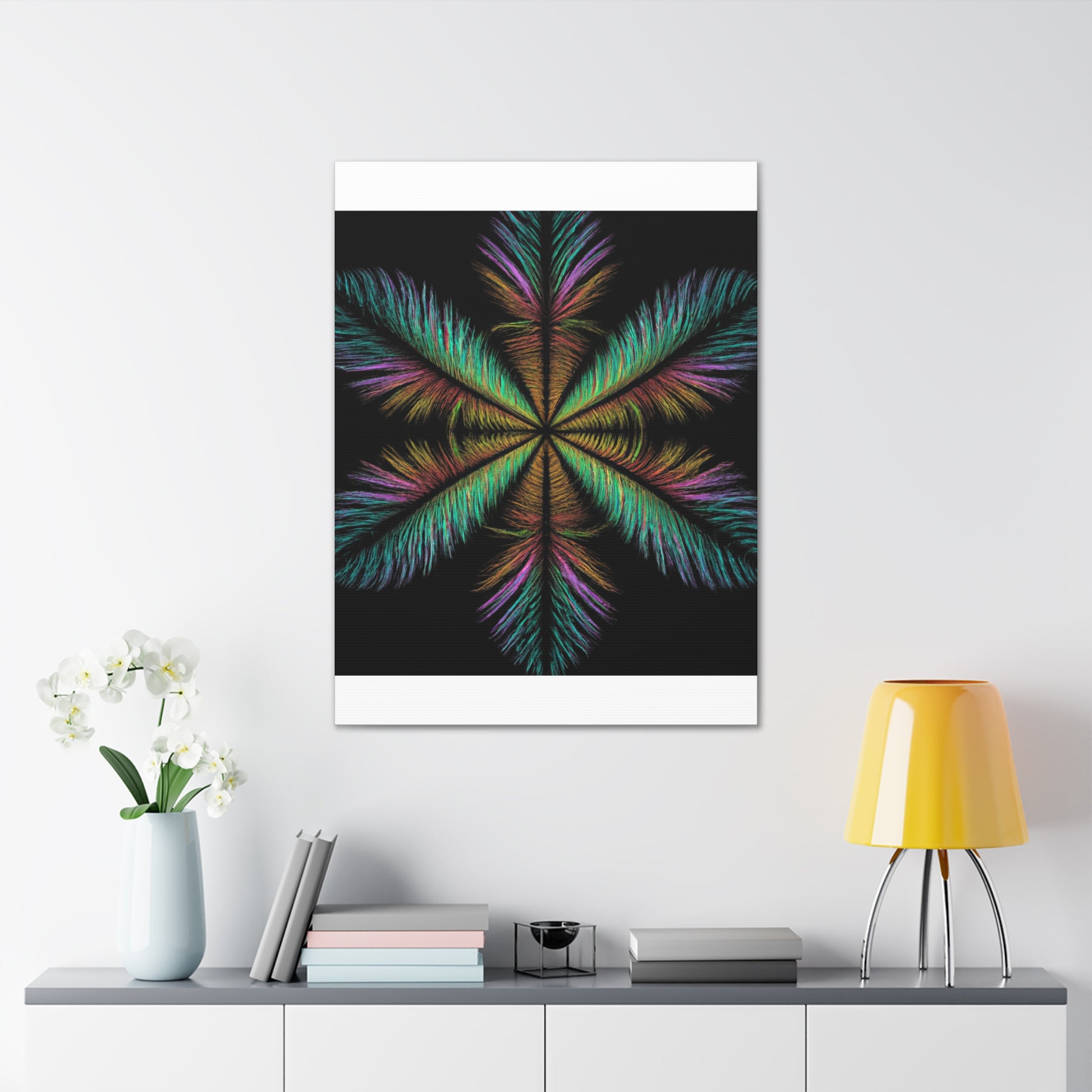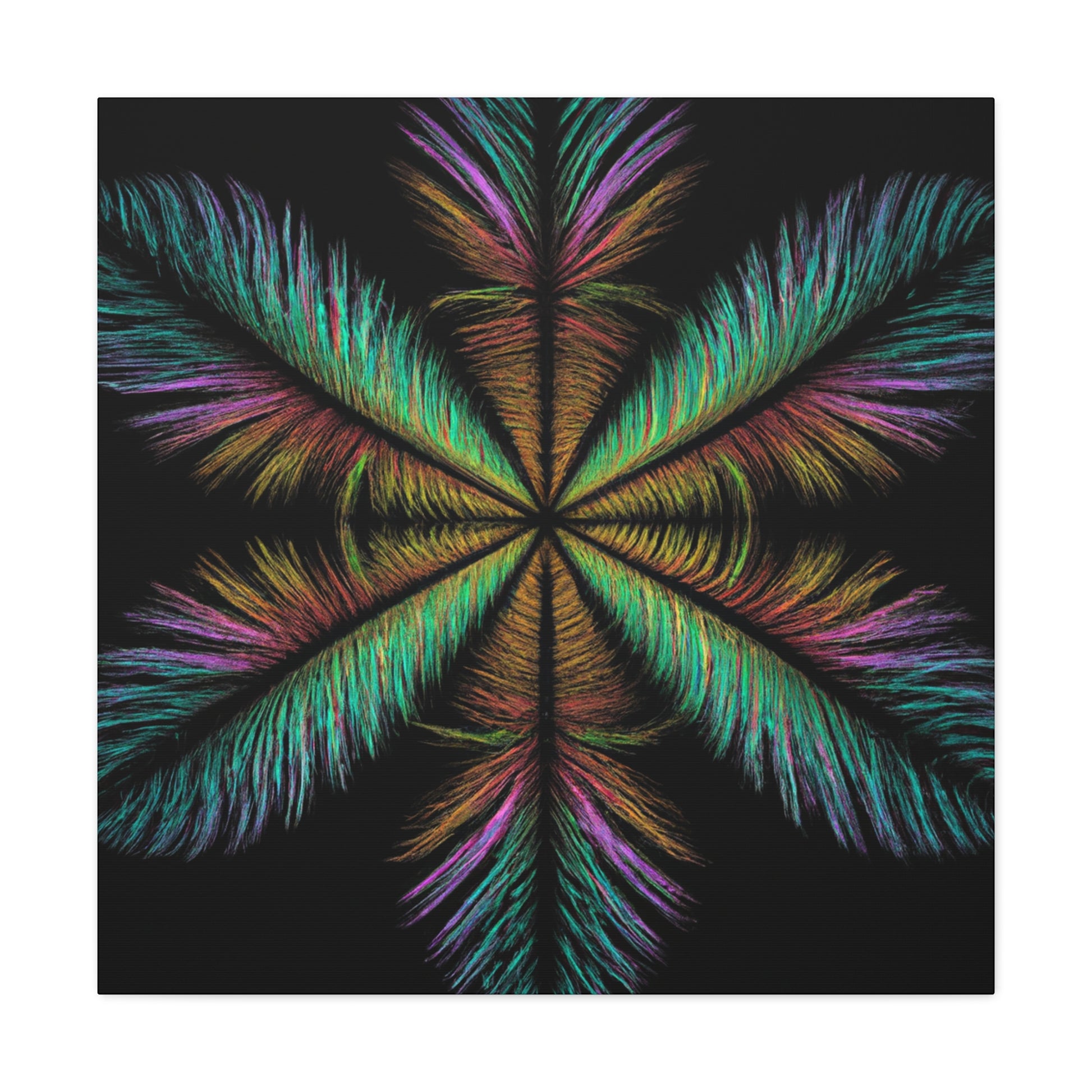 This abstract canvas is a beautiful work of art with its vibrant trippy colors and 3D geometric lines. A kaleidoscope of digitally-induced fractal palm leaves make this wallart the perfect piece to enhance any room. Add a modern touch to your home decor with this unique canvas featuring abstract shapes and colors. #abstractart #3dlines #geometric #trippyart #kaleidoscope #fractalart #digitalpainting #vibrantcolors #wallart #canvasart #palmleaves #decor #modernart #homedecor #beautifulart #3dshapes #abstractshapes #digitalart #shapesandlines #fractal #uniquepiece #vibes #style #roomdecor #centerpiece #ambience #elegance #atmosphere #decoration #techart #luxurylifeandstyle