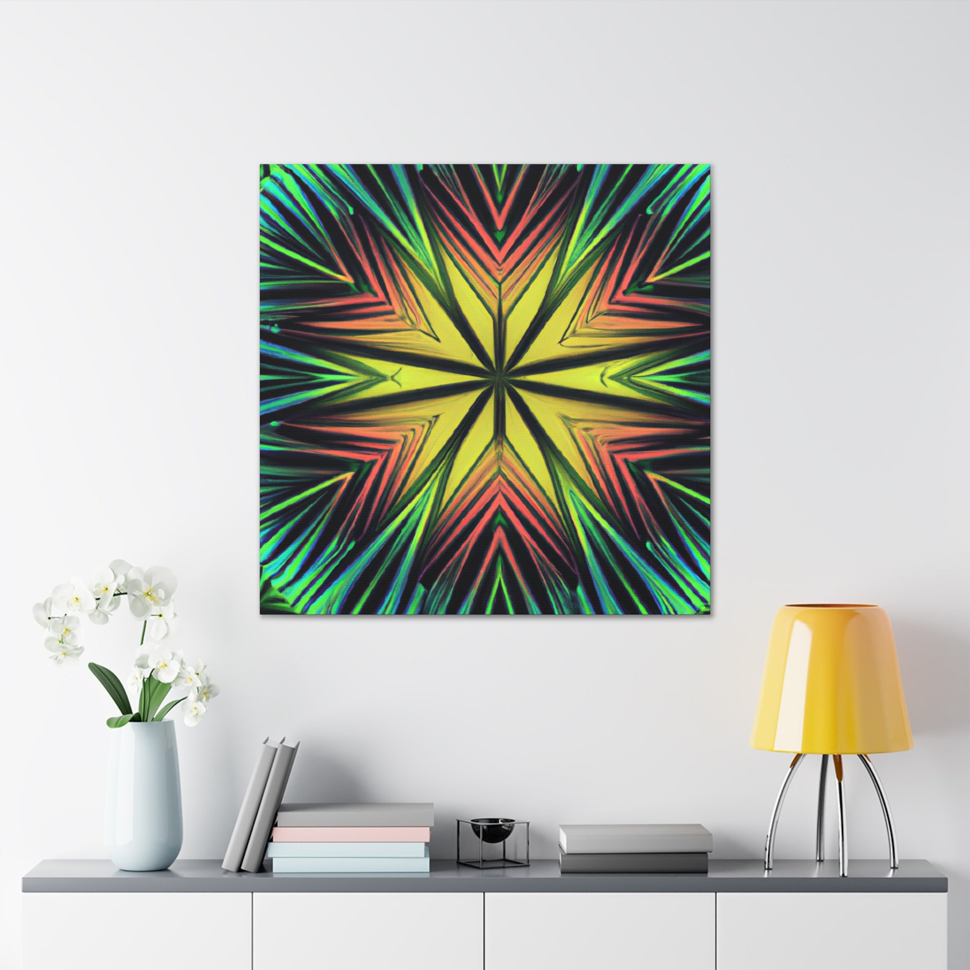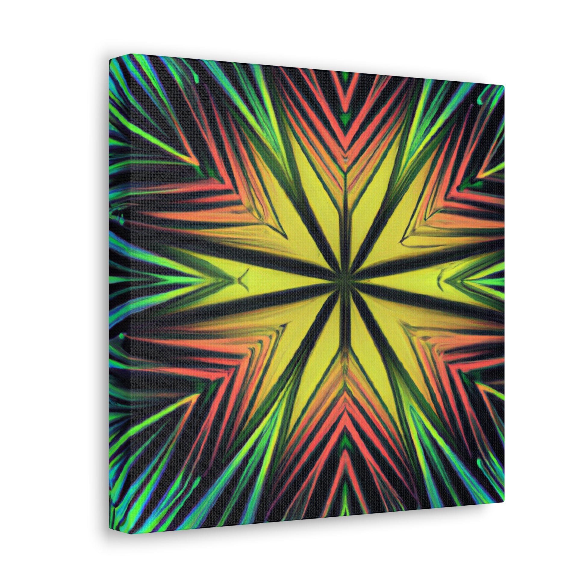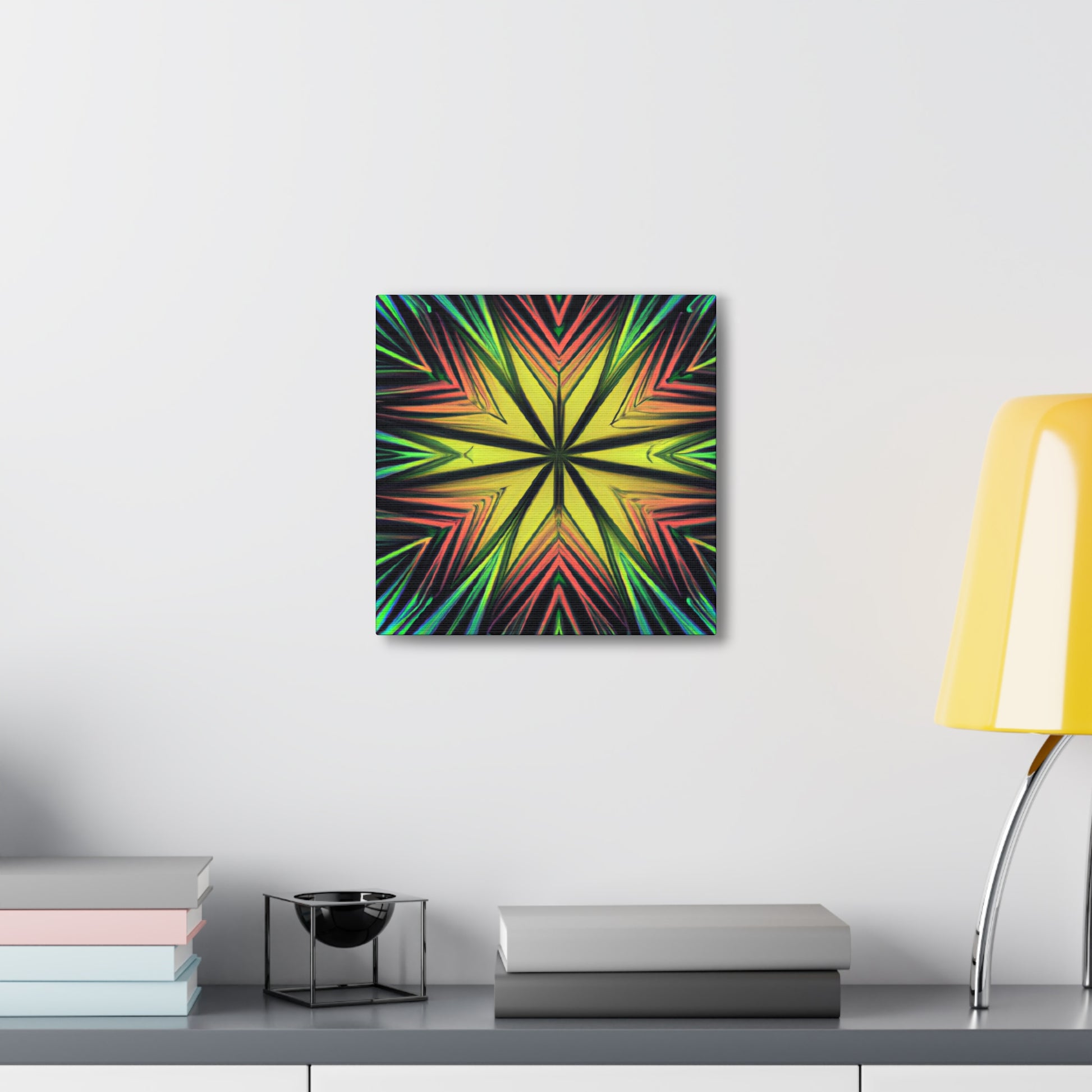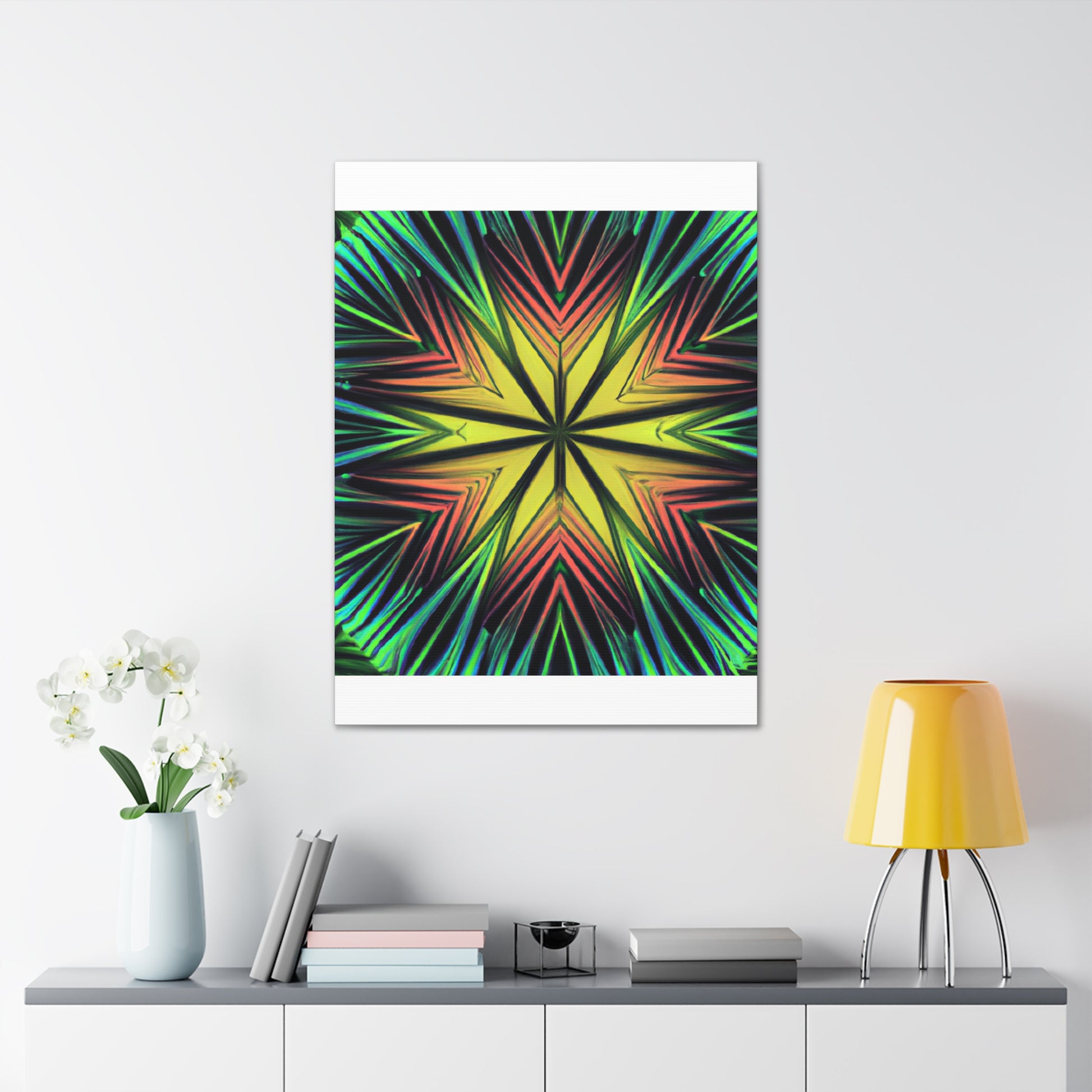This is a unique canvas art with vibrant colors and abstract features like 3D lines and fractal palm leaves. It stands out from the crowd with its trippy geometric design and beautiful digital kaleidoscope art. The perfect combination of colors and patterns makes it a unique piece that is sure to be a statement in any room. #digitalart #kaleidoscope #canvasart #canvaspainting #vibrantcolors #3dlines #fractalart #abstractart #geometricart #trippyart #statementart #interiorgoals #roomdecor #wallhangings #walldecor #palmleaves #uniquepiece #interiordesign #homedecor #modernart #decorativewall #designinspo #artlover #pointedshapes #abstractdesigns #decorativetouch #interiors #digitalspace #futuristicart #stylinginspiration #creativetouch