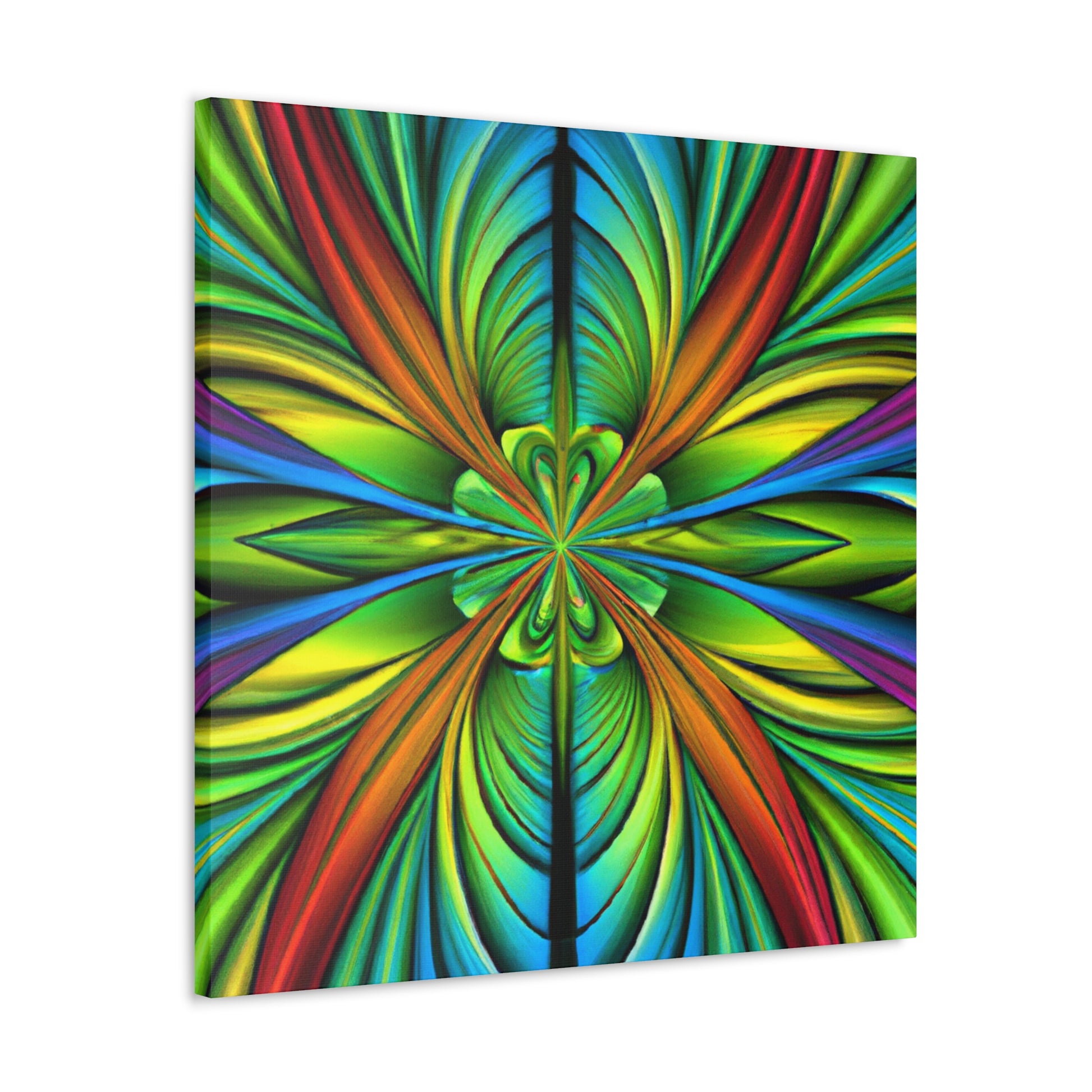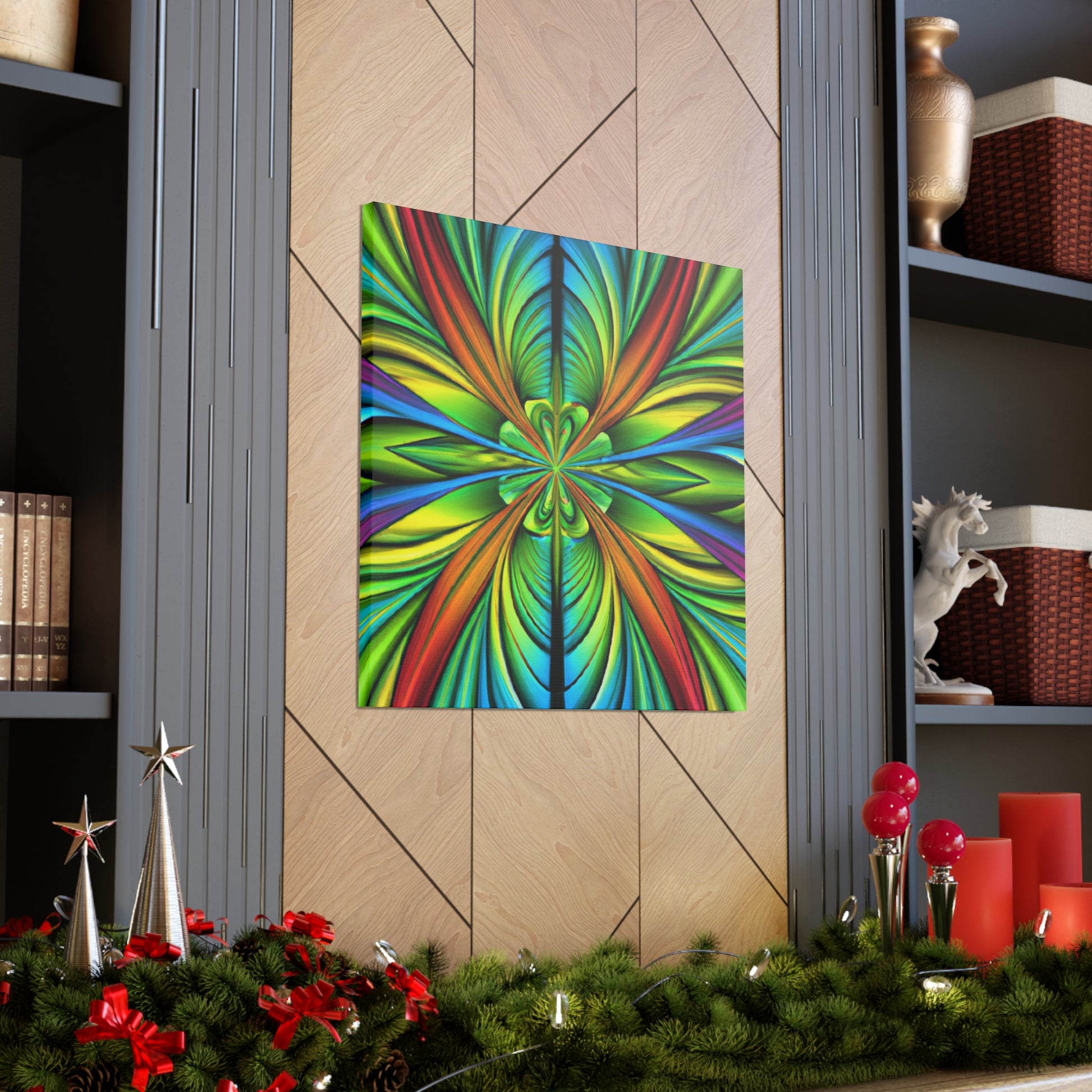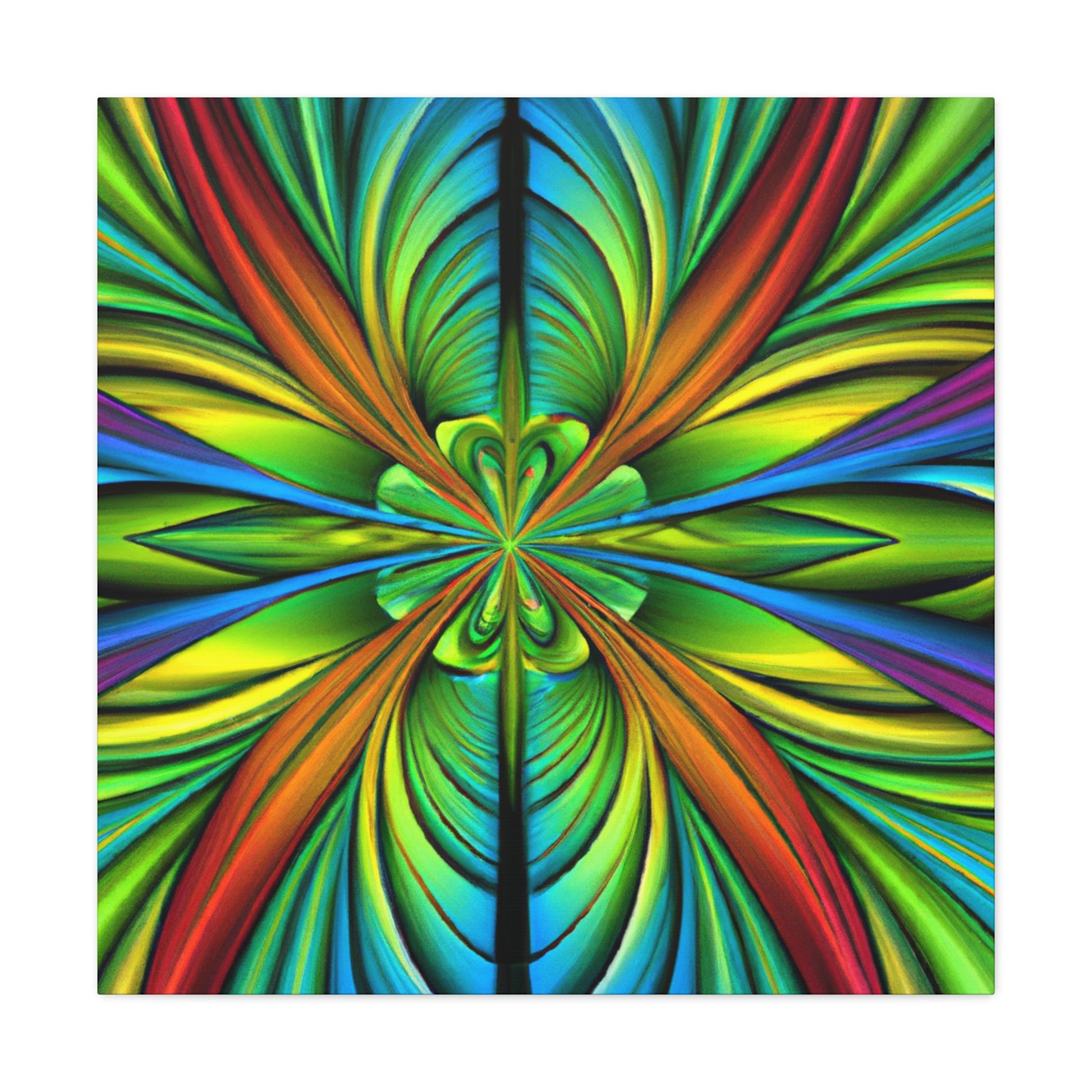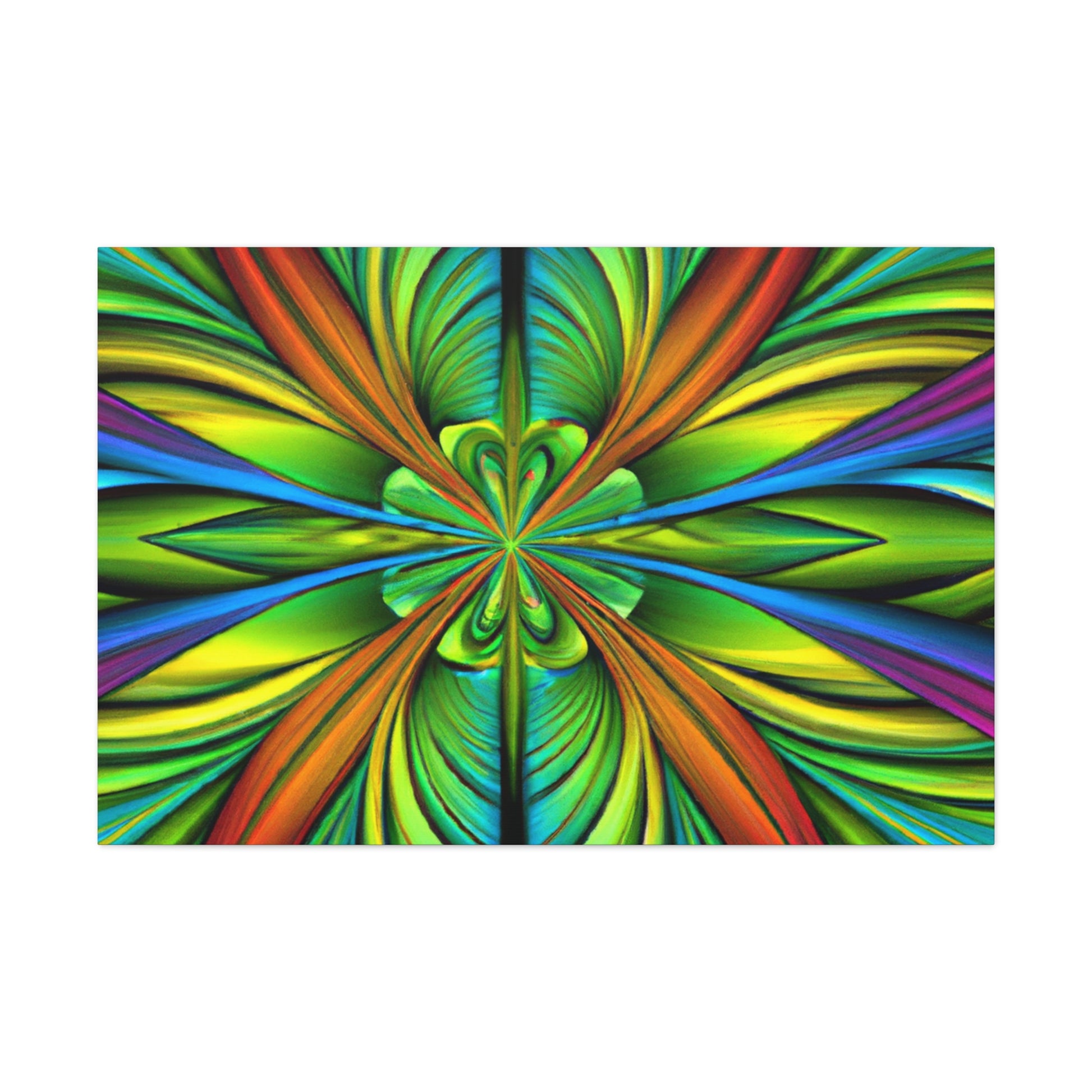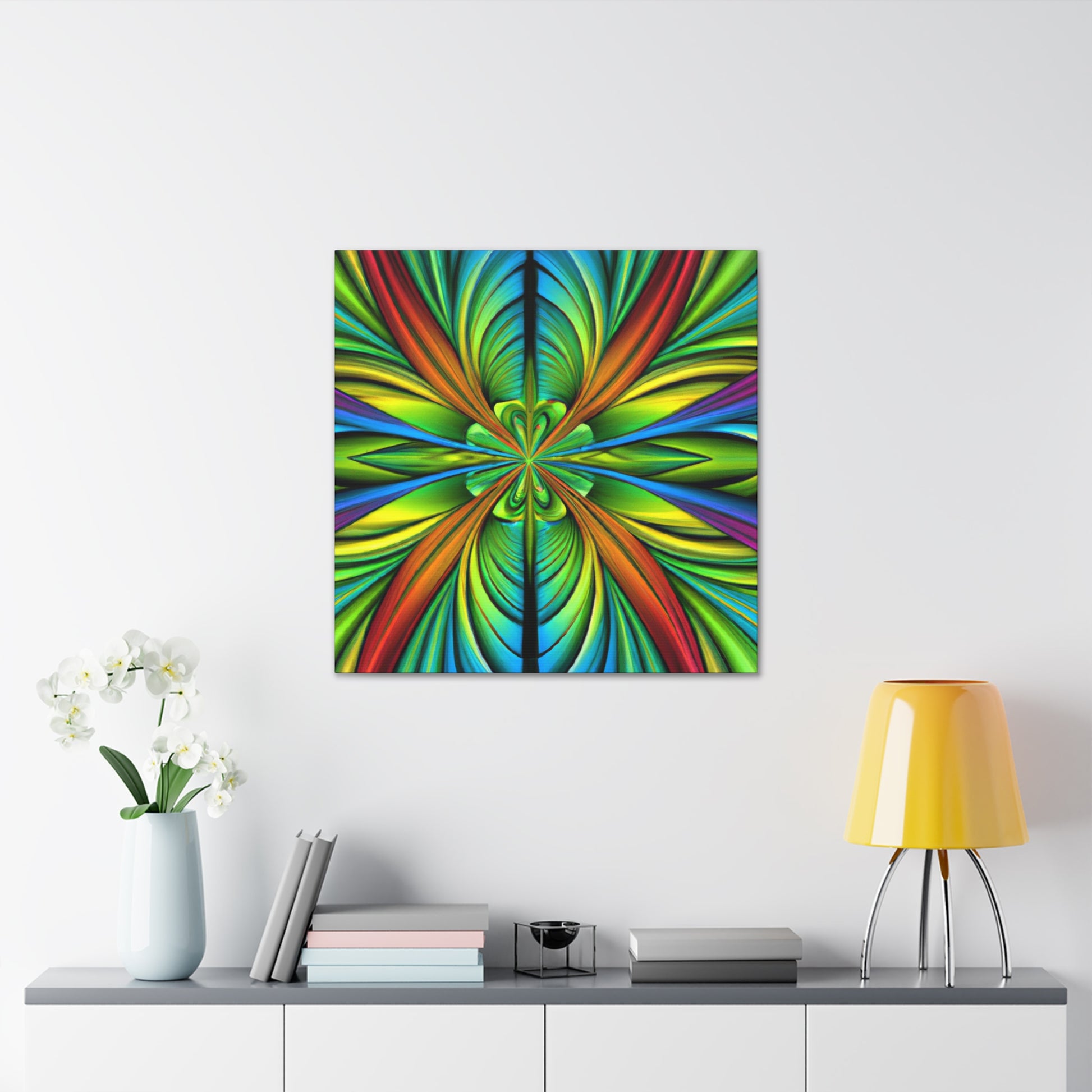 Add a bold statement of life to your walls with this canvas of trippy geometric palm leaves bursting with kaleidoscope of abstract digital art and vibrant colors. The 3D lines and fractal designs are a beautiful mess of movement and colors perfect to spruce up any room! #abstractart #aritst #colorful #mixedmedia #artwork #geometric #fractal #wallcanvas #digitalart #palmleaves #kaleidoscope