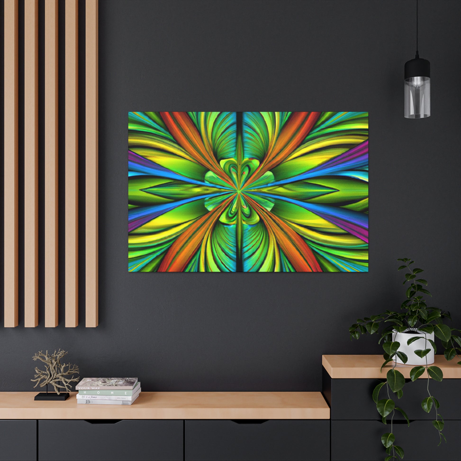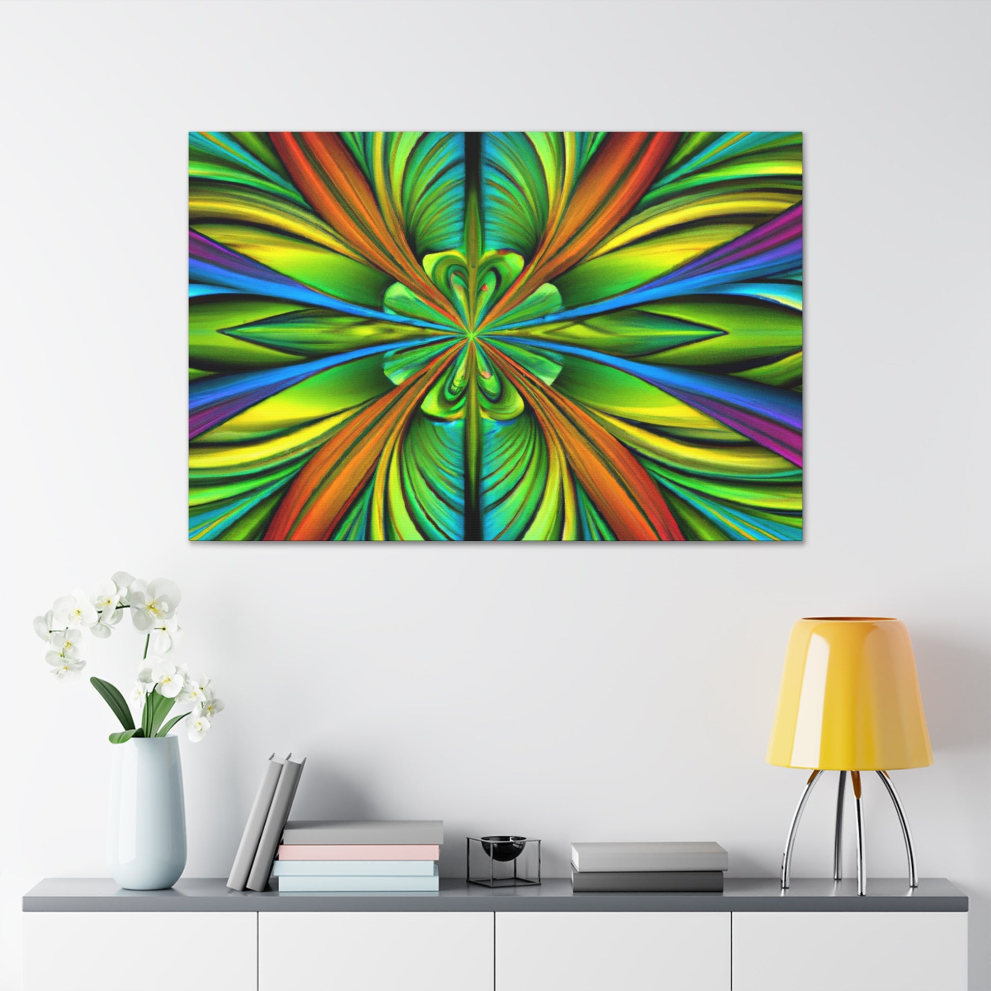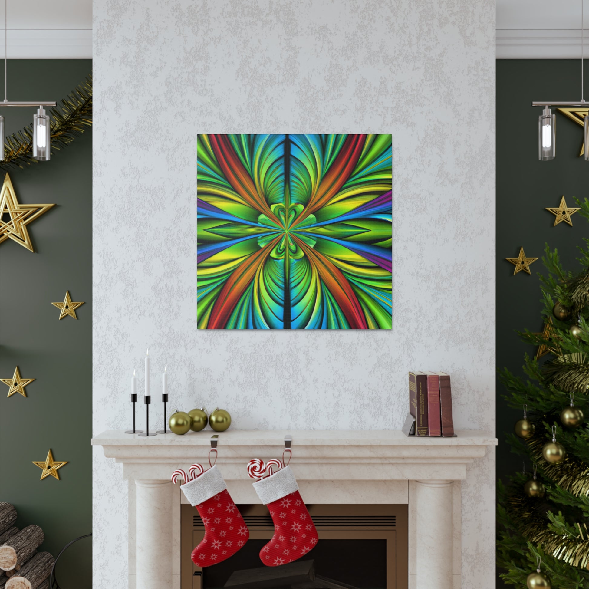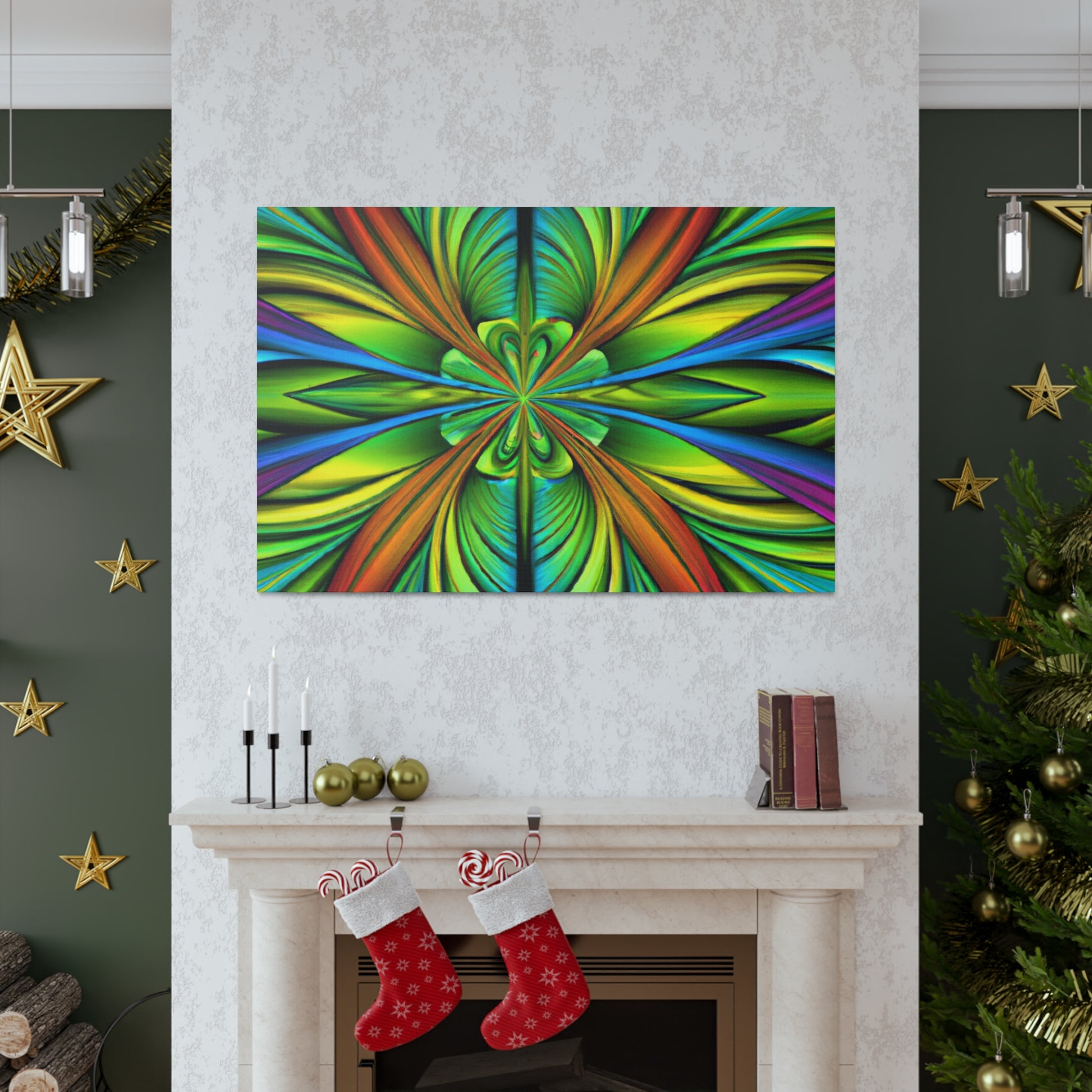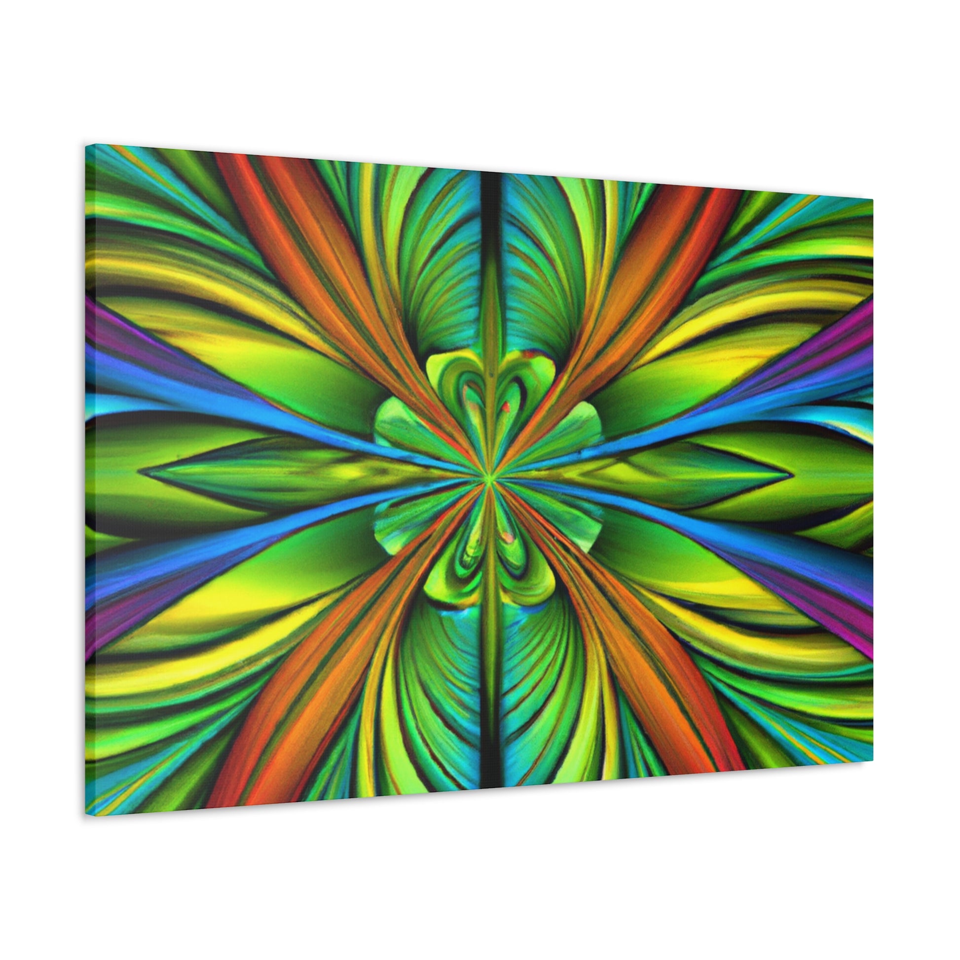 Add a bold statement of life to your walls with this canvas of trippy geometric palm leaves bursting with kaleidoscope of abstract digital art and vibrant colors. The 3D lines and fractal designs are a beautiful mess of movement and colors perfect to spruce up any room! #abstractart #aritst #colorful #mixedmedia #artwork #geometric #fractal #wallcanvas #digitalart #palmleaves #kaleidoscope