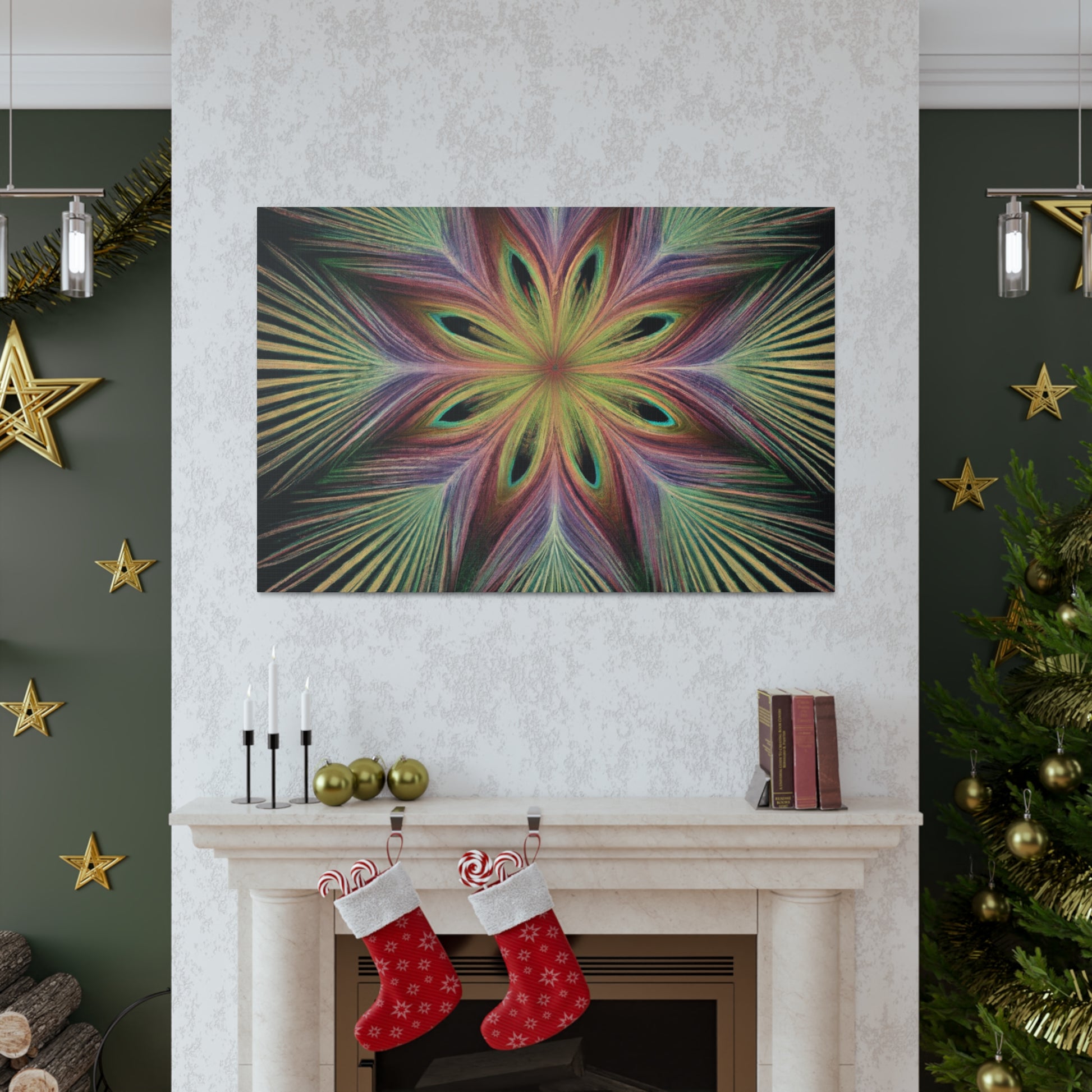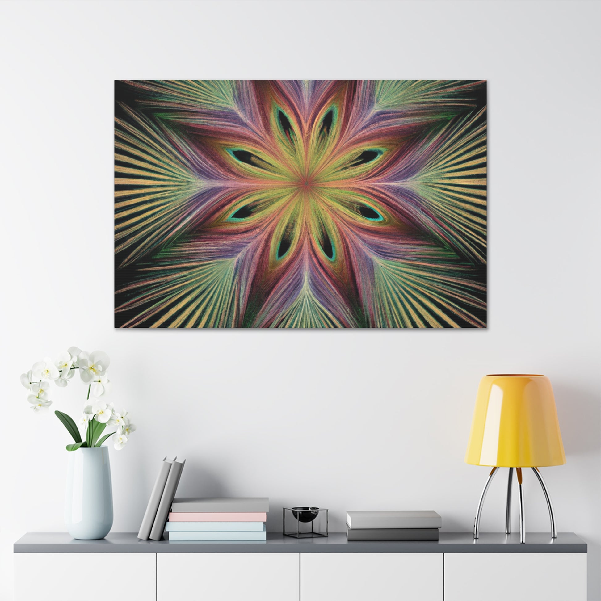 This canvas is sure to bring a unique, eye-catching statement to any wall and will turn any room into a vibrant and mesmerizing space. Featuring a Trippy mix of geometric palm leaves, kaleidoscope, abstract, digital art, and 3D lines all immersed in vibrant colors, this masterpiece is sure to captivate. The addition of a psychedelic fractal only amplifies the psychedelic and surreal nature of this 3D artwork making it an incredible addition to any room. #Canvas #WallDecor #Abstract #DigitalArt #VibrantColors #3DLines #Fractal #Geometric #PalmLeaves #Kaleidoscope #Psychedelic