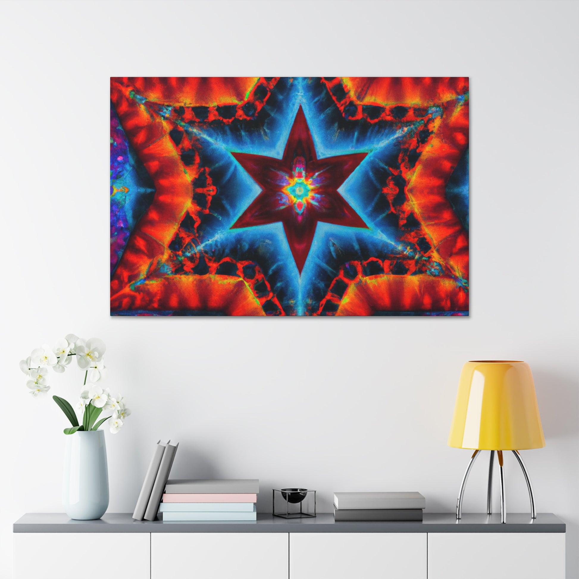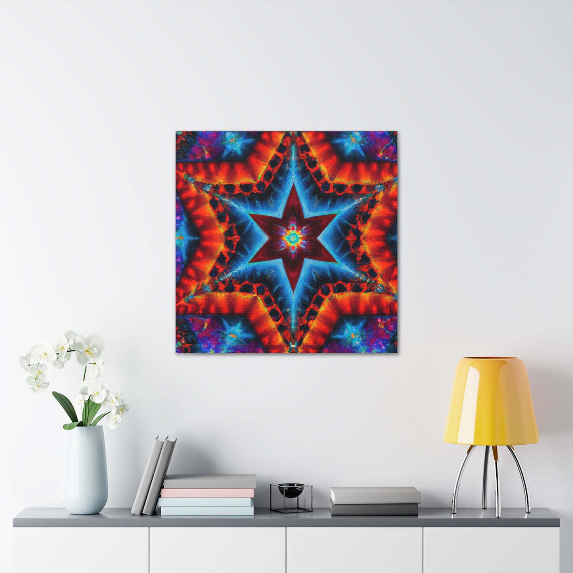This beautiful and vibrant digital art canvas will take your breath away! Featuring an amazing abstract design of trippy stars, kaleidoscope, and symmetrical patterns in stunning HD and vivid colors, it'll bring a creative and unique energy to any room. Add this eye-catching statement piece to your home today! #abstractart #digitalart #canvasart #vibrantcolors #trippystars #kaleidoscope #statementpiece #homedecor #symmetrical #HDart #wallart