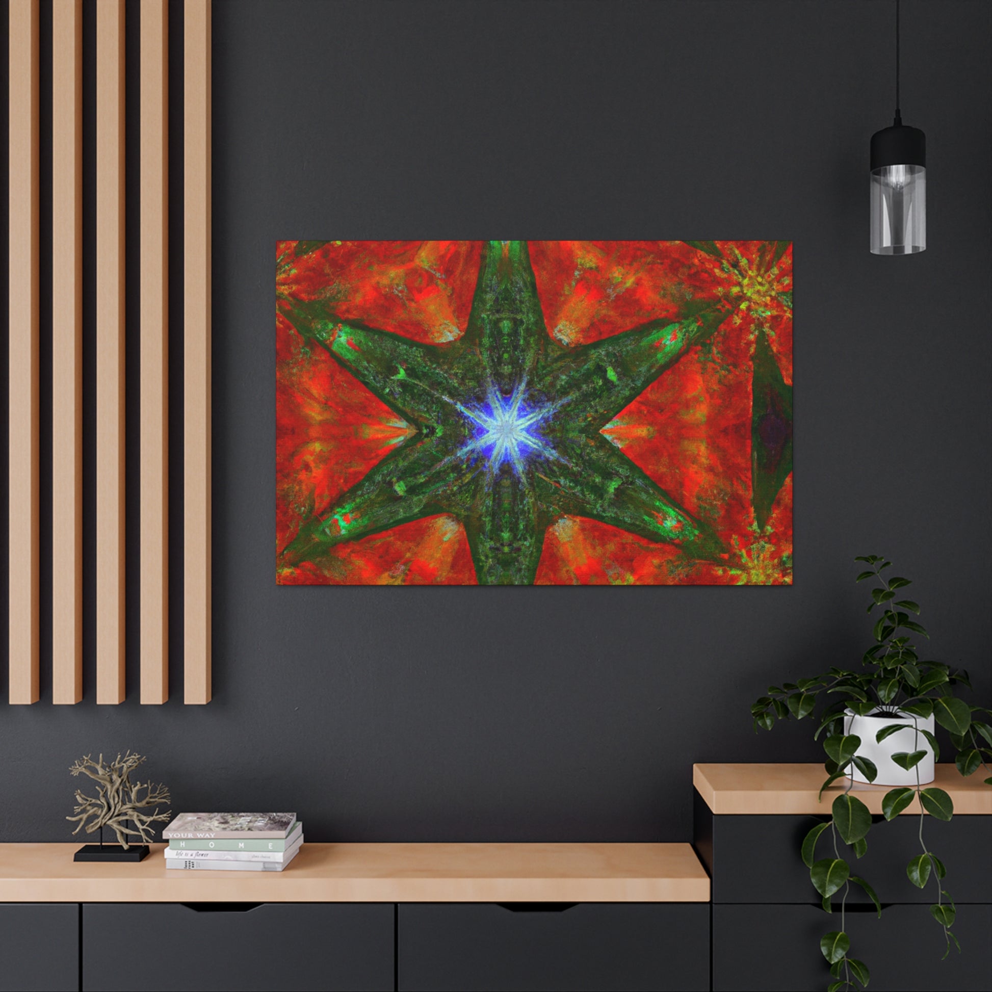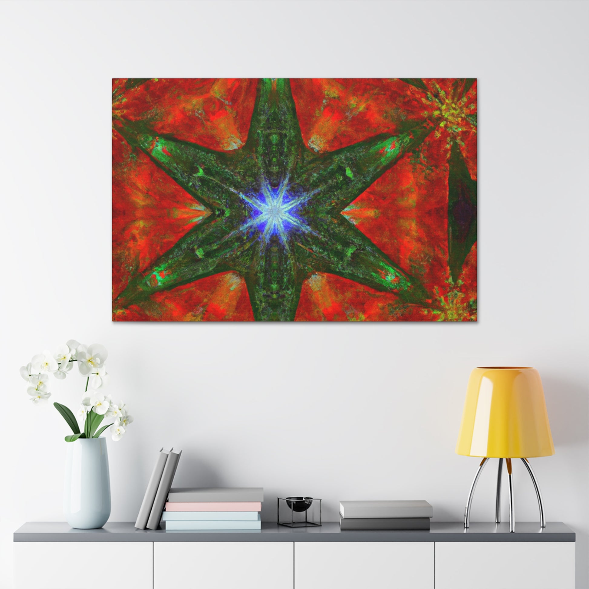 This stunning canvas features dynamic colors and abstract digital art that will take you on a trippy journey. The vibrant kaleidoscope of stars is full of symmetry and beautiful HD details. The perfect décor to elevate your living space and give you a tranquil view. #trippystars #kaleidoscope #abstractart #digitalart #vibrantcolors #HD #center #symmetrical #canvas #interiordesign #homedecor