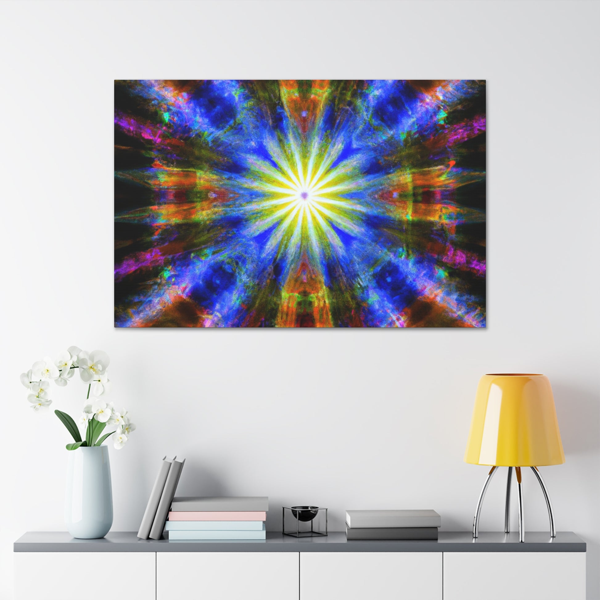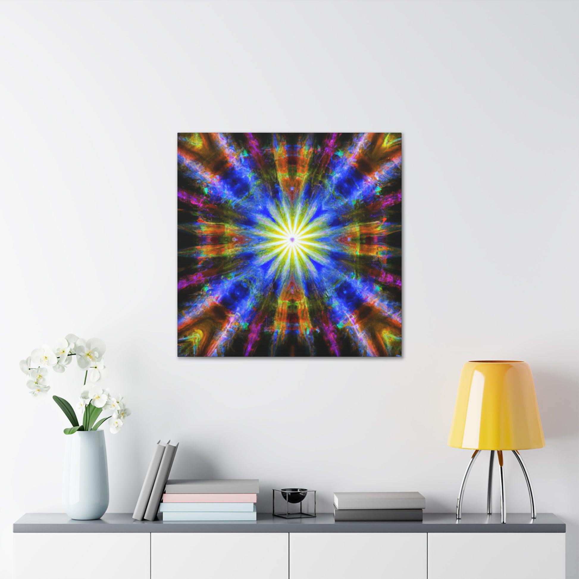 Enchanting and peaceful, this canvas of Trippy Stars, Kaleidoscope, Abstract, Digital Art and Vibrant Colors is crafted out of HD for Maximum Clarity and Symmetrical details. Bring your space to life with this beautiful piece of artwork. #trippystars #kaleidoscope #abstractart #digitalart #vibrantcolors #HD #clarity #symmetrical #canvasart #enchantingdecor #artforsale