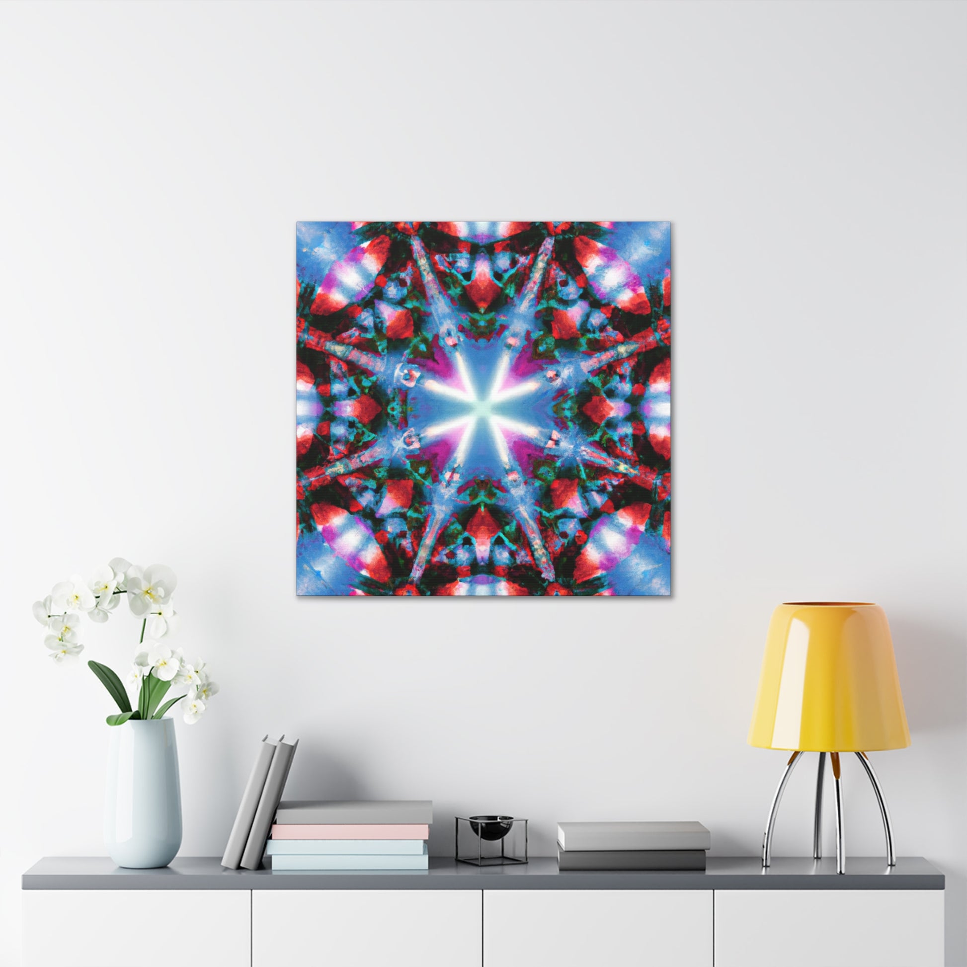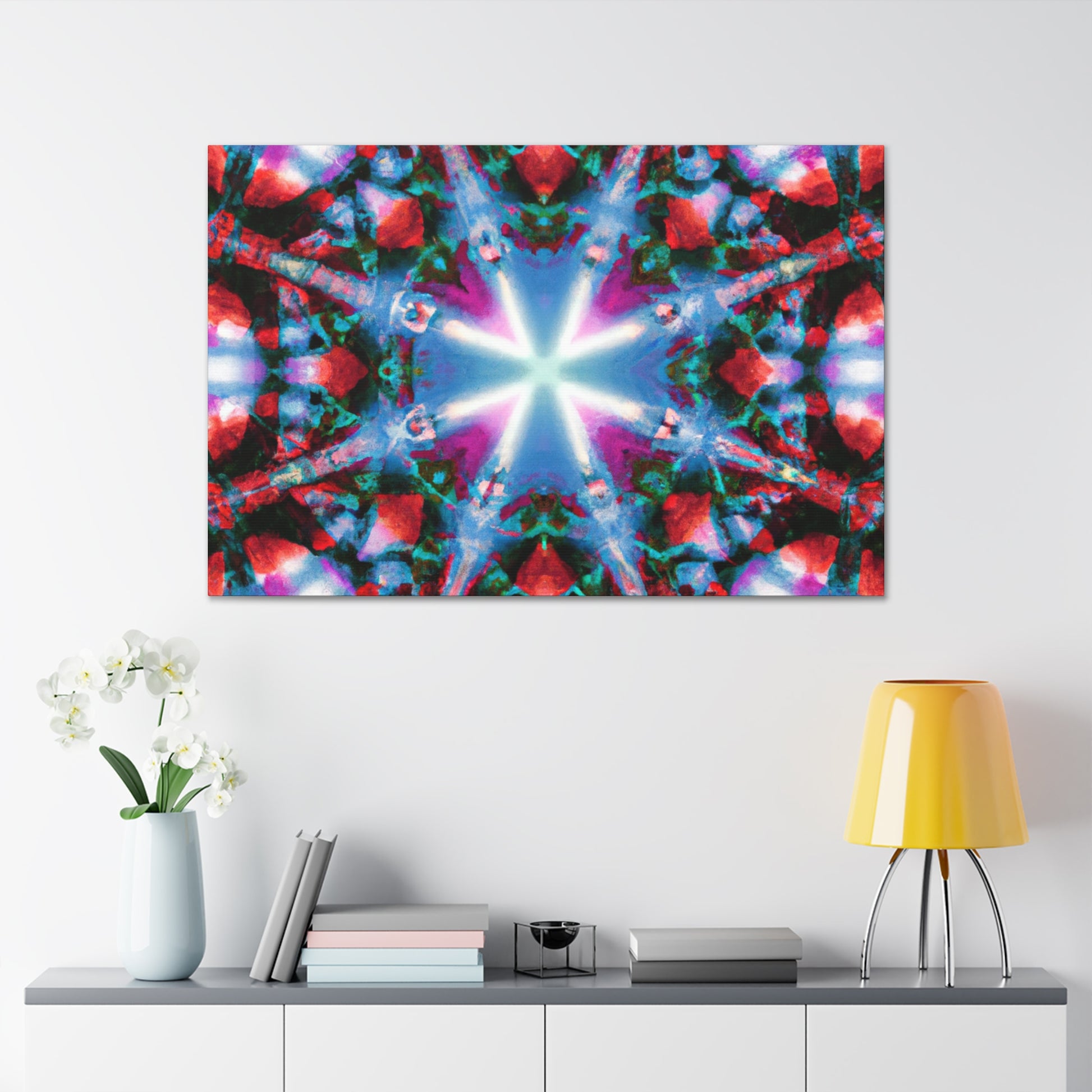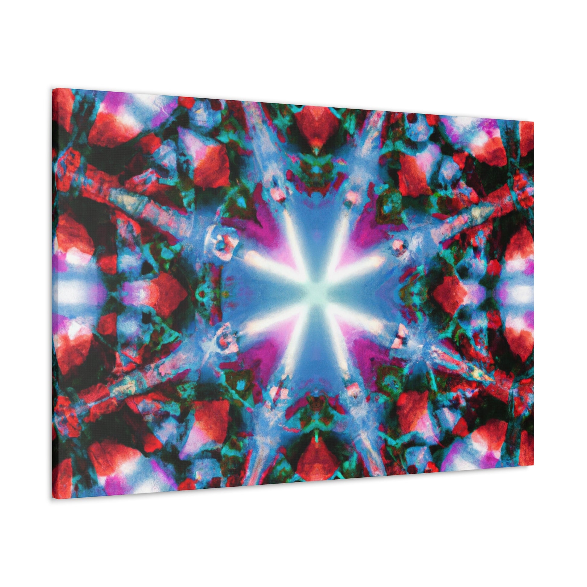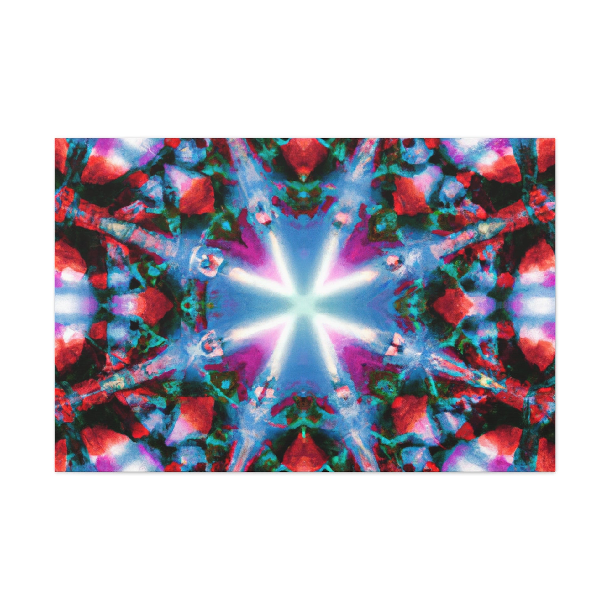 This vibrant digital art brings the colors and stars of a kaleidoscope to life! High definition and symmetrical composition make this artwork perfect for the modern home. Experience an abstract journey of vivid colors and shapes in this canvas, available in a variety of sizes. #DigitalArt #CanvasArt #TrippyArt #VibrantColors #Kaleidoscope #Abstract #HD #Symmetrical #ModernArt #HomeDecor
