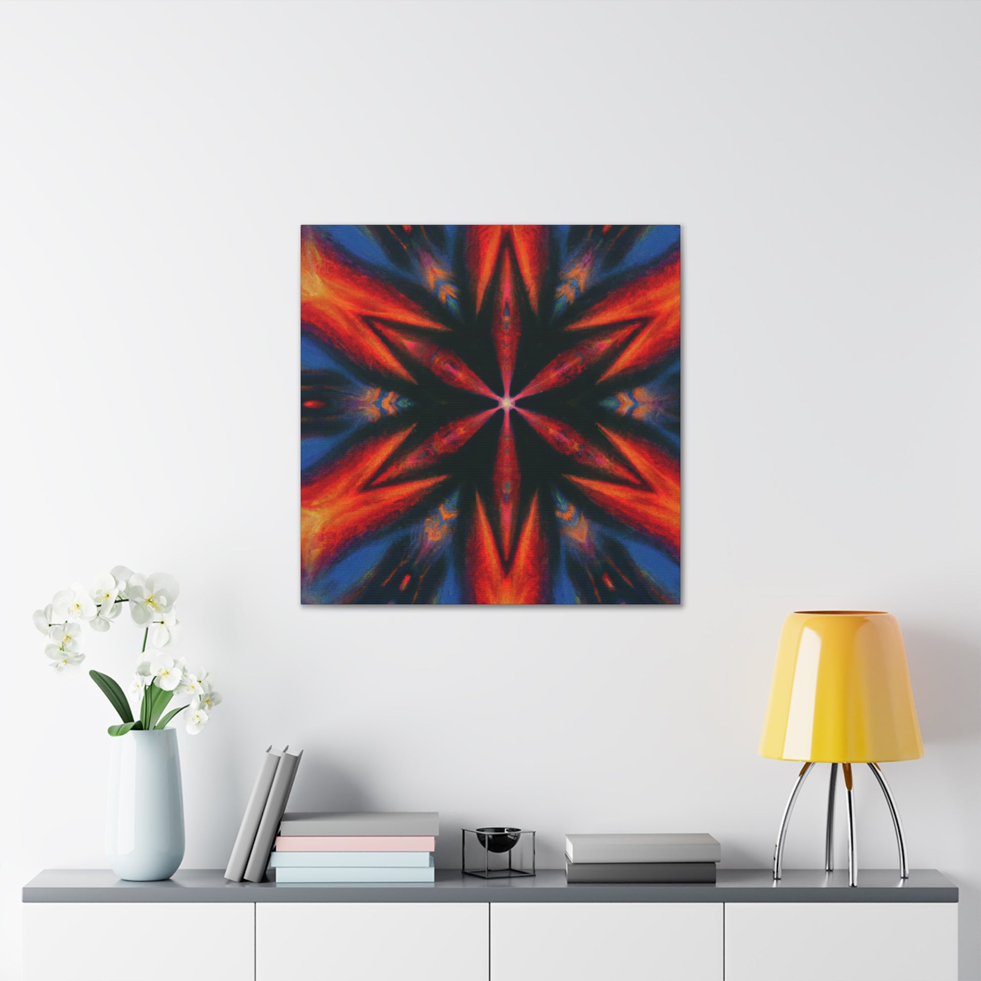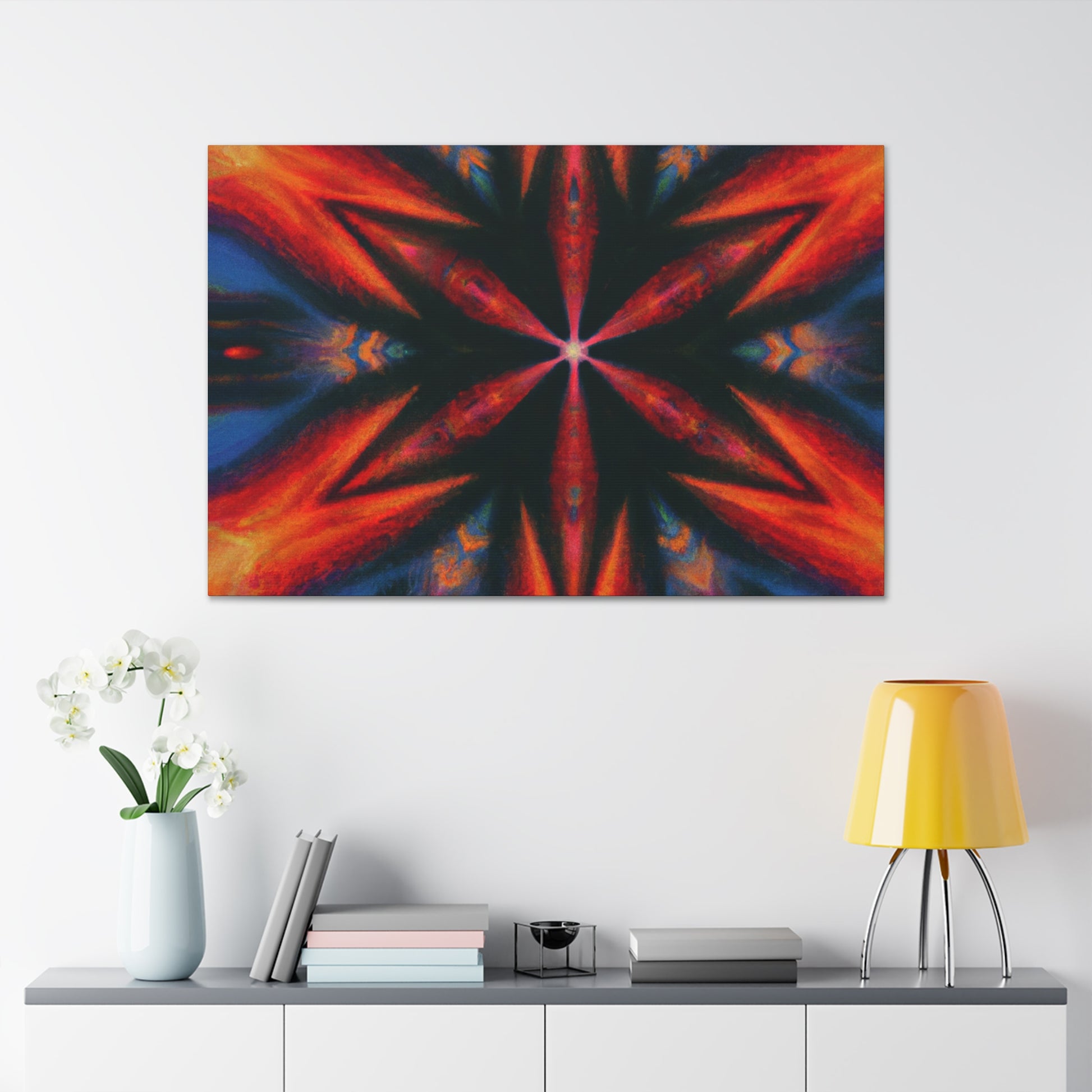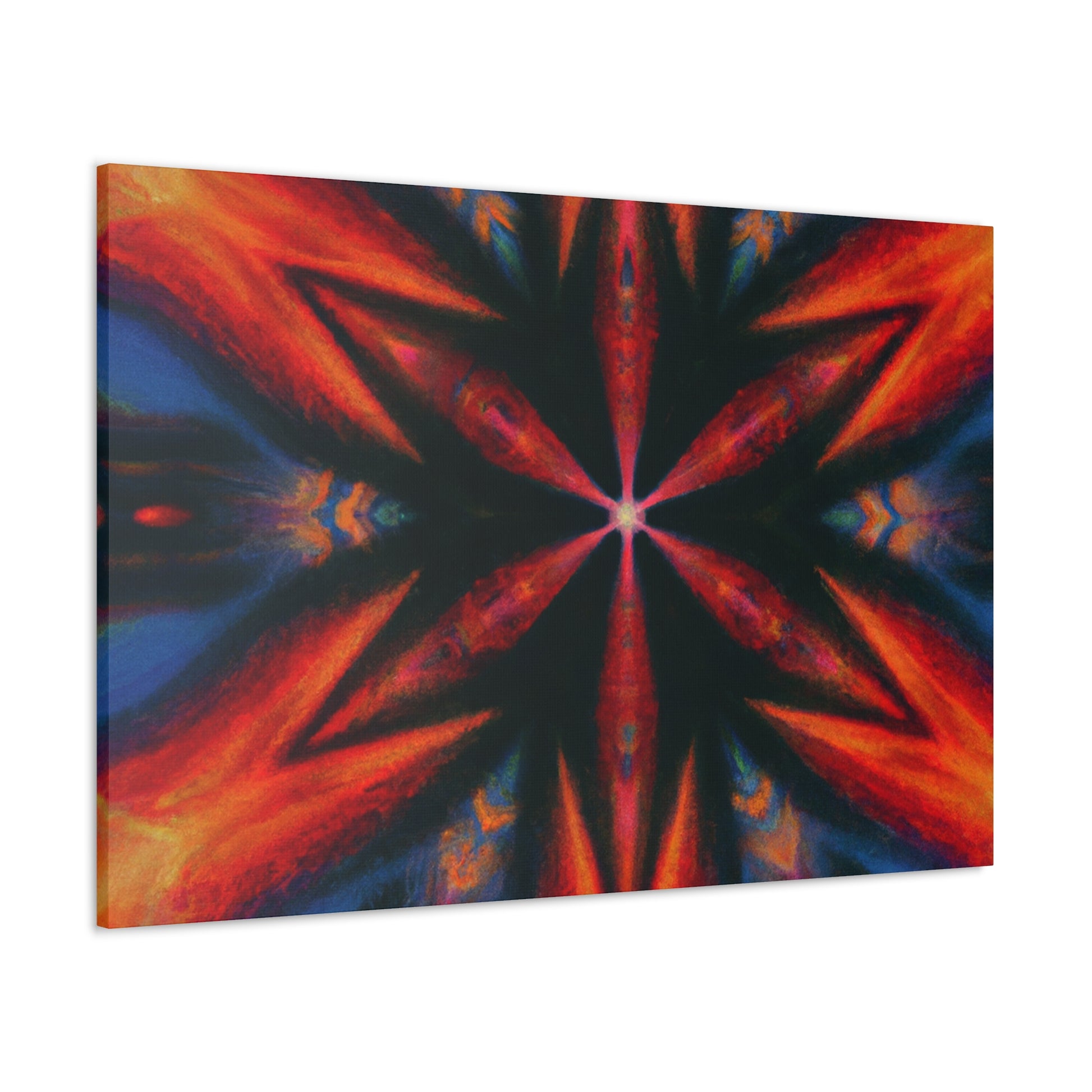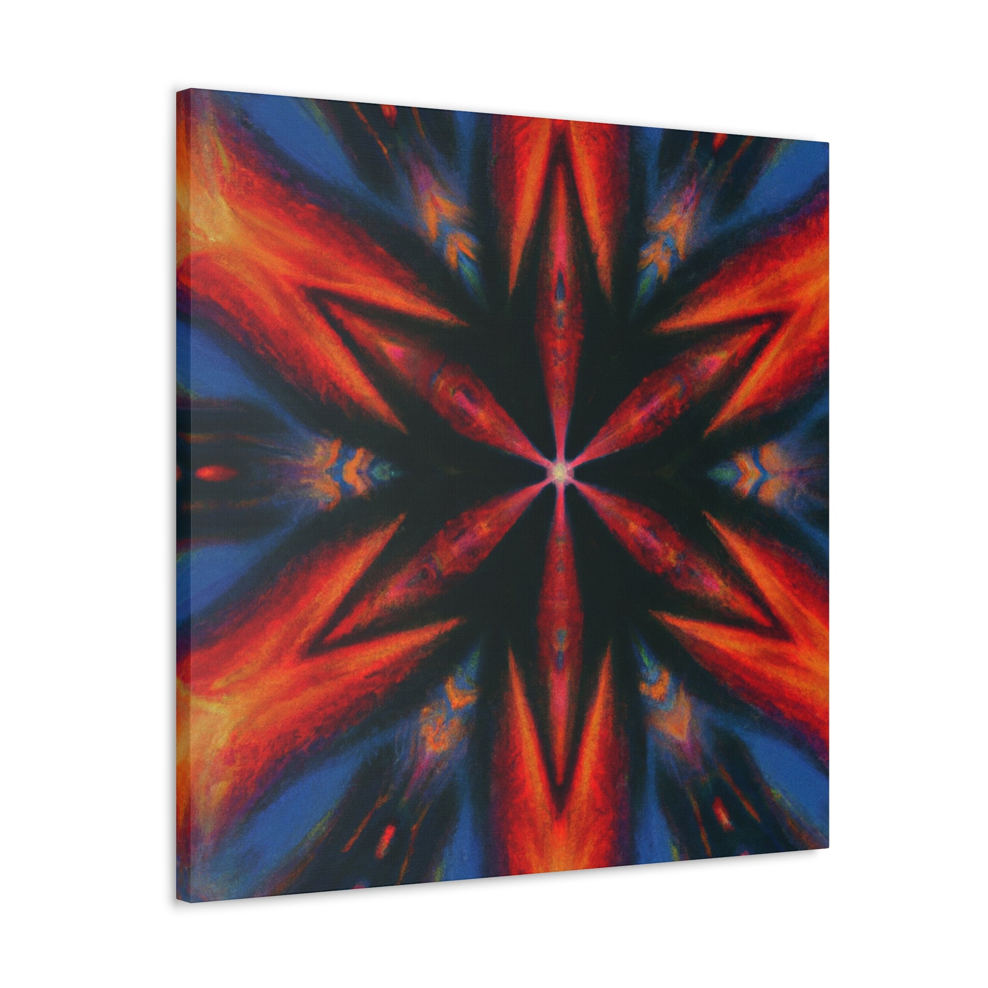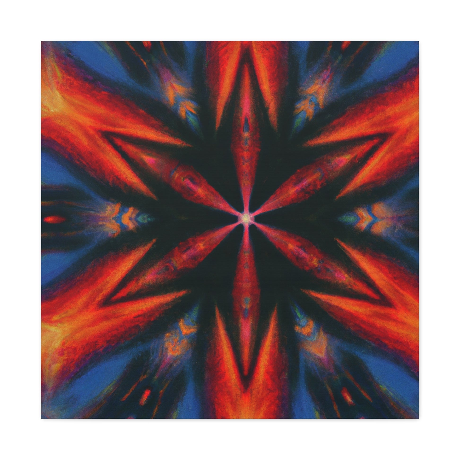 This canvas of trippy stars is an abstract piece of art perfect for your decor! Its vibrant colors and symmetrical design is created in stunning HD, bringing this piece to life. The kaleidoscopic pattern will fill any room with whimsy and color. Transform your space with this digital artwork! #dopeart #abstractart #trippystars #digitalart #kaleidoscope #vibrantcolors #HDart #symmetrical #wallart #decor #homedecor