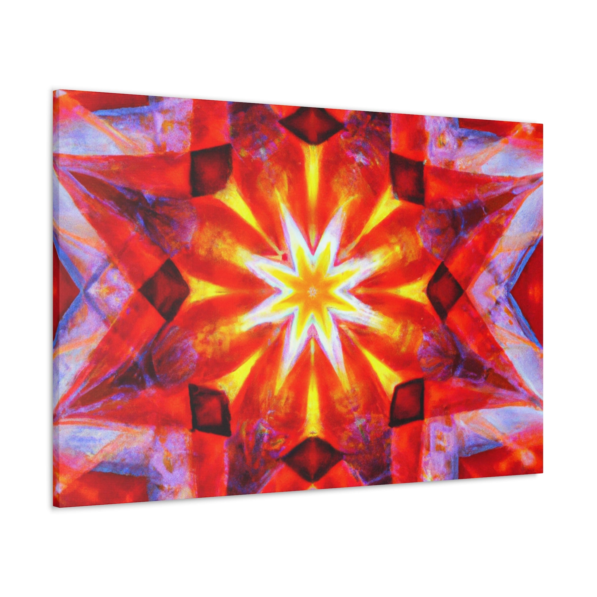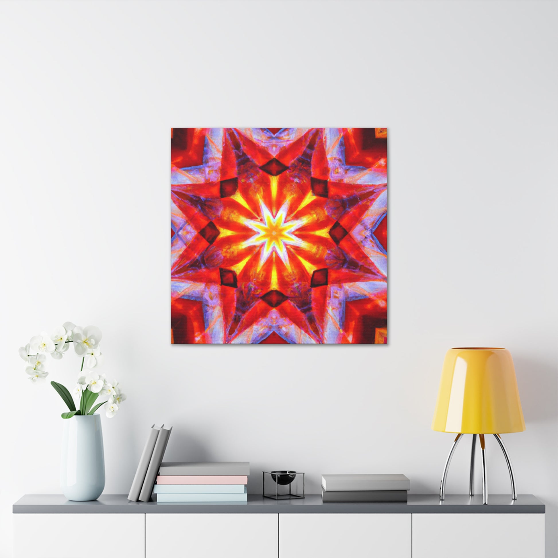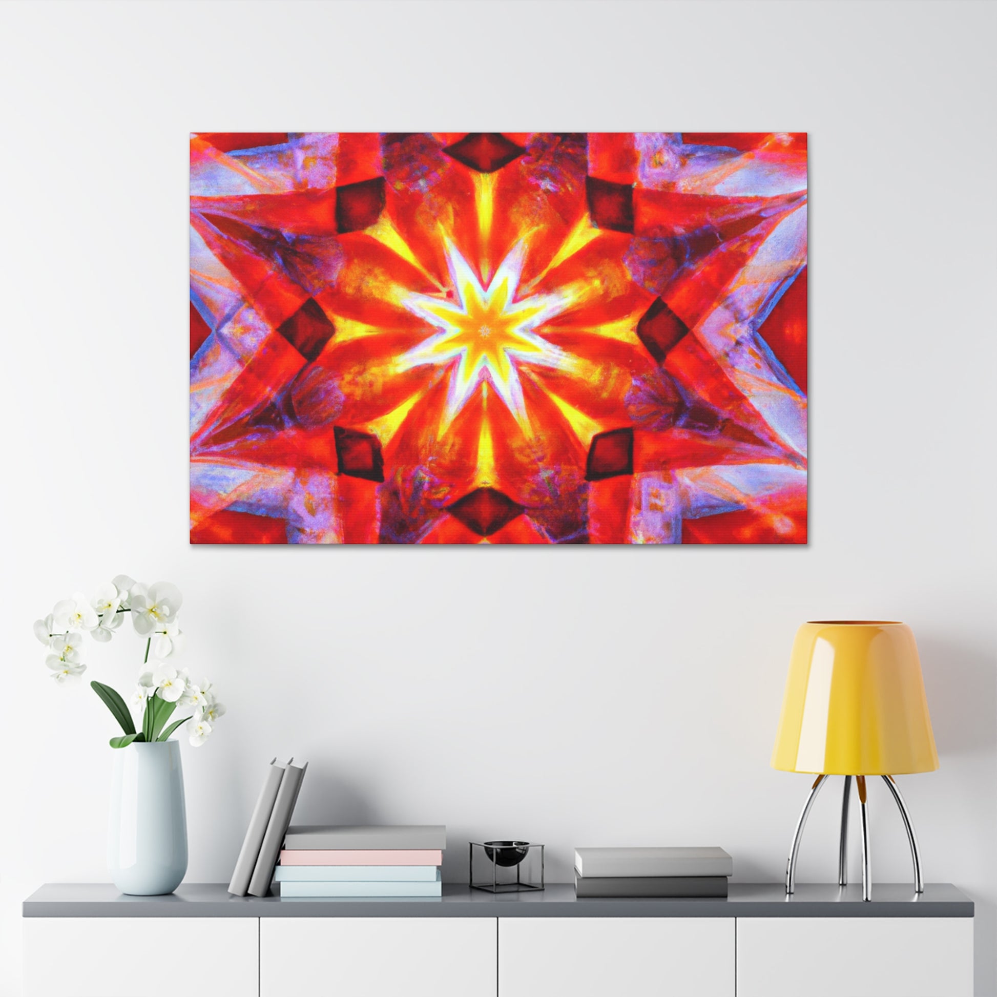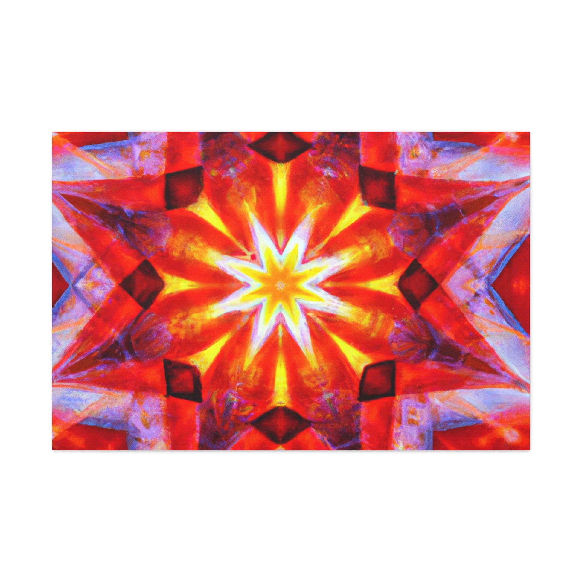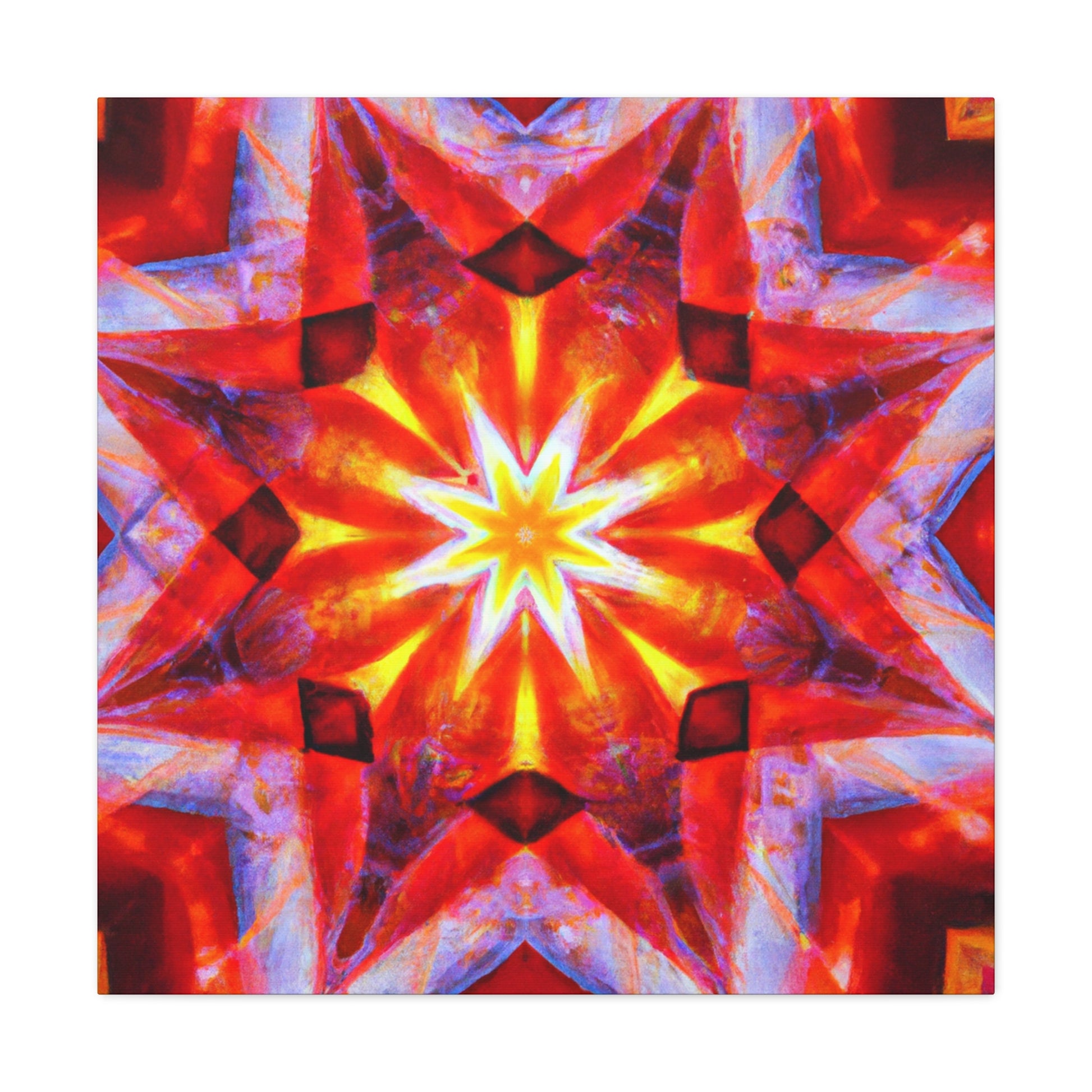 This vibrant abstract canvas features trippy stars, a kaleidoscope, digital art, and HD resolution. Combined with an incredible array of vibrant colors and a symmetrical center, this wall art will bring a surreal touch to any space. #abstractart #digitalart #vibrantcolors #trippy #symmetrical #wallart #kaleidoscope #stars #HD #canvasart #abstract