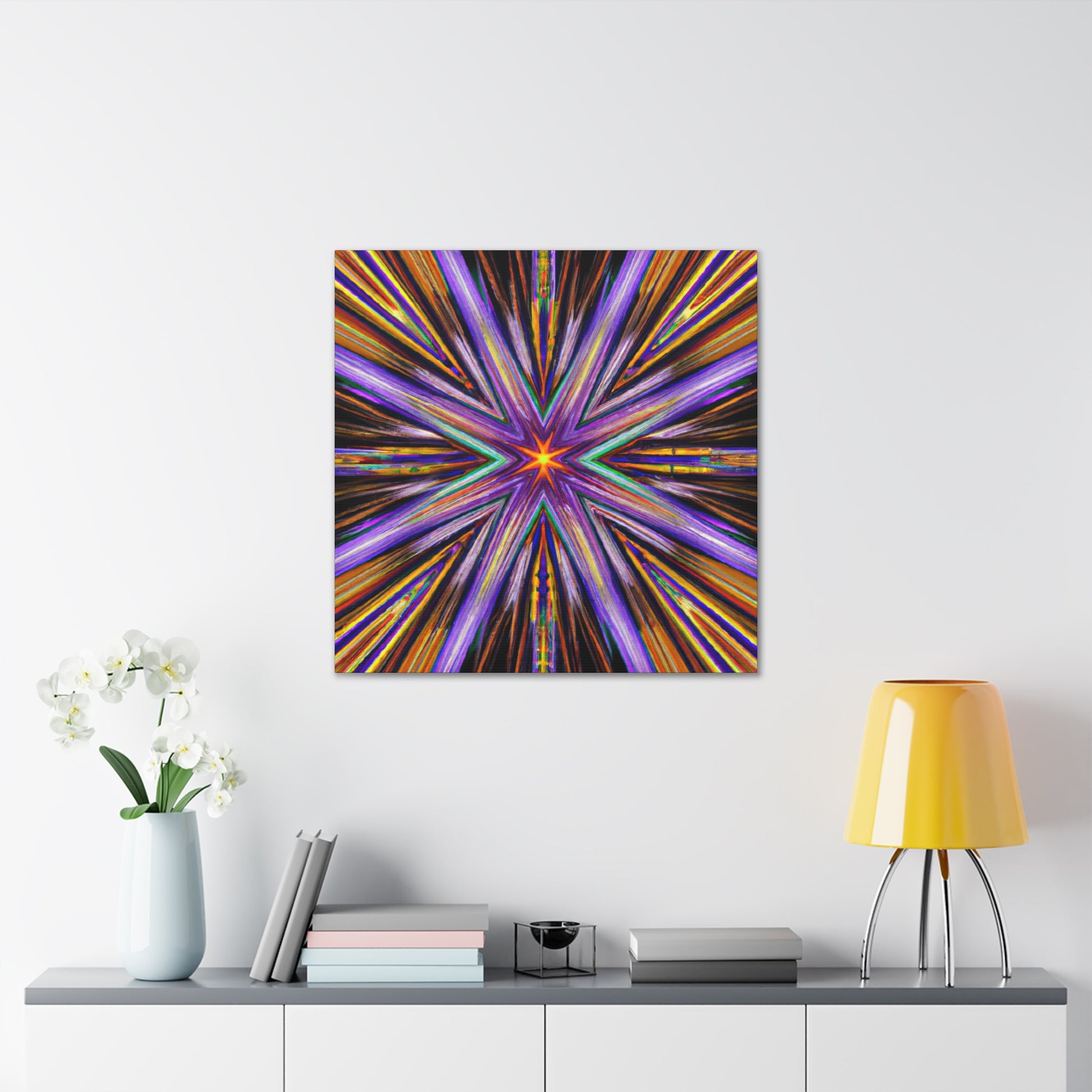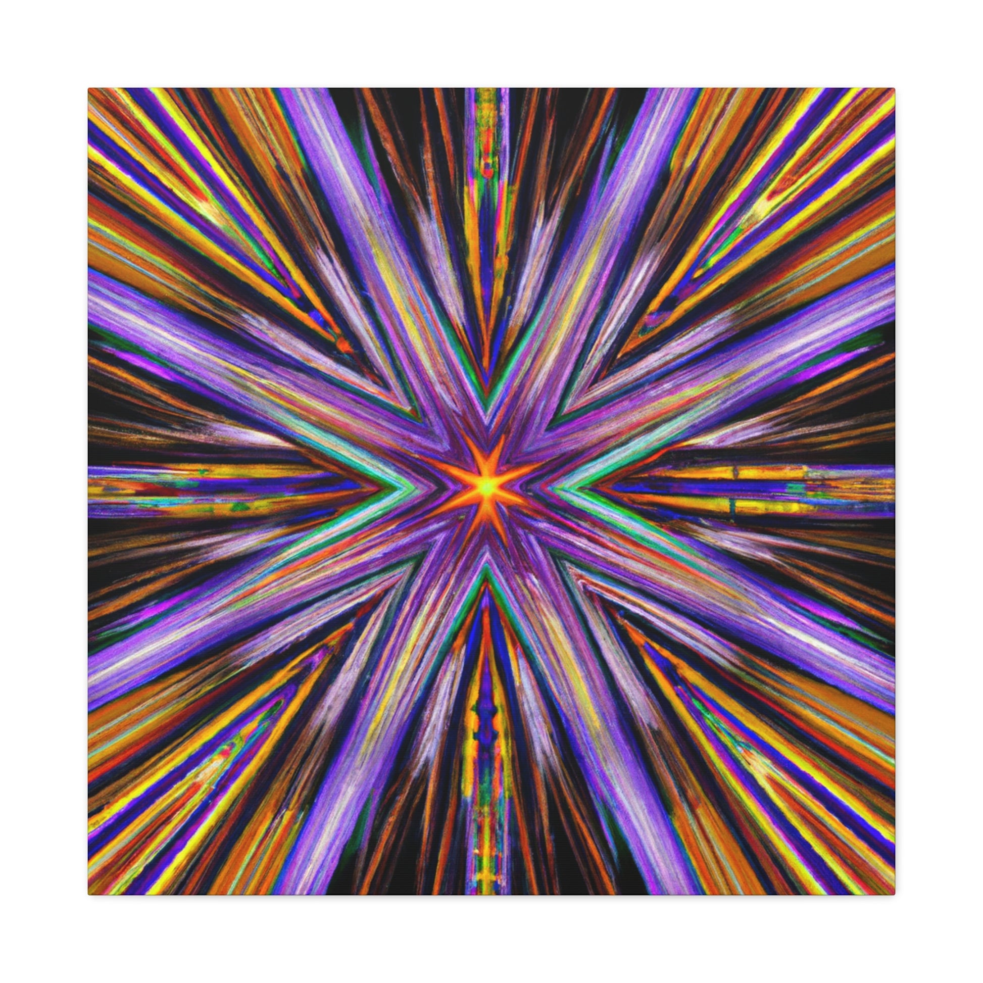This bright and vibrant canvas of Trippy Stars, Kaleidoscope, Abstract Digital Art will be sure to brighten any room. Featuring symmetrical shapes in vivid HD colors, this piece is perfect for anyone who loves abstract art and colorful designs. Hang on your wall for a unique statement! #fundecor #abstractart #colorfulart #vibrantart #homedecor #wallart #trippystars #kaleidoscope #abstractart #digitalart #hdart