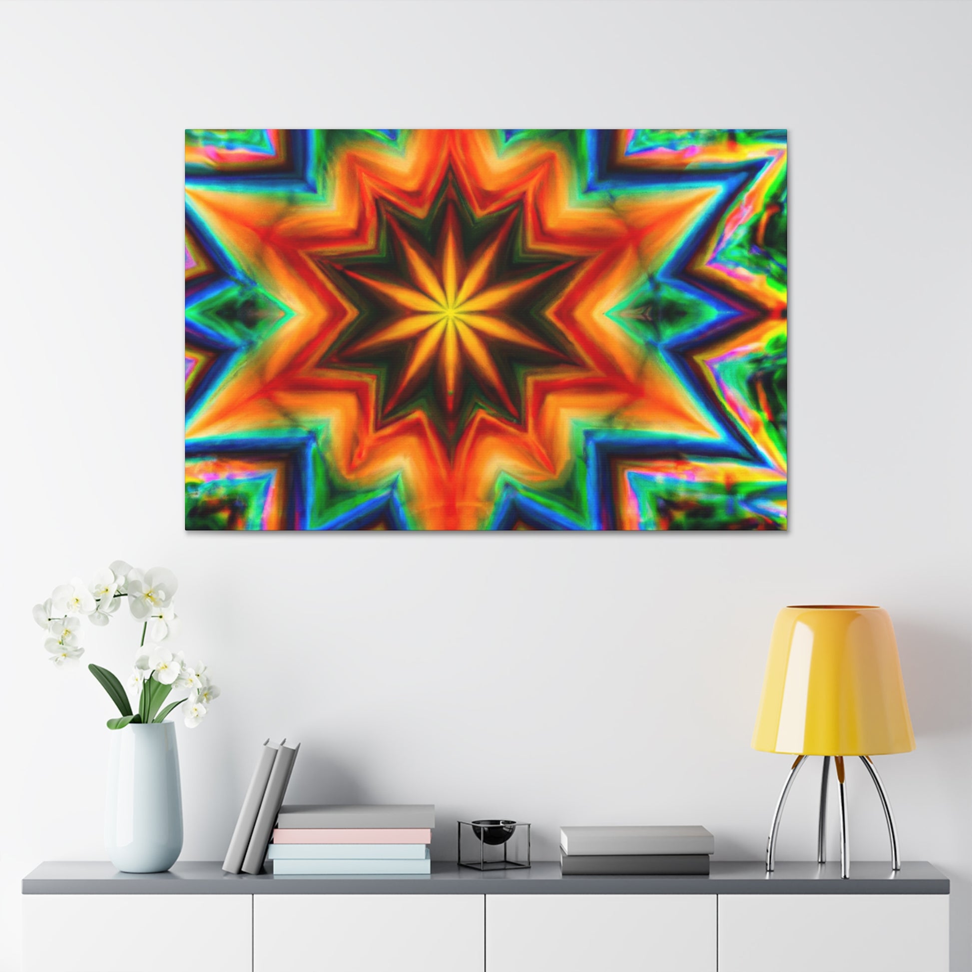 This stunning canvas features a mesmerizing design of trippy stars, symmetrical shapes, and kaleidoscope abstract art. The vibrant, HD-ready colors and digital art design bring life to any room. Plus, the center is perfectly balanced for an eye-catching visual in any space. #trippystars #Kaleidoscope #Abstract #DigitalArt #VibrantColors #HD #Center #Symmetrical #RoomDesign #WallDecor #HomeDecor