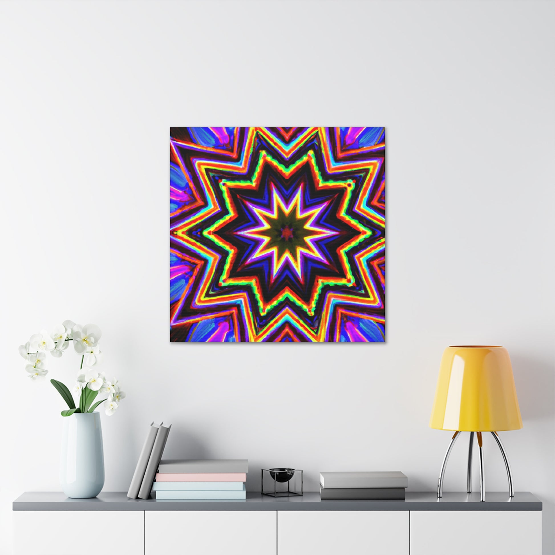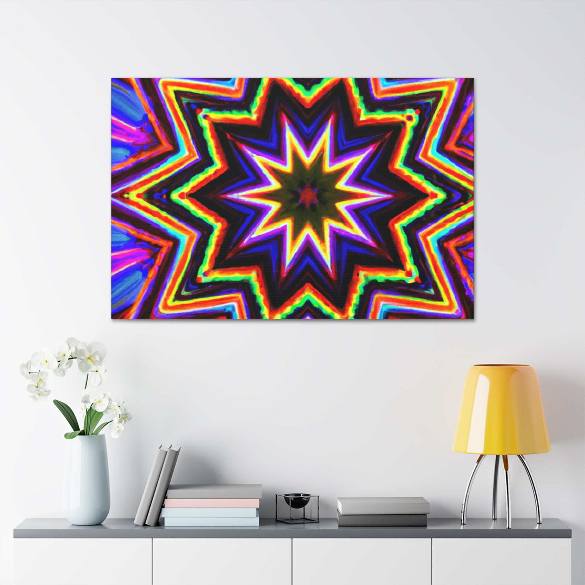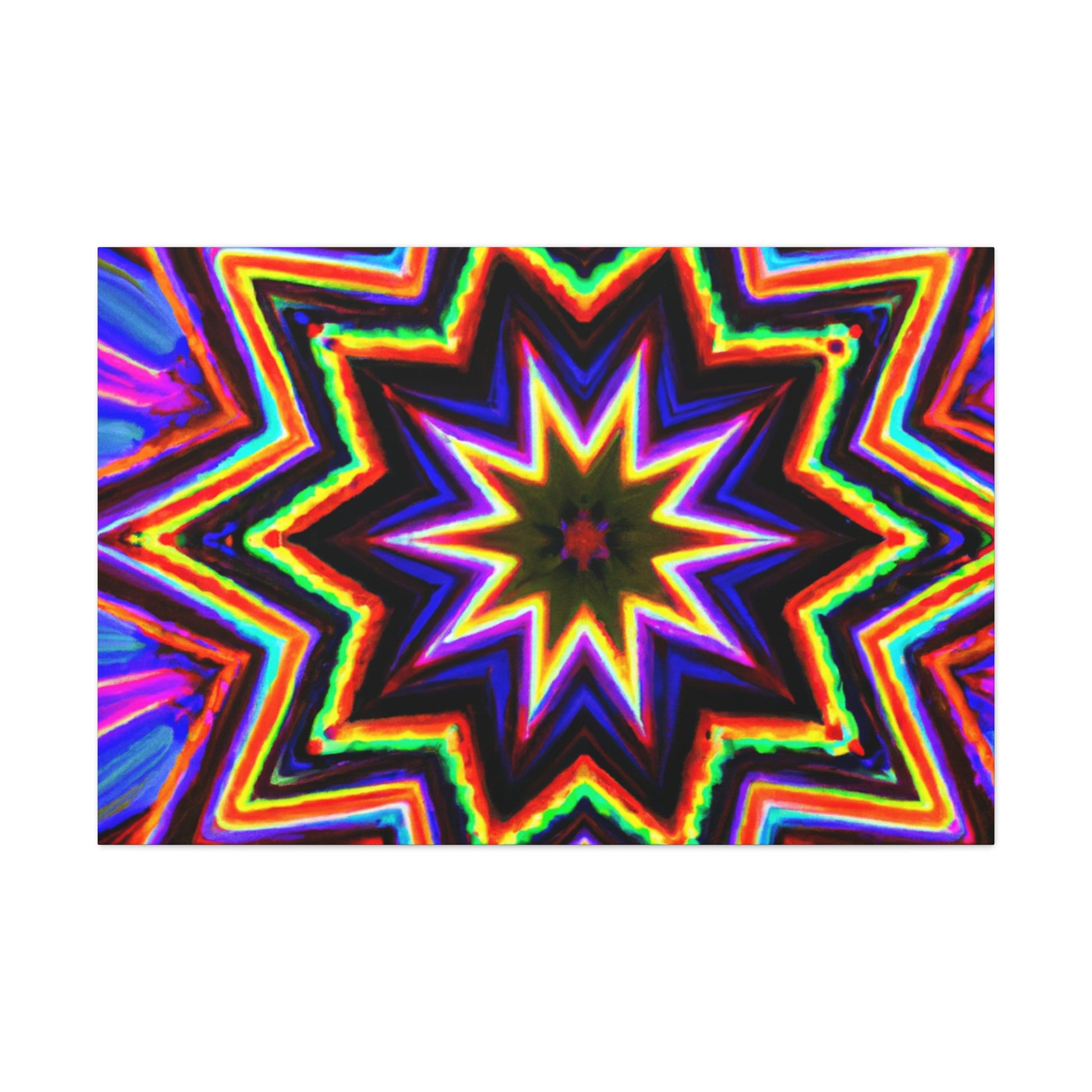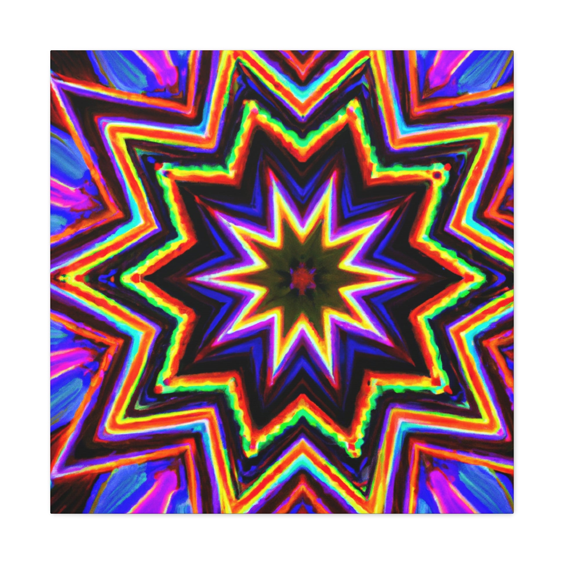 This vibrant HD digital painting of trippy stars, kaleidoscope, & abstract shapes is sure to add color and delight to any room. It features a symmetrical pattern created with bold and luscious colors, sure to evoke an exciting mood. Get the high-end gallery look with this modern art piece and watch your room come alive. #art #canvas #abstract #trippy #kaleidoscope #symmetrical #vibrant #modern #digitalart #HD