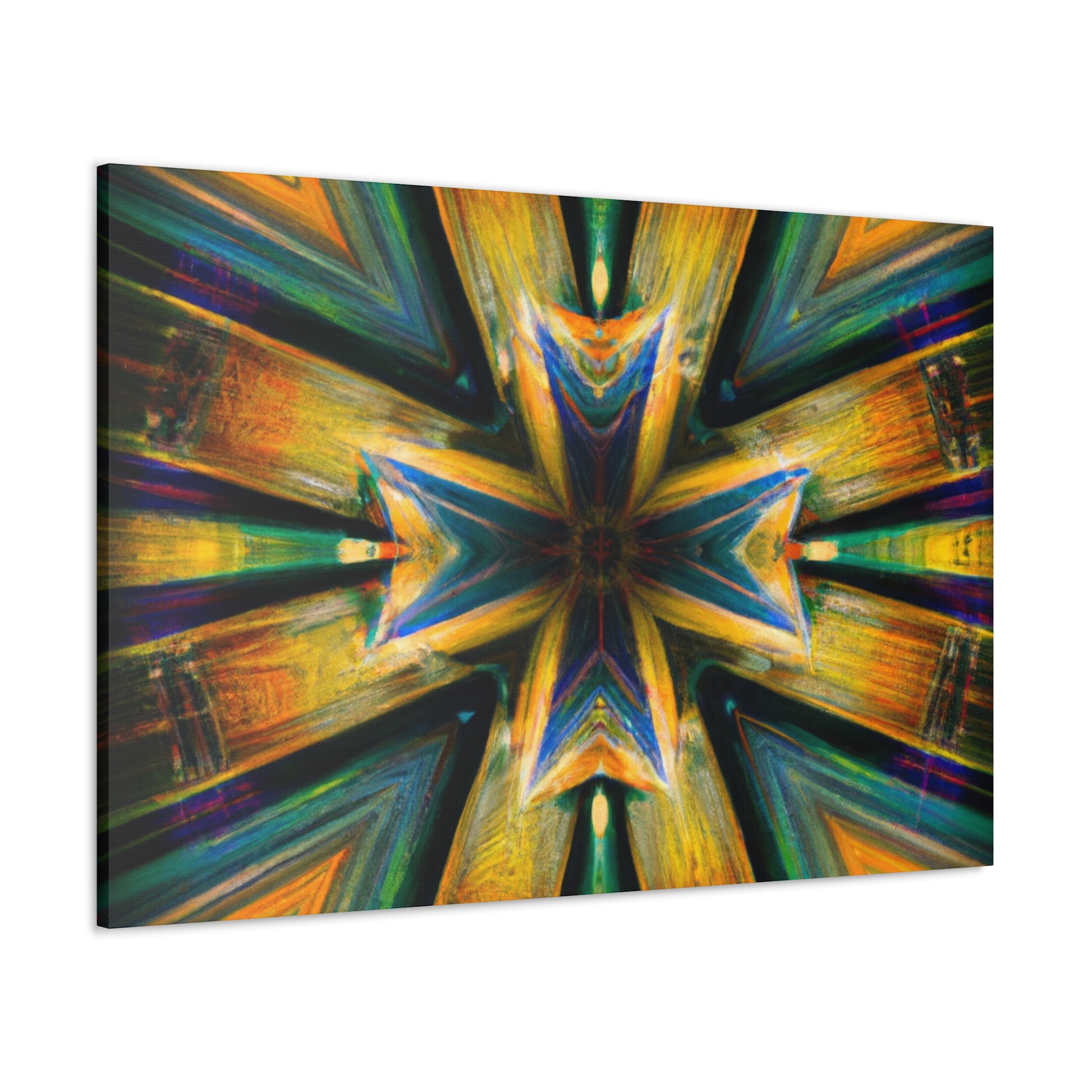 This stunning HD digital canvas features trippy, symmetrical stars, vibrant kaleidoscope abstract designs, and bright pops of color. Hang it up to instantly command attention and create an eye-catching focal point to your home. #canvasart #digitalart #kaleidoscope #stars #abstract #wallart #colors #trippy #vibrant #HD #symmetrical