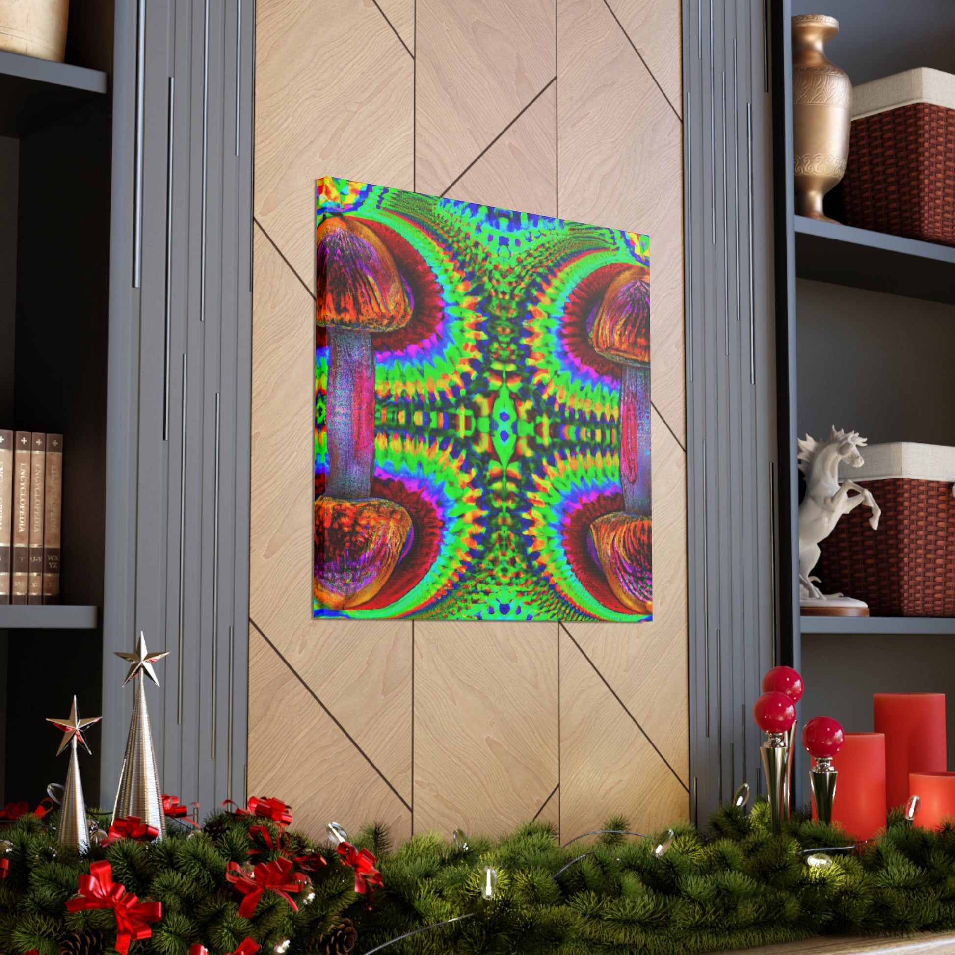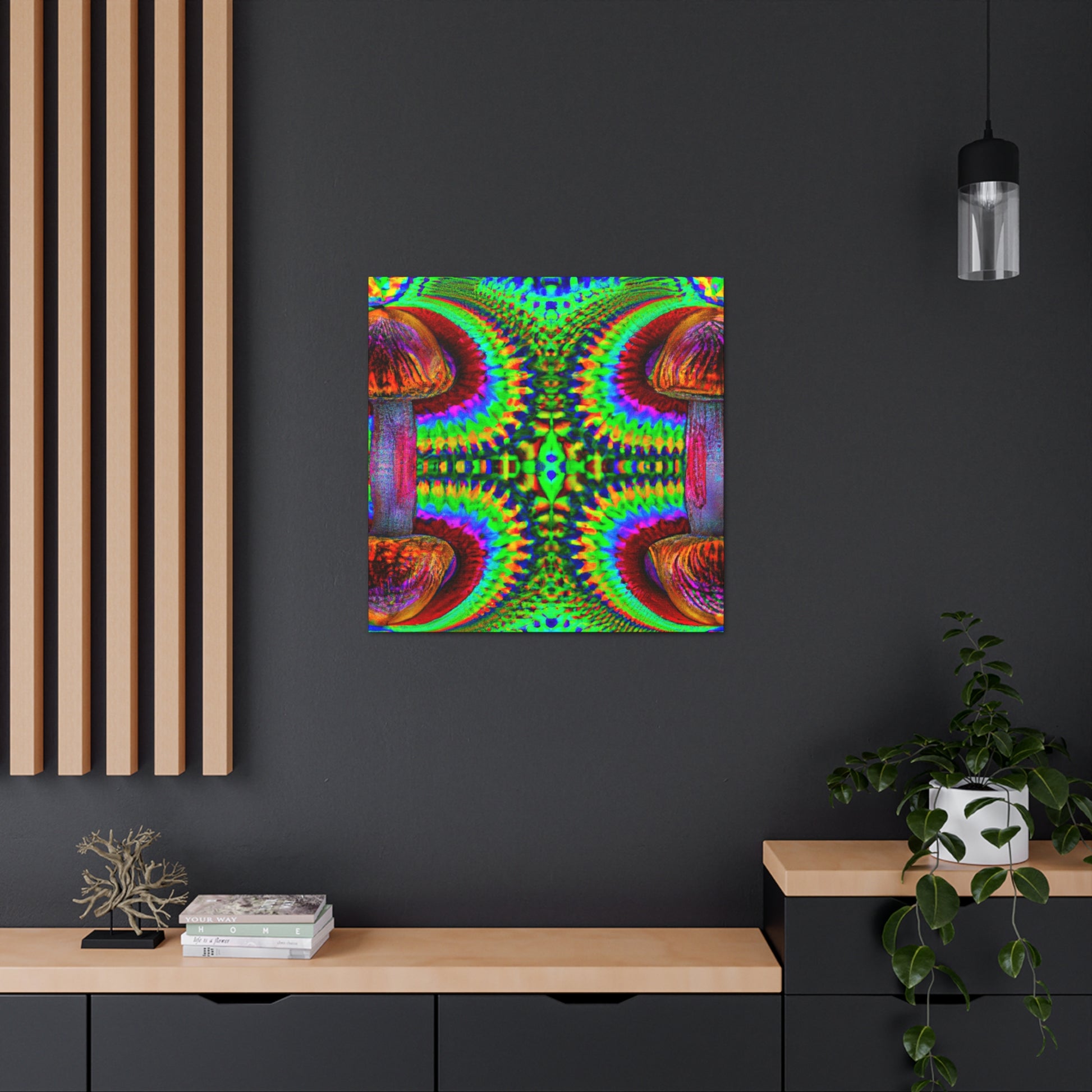 This modern, vibrant digital art is sure to draw the eye. A canvas featuring trippy mushrooms, vibrant colors and 3-D lines with kaleidoscope and abstract imagery among others! This piece has it all - and is sure to wow in any room. #CanvasArt #AbstractArt #Mushrooms #Kaleidoscope #DigitalArt #Vibrant #3DLines #ArtLovers #AbstractPainting #ModernArt #Artistry