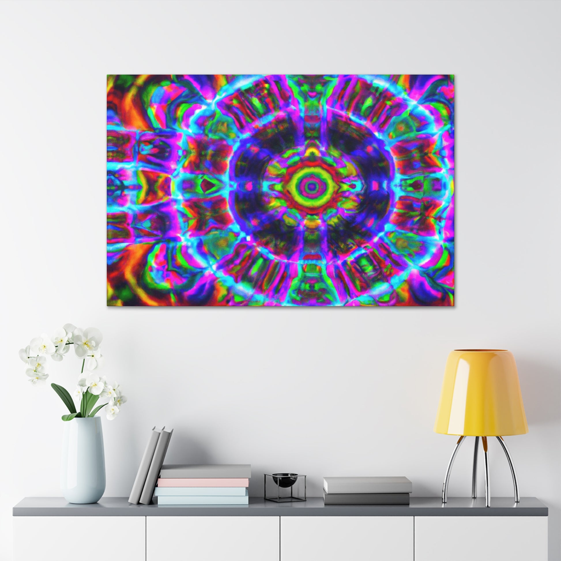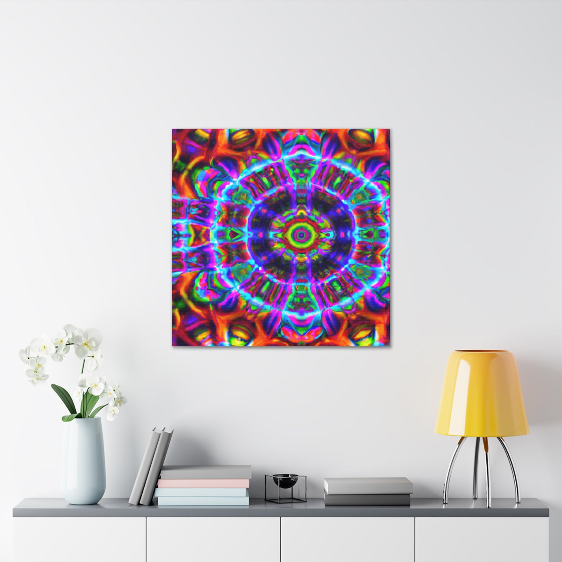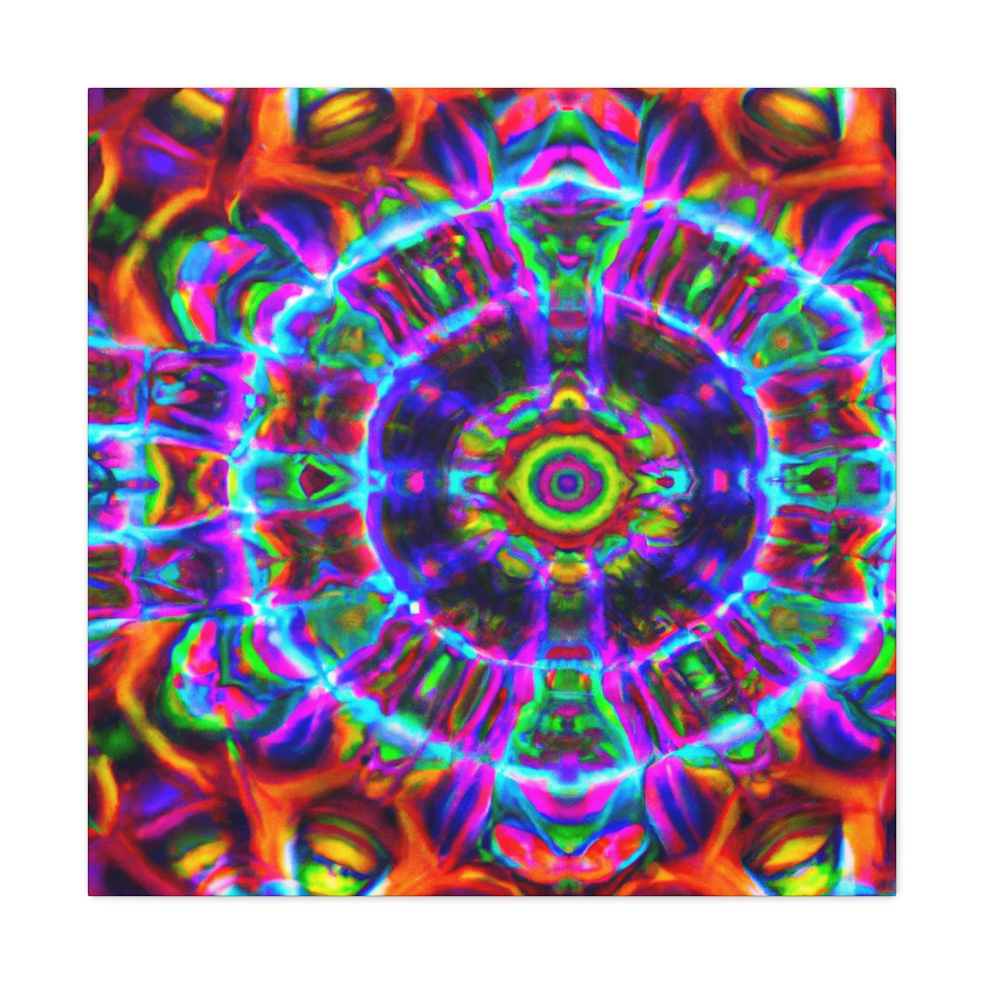 This vibrant digital canvas features abstract, trippy mushrooms with kaleidoscopic, 3D lines and bold, vibrant colors. Hang this and create a unique, psychedelic atmosphere in any space. #canvas #trippyart #abstractart #kaleidoscope #digitalart #vibrantcolors #3Dlines #psychedelicart #psychedelic #trippy #mushrooms