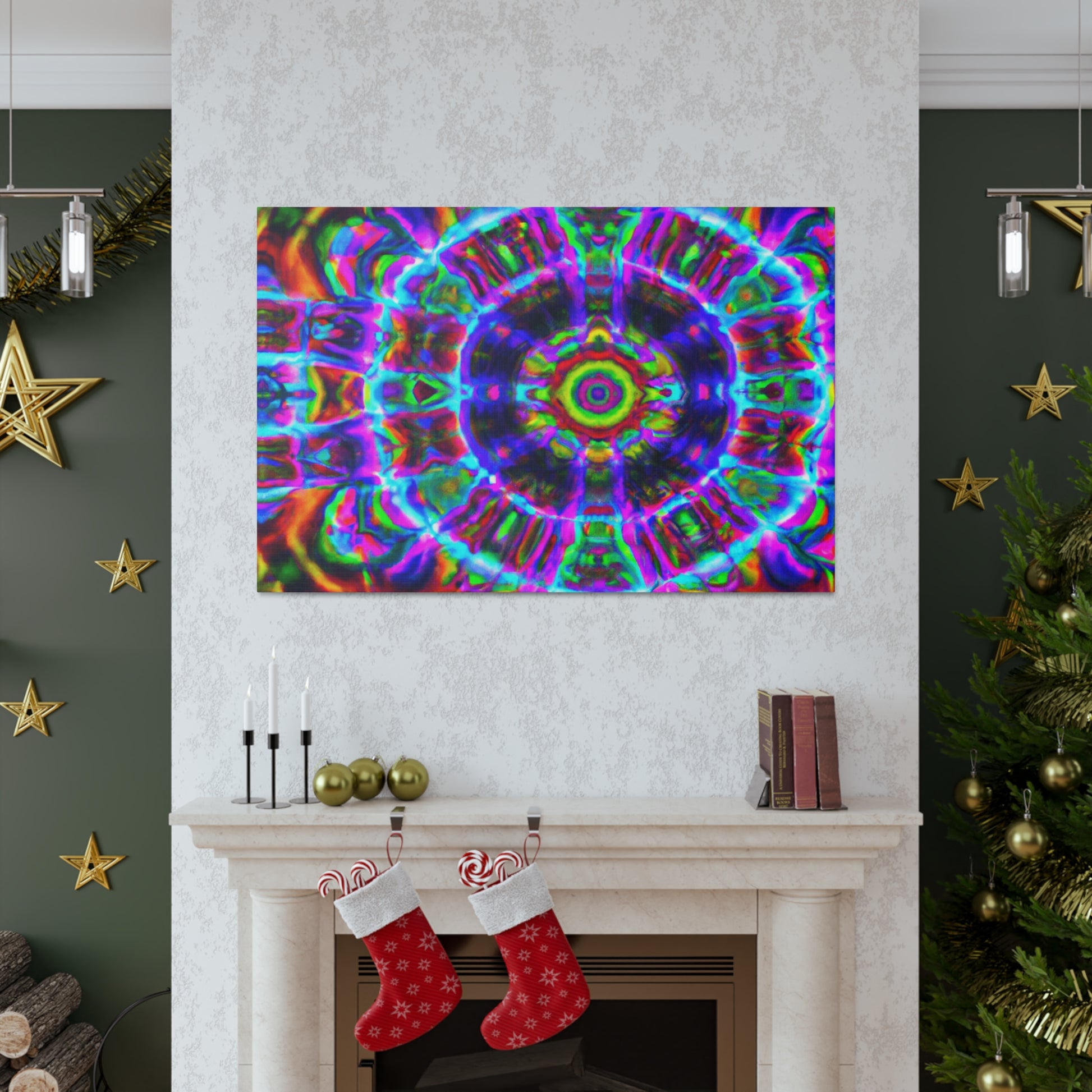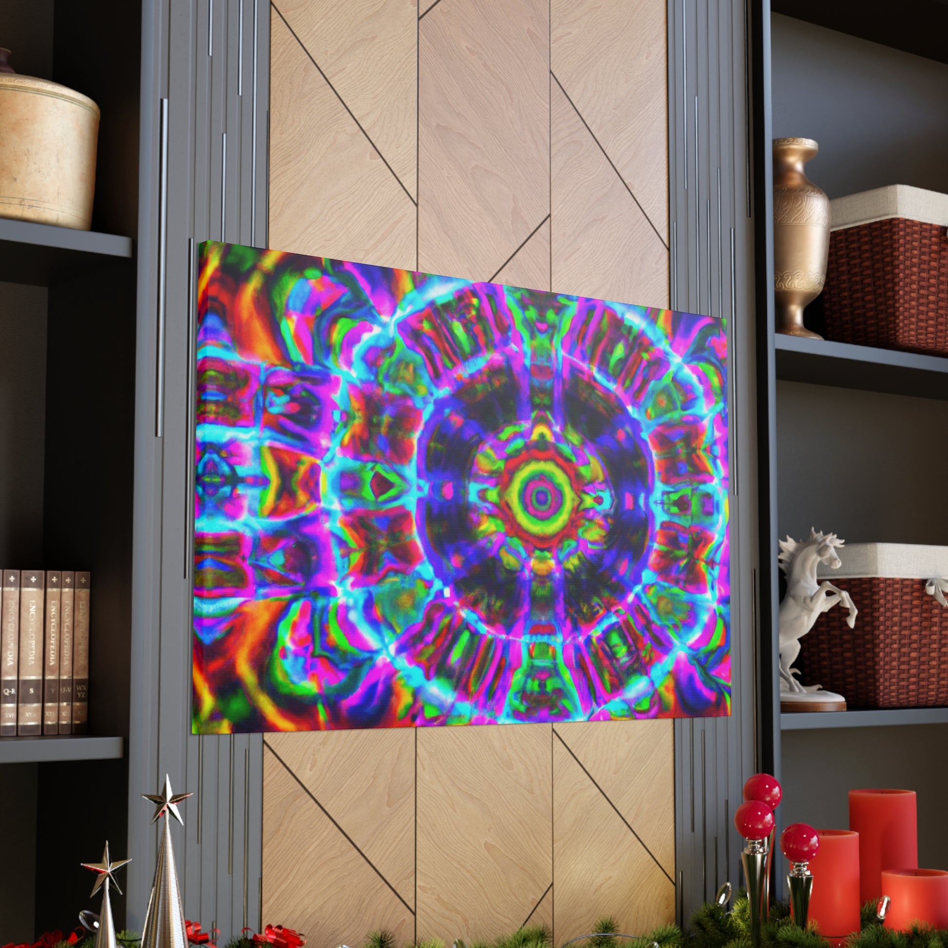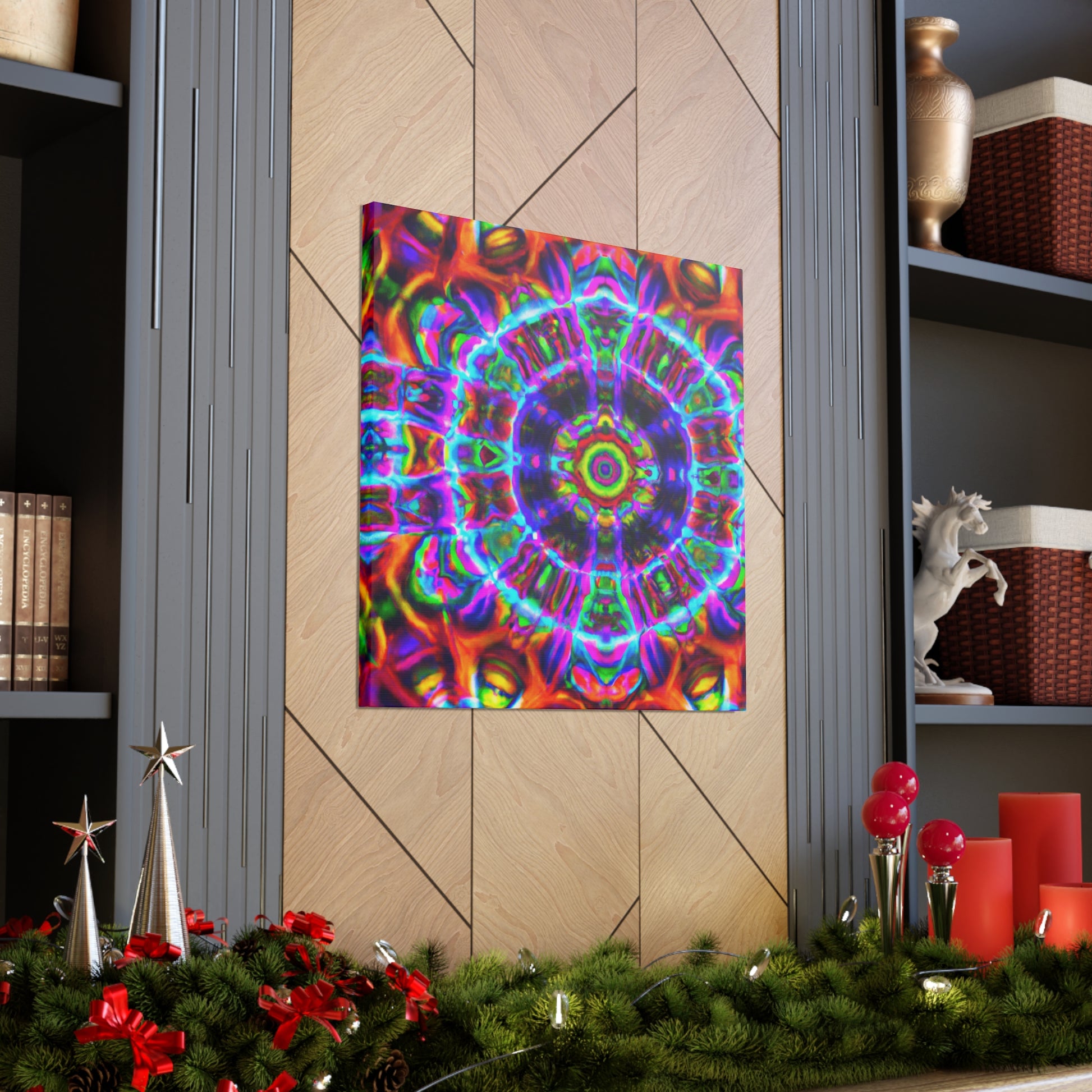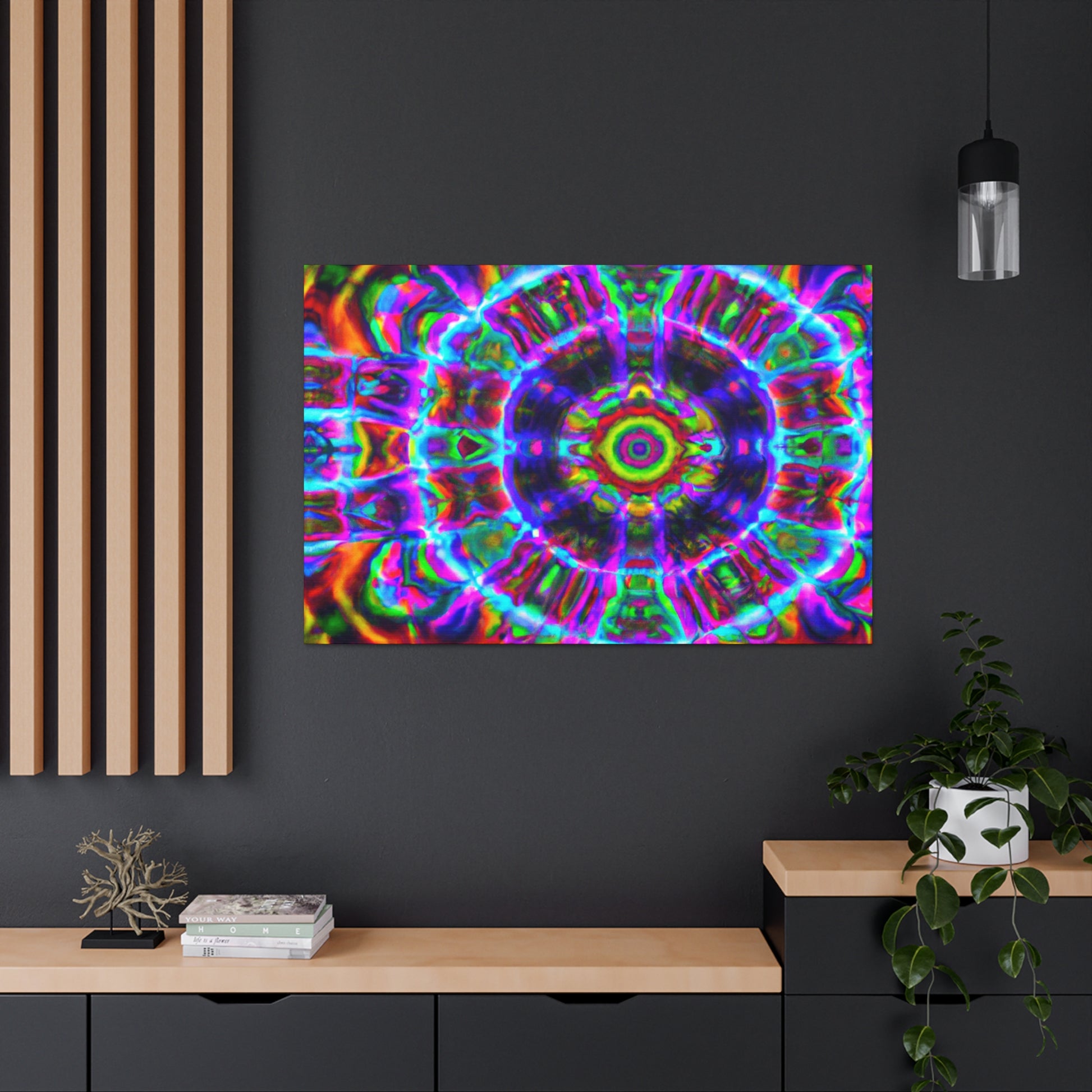 This vibrant digital canvas features abstract, trippy mushrooms with kaleidoscopic, 3D lines and bold, vibrant colors. Hang this and create a unique, psychedelic atmosphere in any space. #canvas #trippyart #abstractart #kaleidoscope #digitalart #vibrantcolors #3Dlines #psychedelicart #psychedelic #trippy #mushrooms