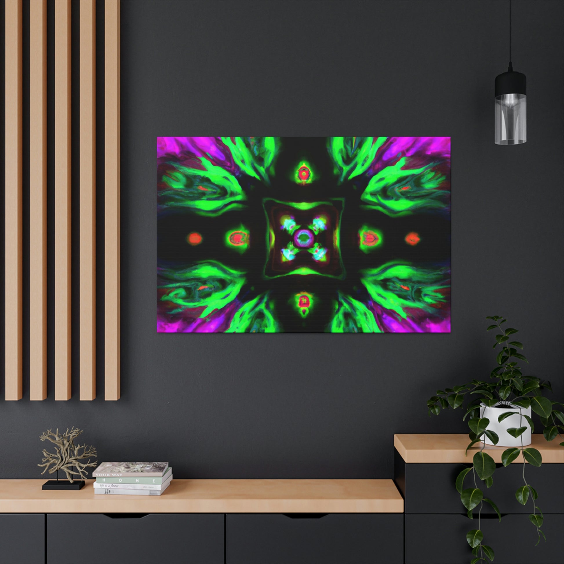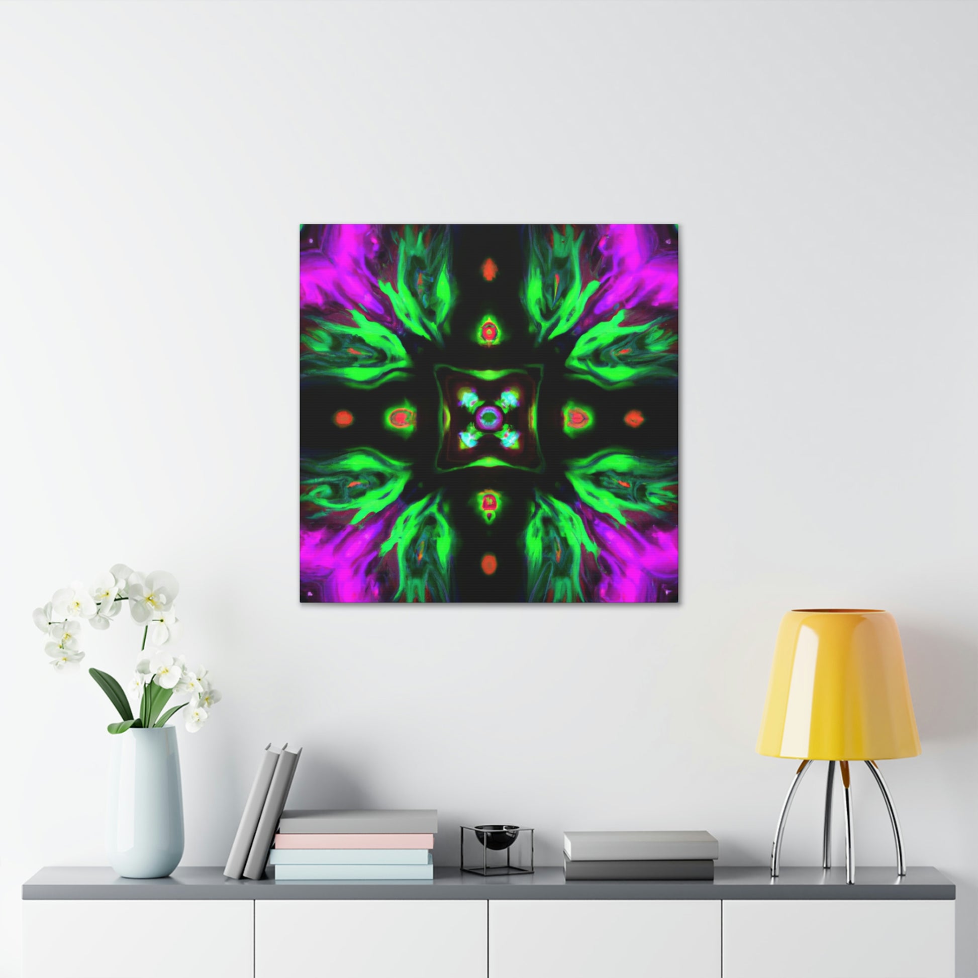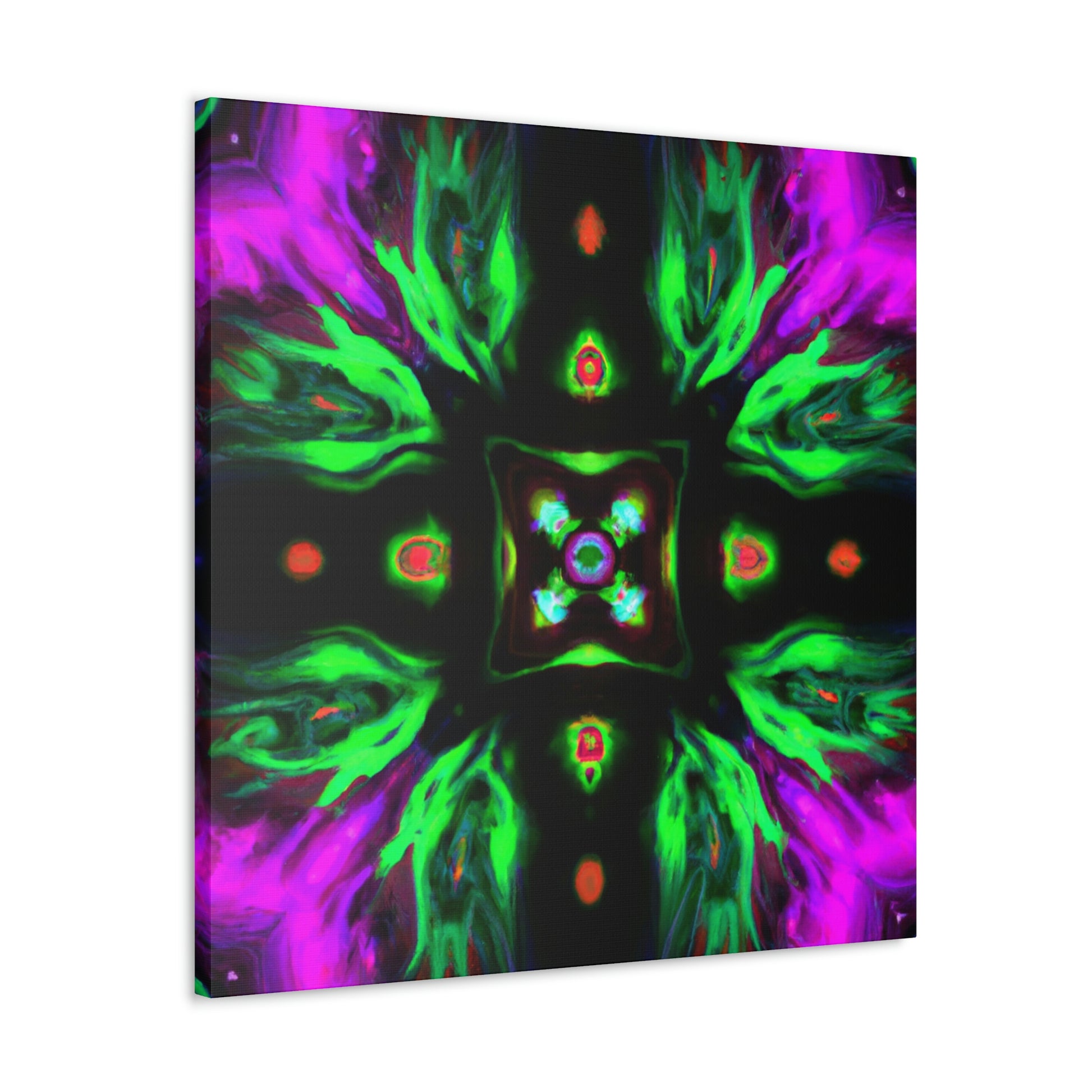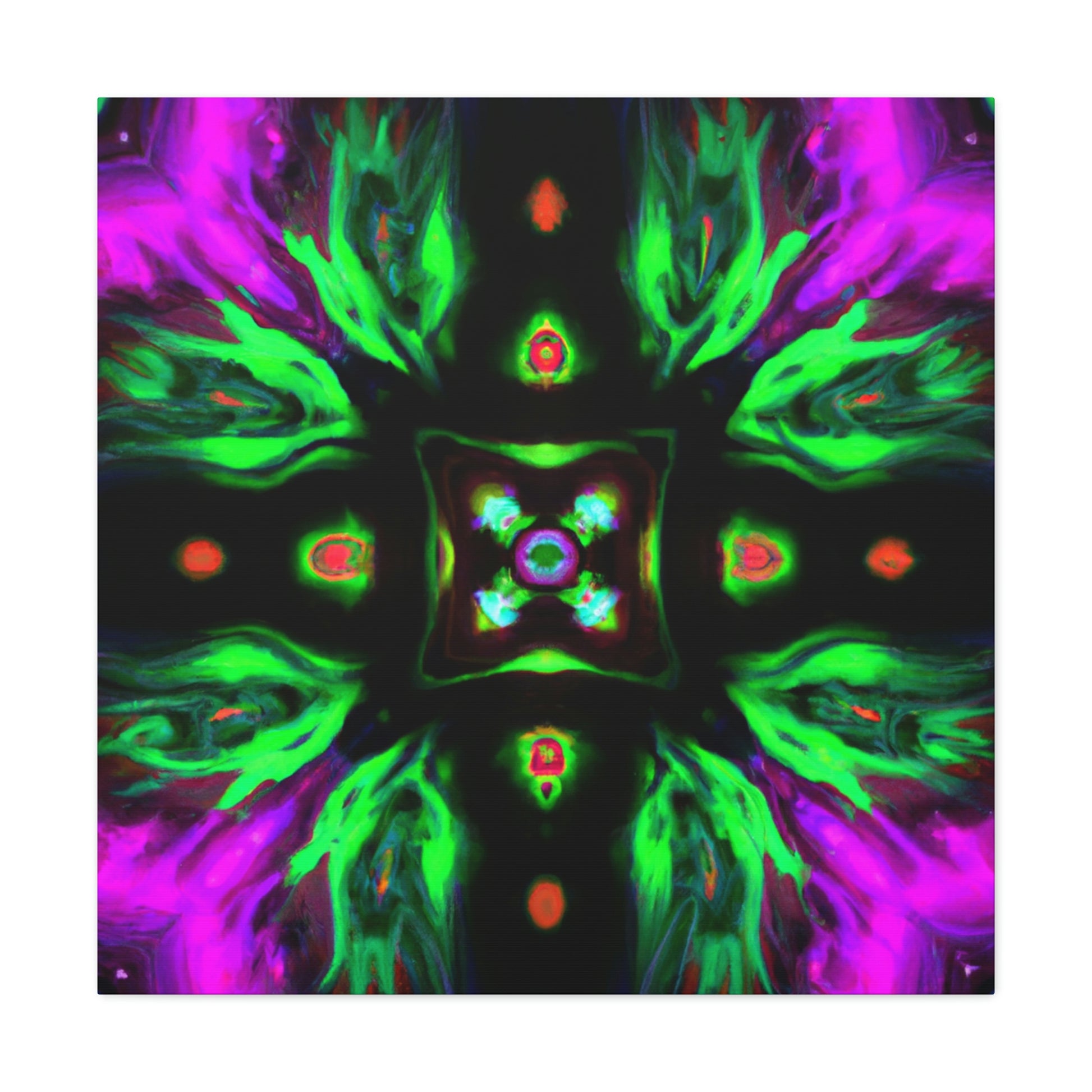This brilliant digital art style adds a splash of colour to any living space. This vibrant canvas features an abstract cyberpunk and trippy mushroom kaleidoscope, sure to captivate minds of all ages. It's hand-stretched over a quality wooden frame and looks perfect indoors or outdoors. Add this eye-catching masterpiece to your home and elevate your art collection today! #CyberpunkArt #AbstractArt #DigitalArt #HomeDecor #CanvasArt #Mushrooms #TrippyMushrooms #Kaleidoscope #Abstract #Vibrant #Cyperpunkin #Stylish