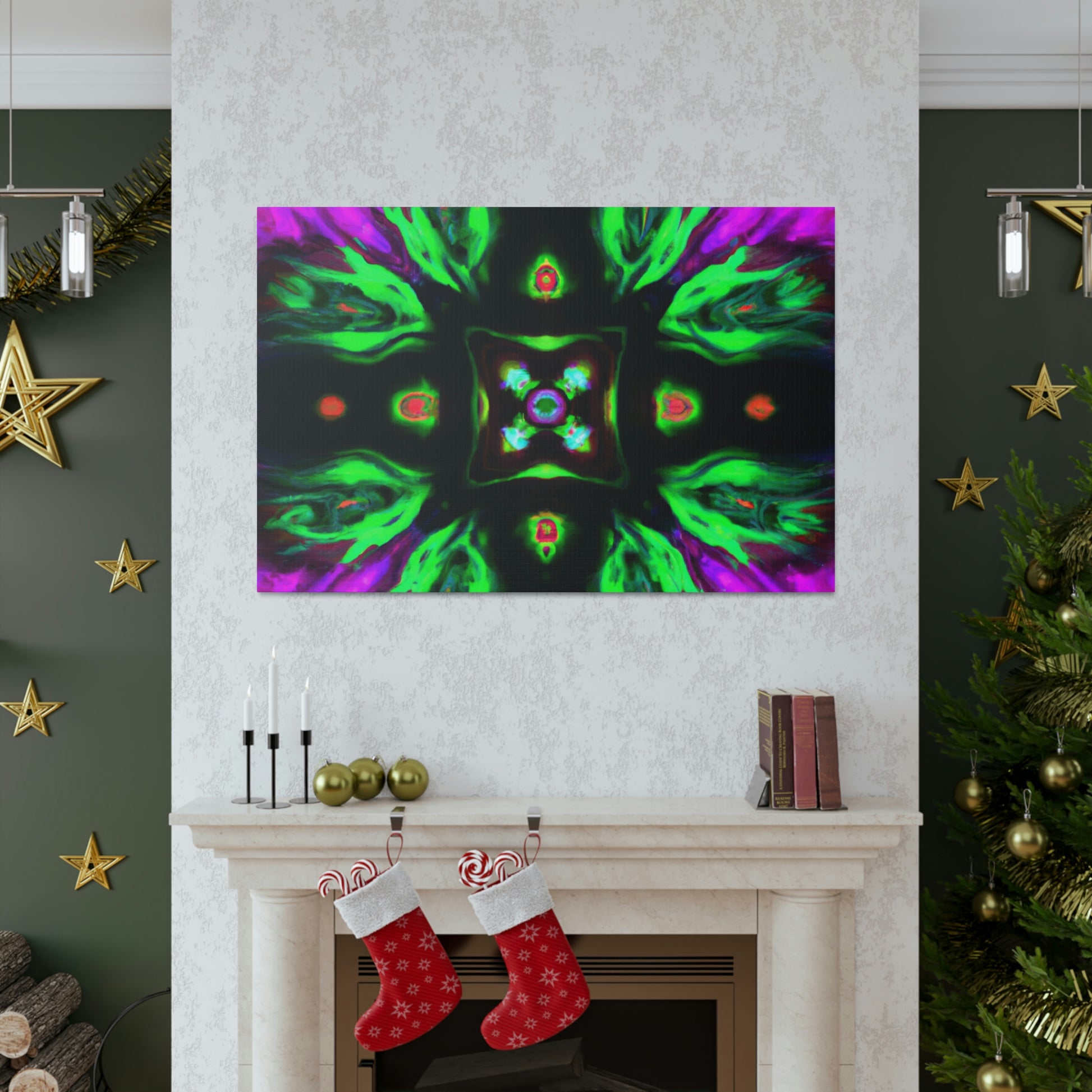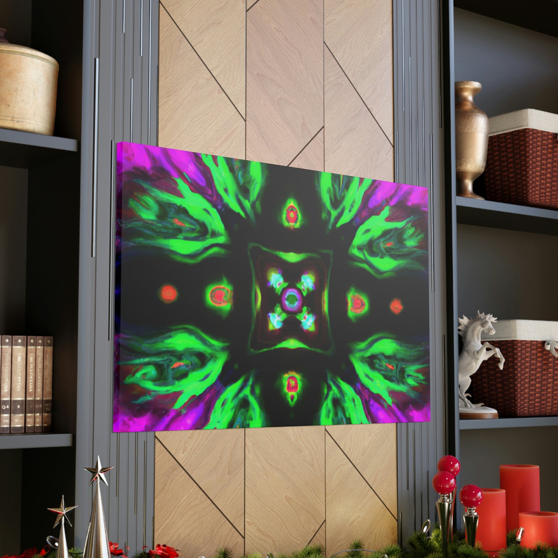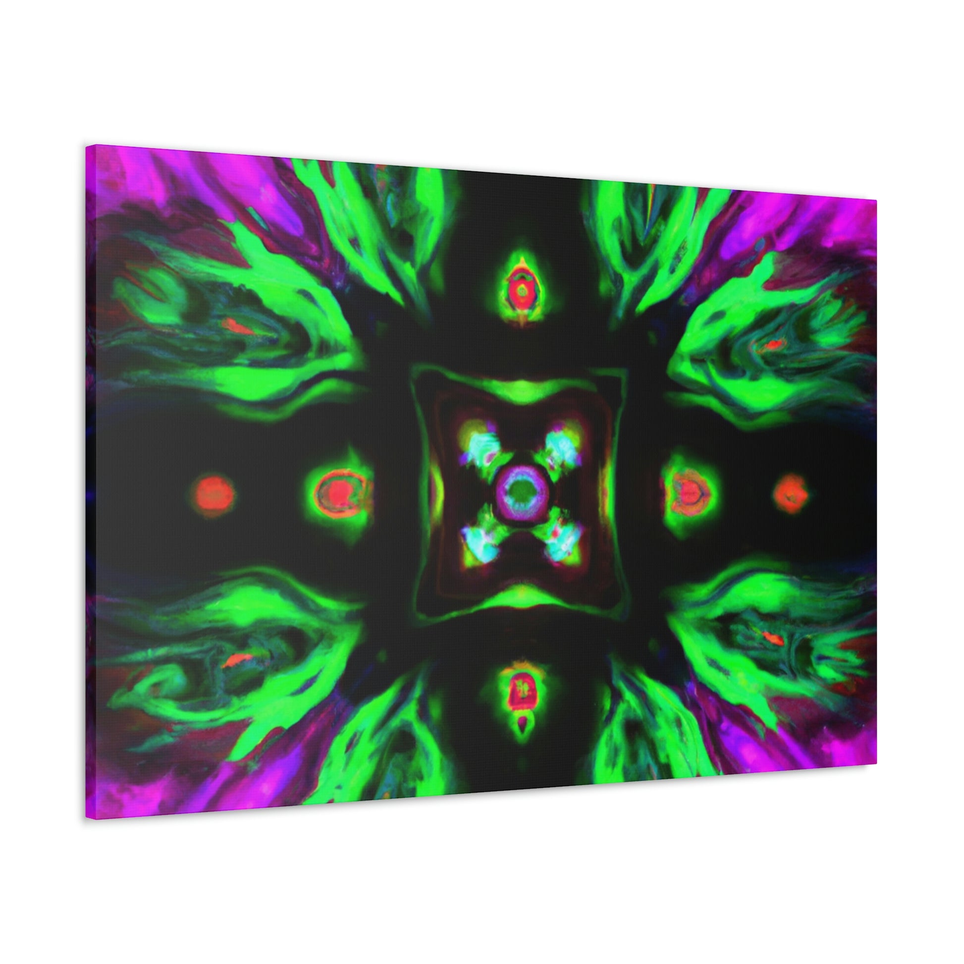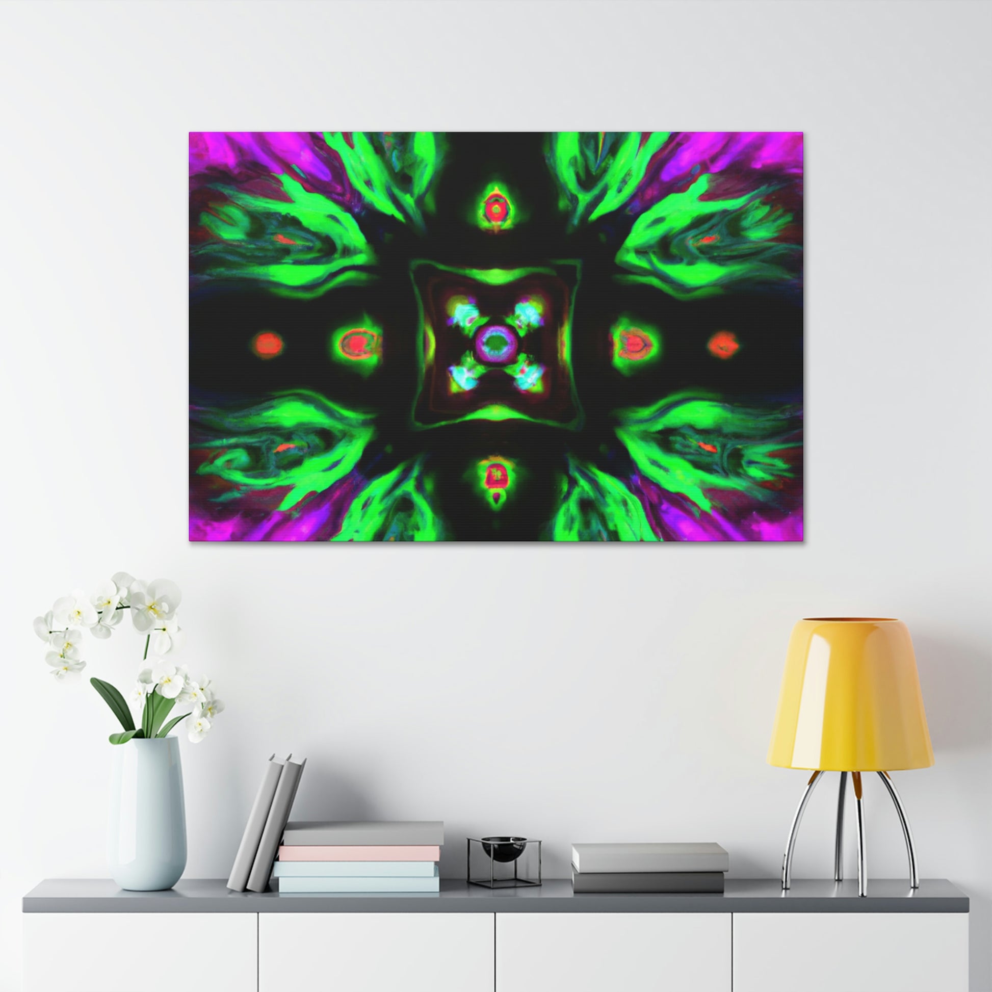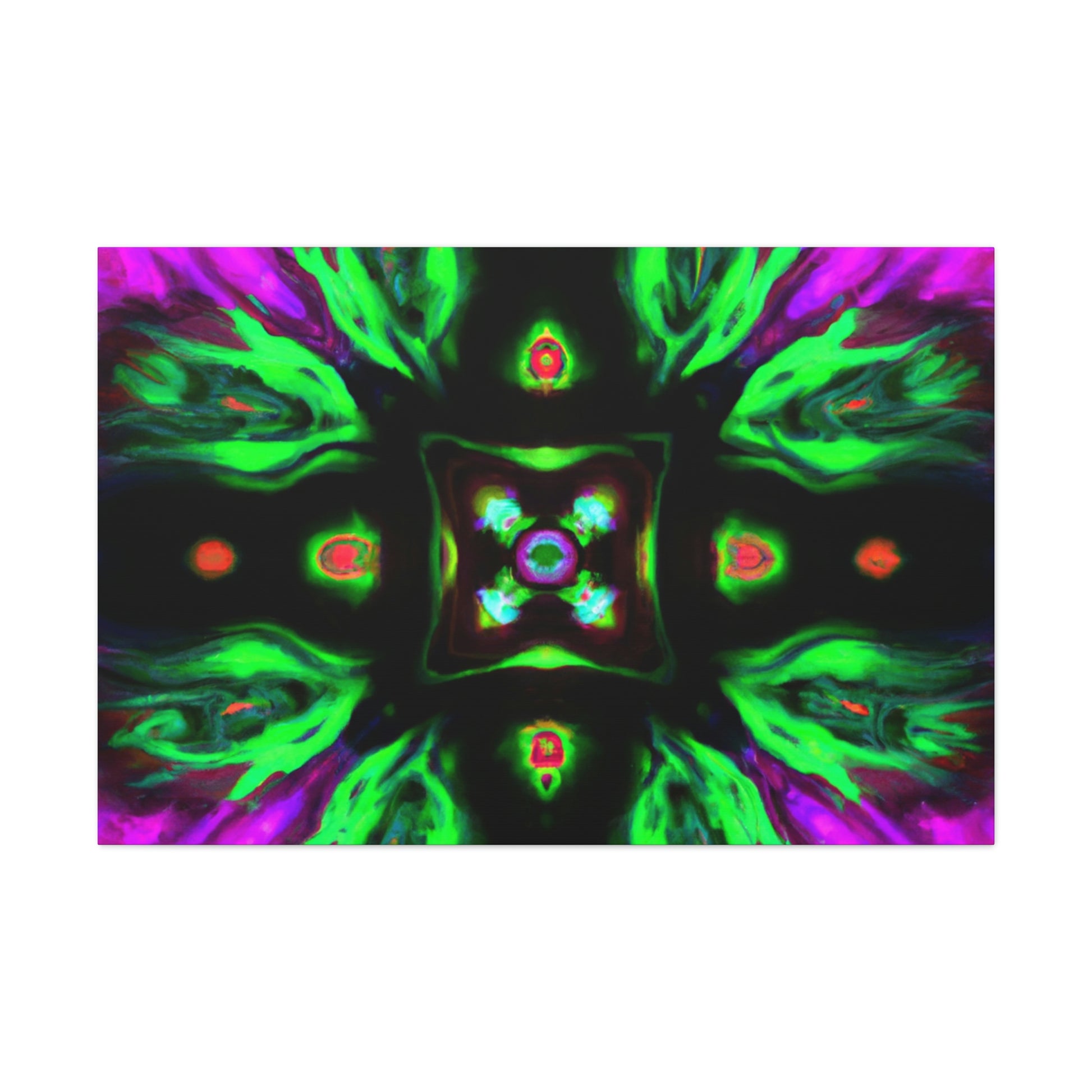 This brilliant digital art style adds a splash of colour to any living space. This vibrant canvas features an abstract cyberpunk and trippy mushroom kaleidoscope, sure to captivate minds of all ages. It's hand-stretched over a quality wooden frame and looks perfect indoors or outdoors. Add this eye-catching masterpiece to your home and elevate your art collection today! #CyberpunkArt #AbstractArt #DigitalArt #HomeDecor #CanvasArt #Mushrooms #TrippyMushrooms #Kaleidoscope #Abstract #Vibrant #Cyperpunkin #Stylish