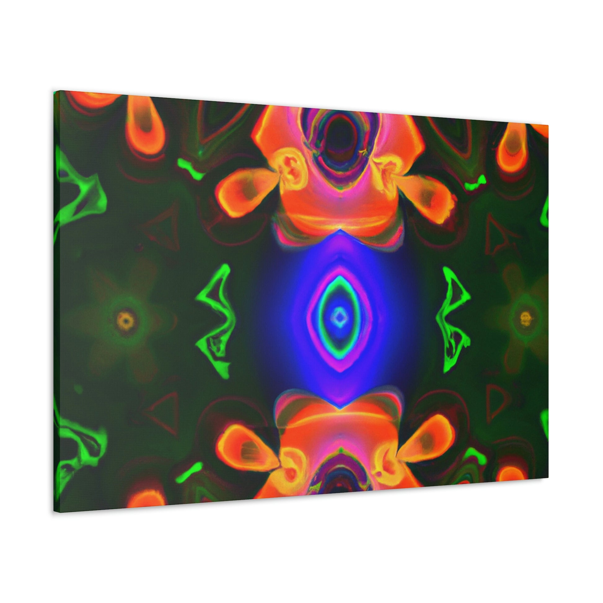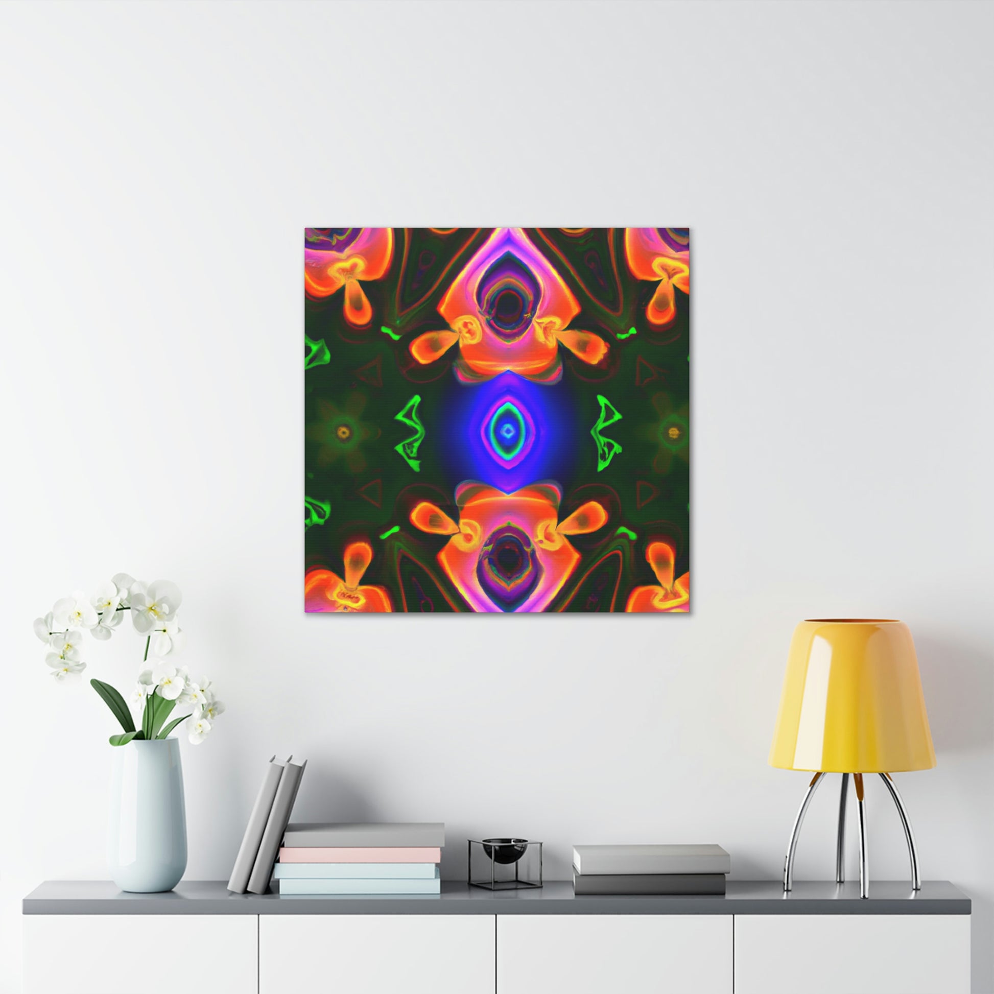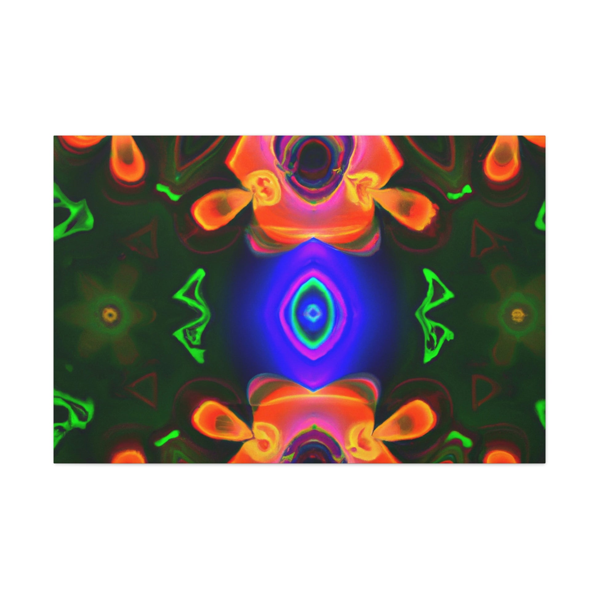 This one-of-a-kind canvas will transport you to another world! Featuring trippy mushrooms, kaleidoscope, abstract and digital art, and cyperpunkin designs, this canvas is perfect for any space needing some visual pizzazz. Bright colors, bold patterns, and intricate detailing make this a stunning piece of art and a great conversation starter! #digitalart #trippyart #cyperpunkin #abstractart #canvasart #mushroomart #kaleidoscope #canvasmurals #décorart #wallart #boldart