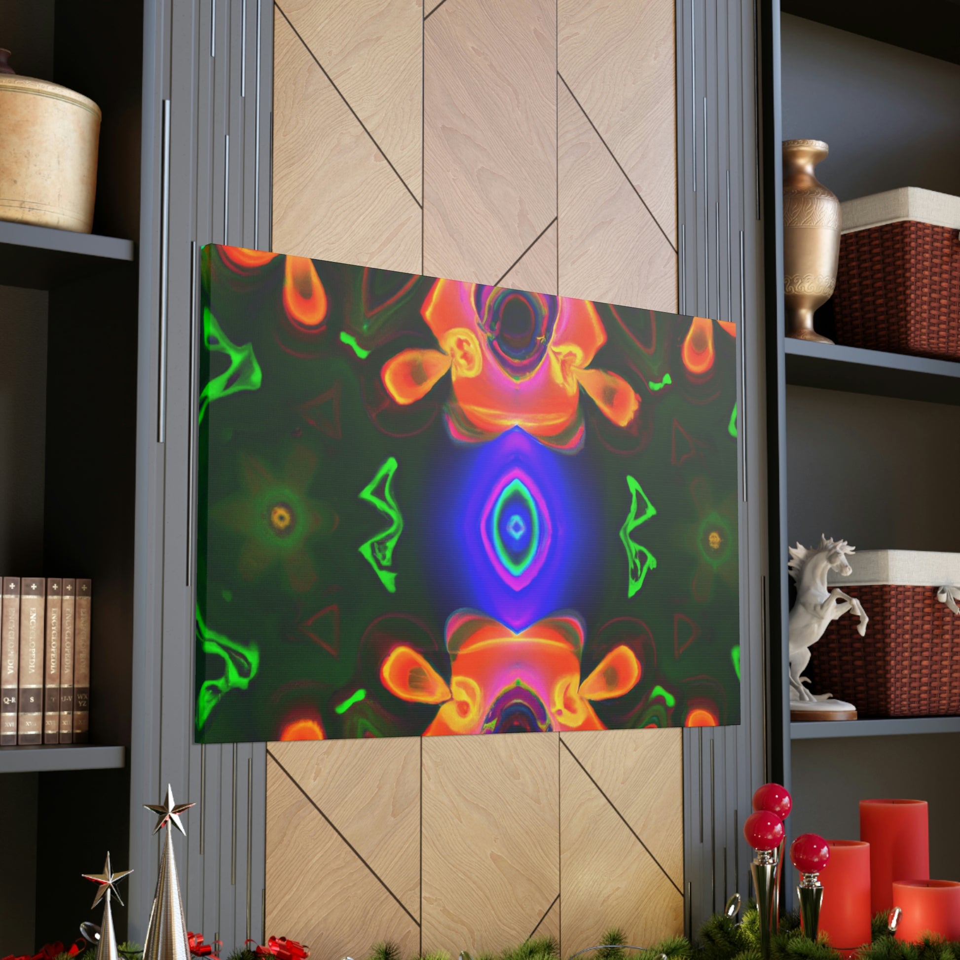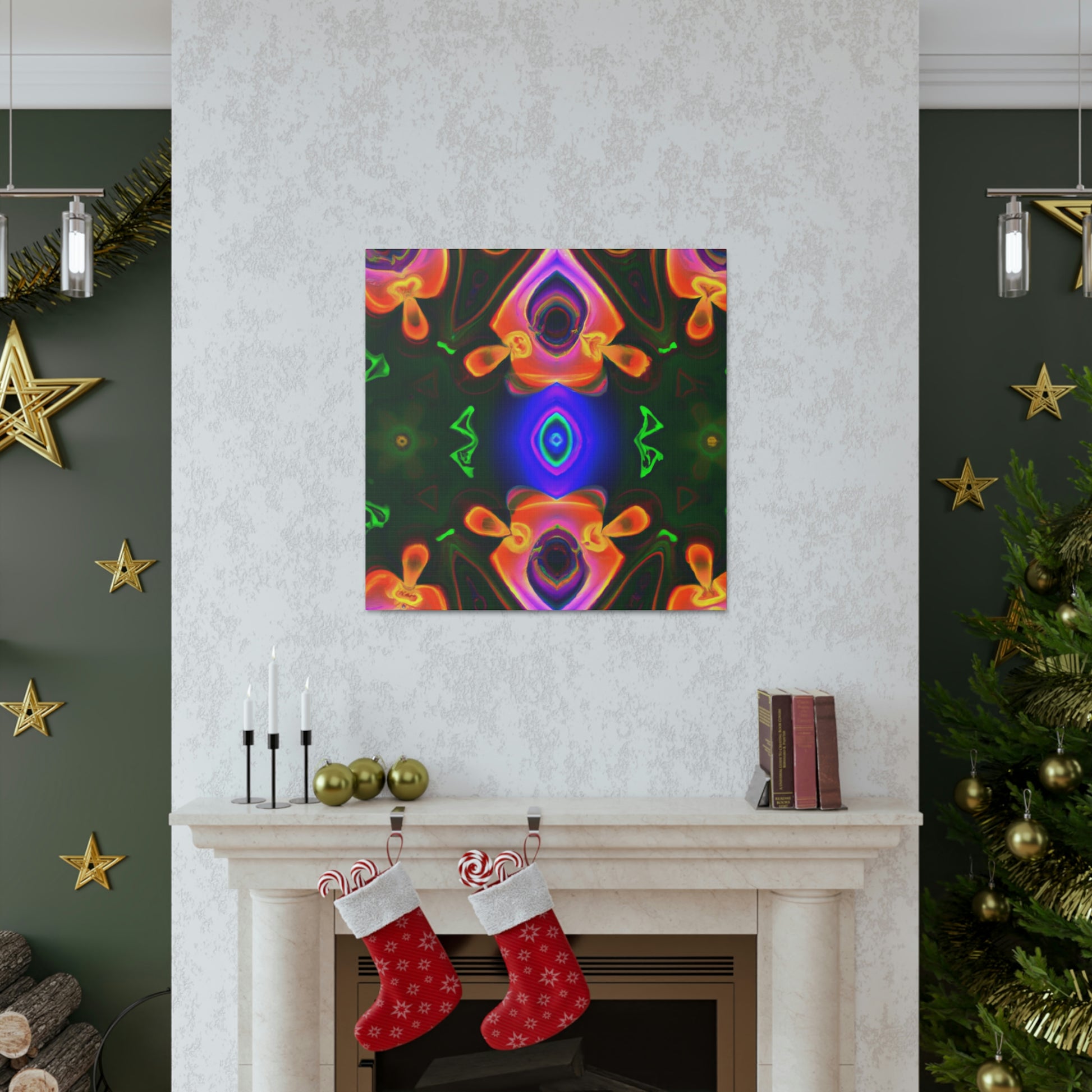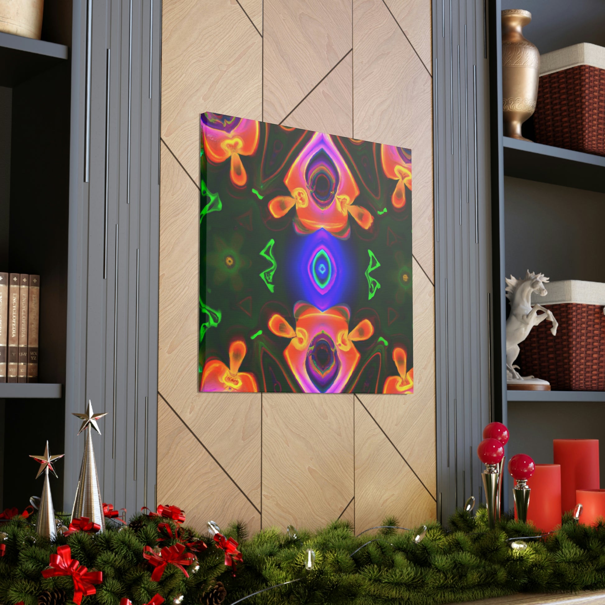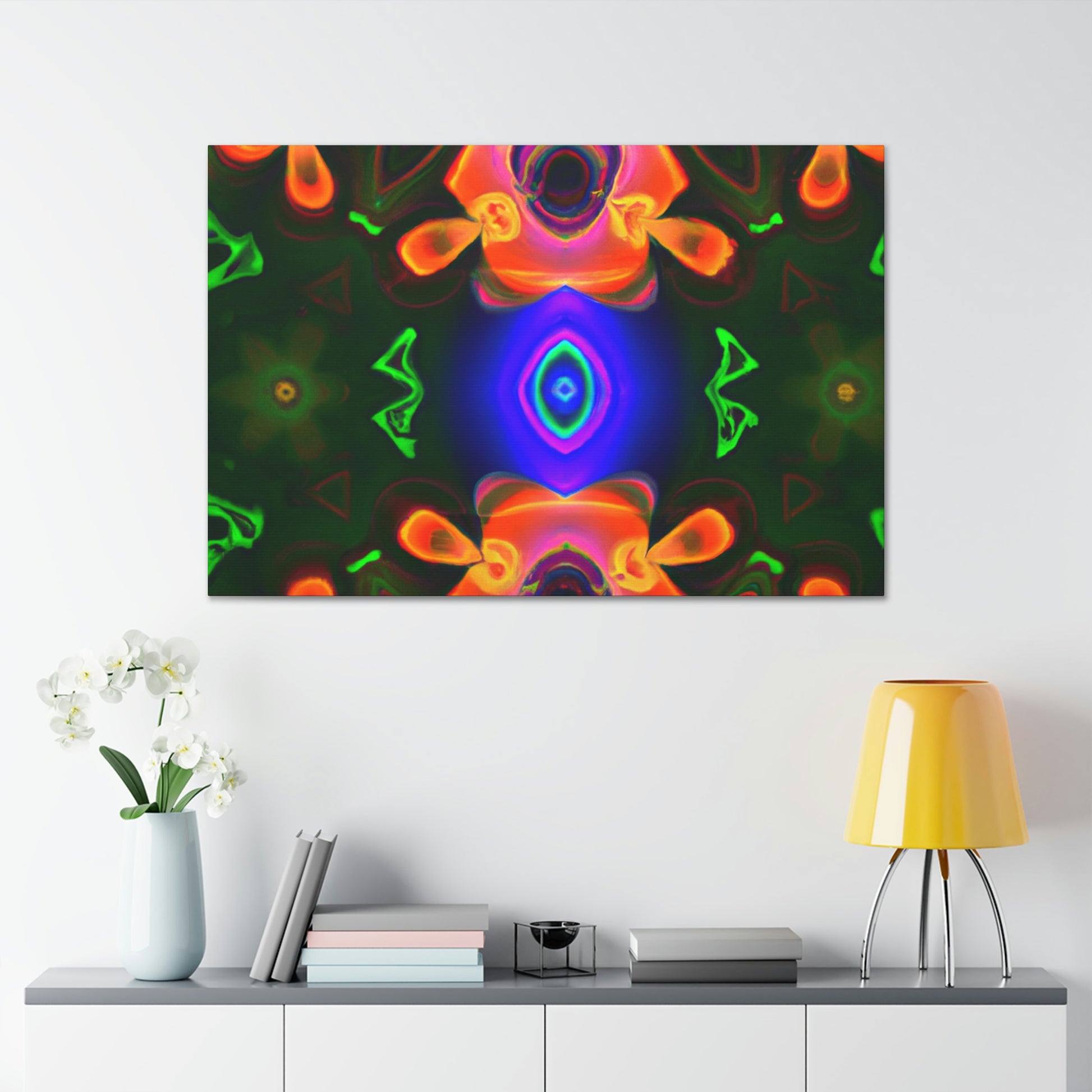 This one-of-a-kind canvas will transport you to another world! Featuring trippy mushrooms, kaleidoscope, abstract and digital art, and cyperpunkin designs, this canvas is perfect for any space needing some visual pizzazz. Bright colors, bold patterns, and intricate detailing make this a stunning piece of art and a great conversation starter! #digitalart #trippyart #cyperpunkin #abstractart #canvasart #mushroomart #kaleidoscope #canvasmurals #décorart #wallart #boldart