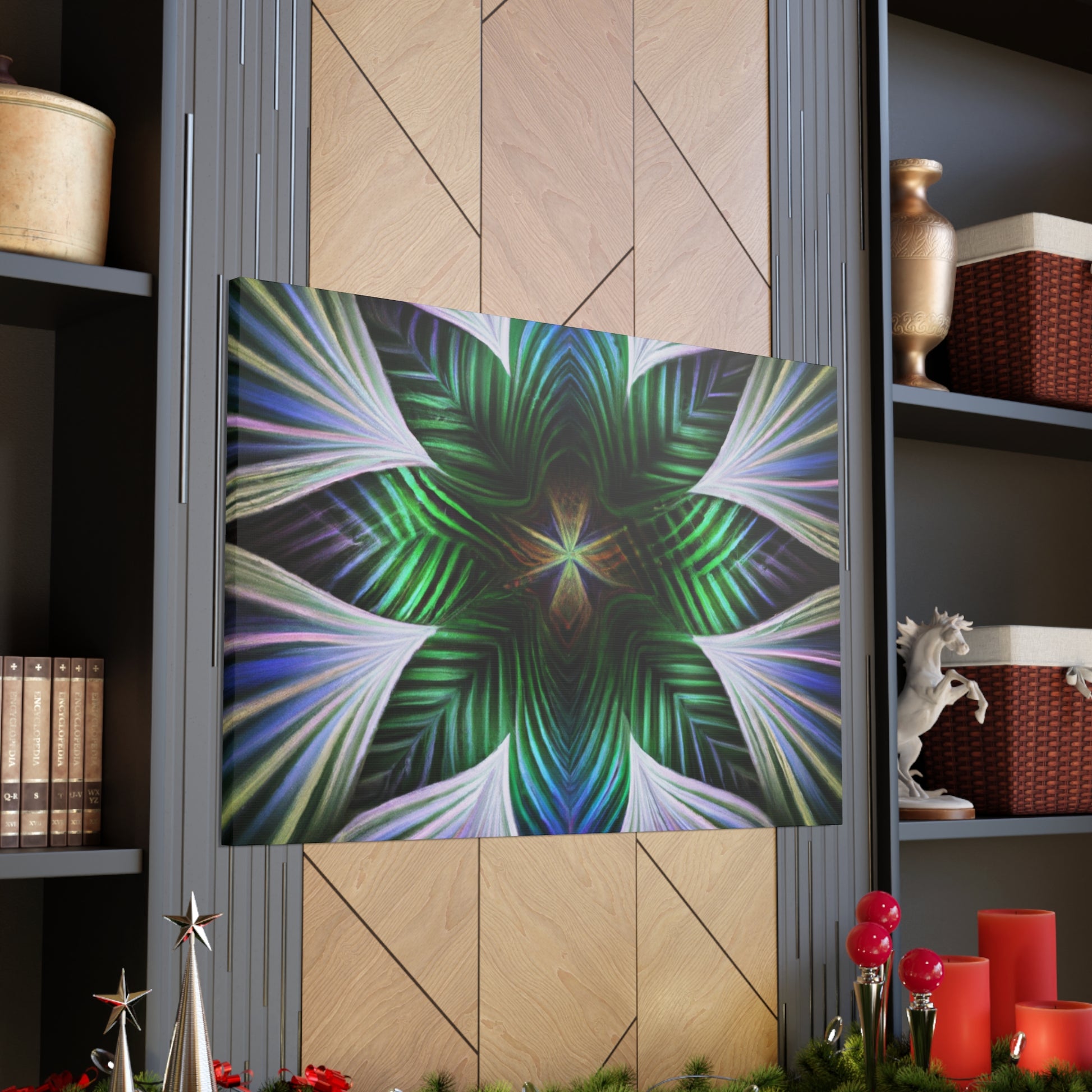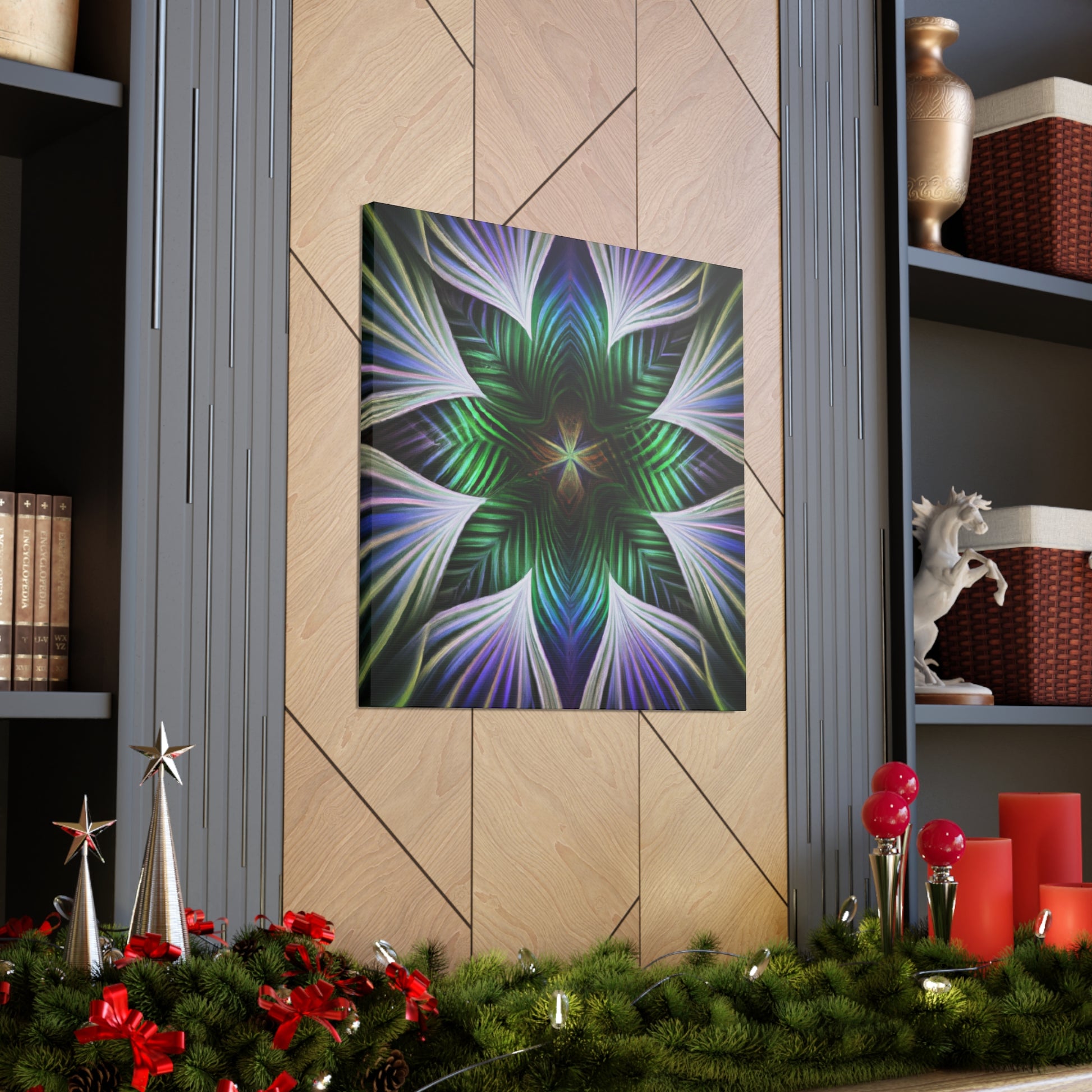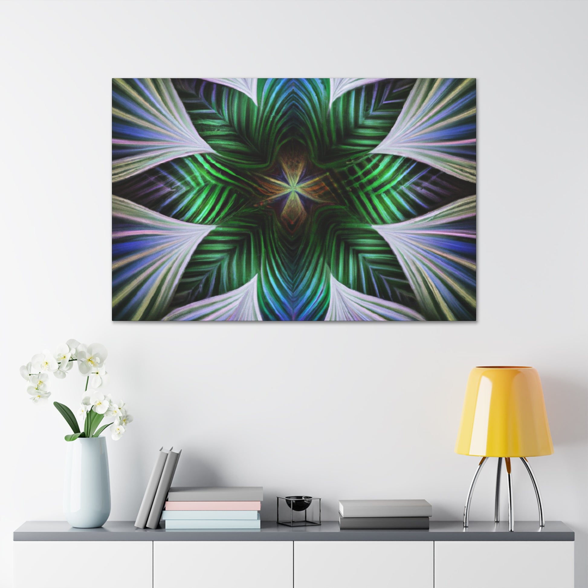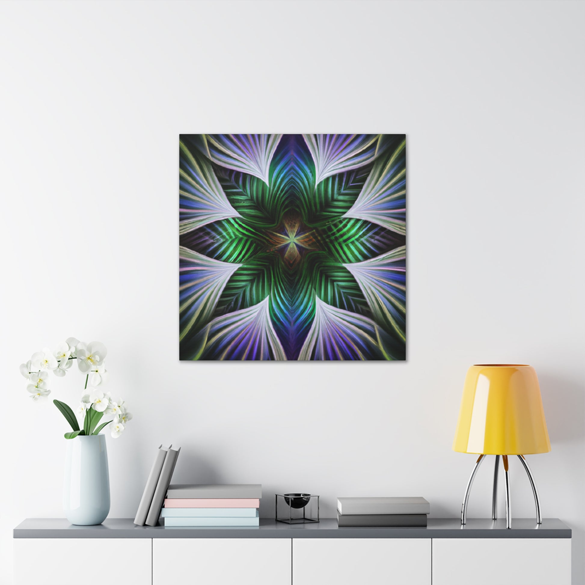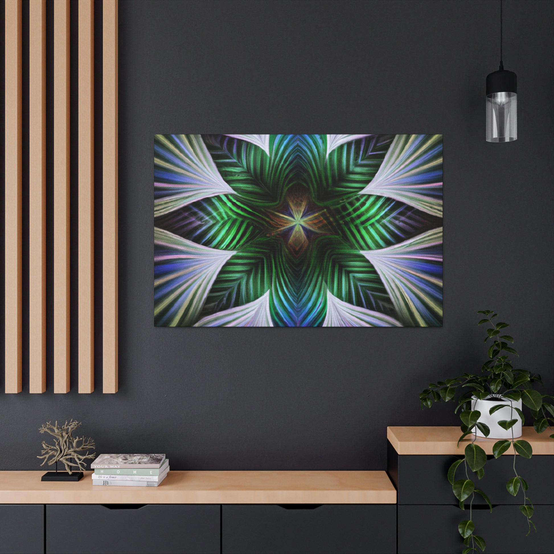 This canvas art is an eye-catching design of vibrant colors, 3D lines and fractals. Trippy geometric palm leaves and abstract digital art create a mesmerizing kaleidoscope design when viewed from a distance. Perfect for modern interiors, the canvas art makes a bold statement and adds character to any room! #abstractart #digitalart #trippy #palmleaves #kaleidoscope #vibrantcolors #3Dlines #fractal #canvasart #interiordesign #modernart