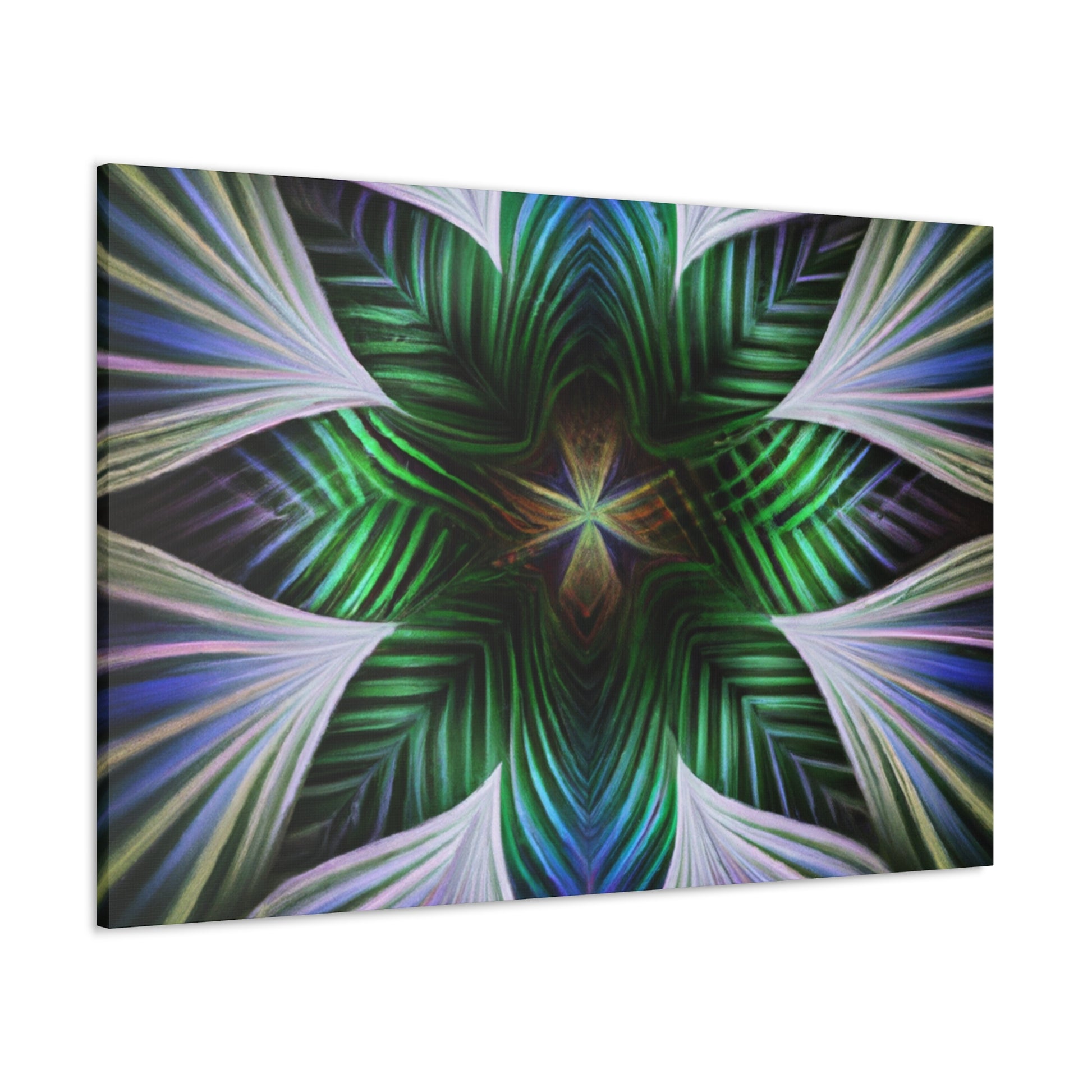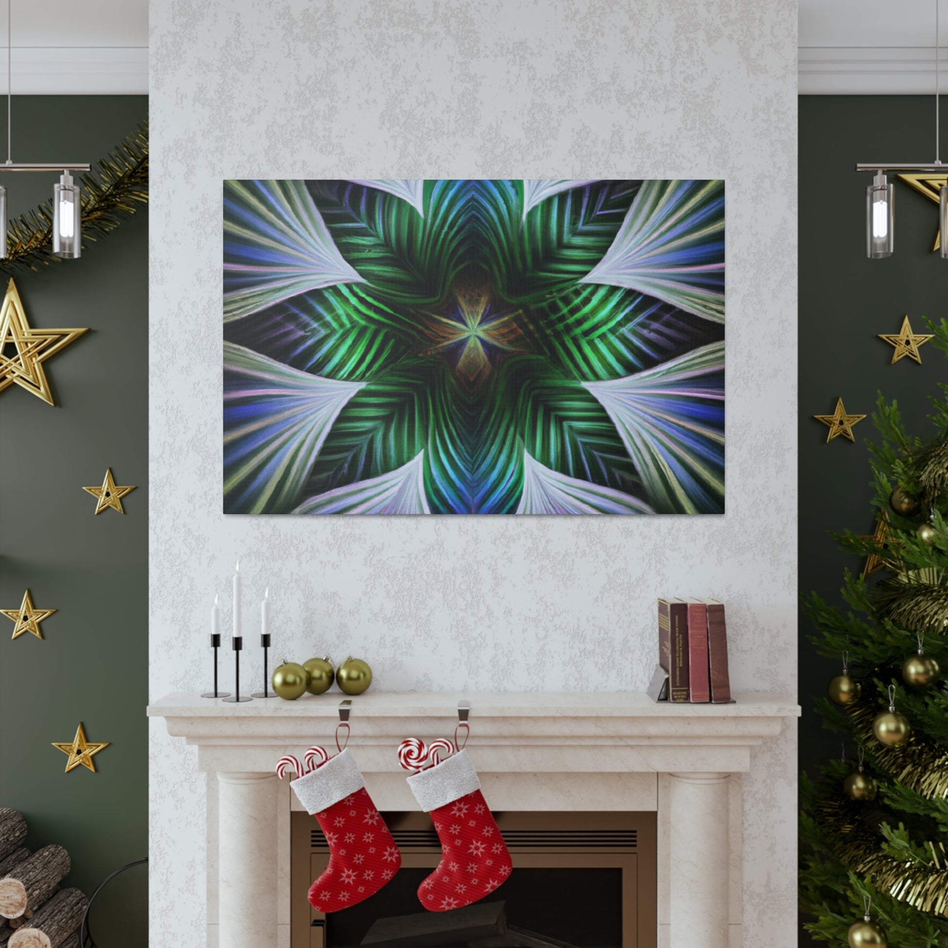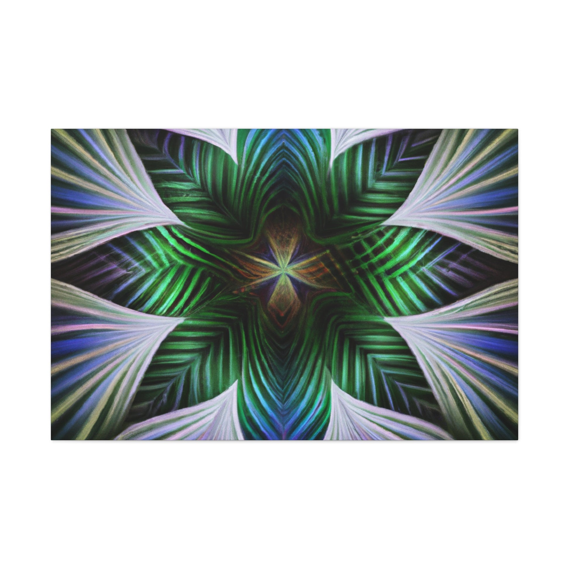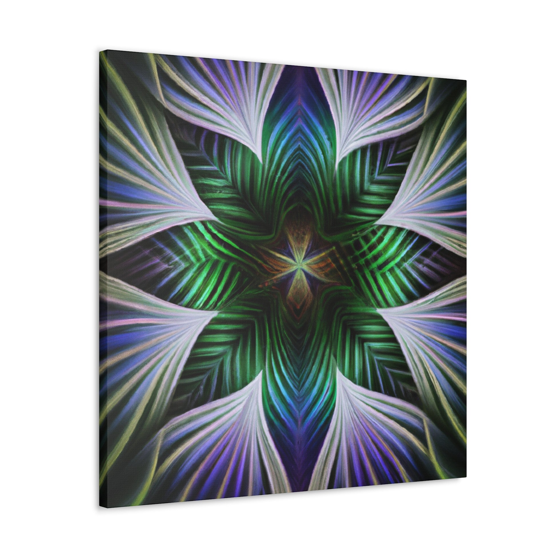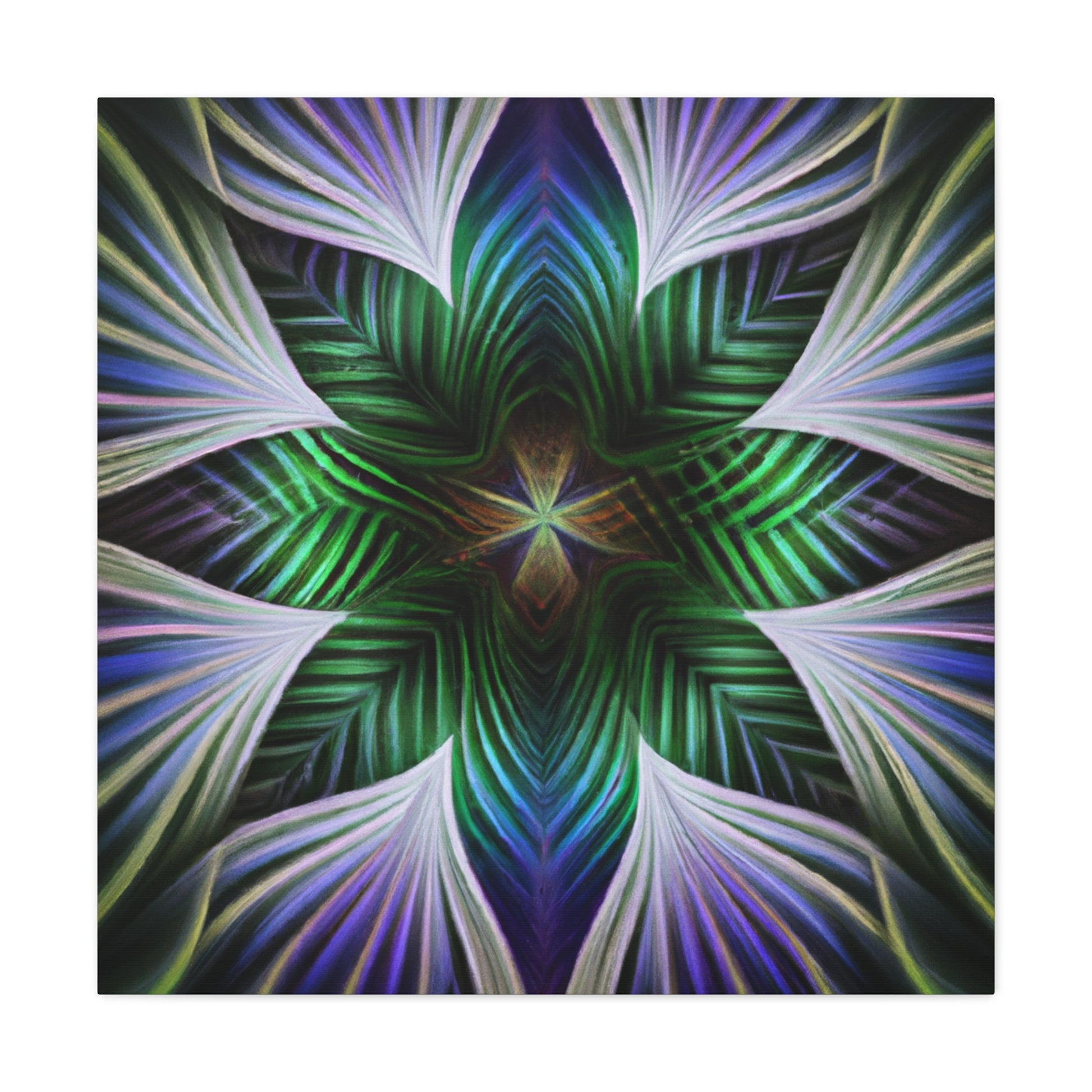This canvas art is an eye-catching design of vibrant colors, 3D lines and fractals. Trippy geometric palm leaves and abstract digital art create a mesmerizing kaleidoscope design when viewed from a distance. Perfect for modern interiors, the canvas art makes a bold statement and adds character to any room! #abstractart #digitalart #trippy #palmleaves #kaleidoscope #vibrantcolors #3Dlines #fractal #canvasart #interiordesign #modernart