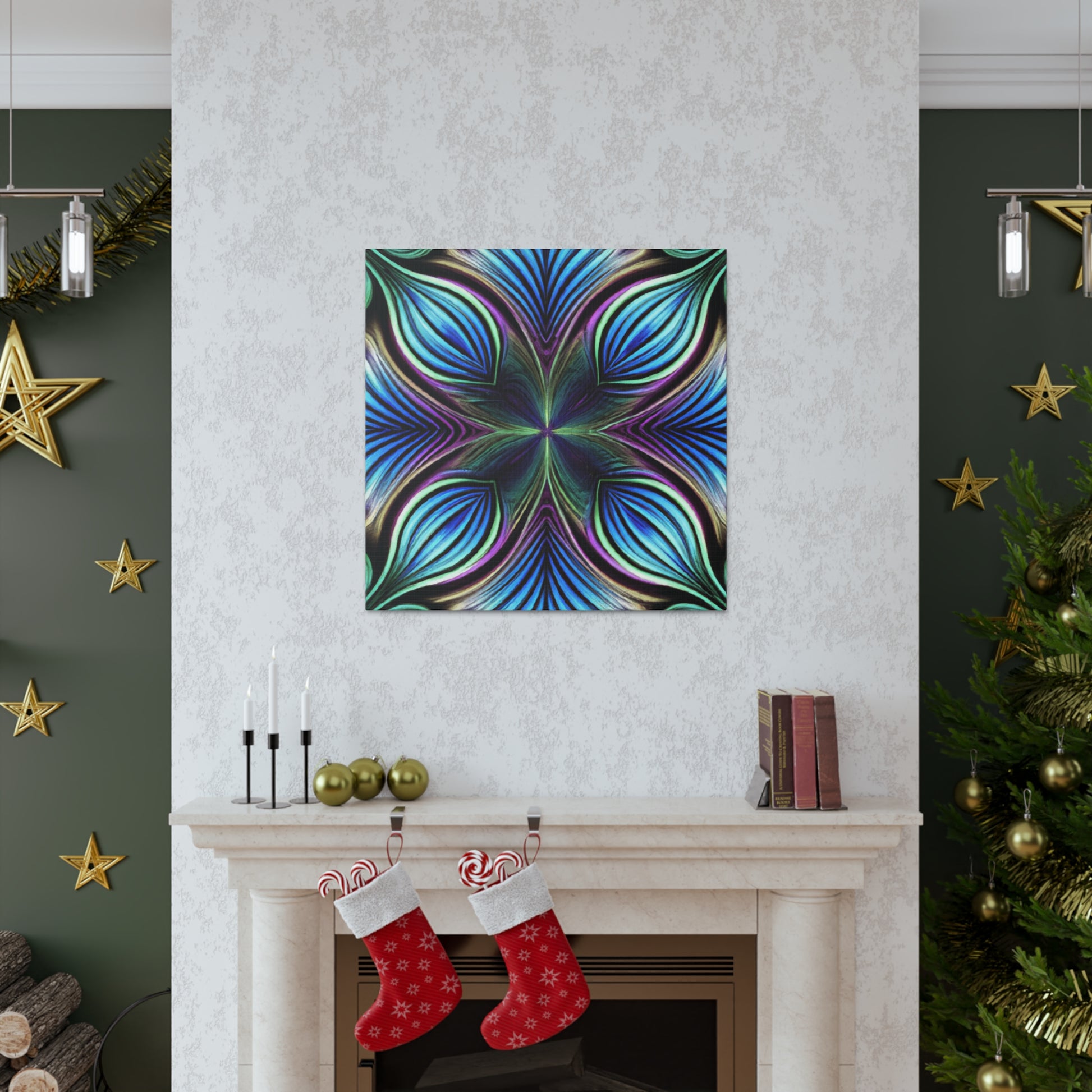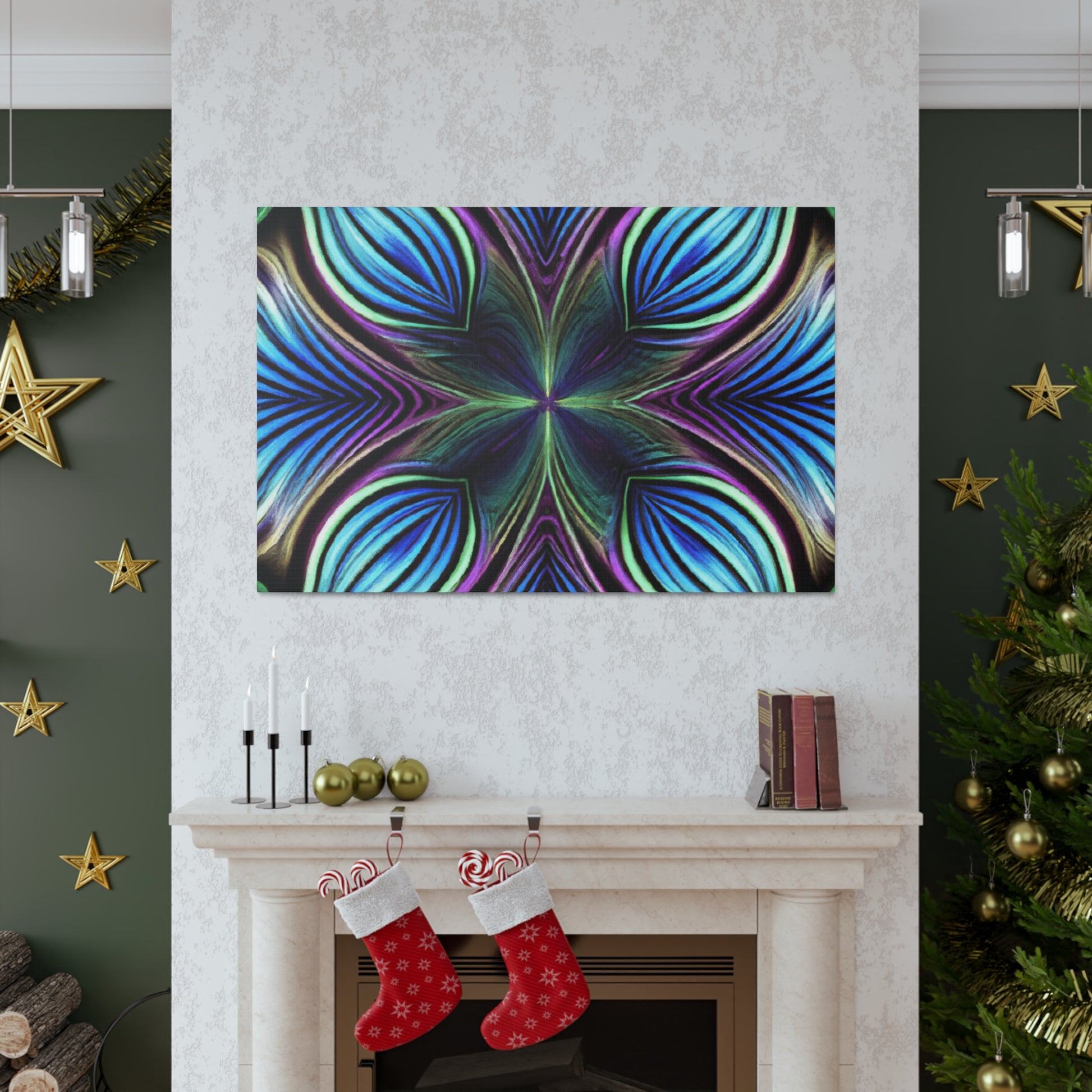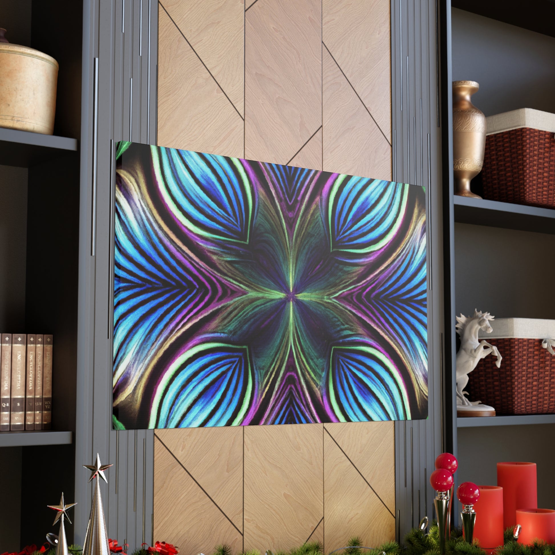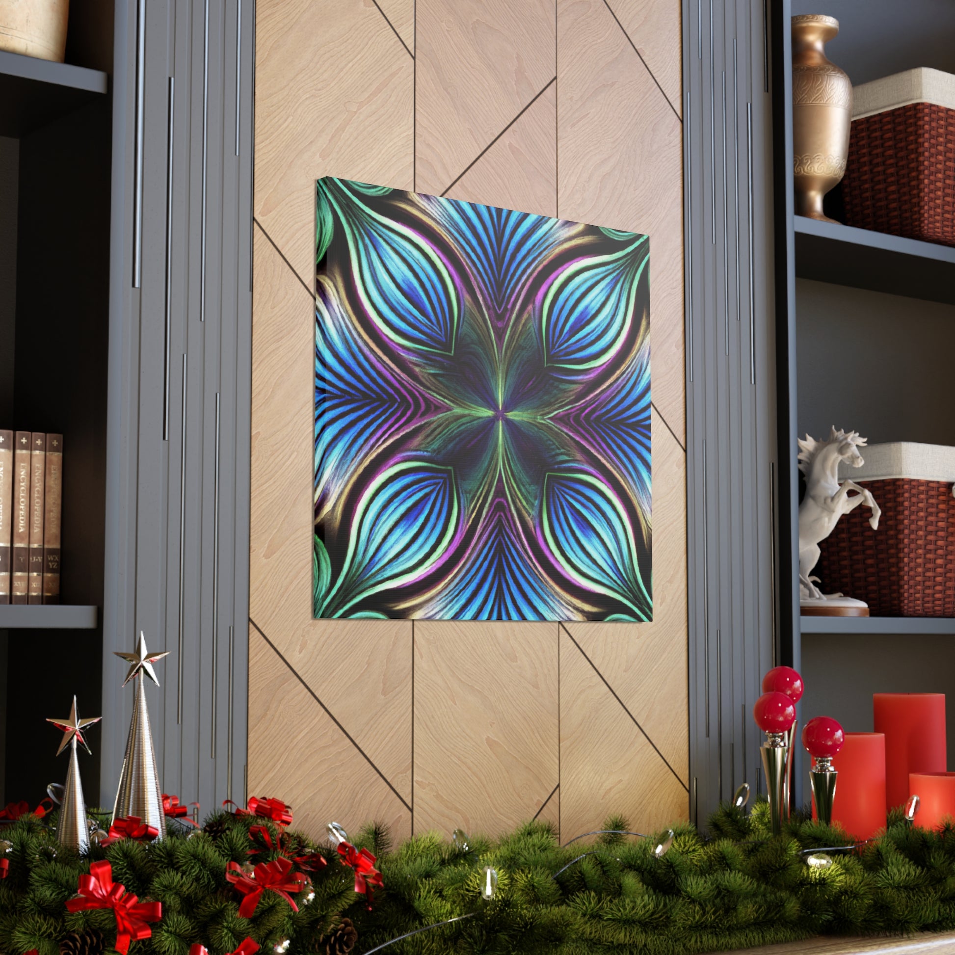 This canvas takes artistry to a whole new level. Featuring Trippy geometric palm leaves, kaleidoscope, abstract, digital art, and bright vibrant colors, it captures the beauty of a 3D lined fractal. This piece is eye-catching and stimulating, making it the perfect accent to decorate any room. #trippyart #geometricart #kaleidoscopeart #abstractart #digitalart #vibrantcolors #3Dlines #fractals #modernart #palmleaves #decoration