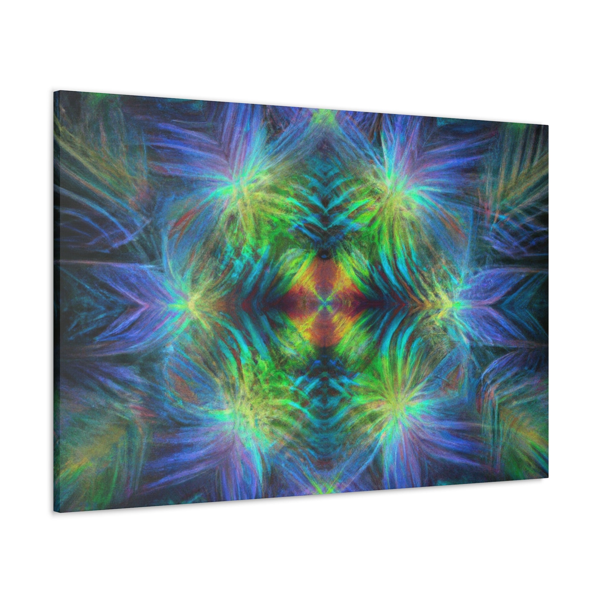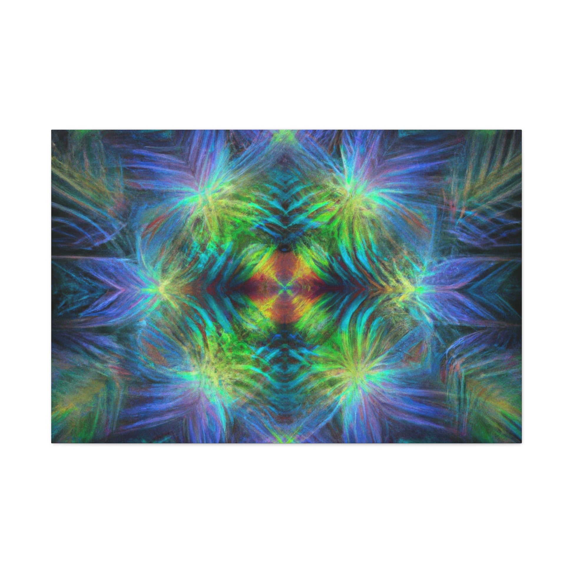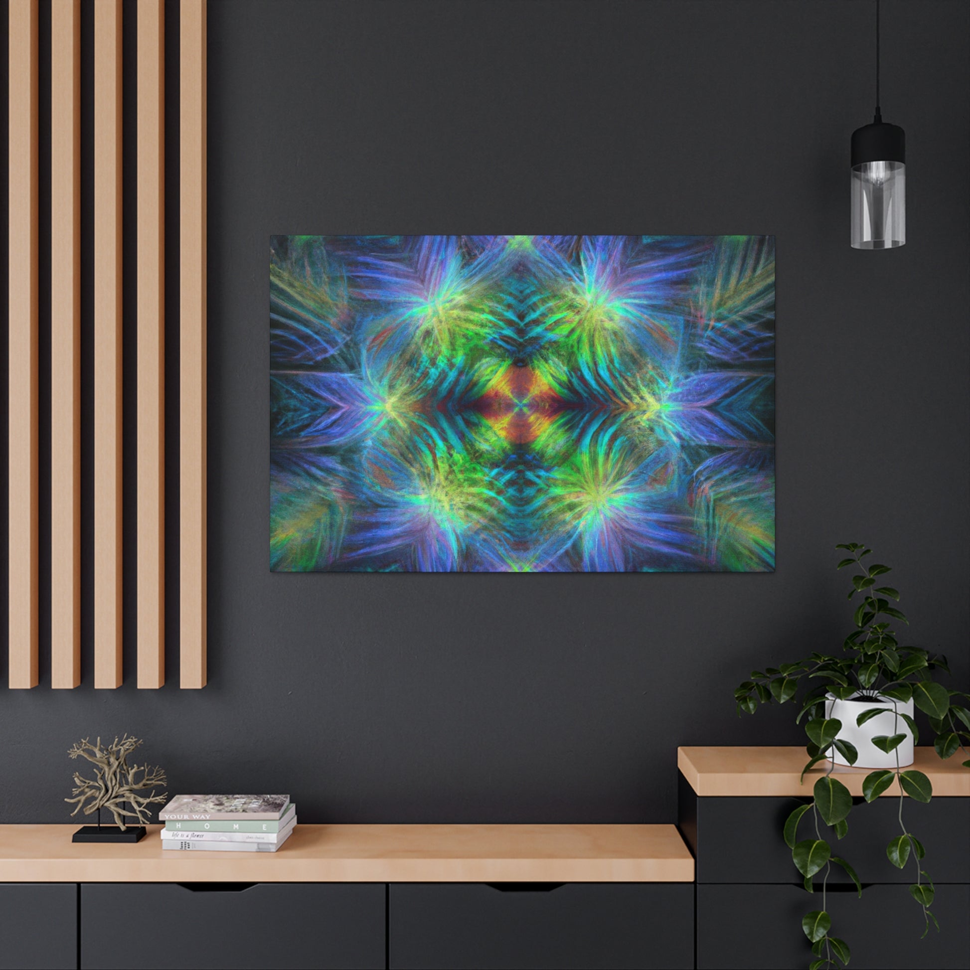 This eye-catching canvas blends psychedelic art and modern abstract into an artful explosion of color and texture! Featuring kaleidoscope, geometric palm leaves, and 3D lines, this piece is sure to make a statement in any room. Constructed of premium canvas and richly-pigmented inks, this beautiful wall art will bring your space to life with vibrant colors, fractals, and digital art. Unwind with this captivating canvas and let it transport you to a kaleidoscopic oasis of color and enchantment! #abstractart #trippyart #modernart #multicolor #psychedelicart #wallart #roomdecor #digitalart #fractalart #kaleidoscope #vibrantcolors