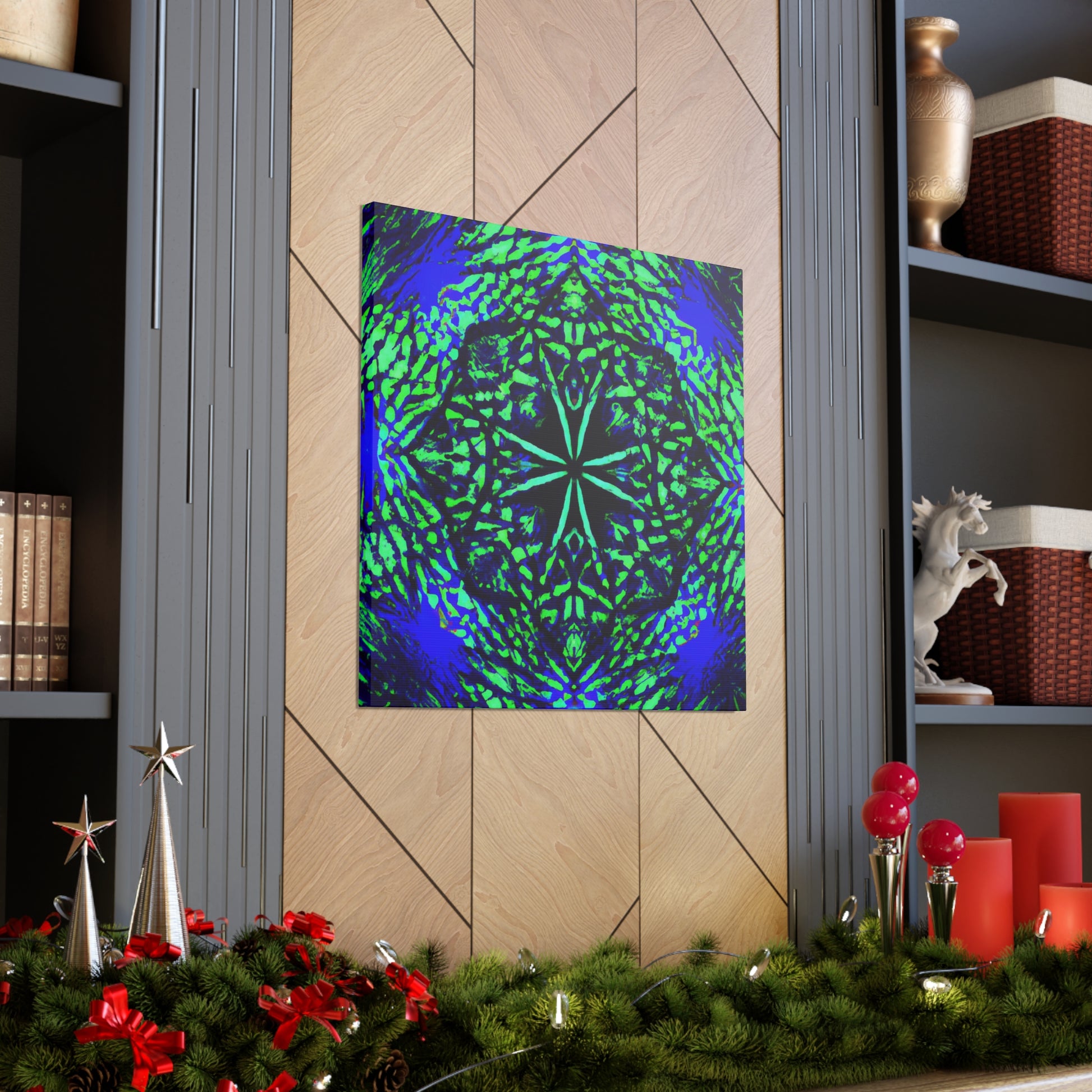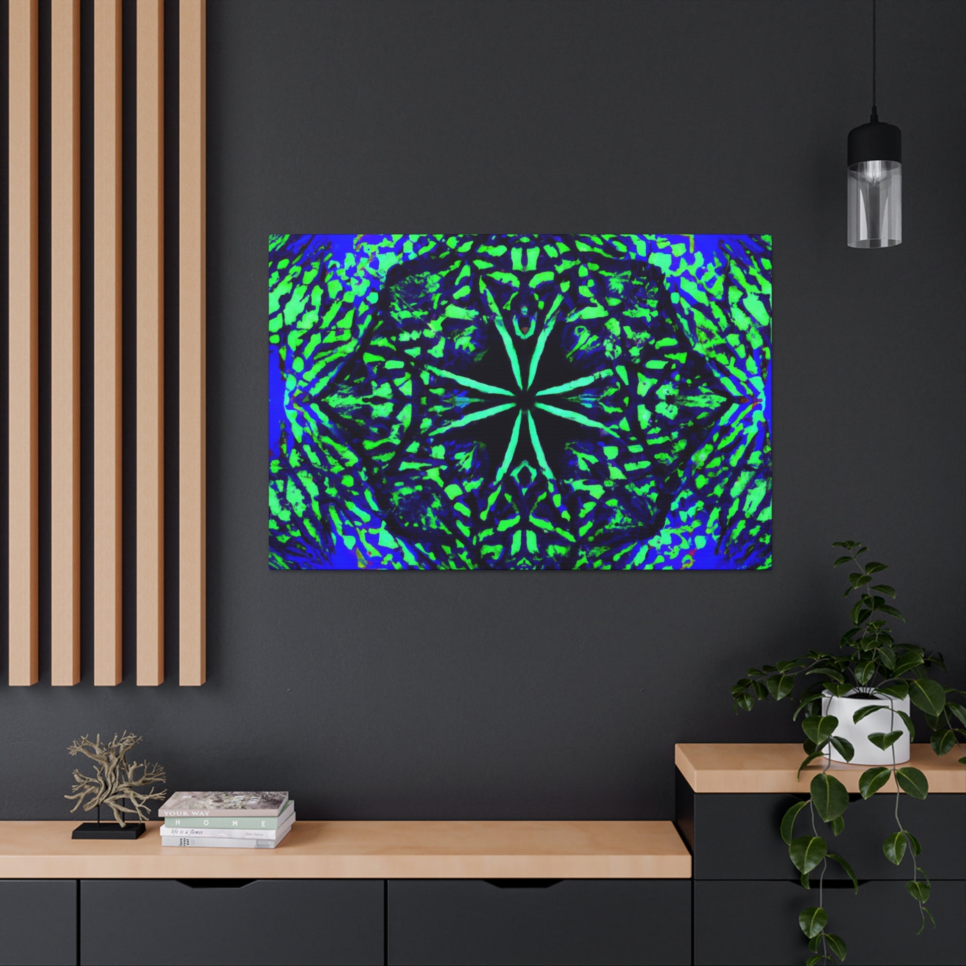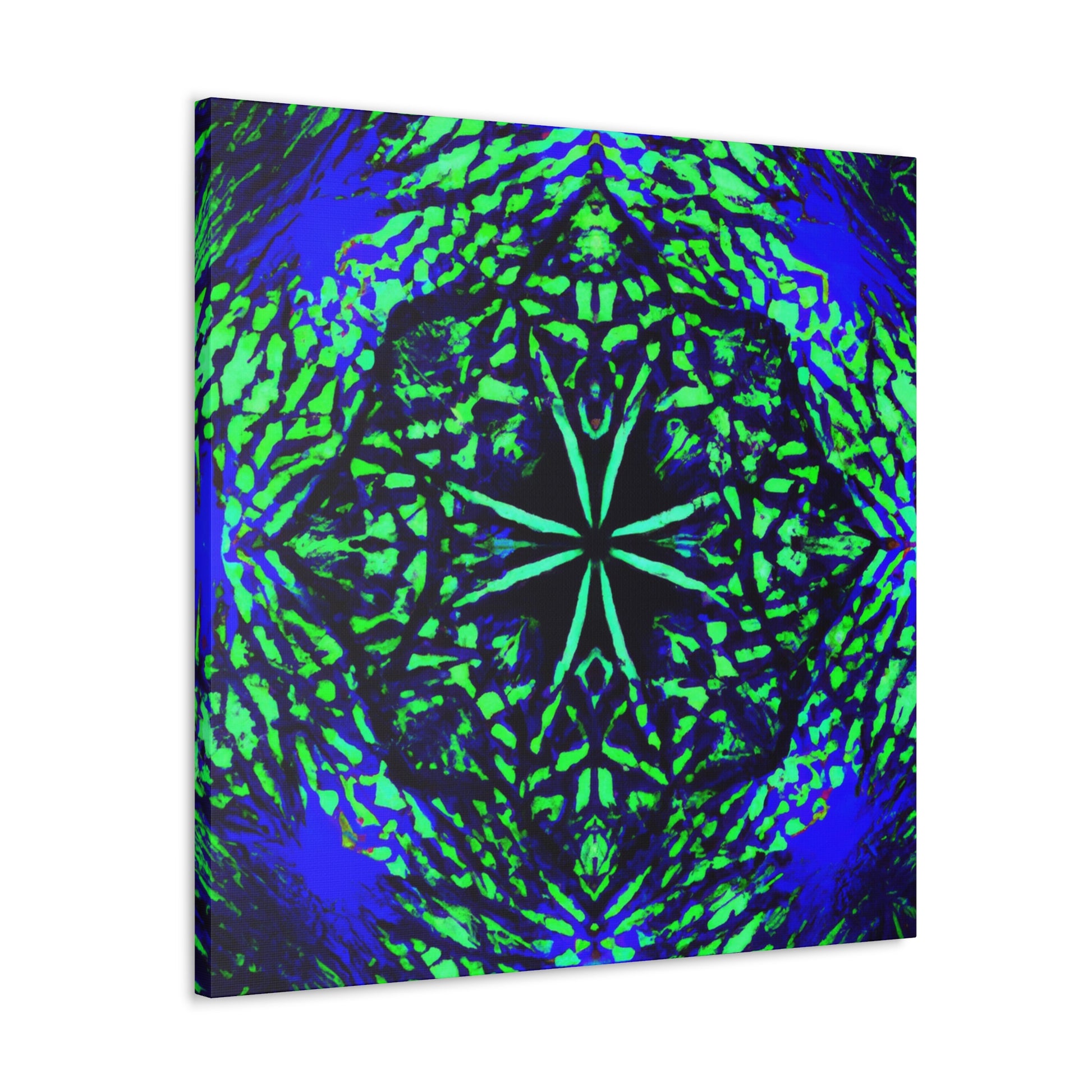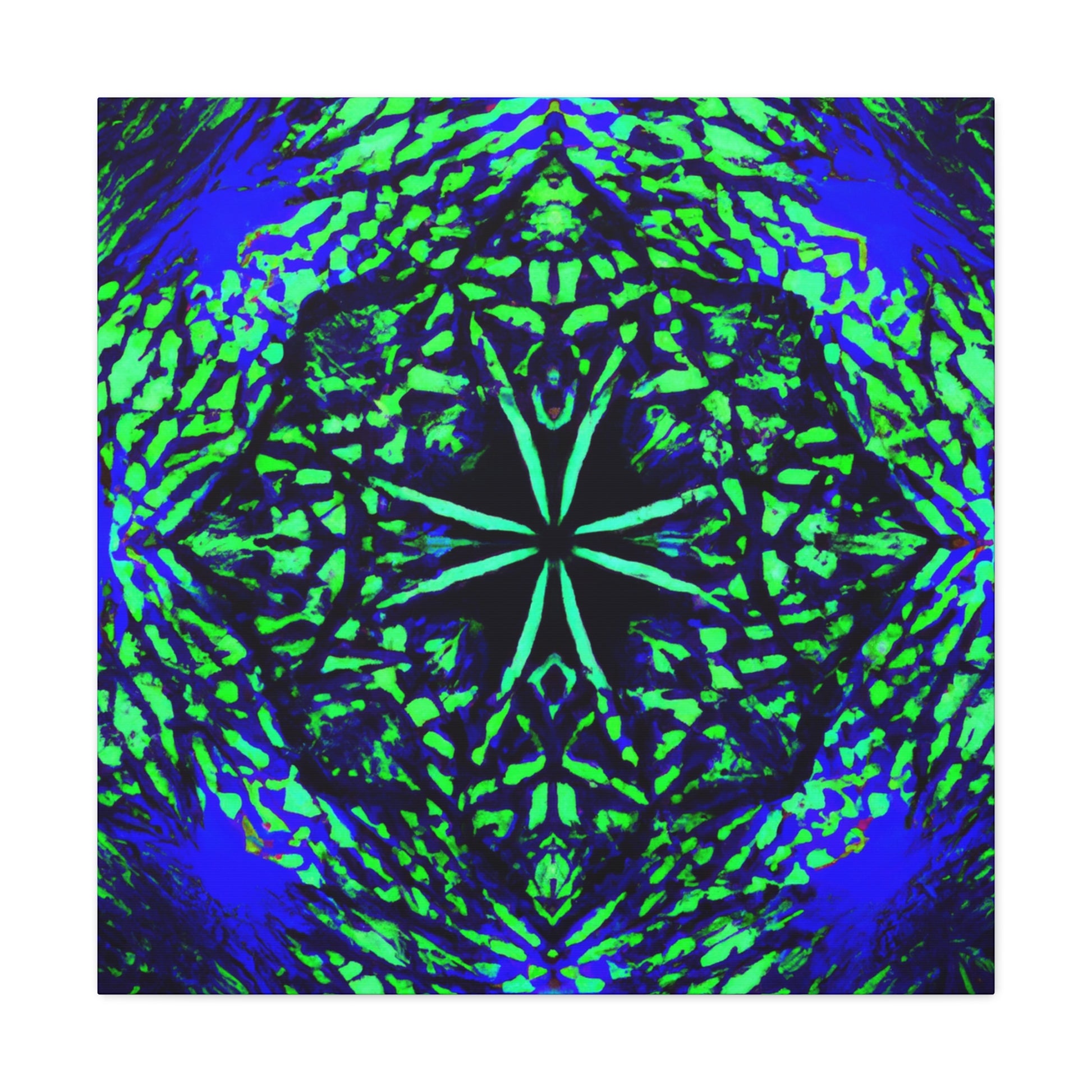 This vibrant digital art canvas features a trippy geometric palm leaves, kaleidoscope, abstract, 3D lines, and fractal design. Its bright colors will bring life to any room. Hanging this canvas will add texture and visual interest to any décor, perfect for creating a unique modern look. #trippyart #geometricpalmleaves #kaleidoscope #abstractart #vibrantcolors #3Dlines #fractal #digitalart #canvas #modernart #interiordesign