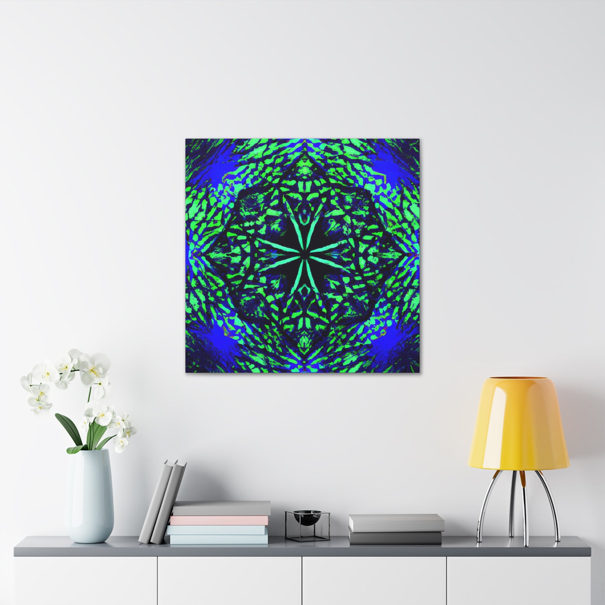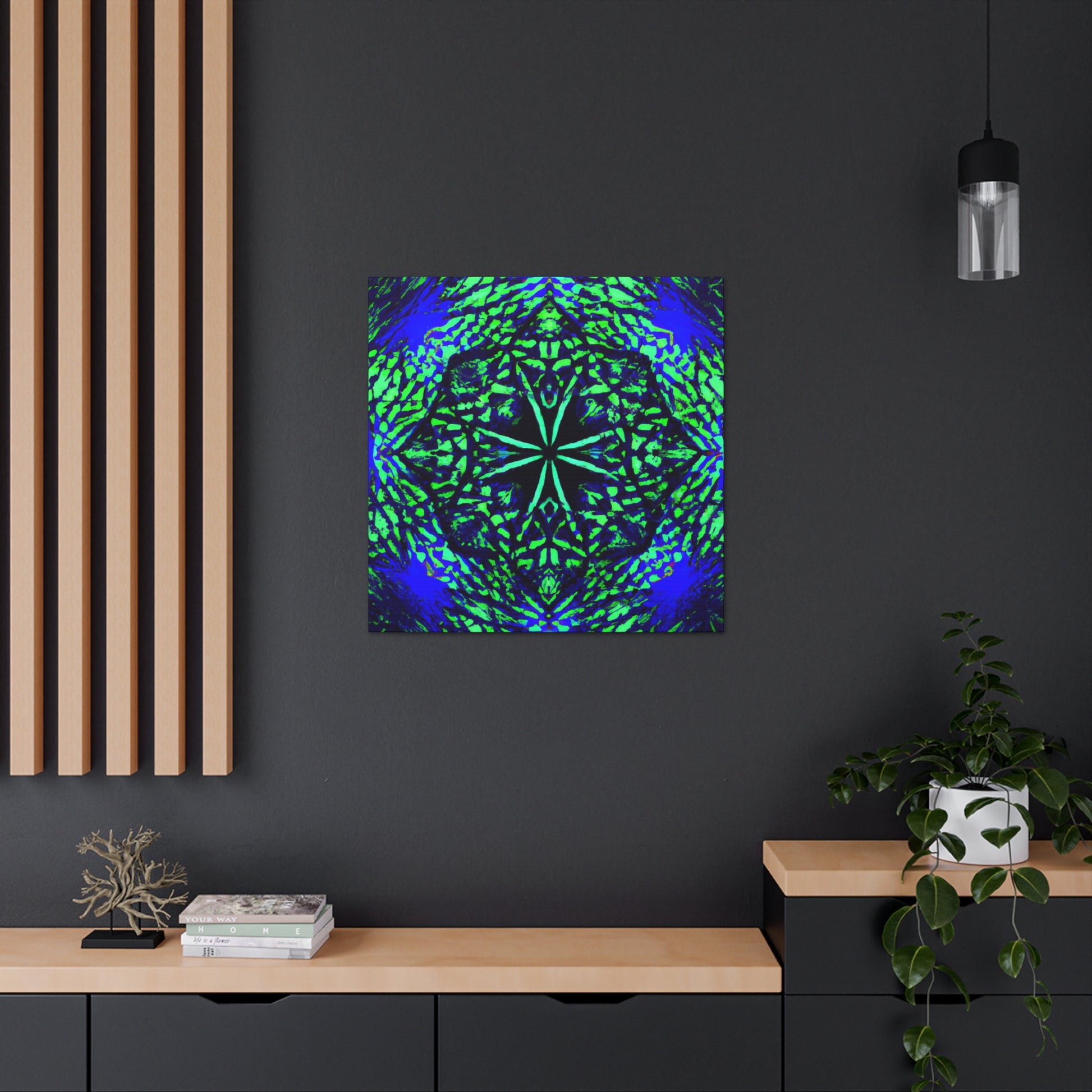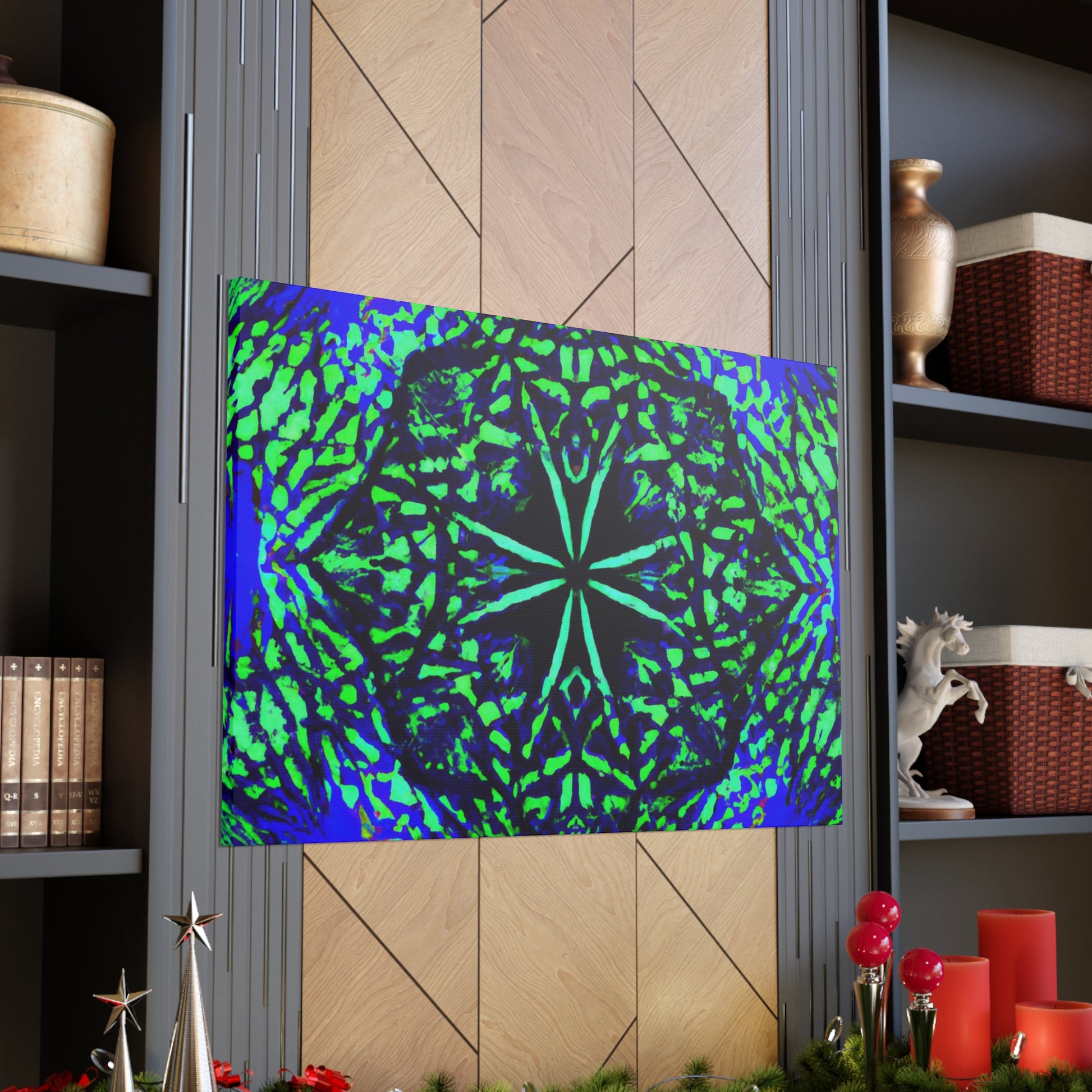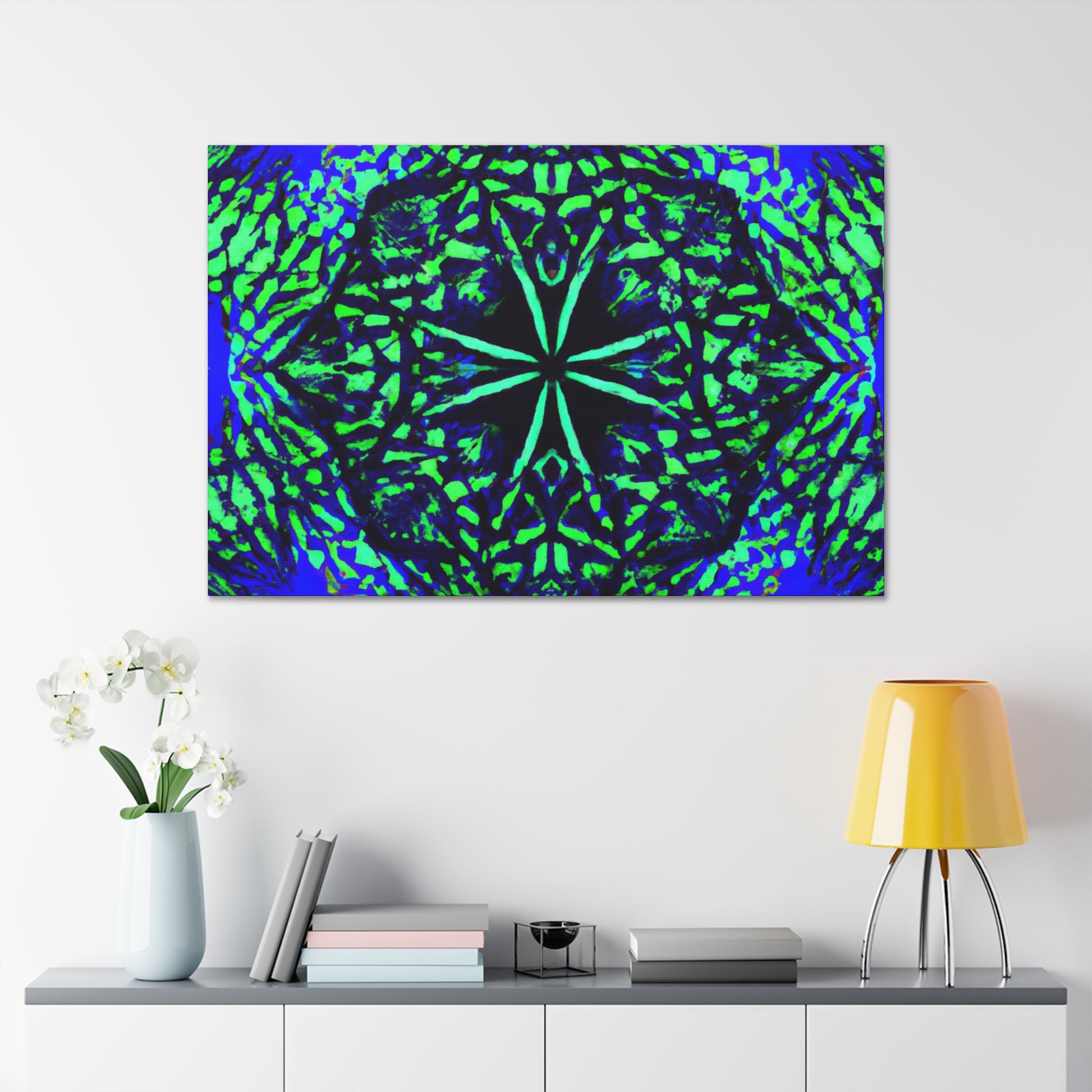 This vibrant digital art canvas features a trippy geometric palm leaves, kaleidoscope, abstract, 3D lines, and fractal design. Its bright colors will bring life to any room. Hanging this canvas will add texture and visual interest to any décor, perfect for creating a unique modern look. #trippyart #geometricpalmleaves #kaleidoscope #abstractart #vibrantcolors #3Dlines #fractal #digitalart #canvas #modernart #interiordesign