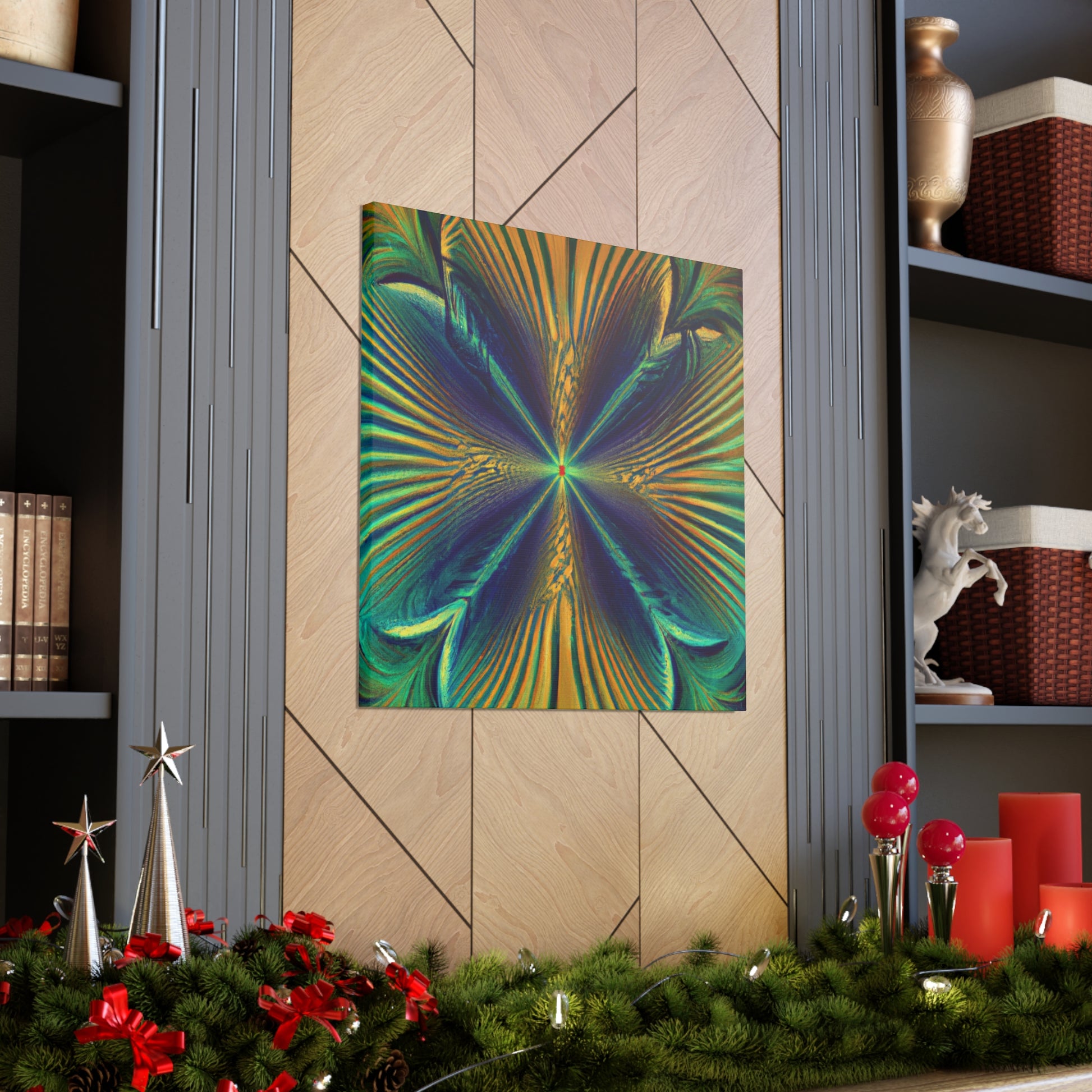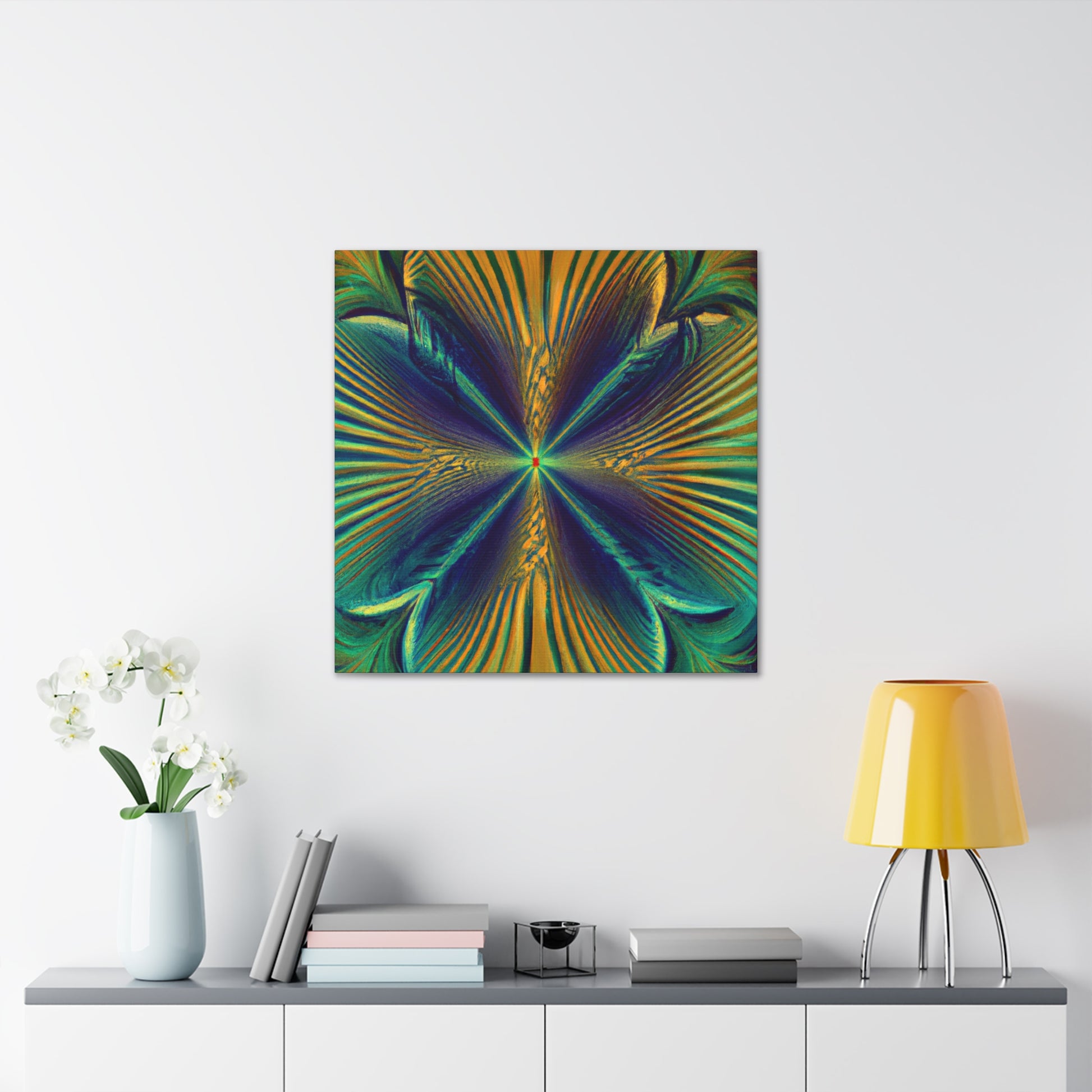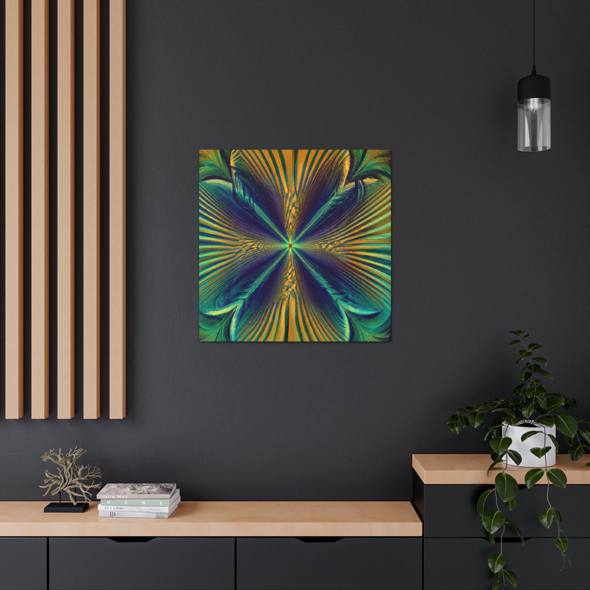 Enter this psychedelic world of geometric palm leaves, kaleidoscopic and abstract digital art & bring life to your walls. Enjoy a captivating blend of vibrantly colored 3D lines and fractal patterning sure to bring personality and warmth to any room. #trippyart #geometricpalmeleaves #kaleidoscopic #abstractart #digitalart #vibrantcolors #3Dlines #fractal #psychedelic #modernart #wallart