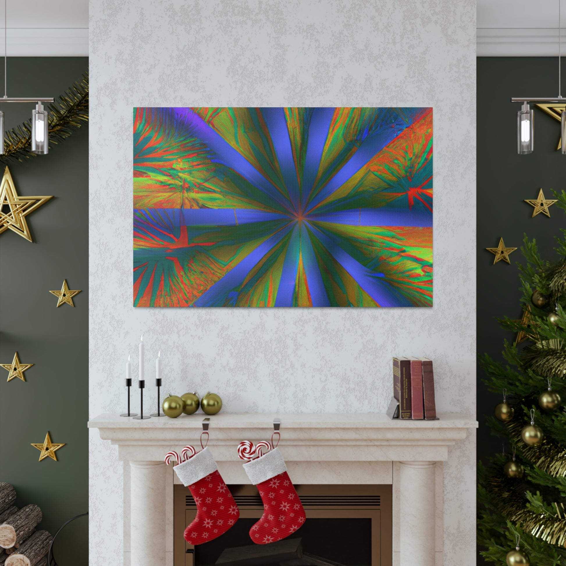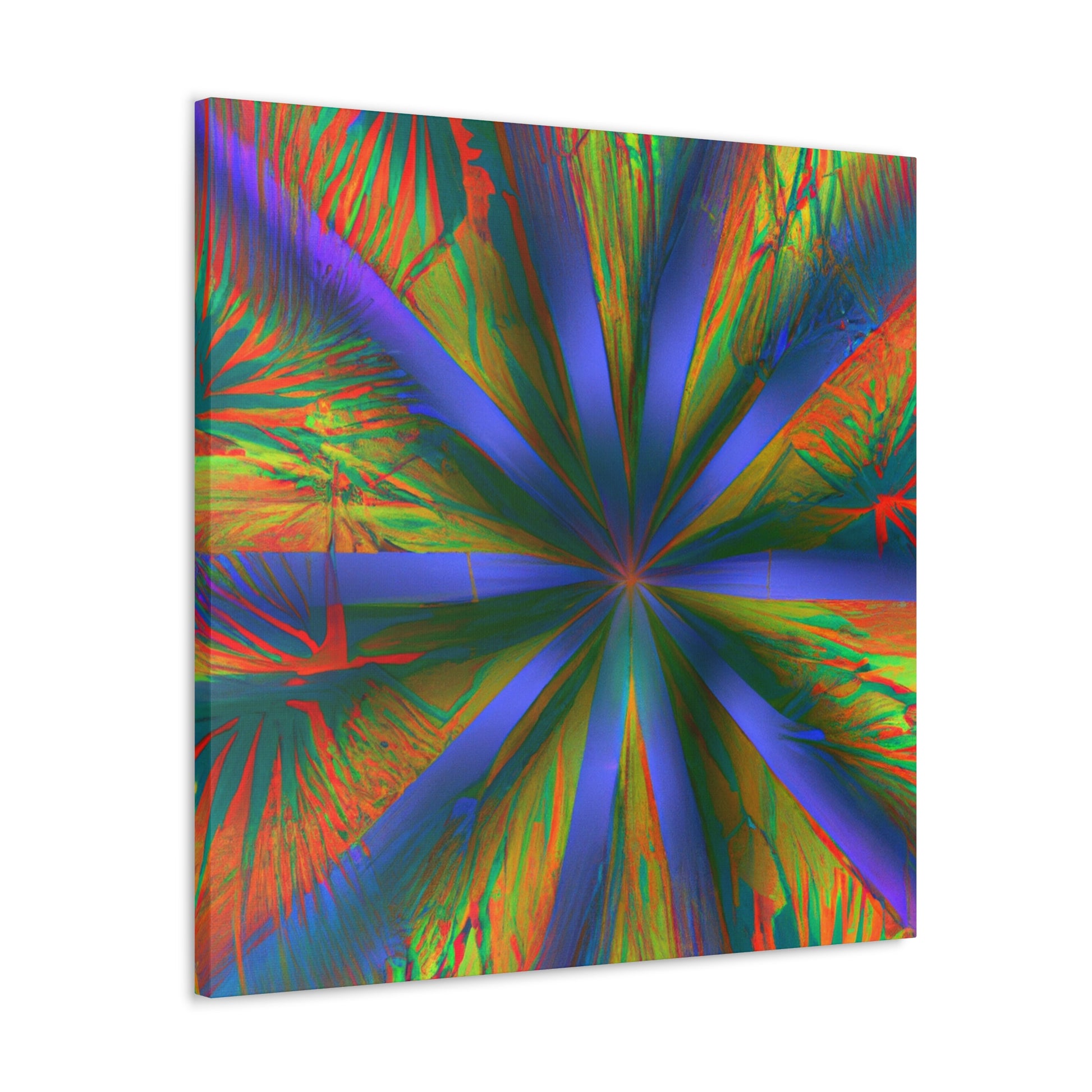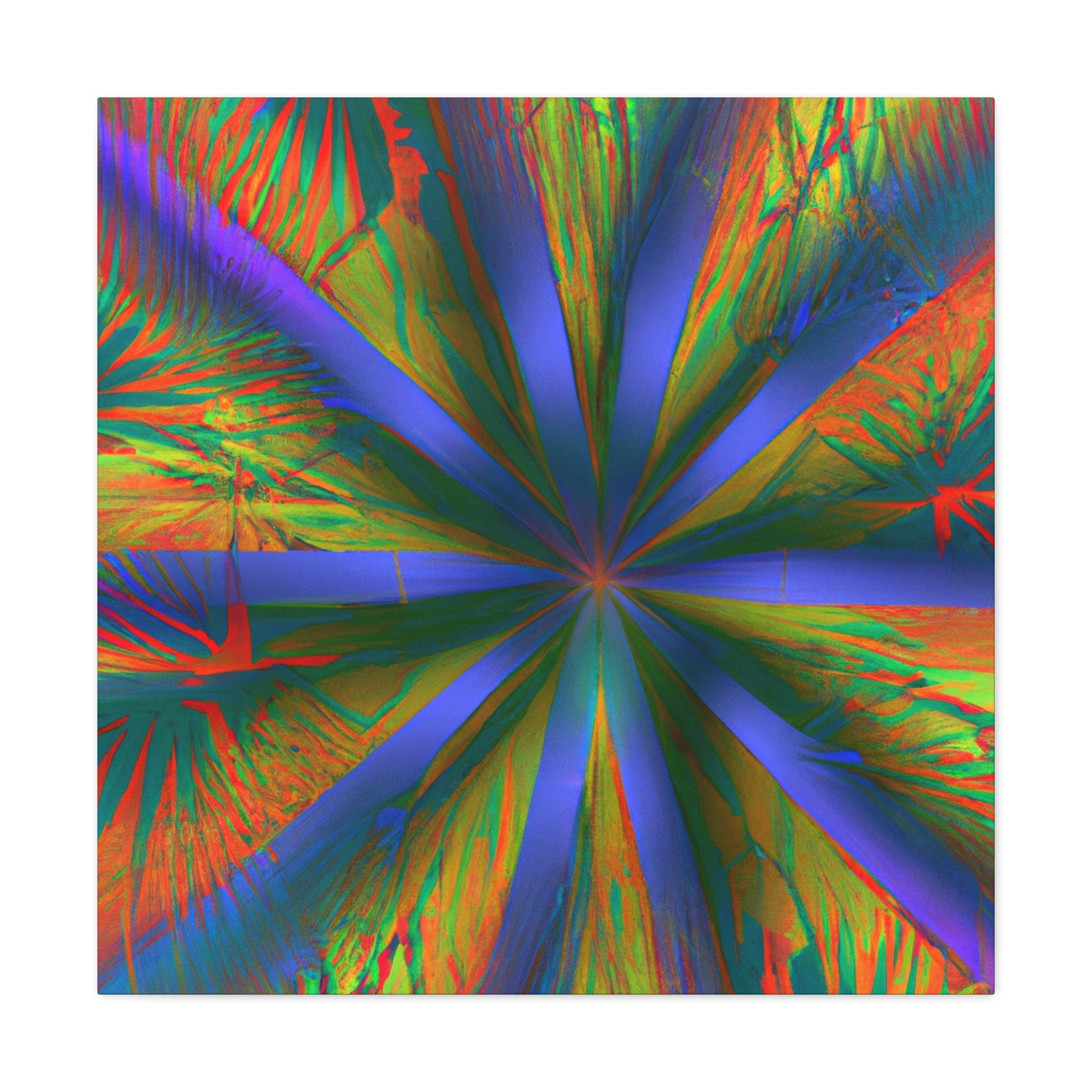 This captivating canvas beautifully captures the abstract art of fractal and 3D lines in vibrant colors. Be mesmerized by the kaleidoscope of trippy geometric palm leaves in a digital yet surreal design. Sure to bring life to any wall, add a unique design to your home and express yourself with this one-of-a-kind piece. #digitalart #abstractART #GeometricPalmLeaves #Kaleidoscope #Fractal #3DLines #VibrantColors #SurrealDesign #HomeDecor #ArtWall #ExpressYourself