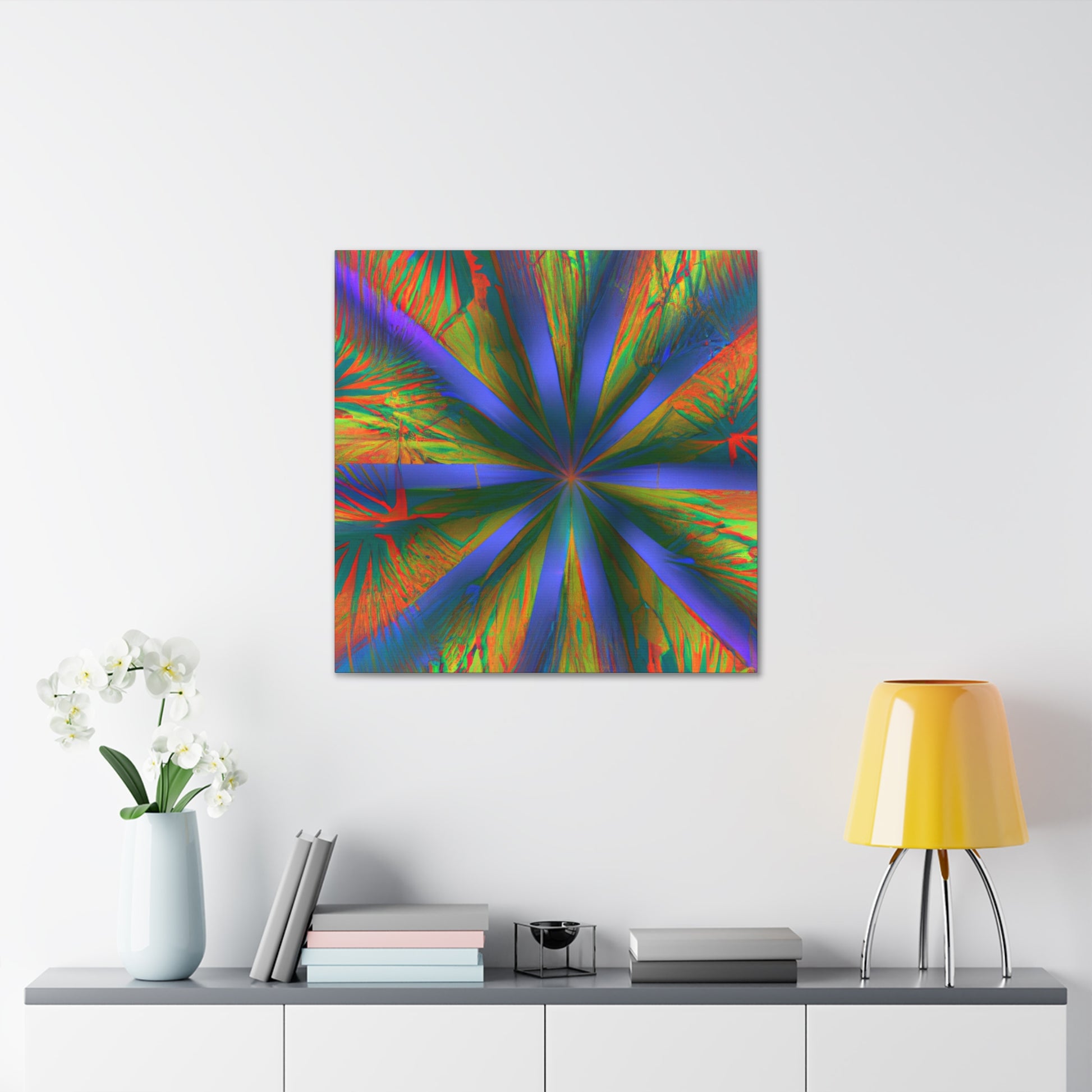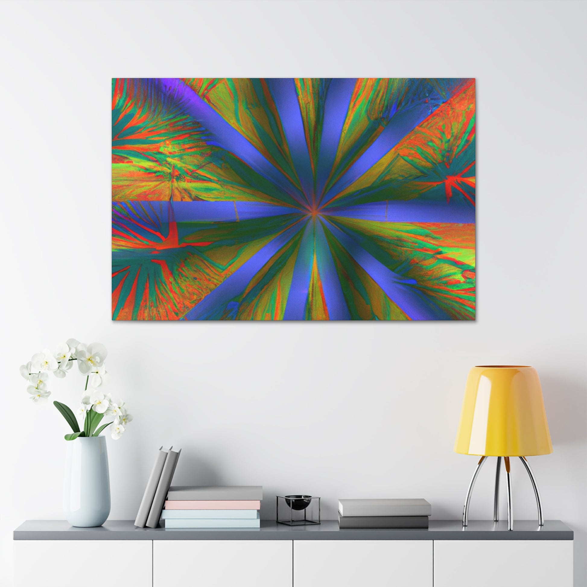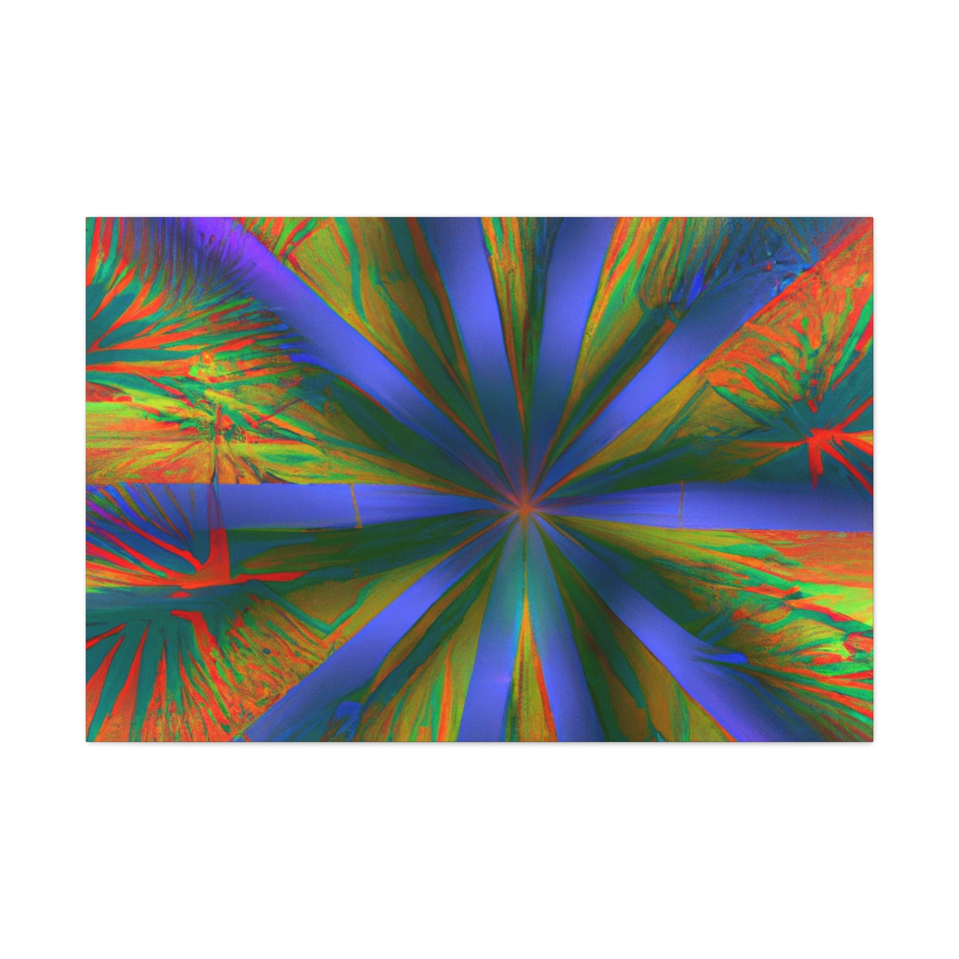 This captivating canvas beautifully captures the abstract art of fractal and 3D lines in vibrant colors. Be mesmerized by the kaleidoscope of trippy geometric palm leaves in a digital yet surreal design. Sure to bring life to any wall, add a unique design to your home and express yourself with this one-of-a-kind piece. #digitalart #abstractART #GeometricPalmLeaves #Kaleidoscope #Fractal #3DLines #VibrantColors #SurrealDesign #HomeDecor #ArtWall #ExpressYourself