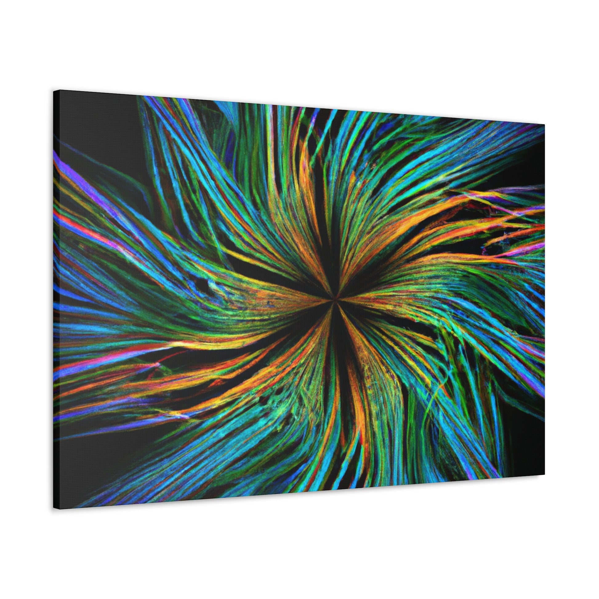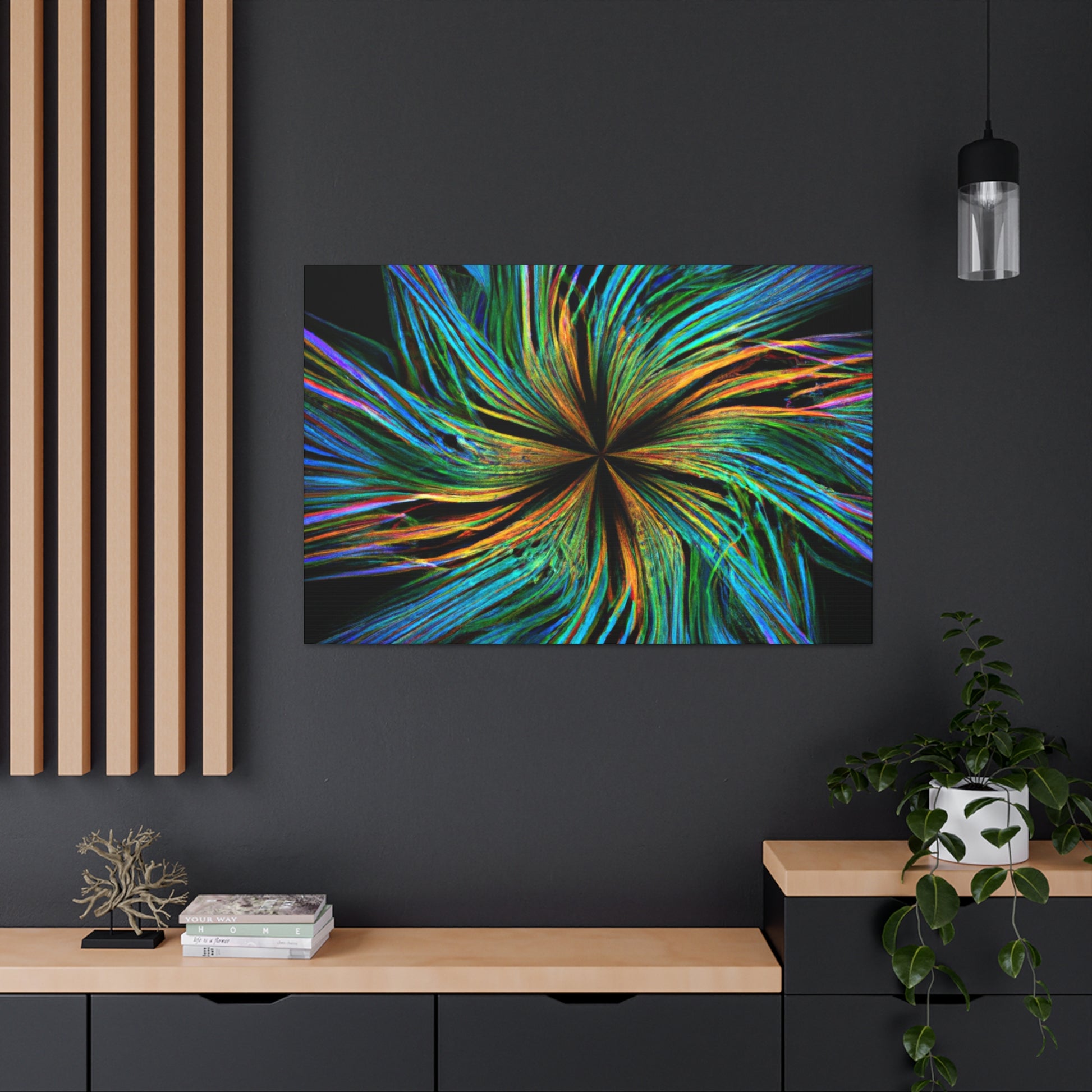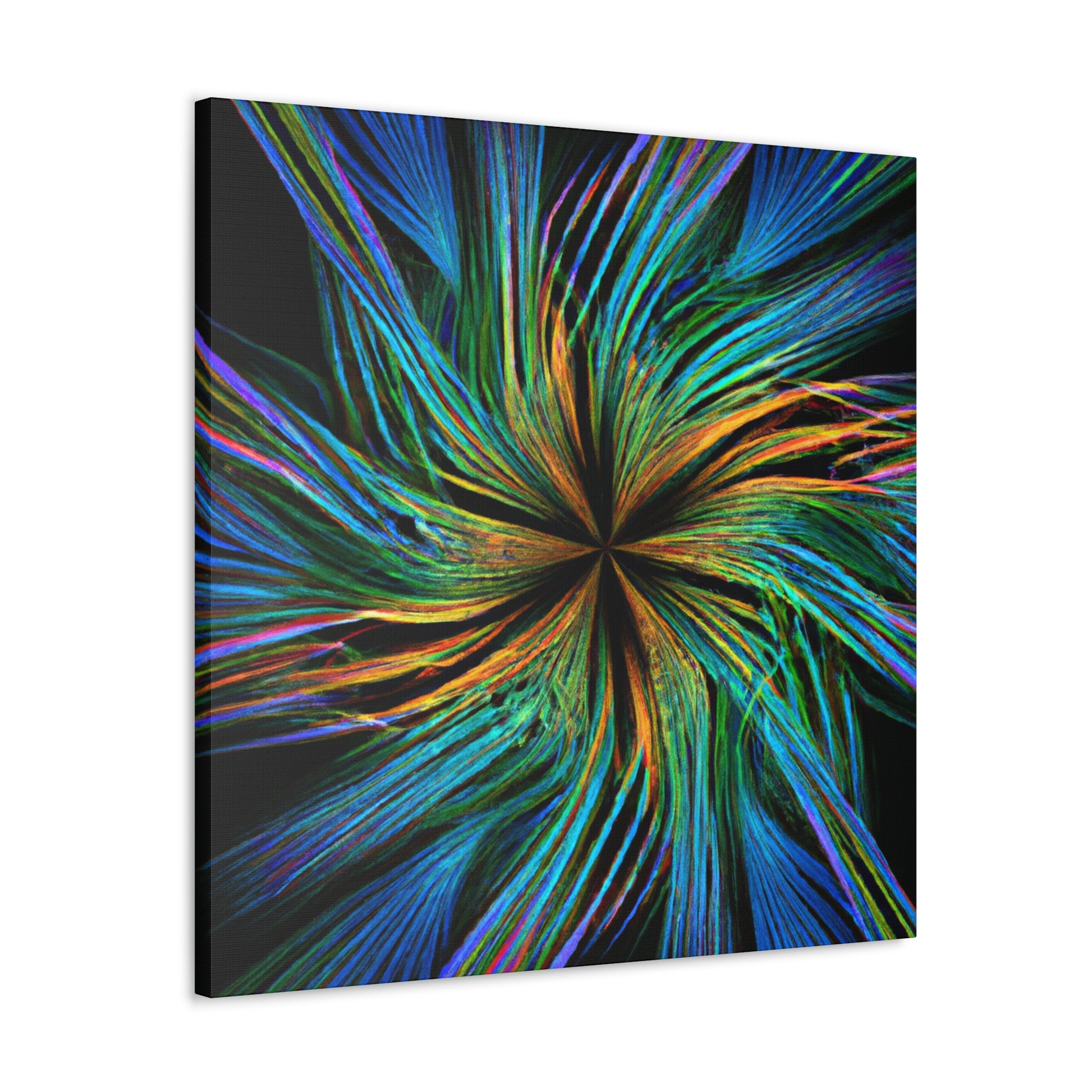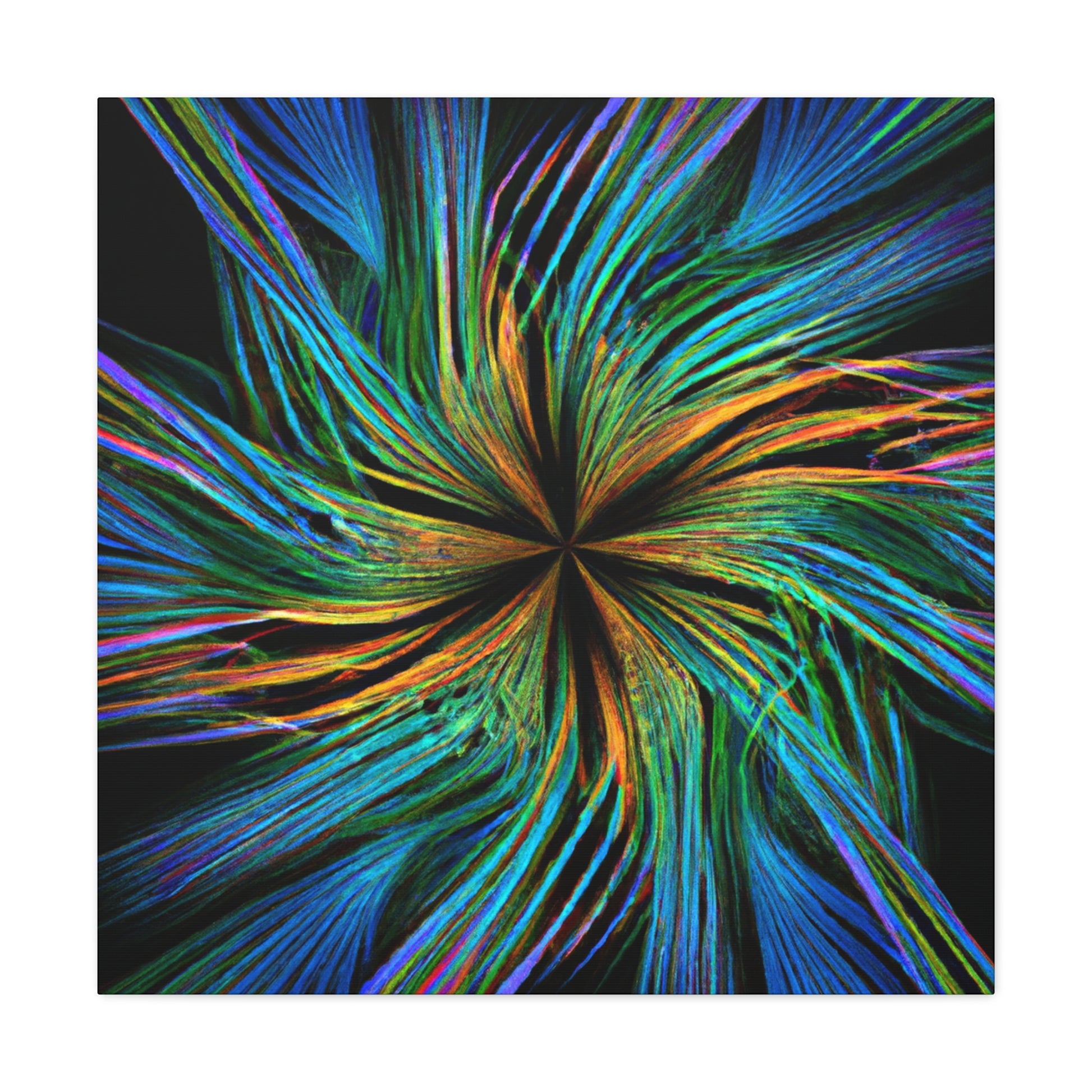 Experience a unique piece of art on your walls with this eye-catching canvas. This scenic abstract digital art print features trippy geometric palm leaves in high-impact, vibrant colors. Enjoy the intricate 3D lines, fractals and kaleidoscope shapes that will bring your walls to life. #digitalart #kaleidoscope #abstractart #palmleaves #fractal #vibrantcolors #3Dlines #trippy #geometric #wallart #walldecor
