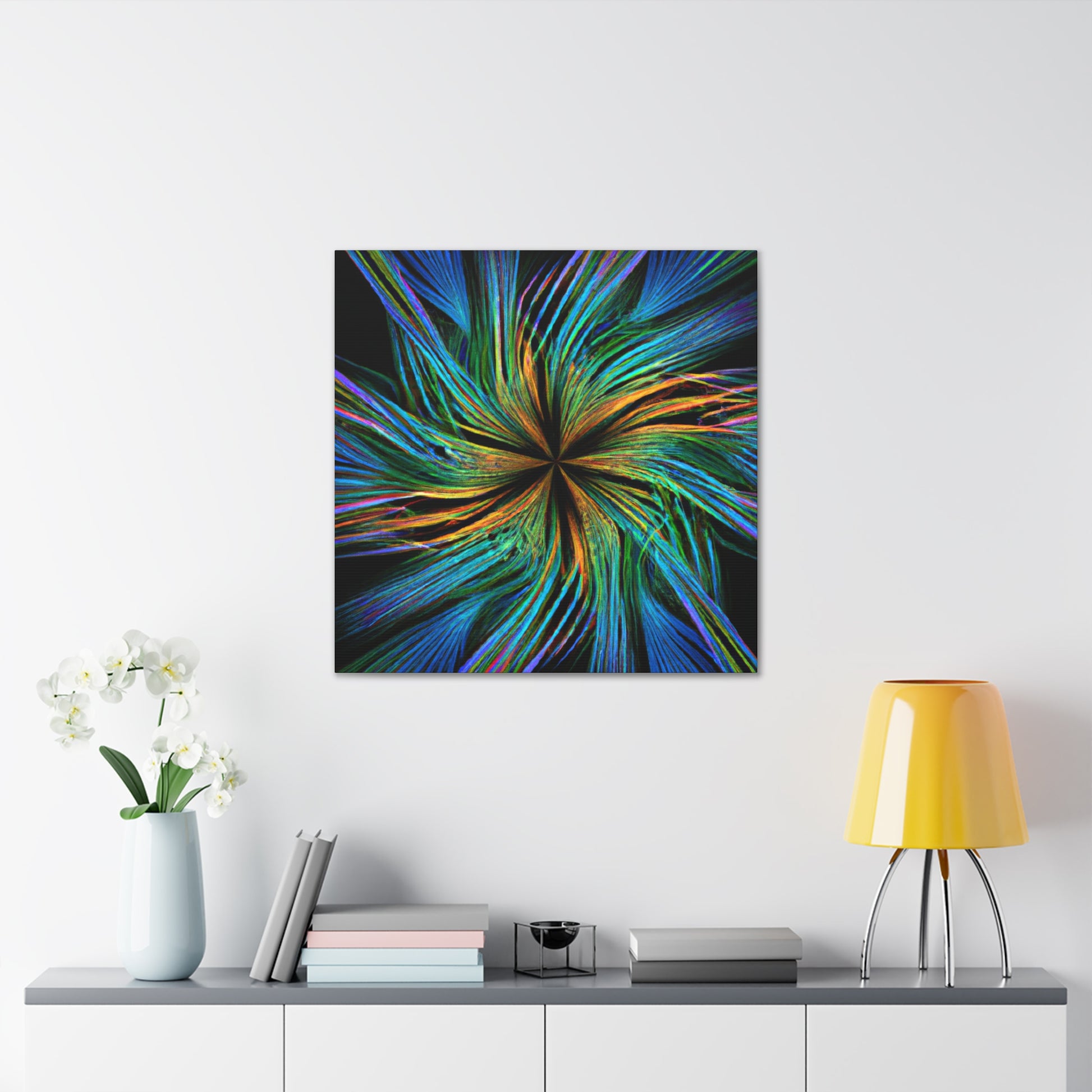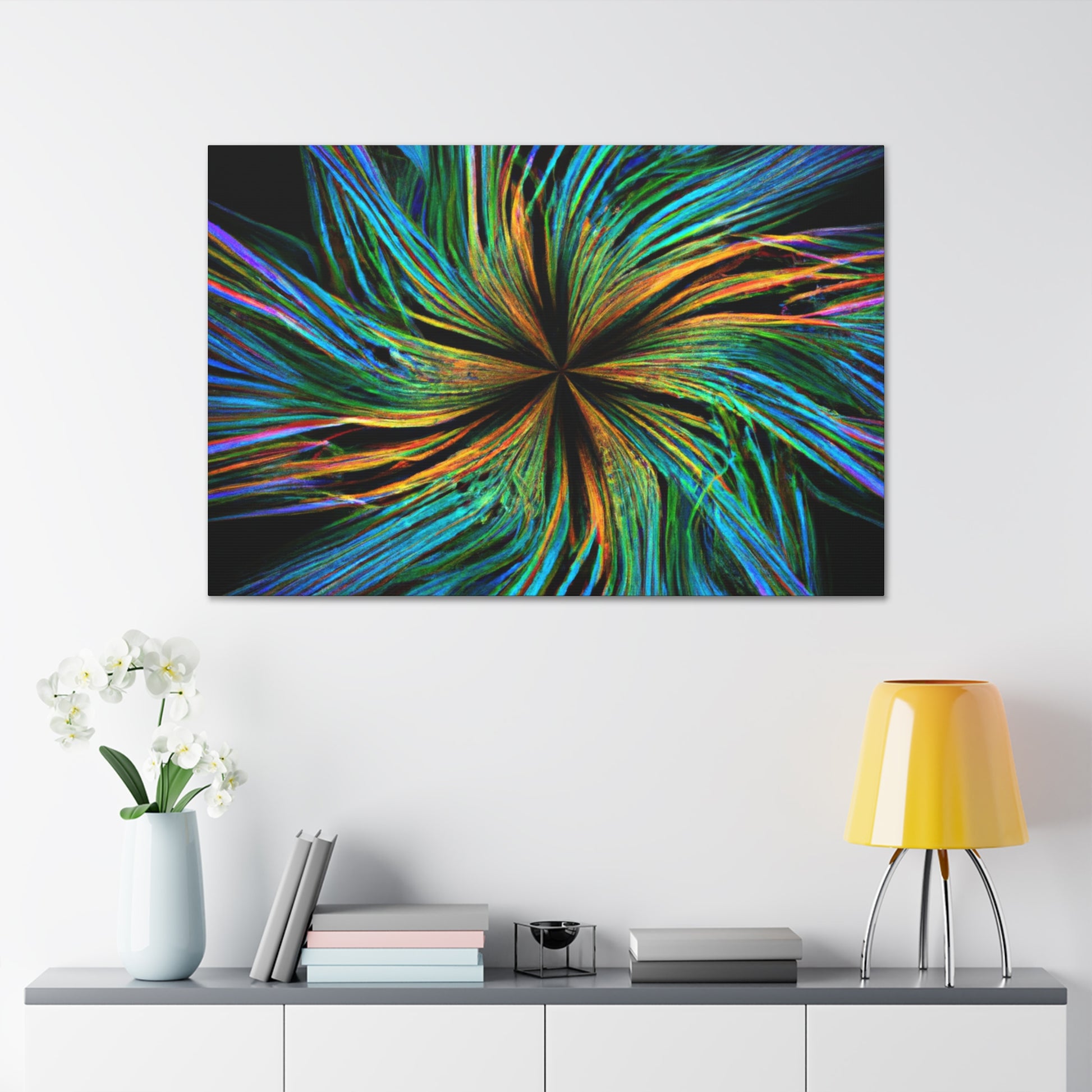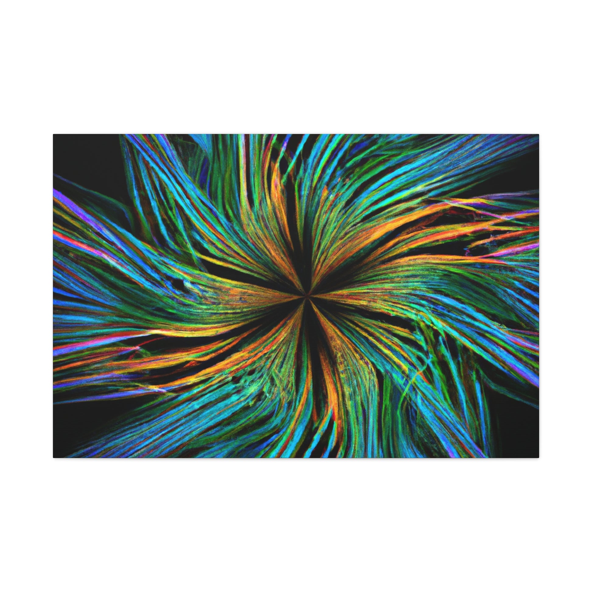 Experience a unique piece of art on your walls with this eye-catching canvas. This scenic abstract digital art print features trippy geometric palm leaves in high-impact, vibrant colors. Enjoy the intricate 3D lines, fractals and kaleidoscope shapes that will bring your walls to life. #digitalart #kaleidoscope #abstractart #palmleaves #fractal #vibrantcolors #3Dlines #trippy #geometric #wallart #walldecor