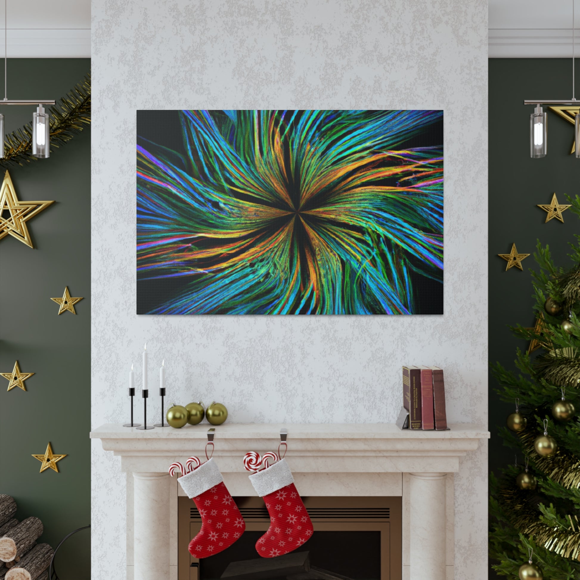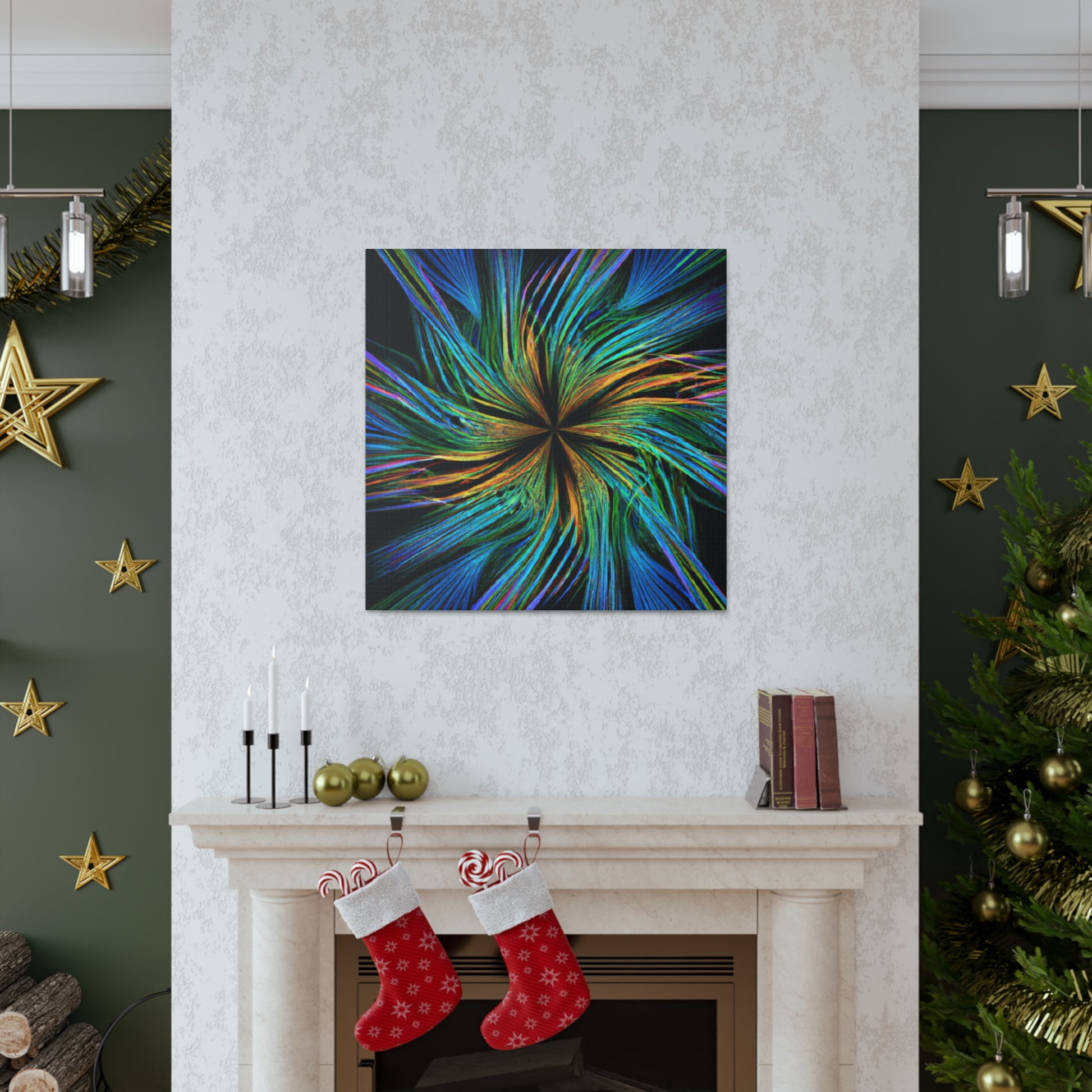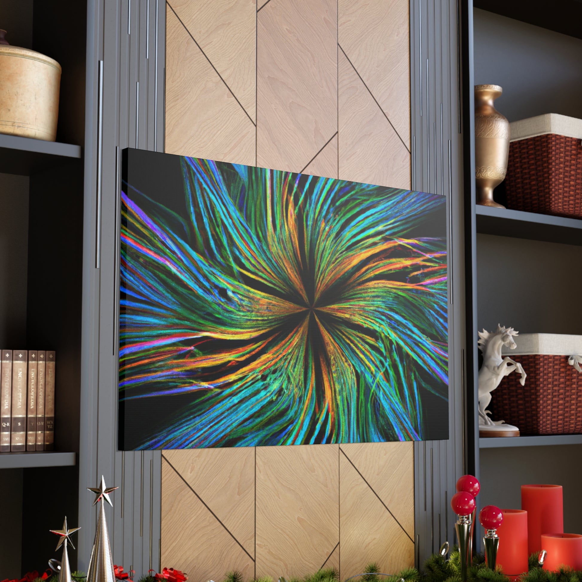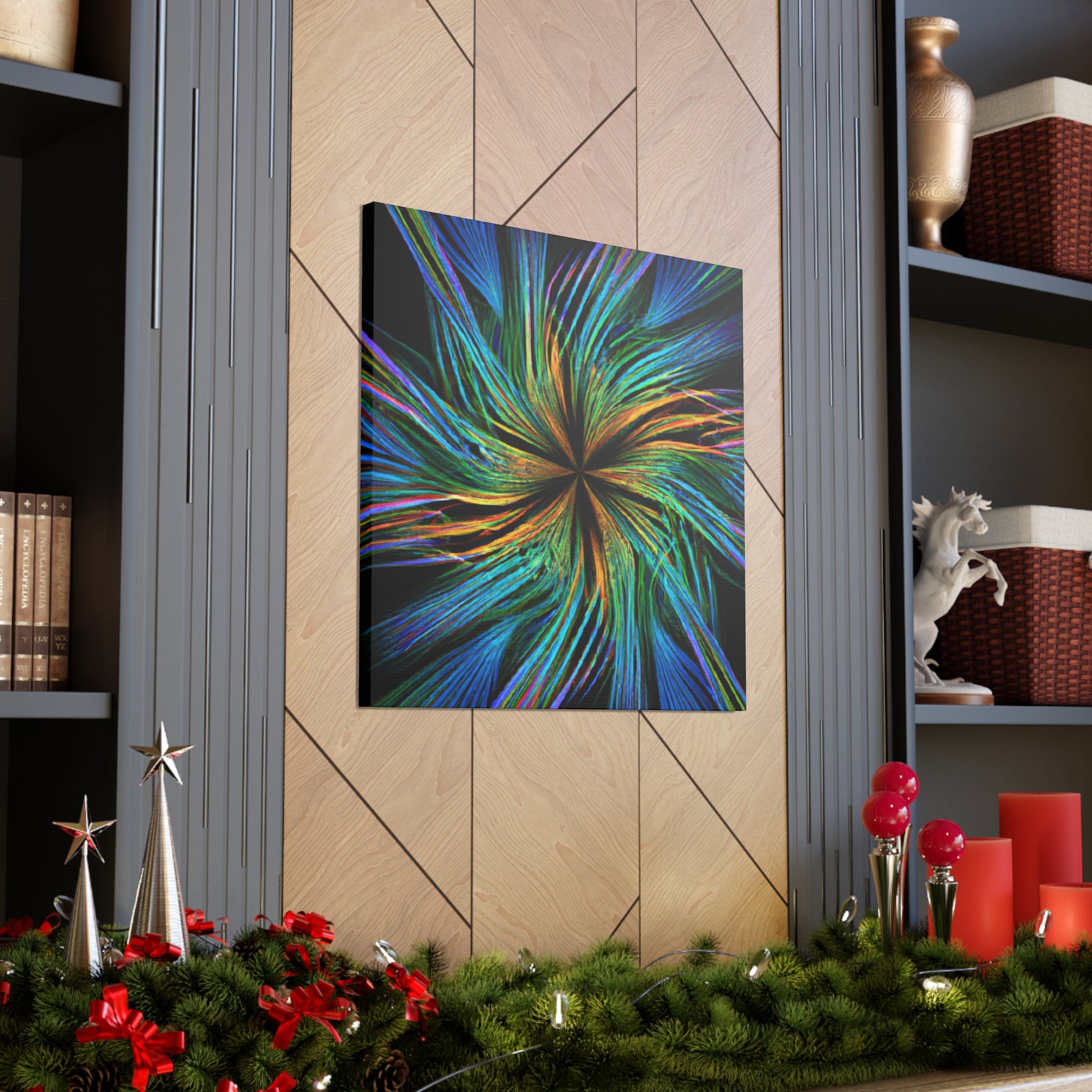 Experience a unique piece of art on your walls with this eye-catching canvas. This scenic abstract digital art print features trippy geometric palm leaves in high-impact, vibrant colors. Enjoy the intricate 3D lines, fractals and kaleidoscope shapes that will bring your walls to life. #digitalart #kaleidoscope #abstractart #palmleaves #fractal #vibrantcolors #3Dlines #trippy #geometric #wallart #walldecor