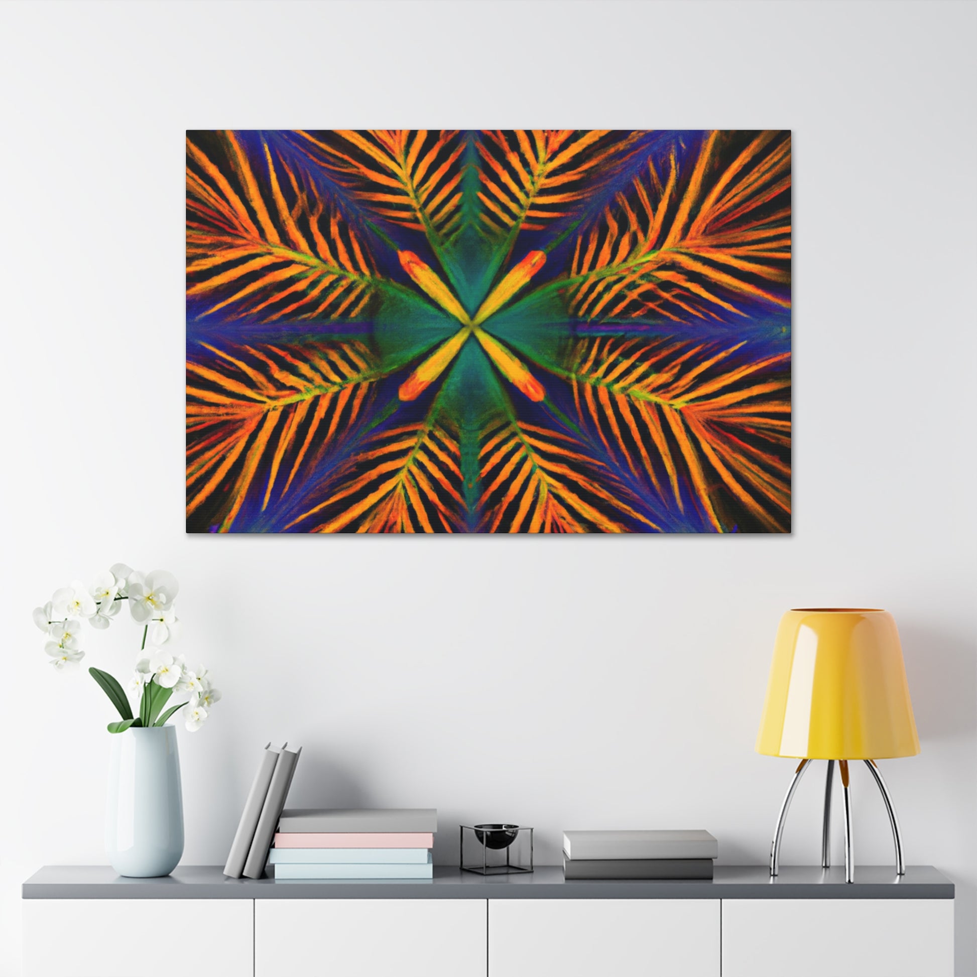 Escape into a magical world of beauty with this stunning trippy geometric palm leaves canvas! With vibrant colors, kaleidoscope-inspired details, 3D lines, and an abstract fractal, this piece of digital art will truly take your breath away. An eye-catching and unique wall statement piece, it'll be the envy of everyone who visits! #AbstractArt #DigitalArt #VibrantColors #3DLines #Fractal #TrippyGeometric #PalmLeaves #Kaleidoscope #CanvasWallArt #FractalArt #WallStatement